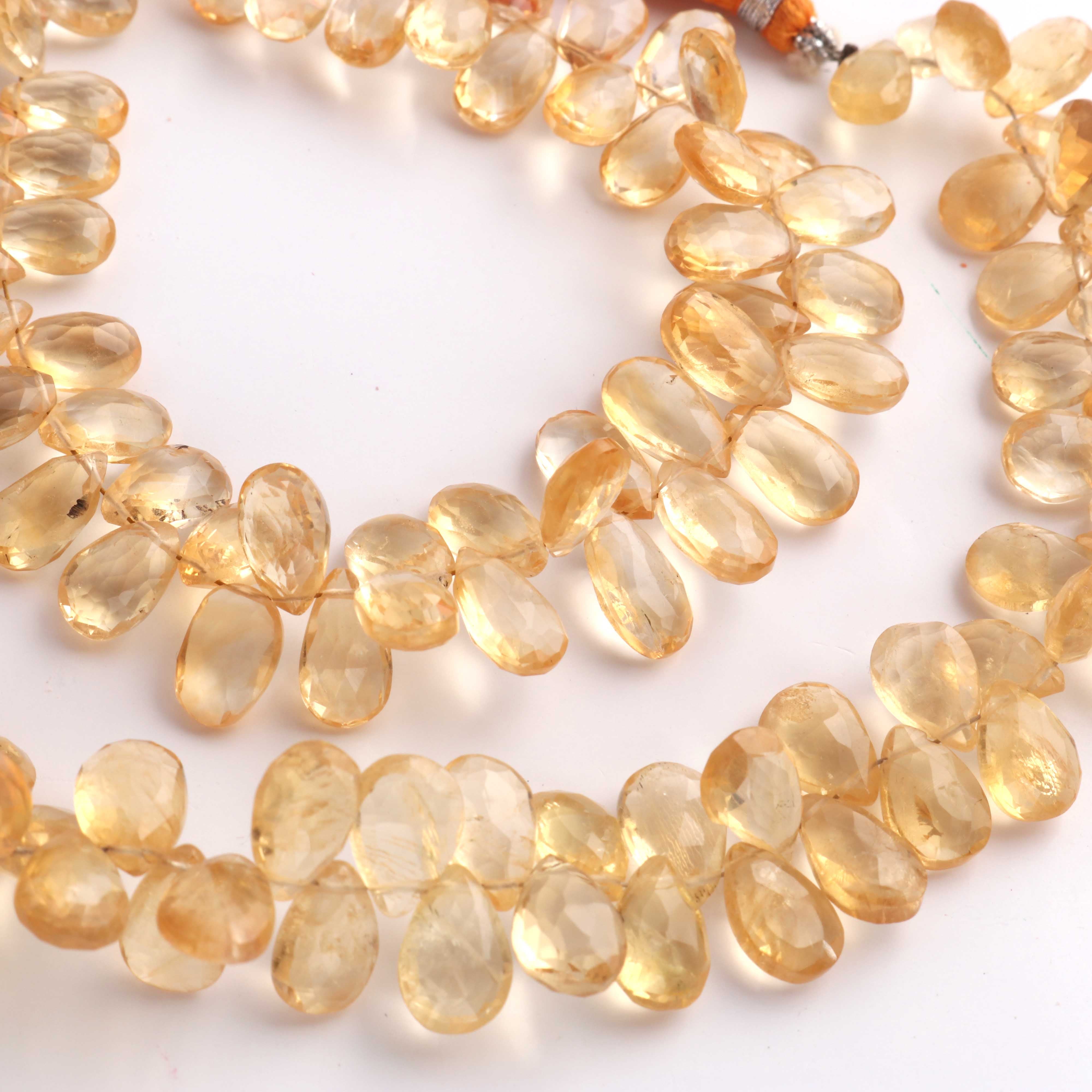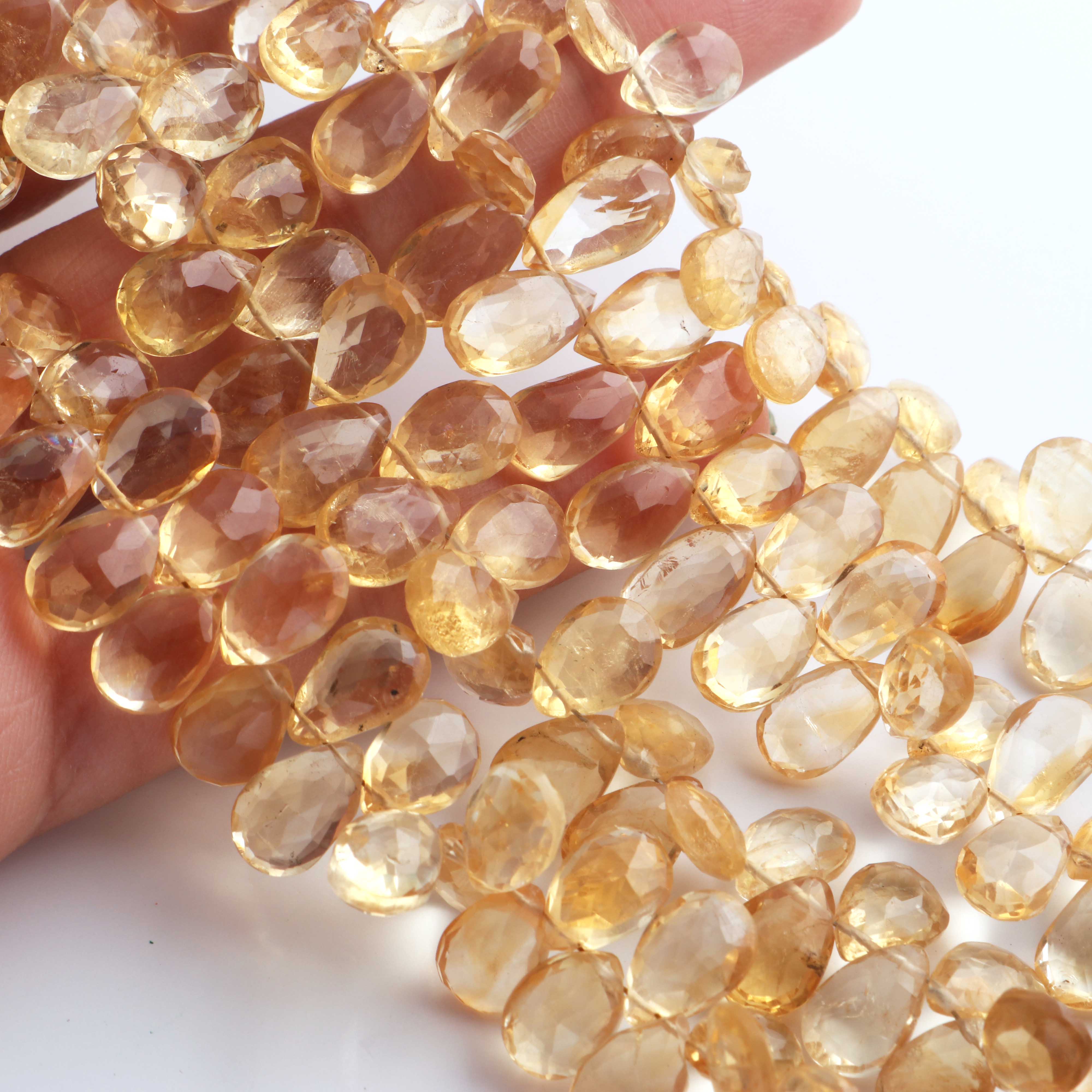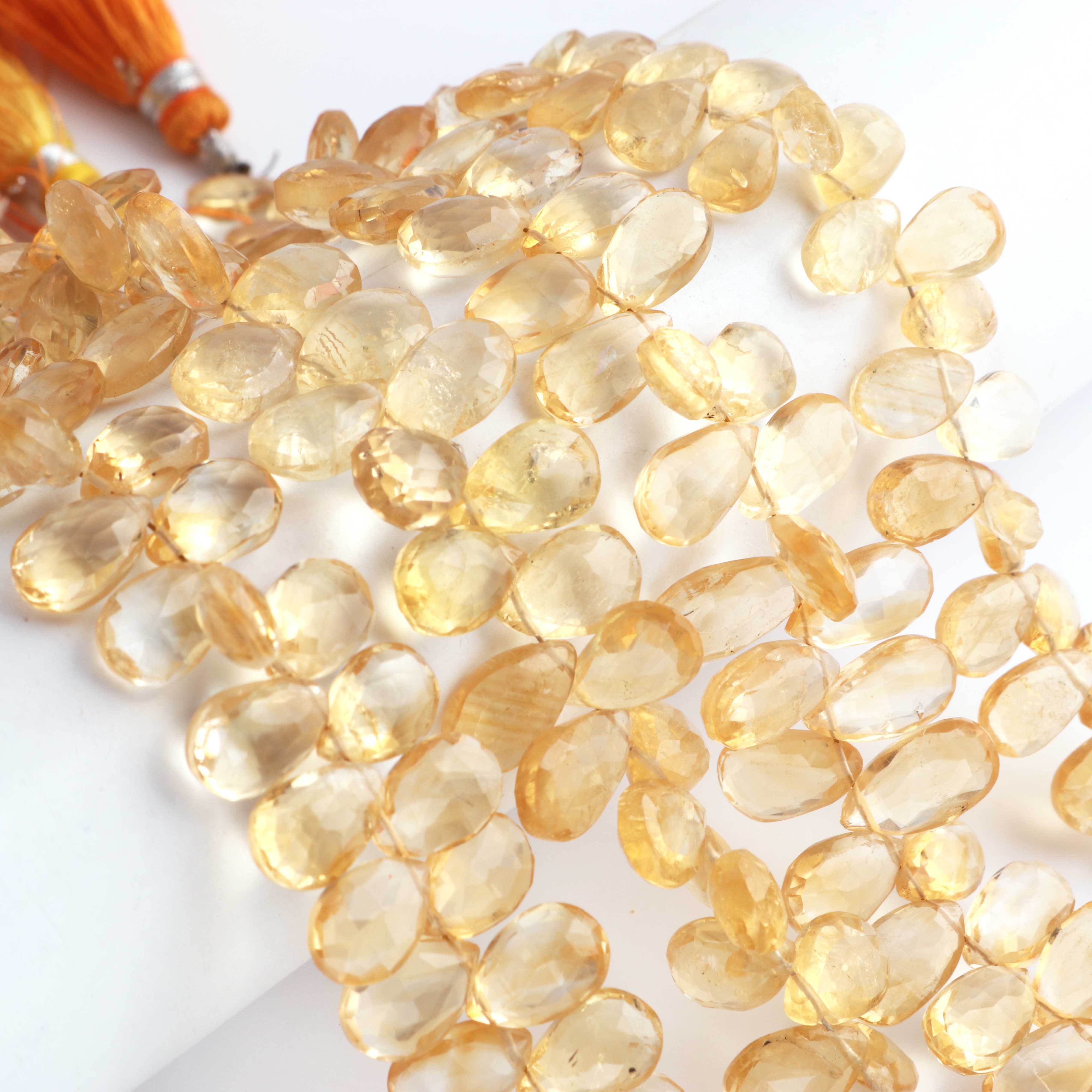 1 Strand Citrine Faceted Briolettes - Pear Shape Briolettes -11mmx7mm-7mmx7mm-8 Inches BR02467