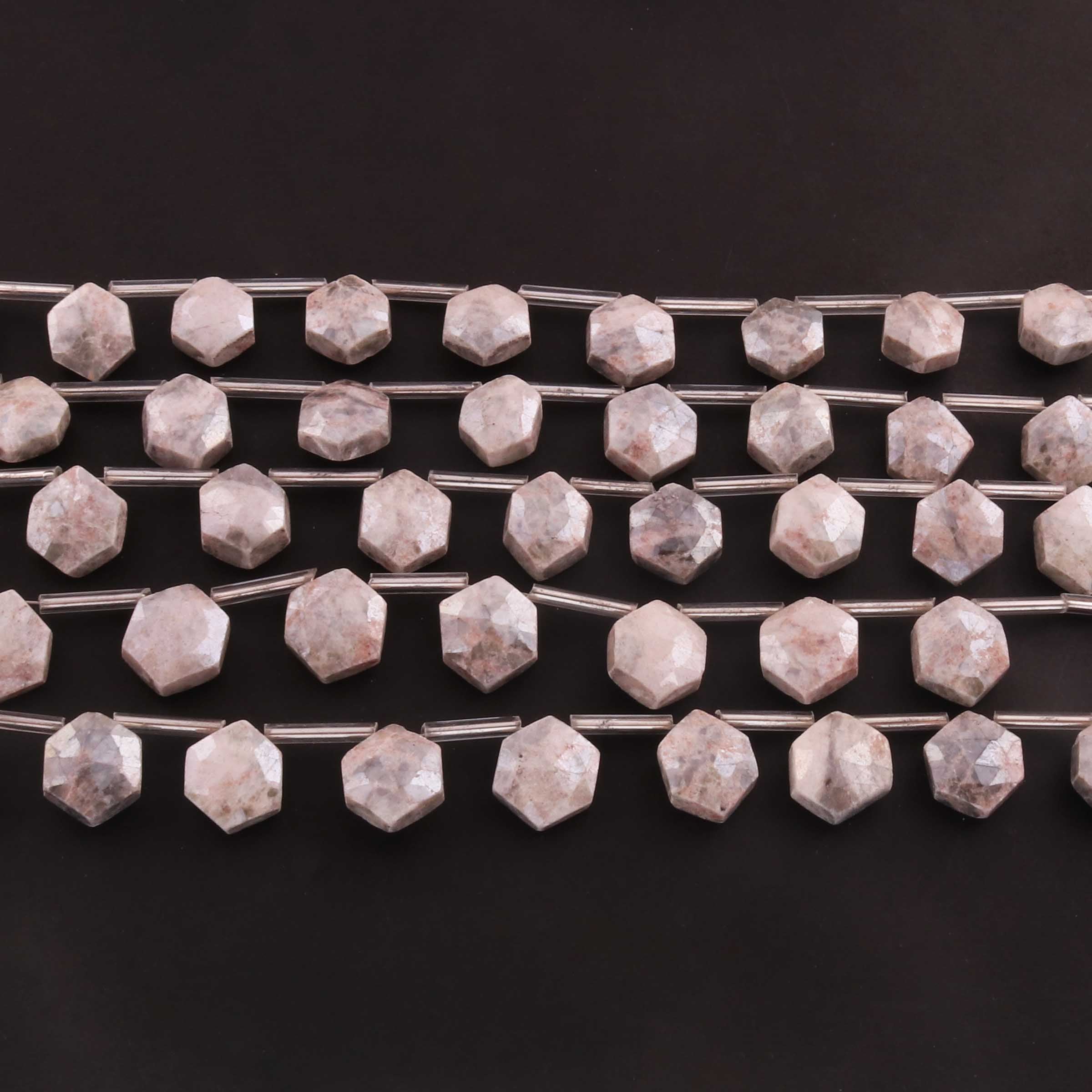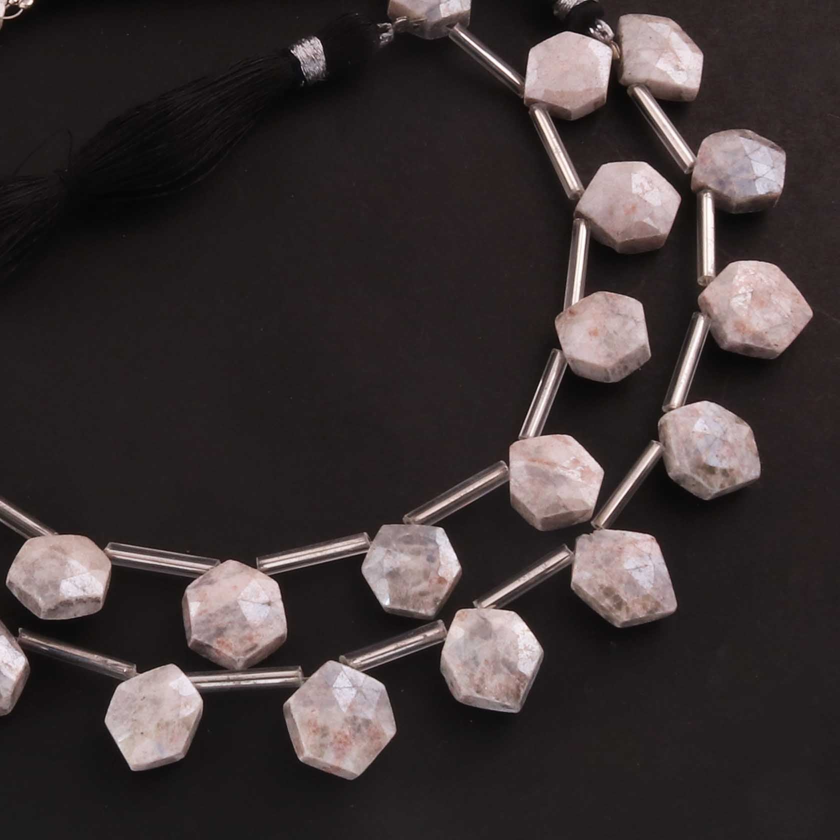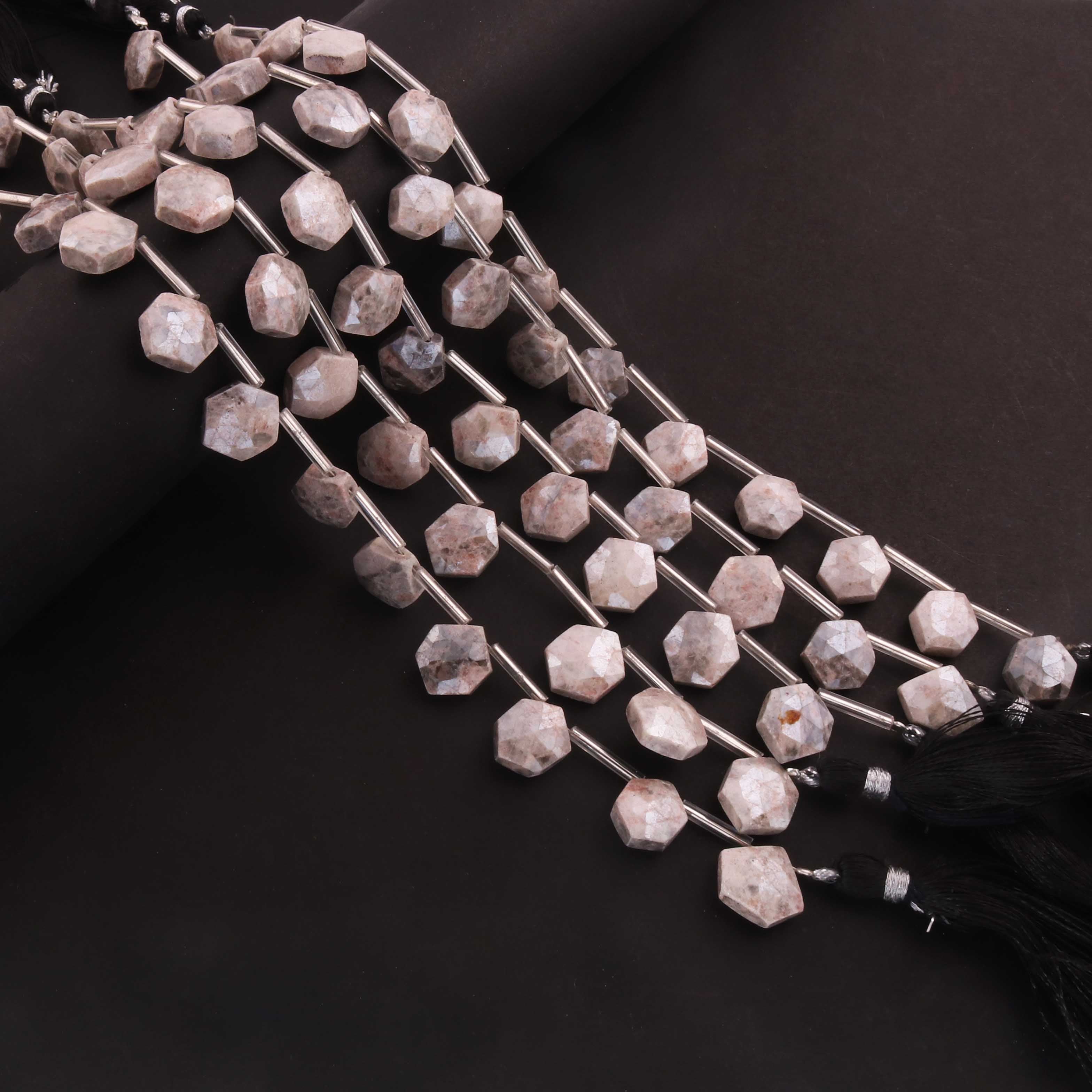 1 Strand Gray Moonstone Silver Coated Faceted Briolettes -Hexagon Shape Briolettes -12mmx10mm -8 Inches BR0442