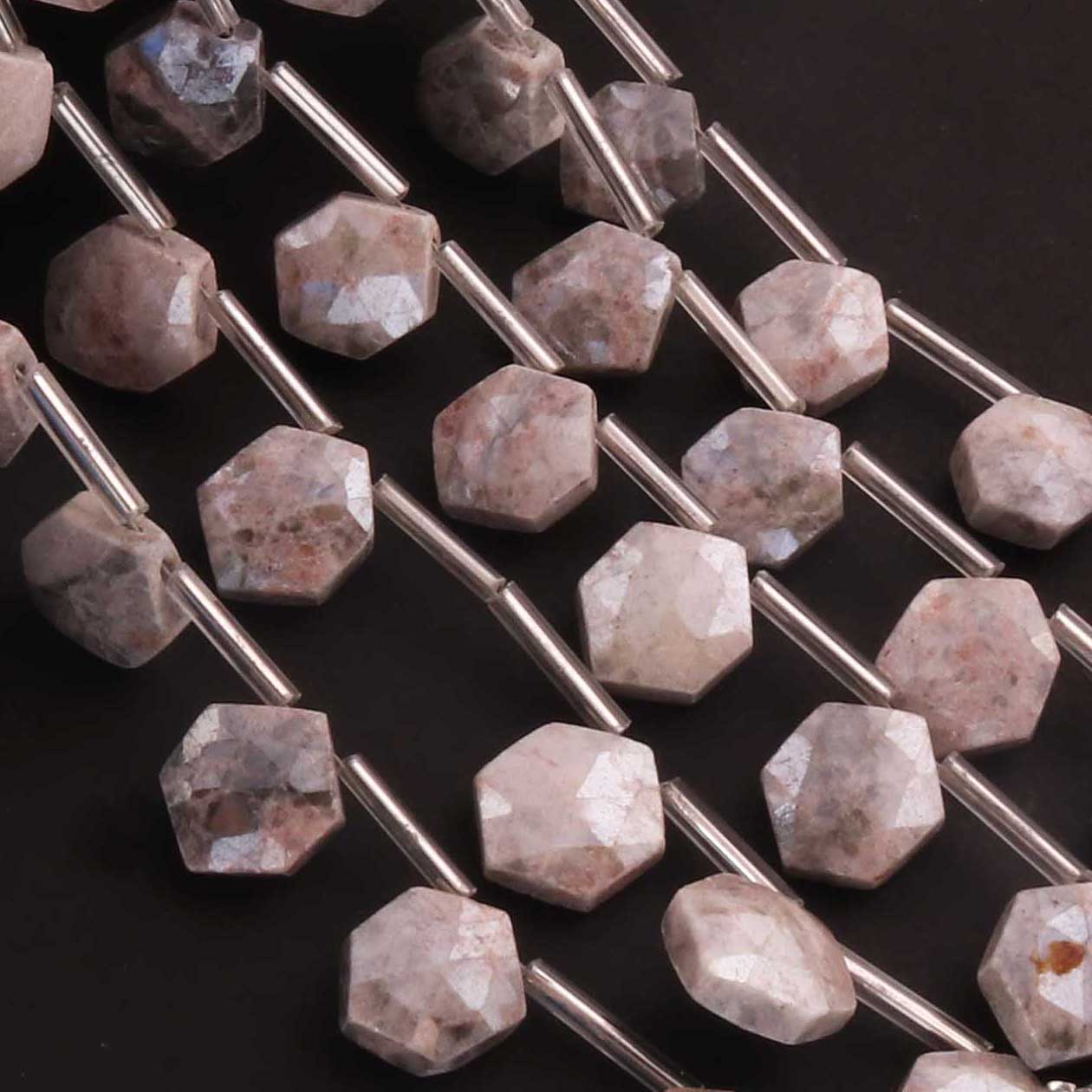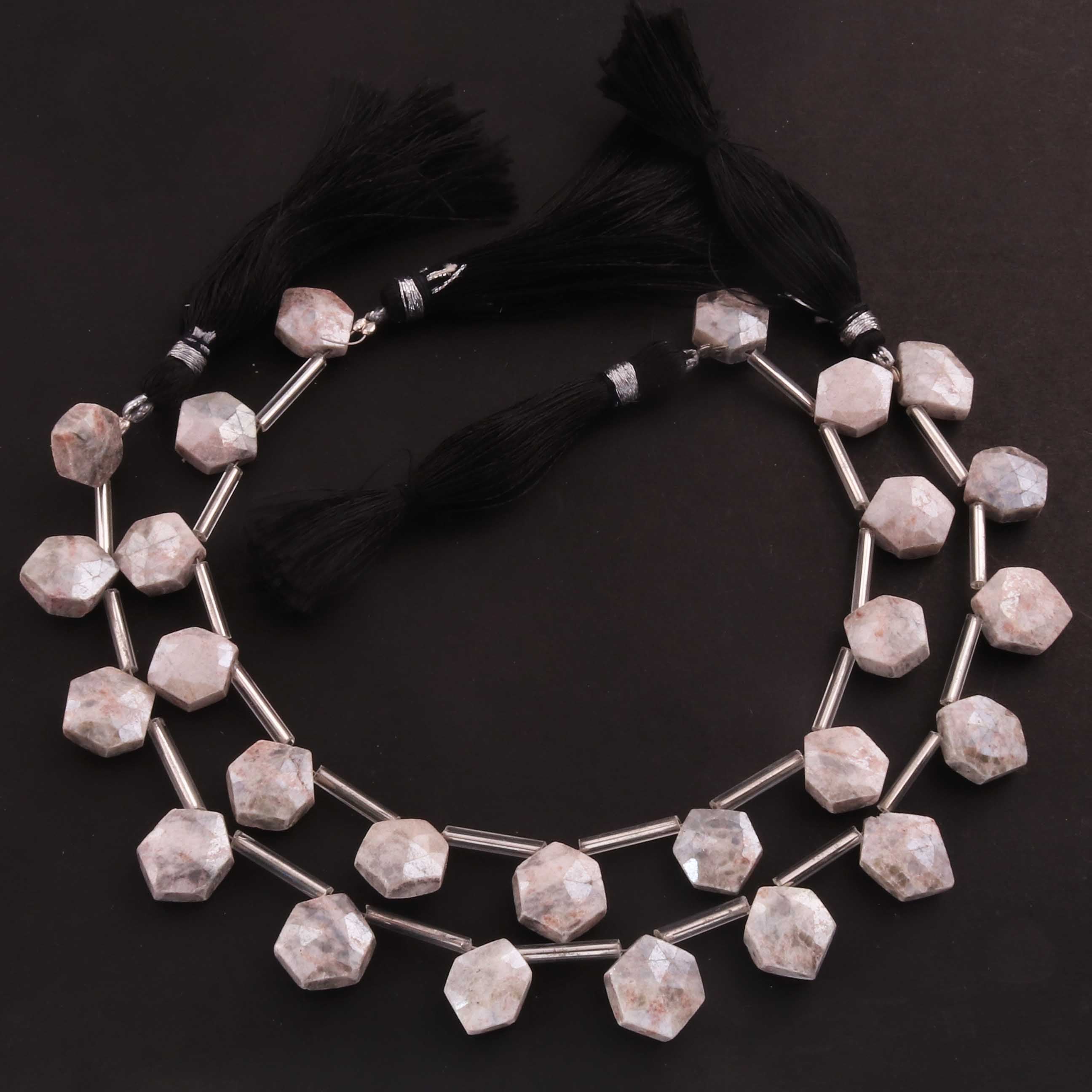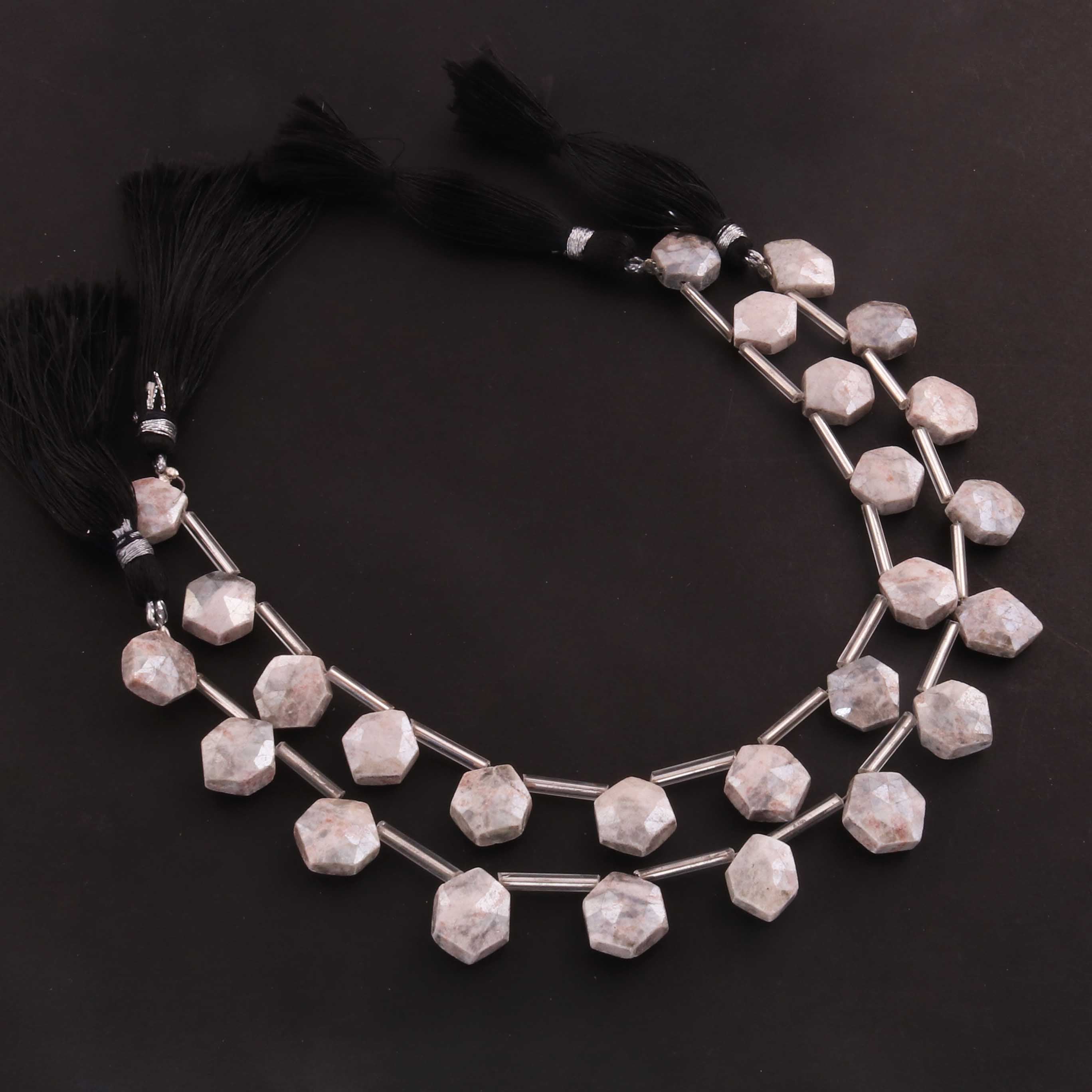 1 Strand Gray Moonstone Silver Coated Faceted Briolettes -Hexagon Shape Briolettes -12mmx10mm -8 Inches BR0442