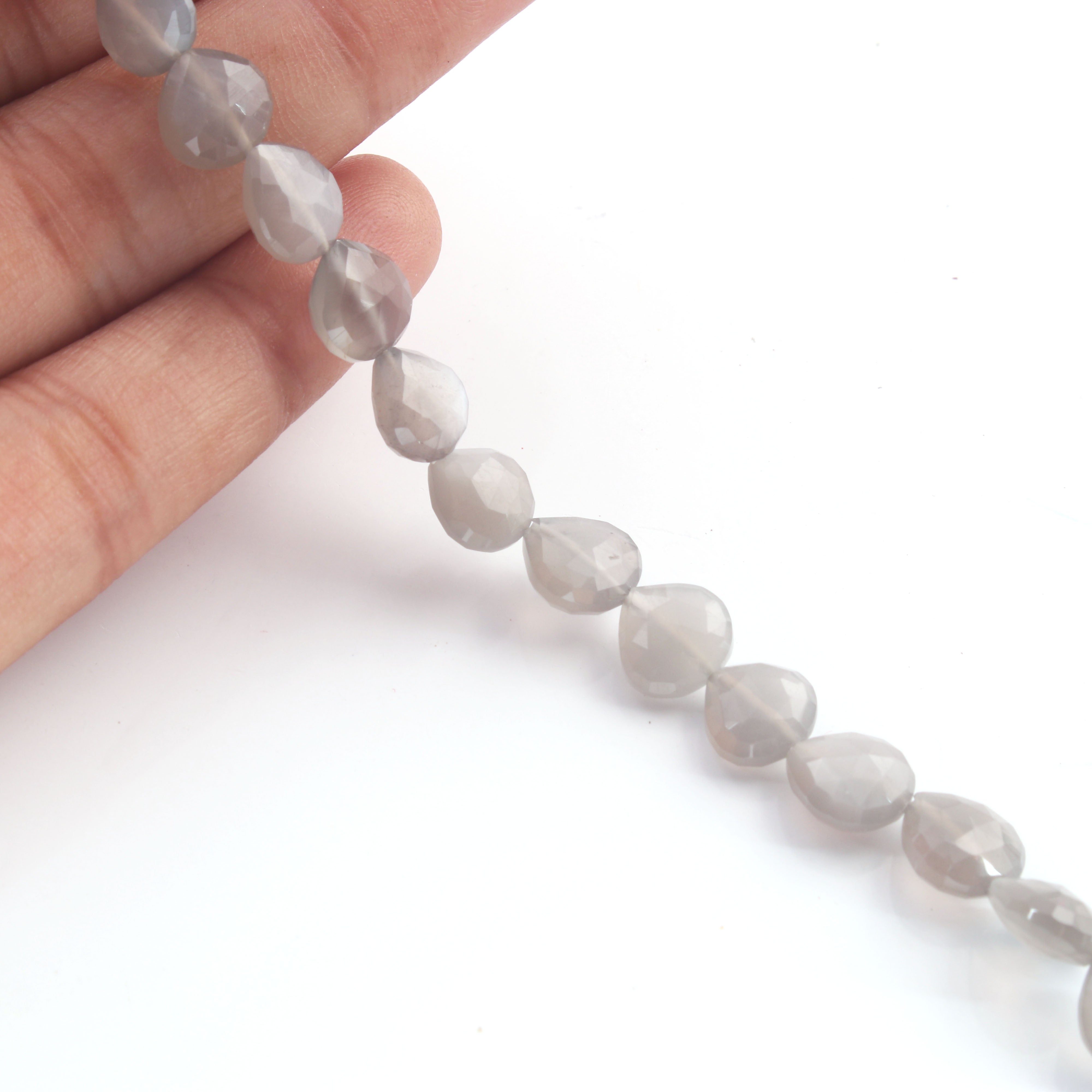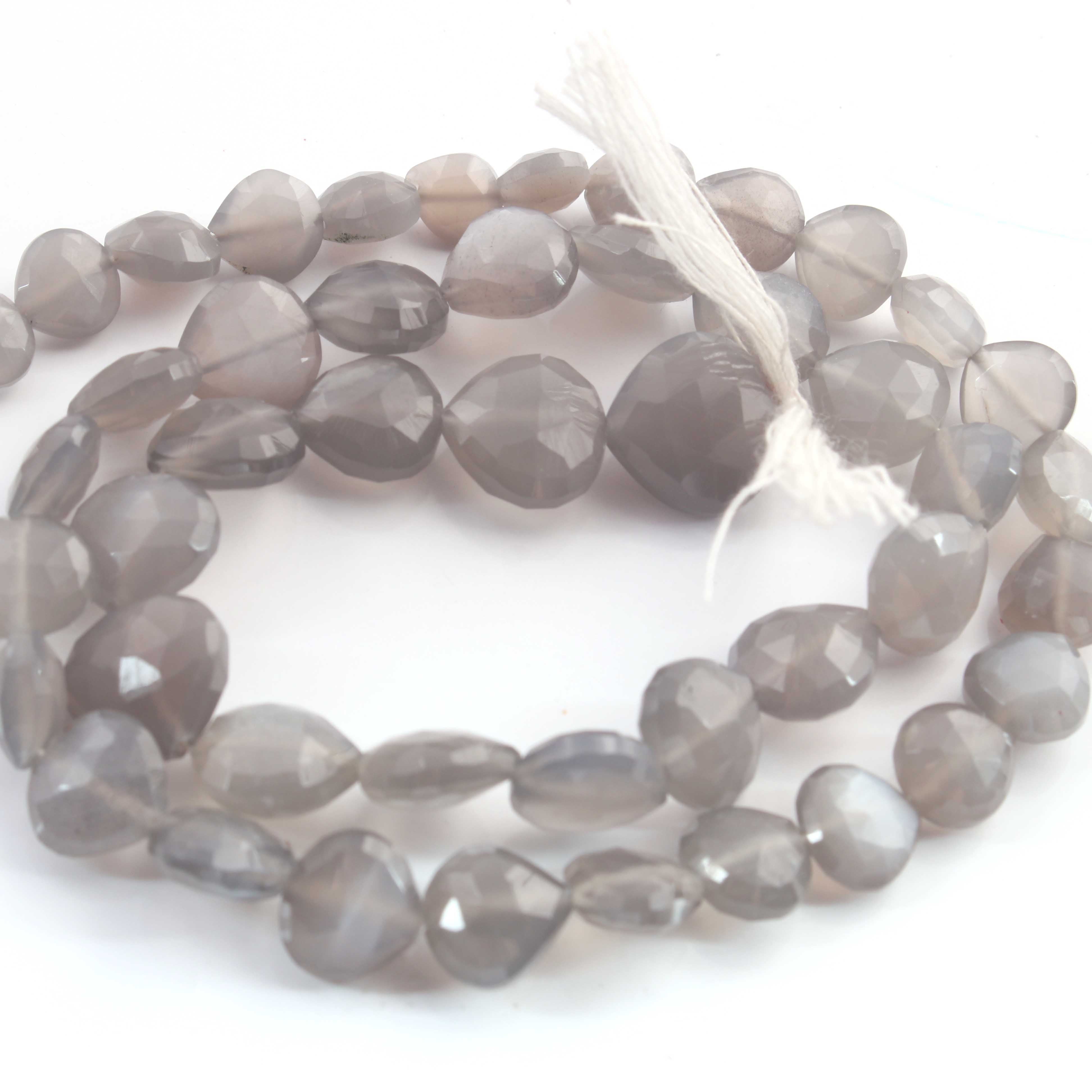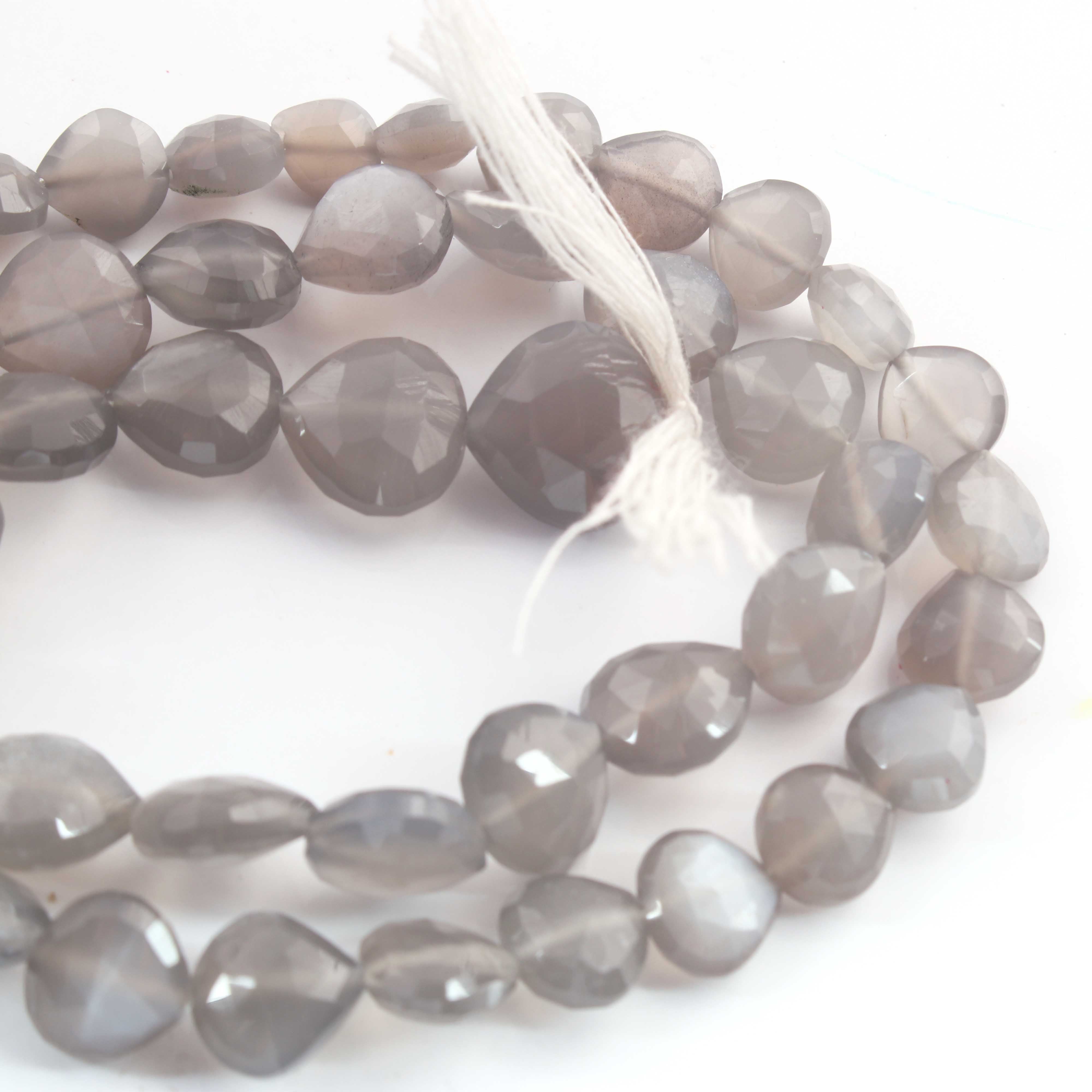 1 Strand Grey Moonstone Faceted Briolettes - Heart Shape Beads - 6mm-11mm- 14.5 Inches BR1035