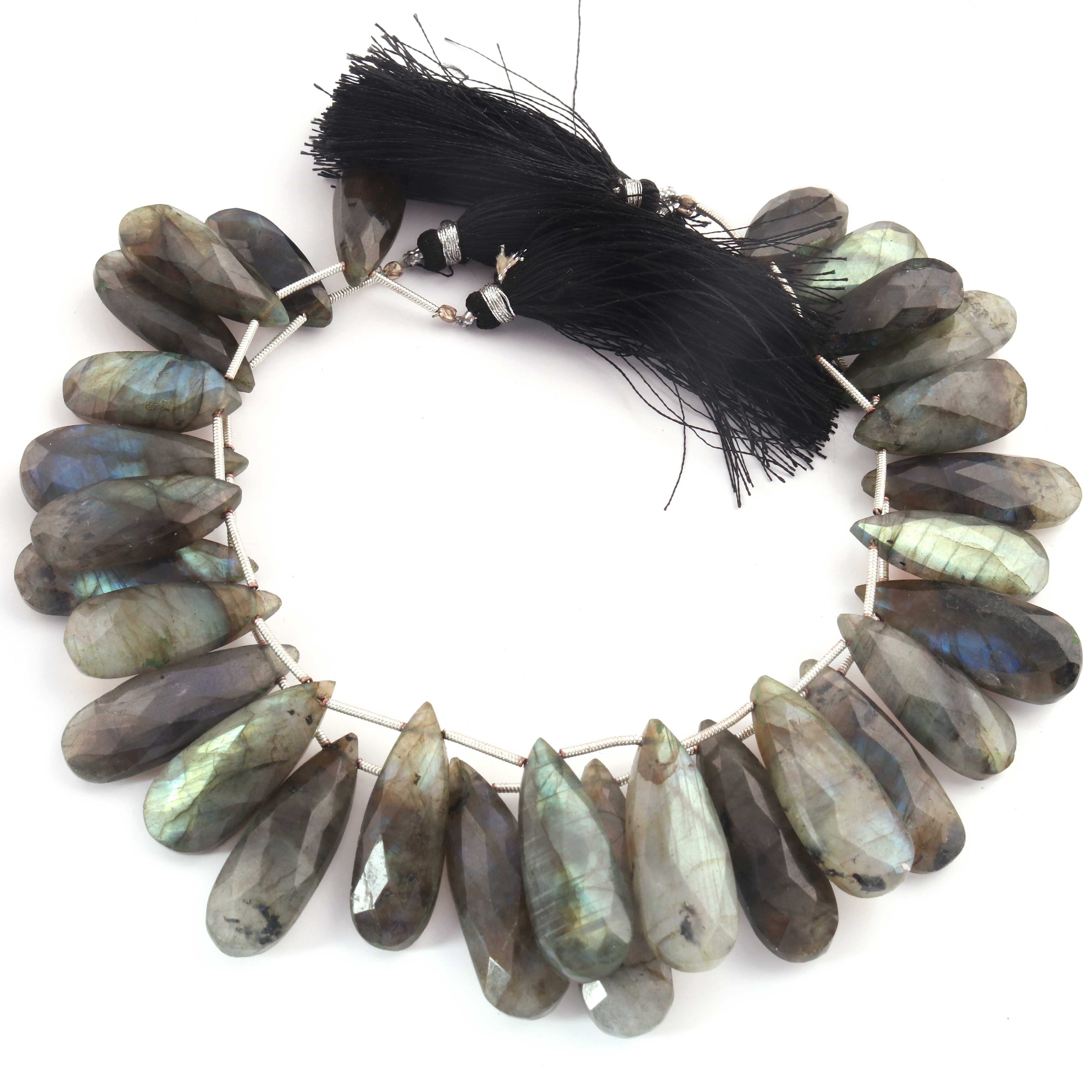 1 Strand Labradorite Faceted Briolettes - Pear Shape Briolettes - 19mmx9mm- 34mmx9mm-9 Inches- BR02302