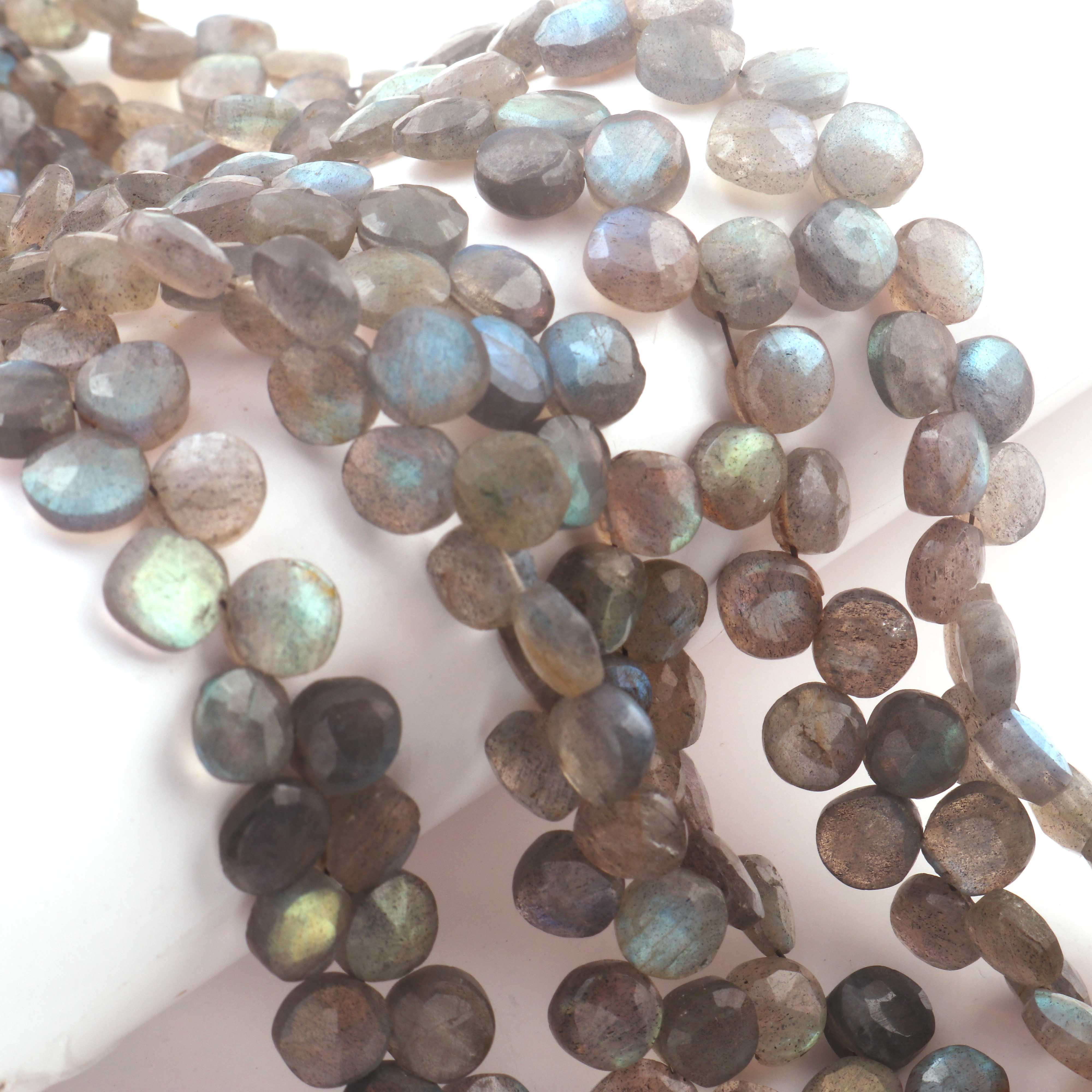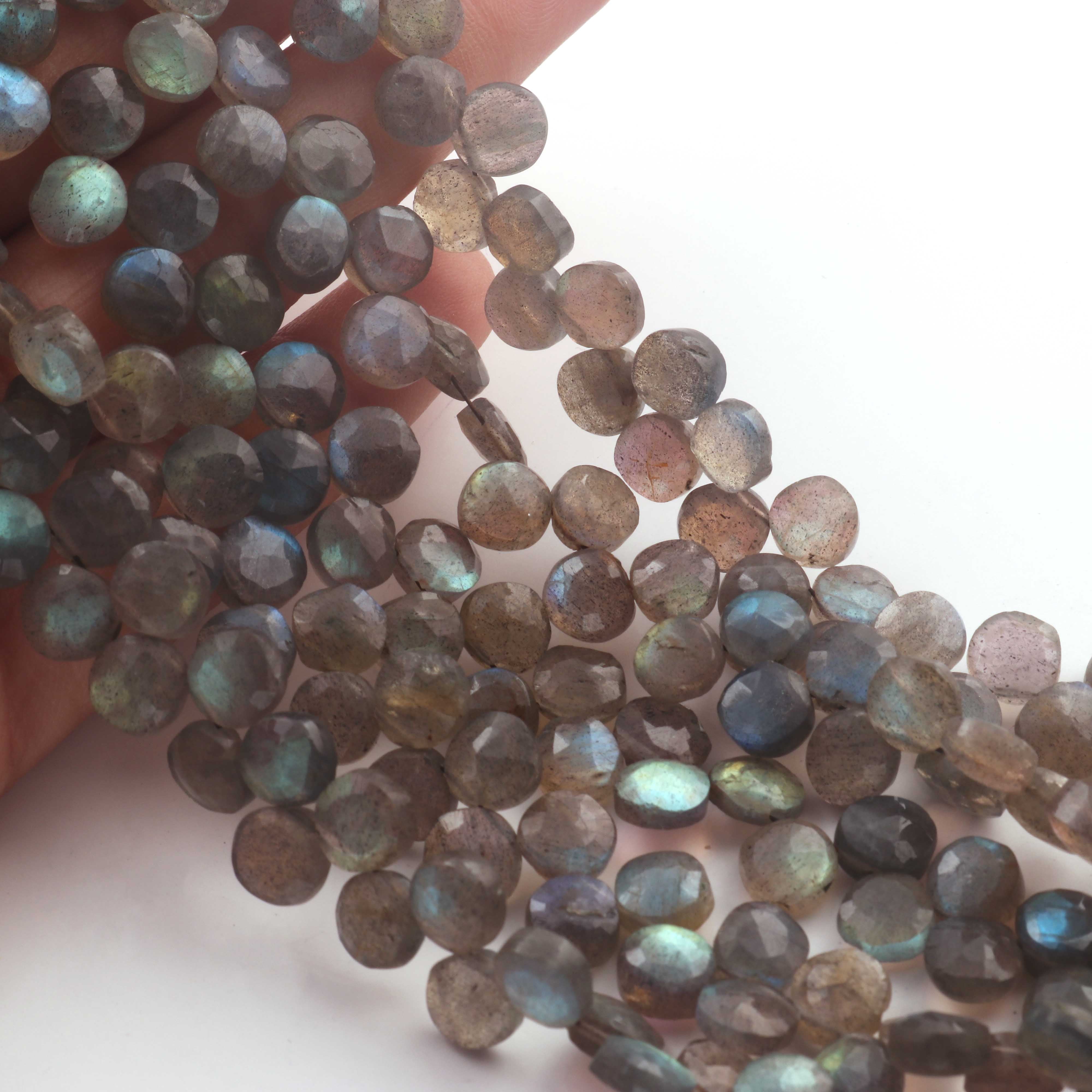 1 Strand Labradorite Faceted Briolettes -Semi Precious Gemstone Coin Shape Briolettes 7mm -10 Inches BR03275