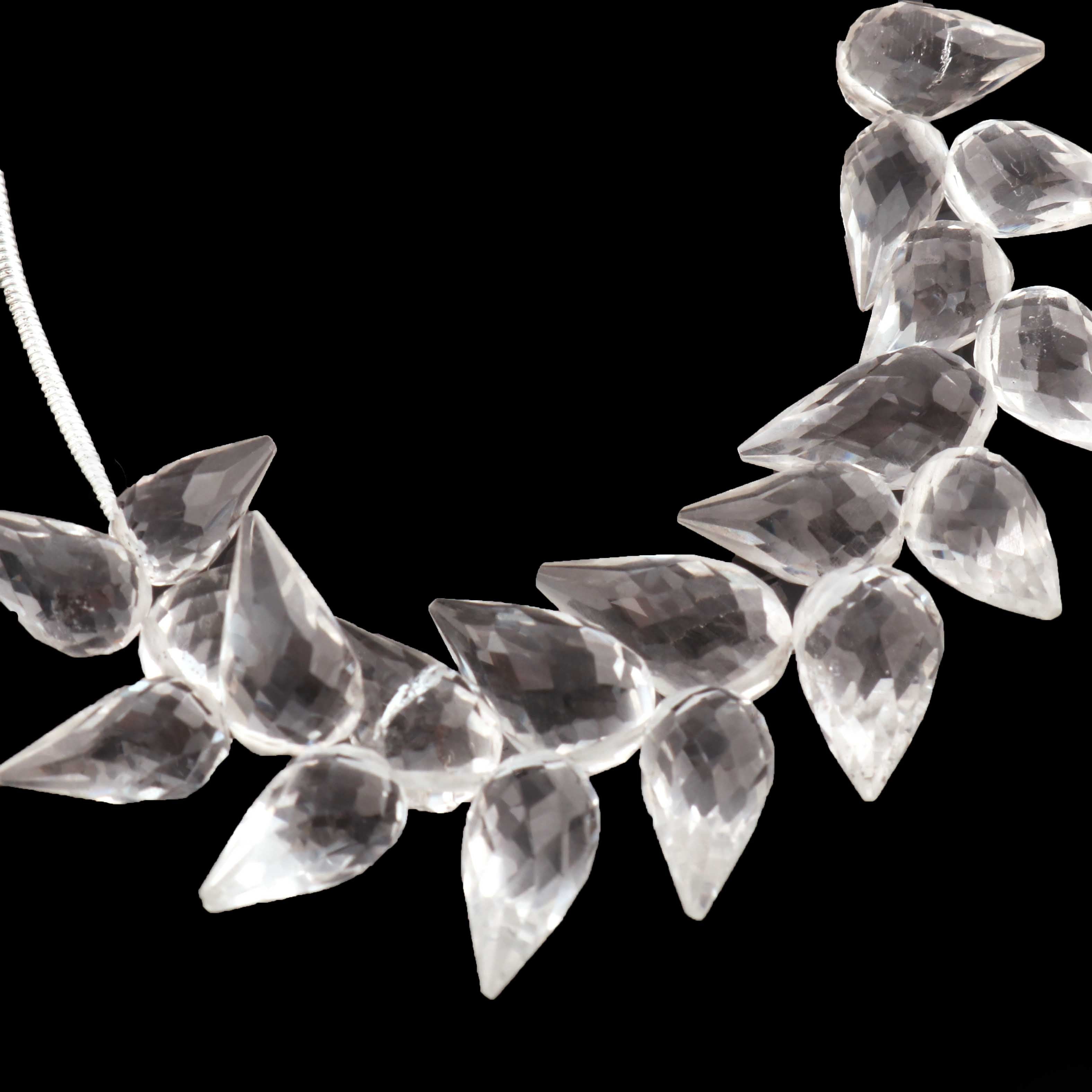 1 Strand Natural Crystal Quartz Faceted Tear Drop Briolettes - Semi Precious Gemstone Water Drop- Beautiful Jewelry Making Briolettes Beads - 8mmx5mm-11mmx5mm - 5 Inches - BR3521