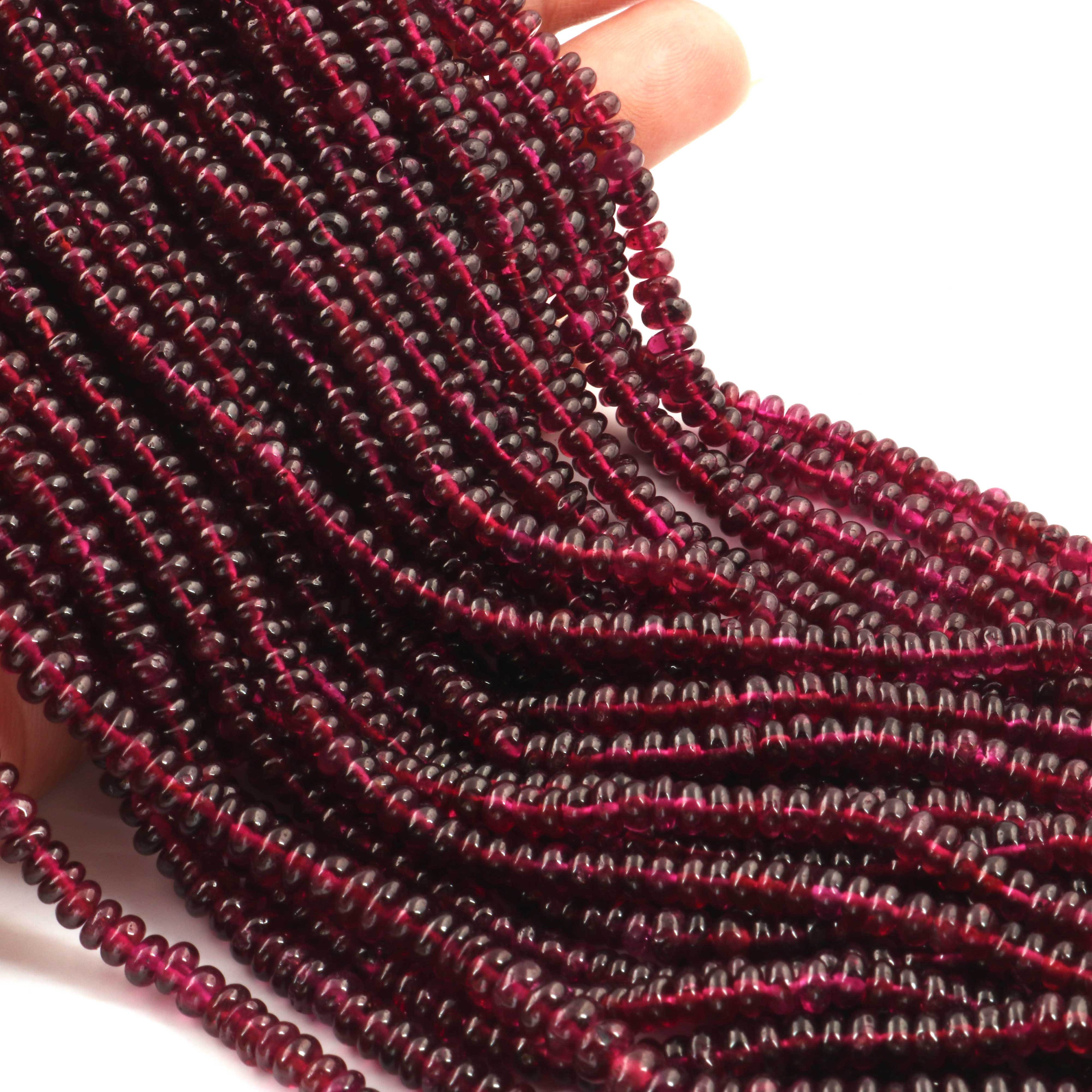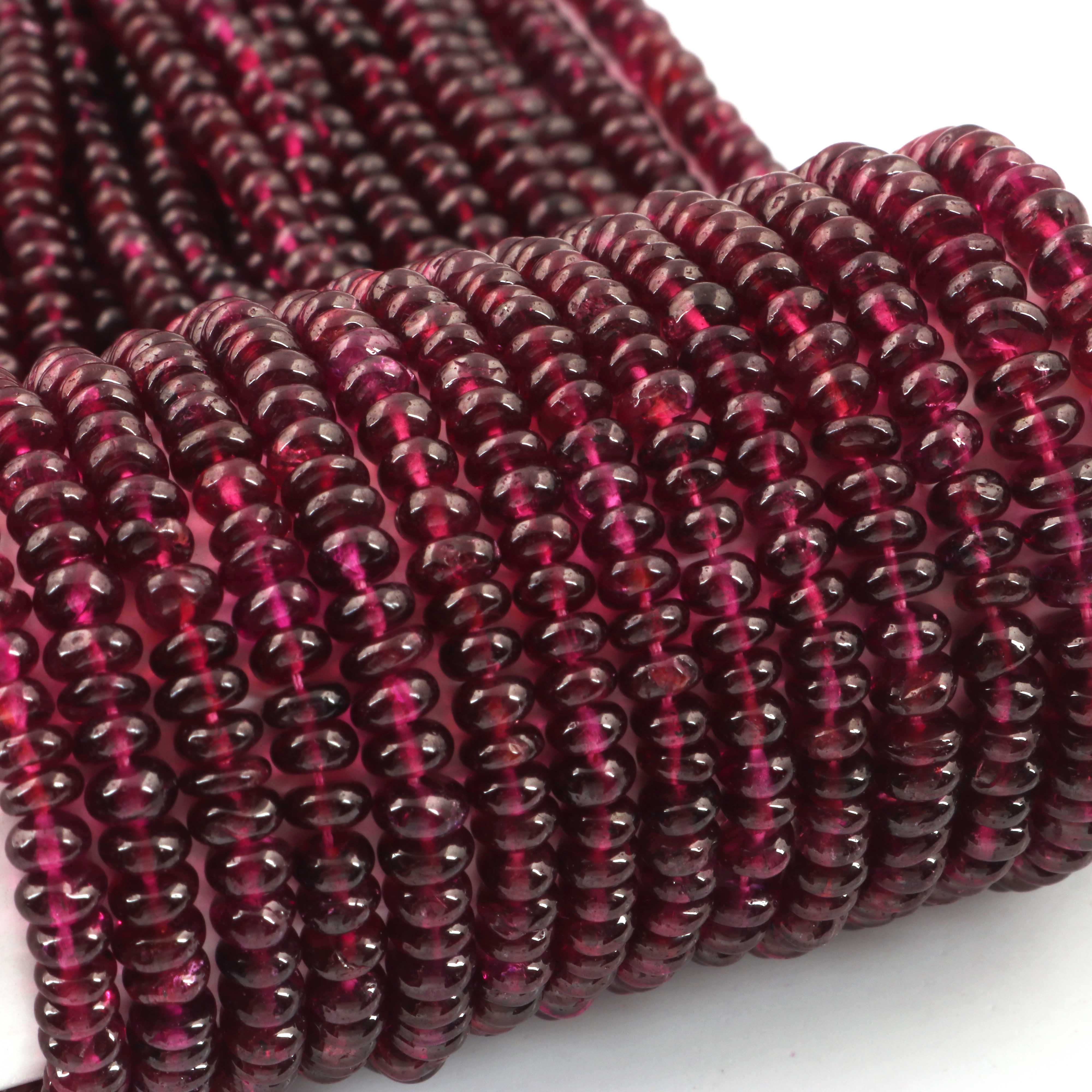 1 Strand Natural Rhodolite Garnet Smooth Rondelles Gemstone Beads- -3mm -4mm 16 Inches BR03872