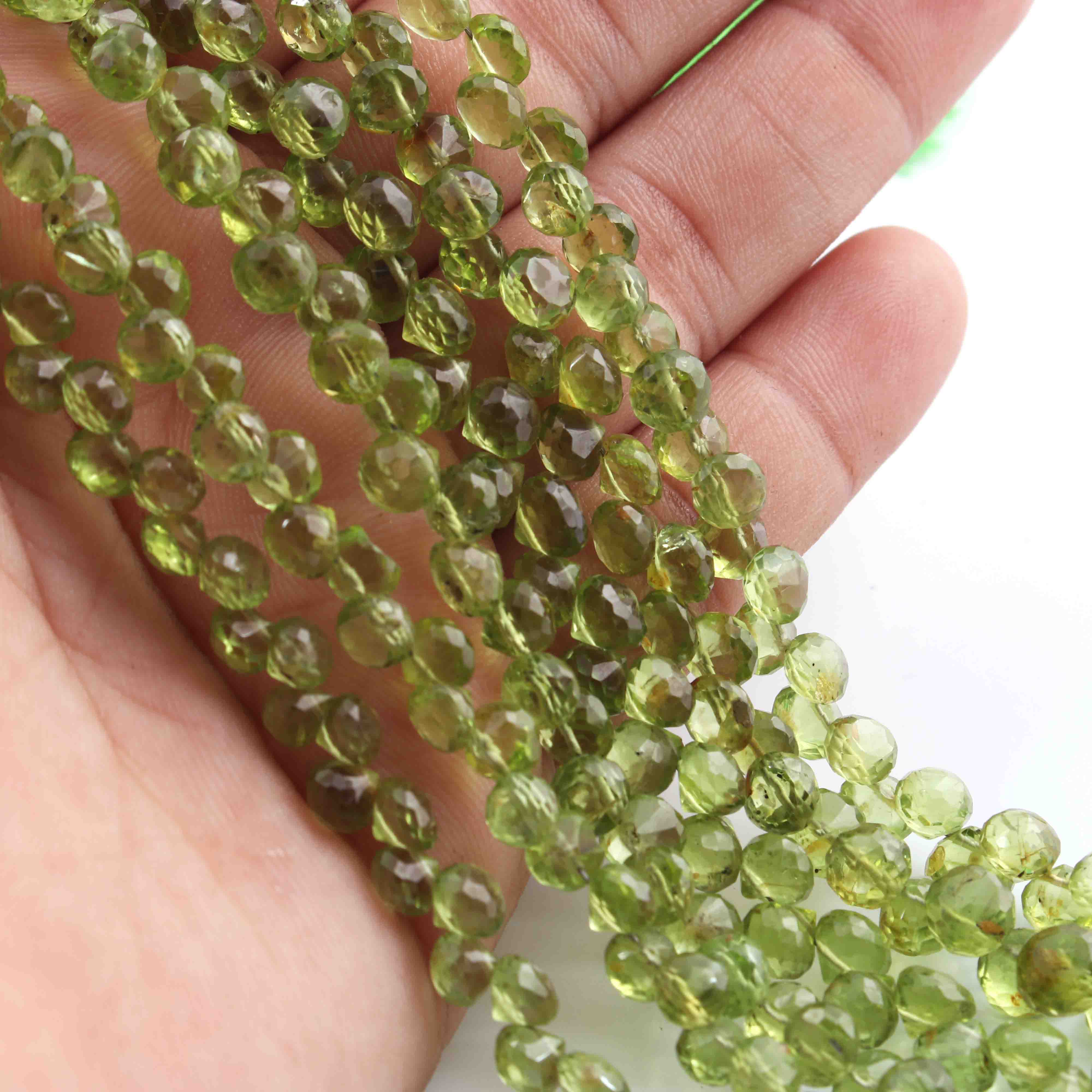 1 Strand Peridot Faceted Briolettes - Onion Shape Beads Briolettes 5mmx4mm-8mmx5mm - 8 Inches BR01907