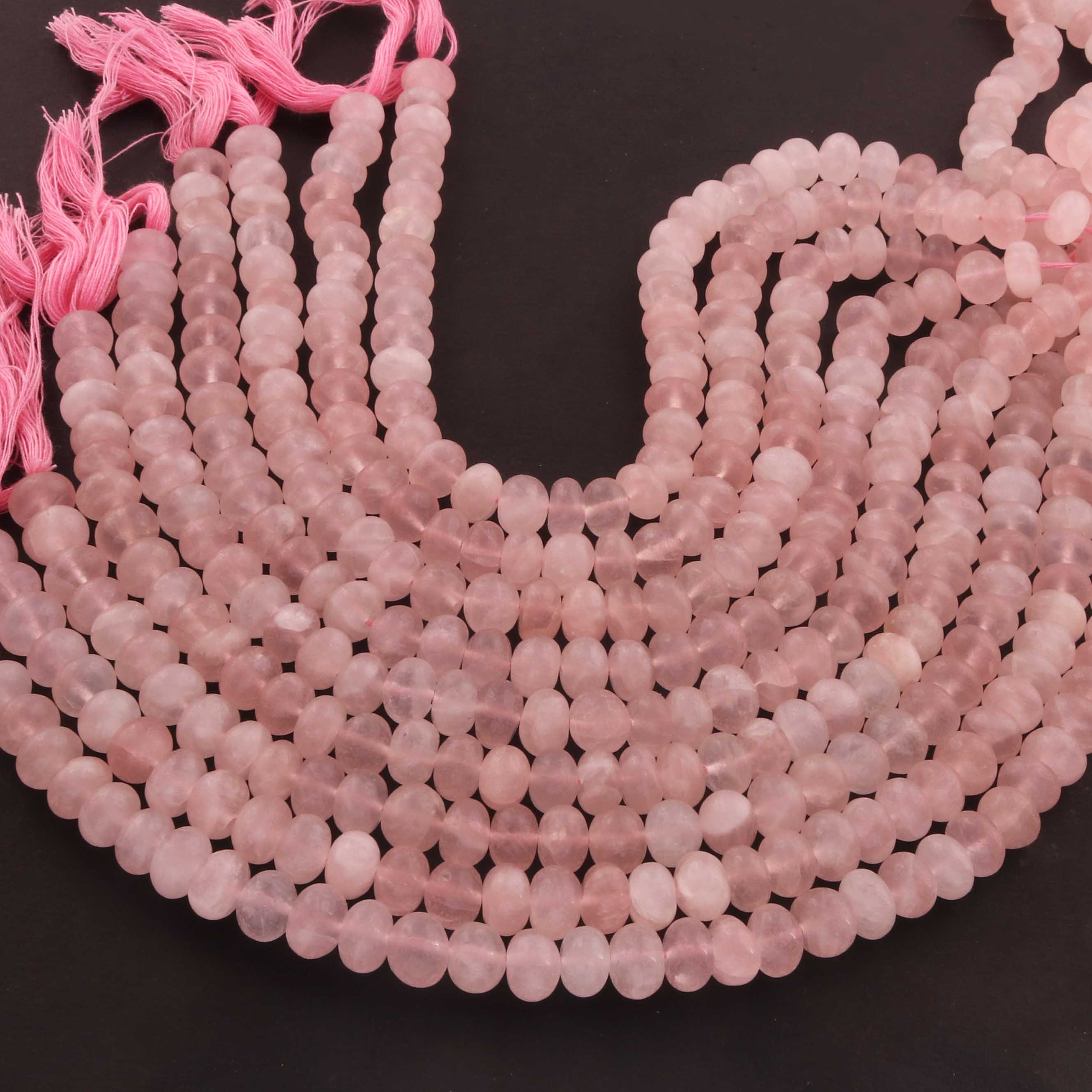 1 Strand Rose Quartz Smooth Rondelles - Gemstone Roundelles 8mm-9mm 9 Inches BR03401