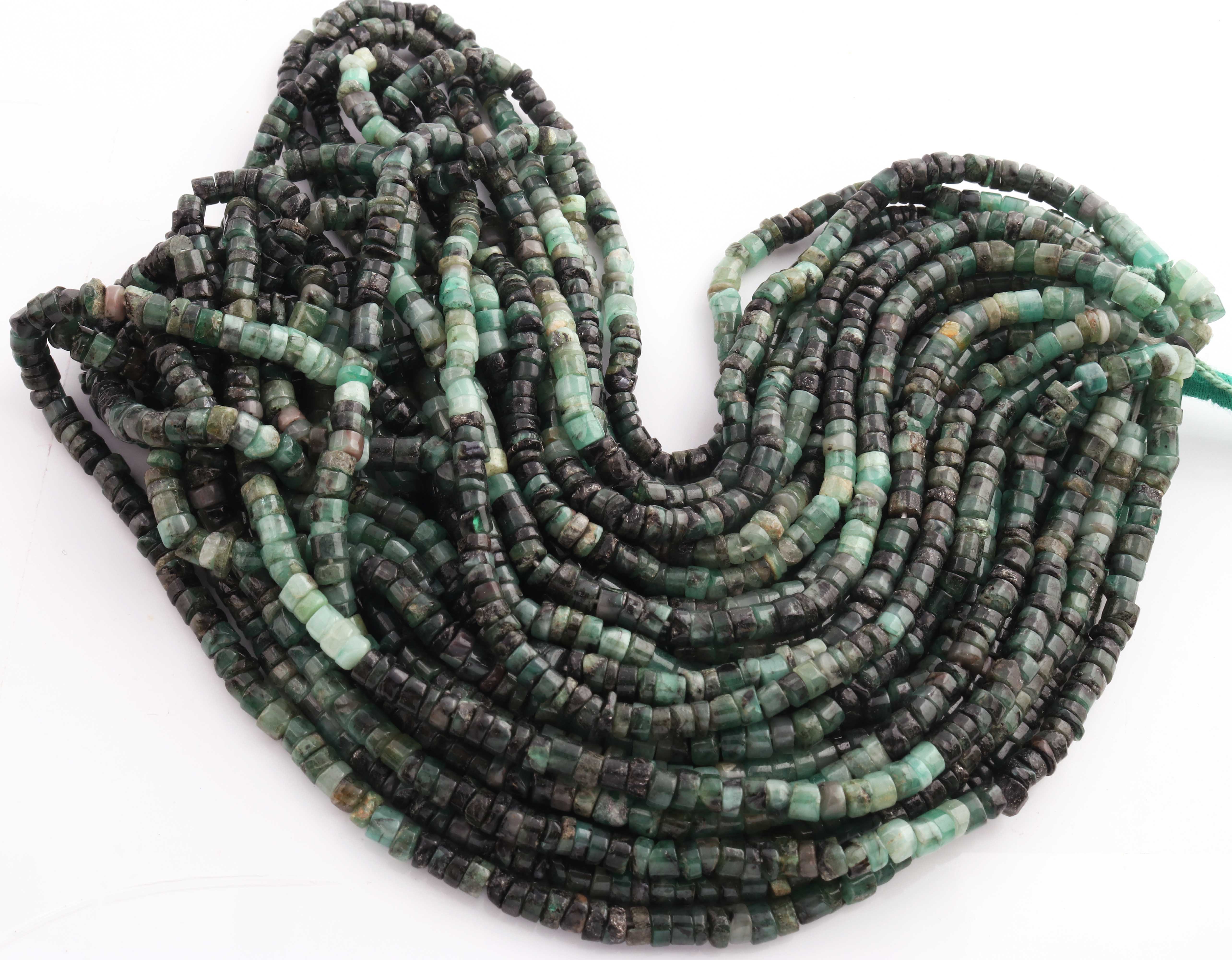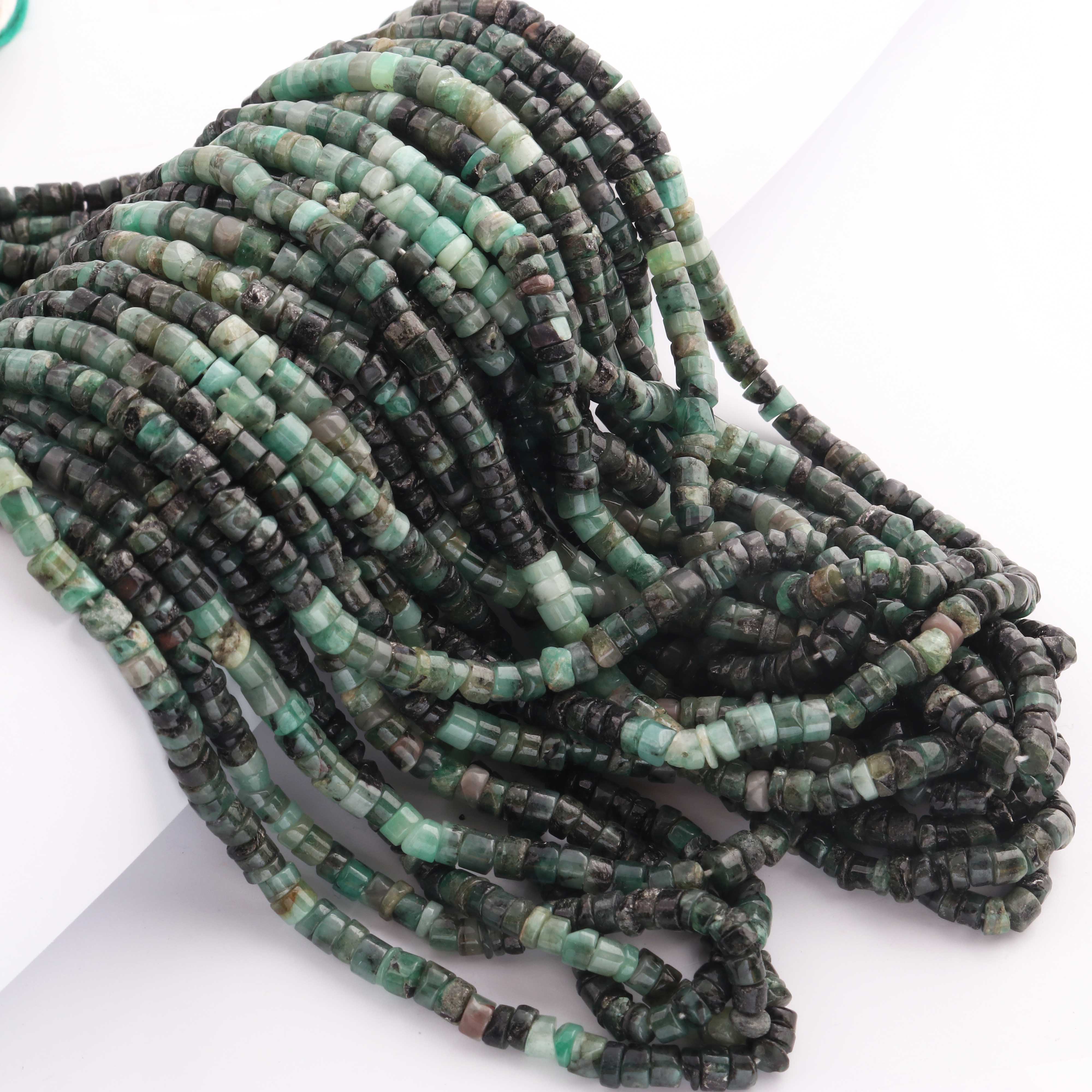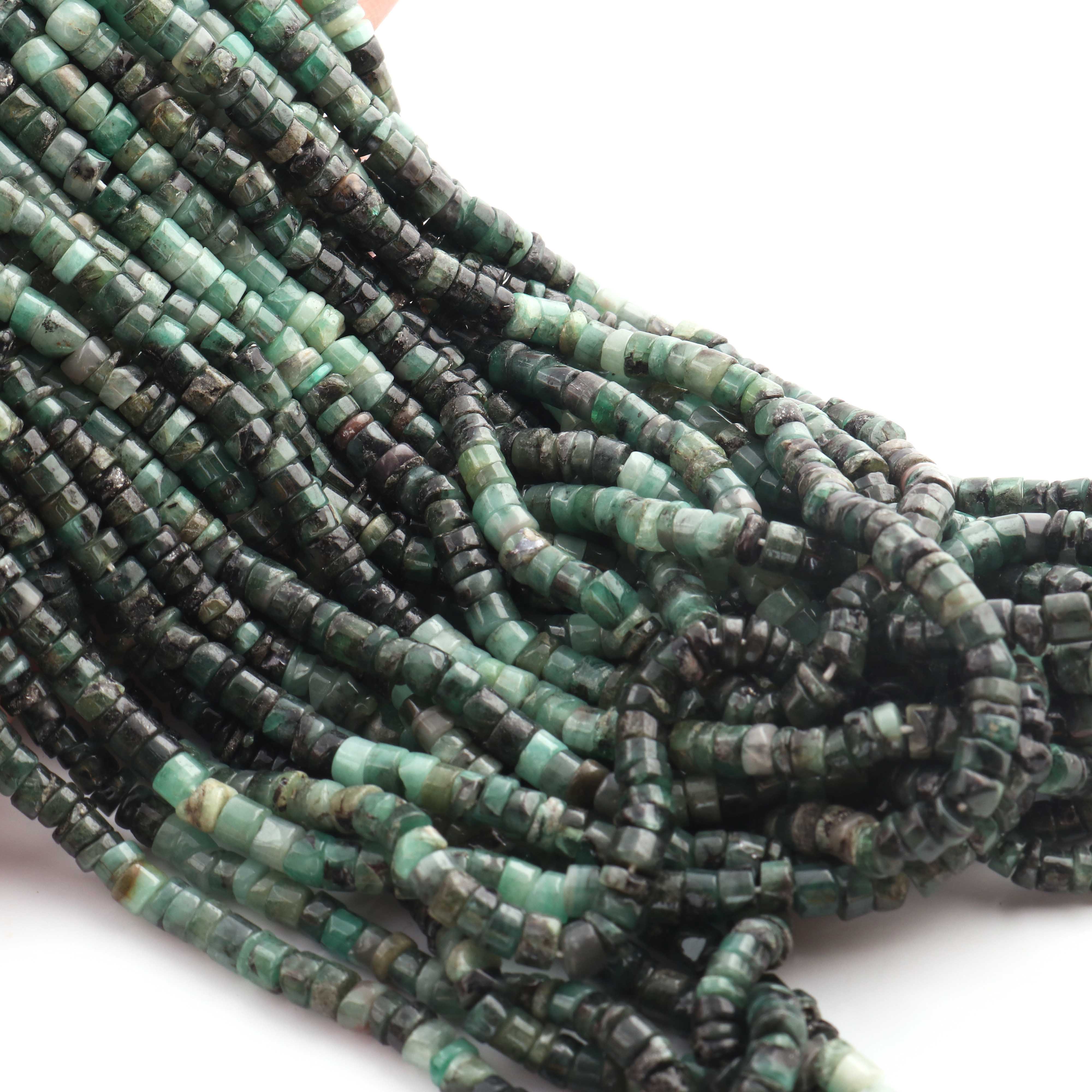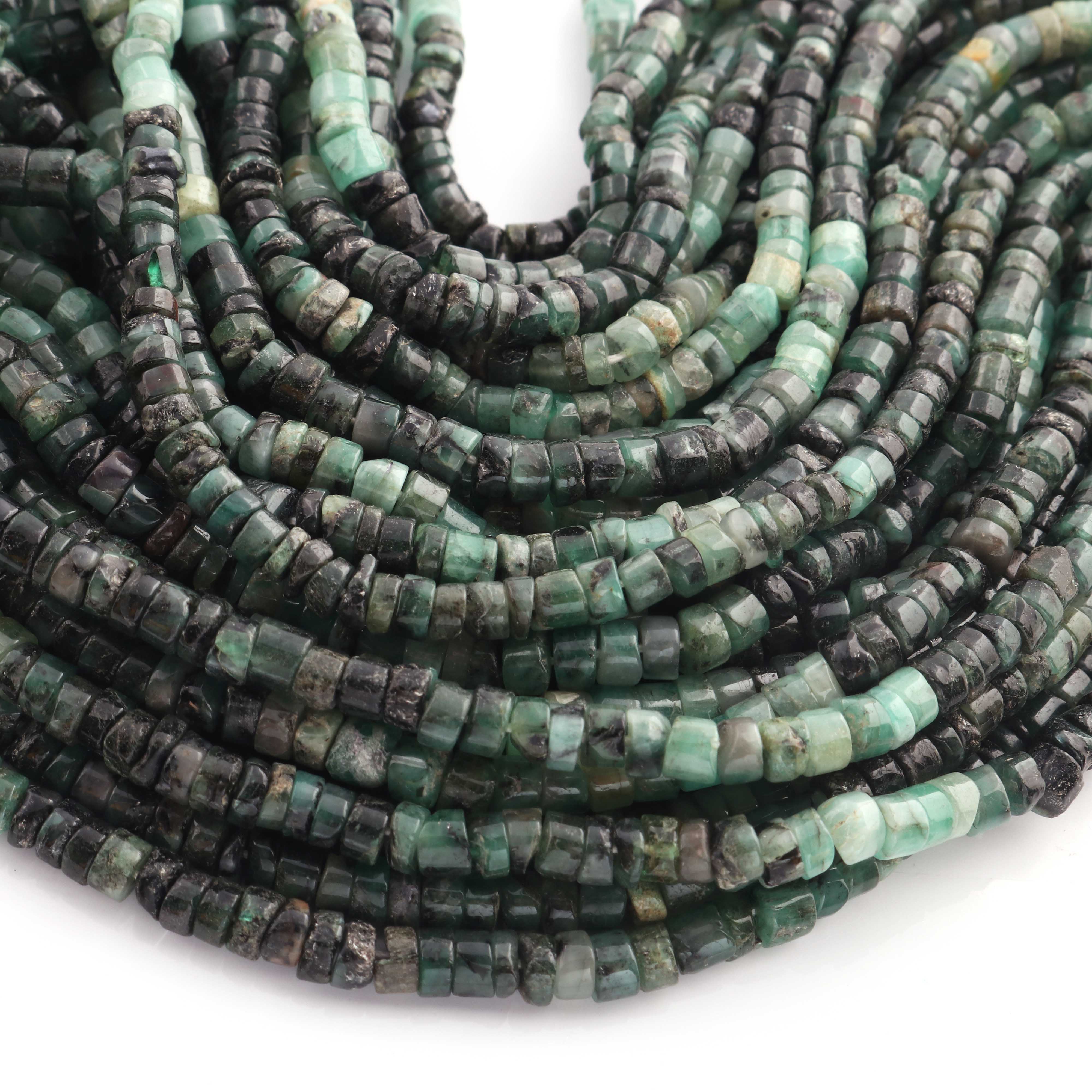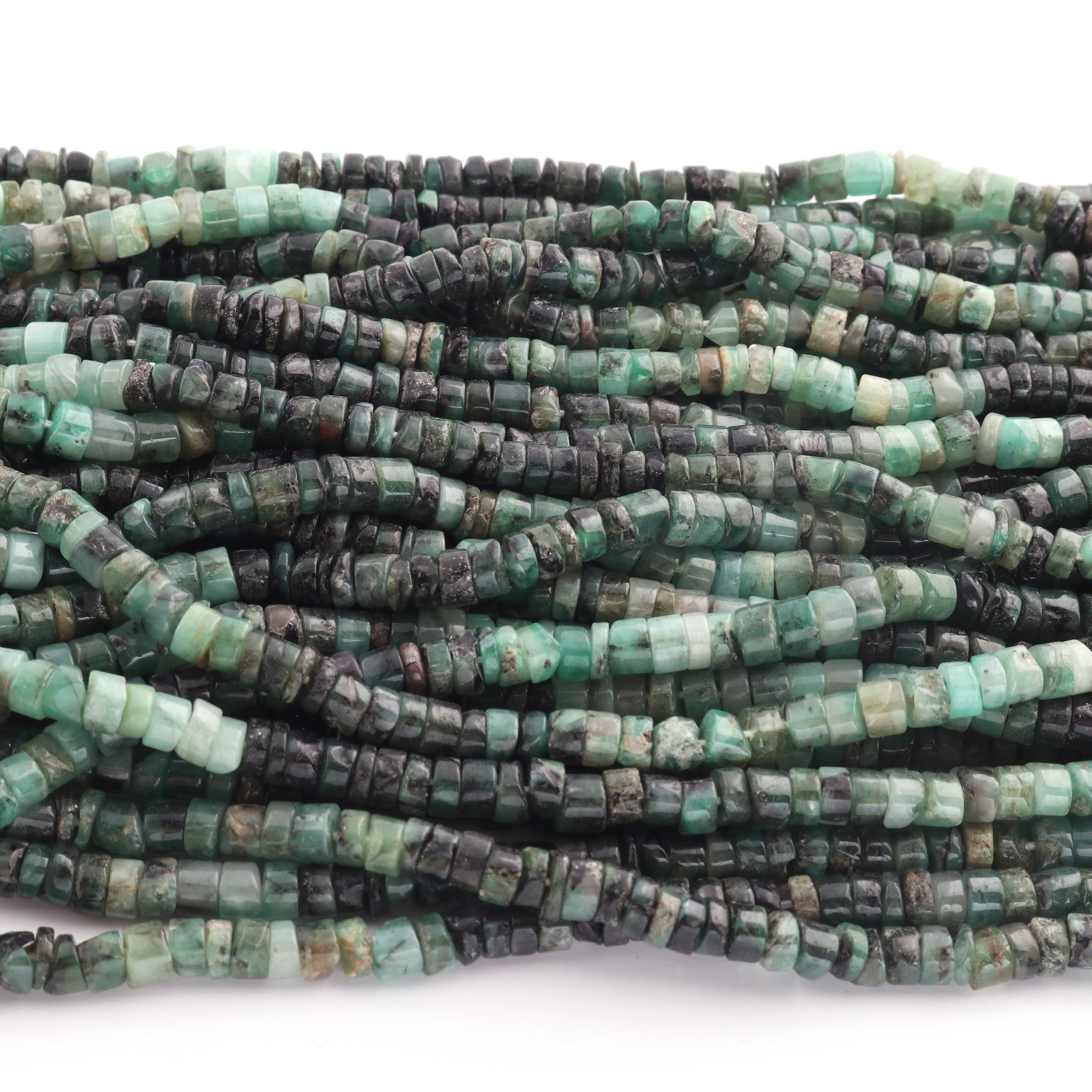 1 Strand Shaded Emerald Smooth Heishi Wheel Briolettes - Semi Precious Gemstone Tyre shape Briolettes -4mm- 16 Inches BR02127