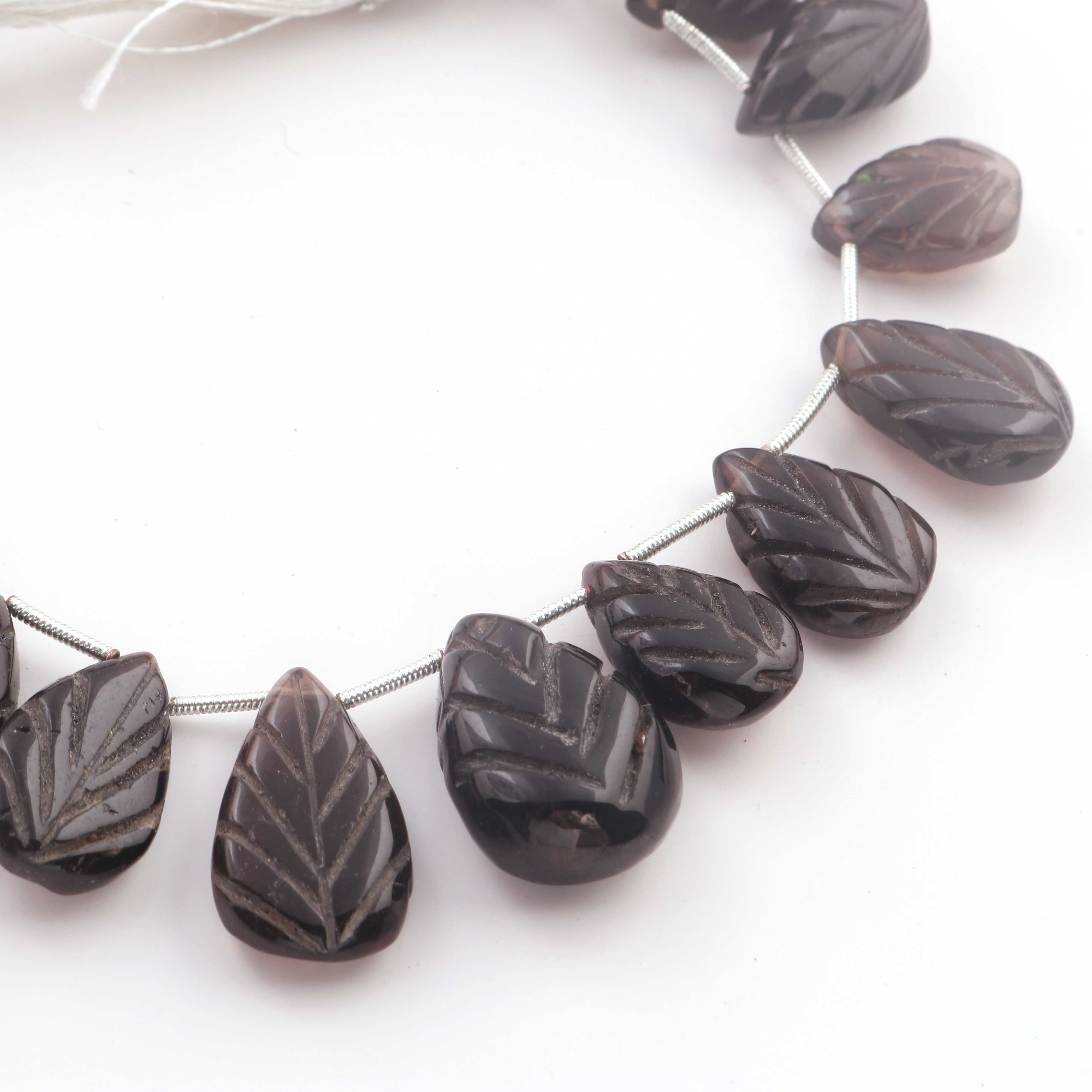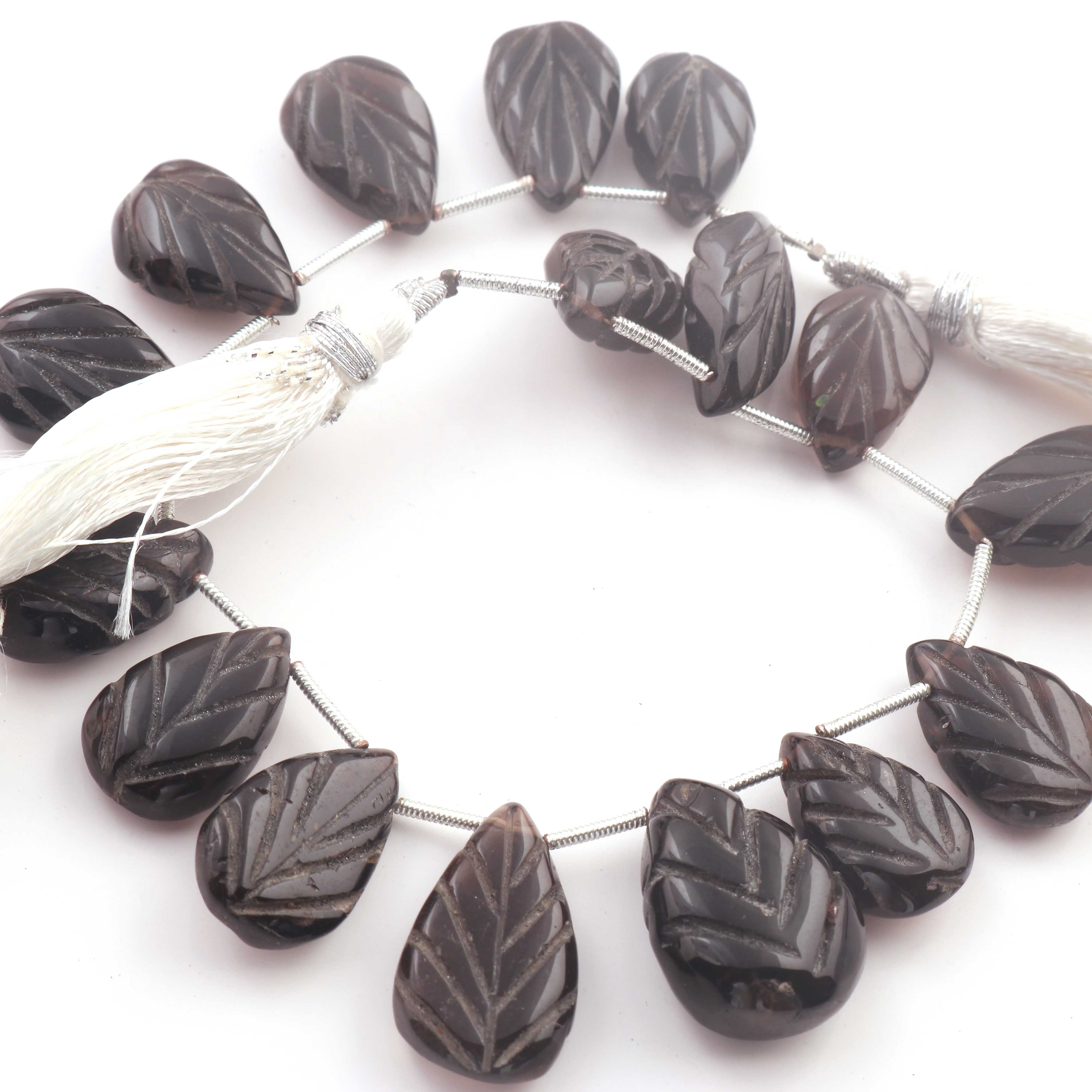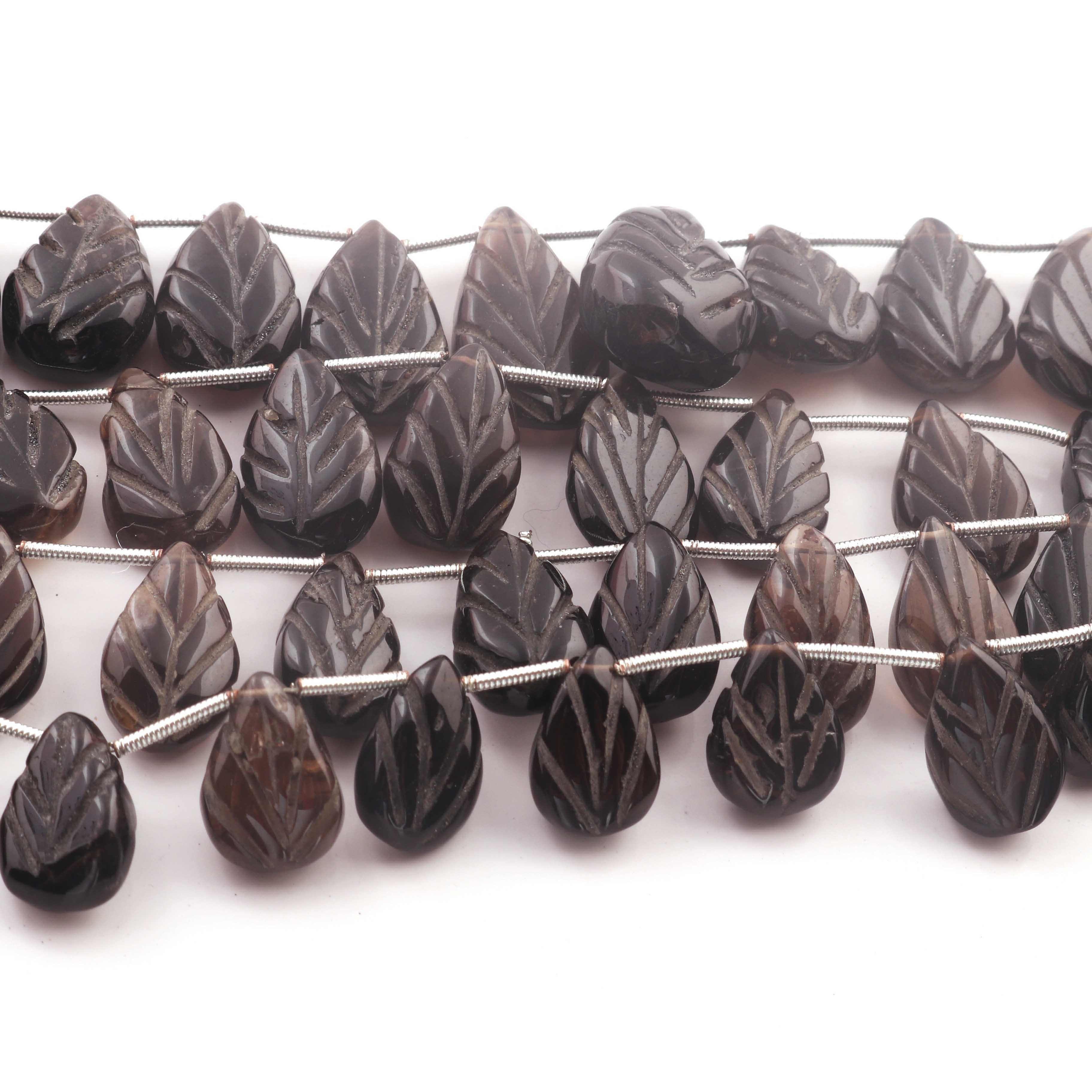 1 Strand Smoky Quartz Carving Pear Shape Faceted Briolettes - Semi Precious Gemstone Smoky Quartz Beads - 16mmx12mm-26mmx18mm -8 Inches BR03257