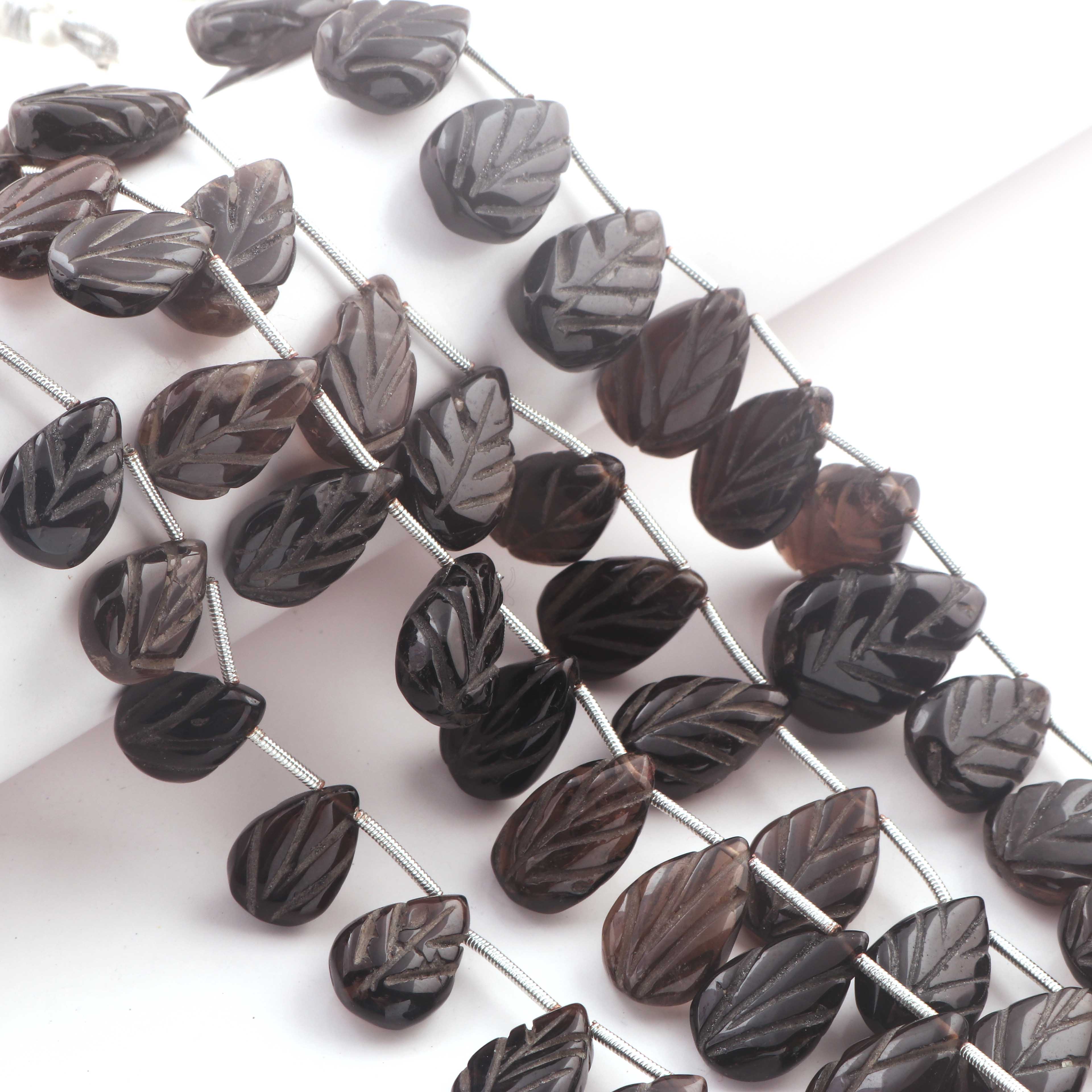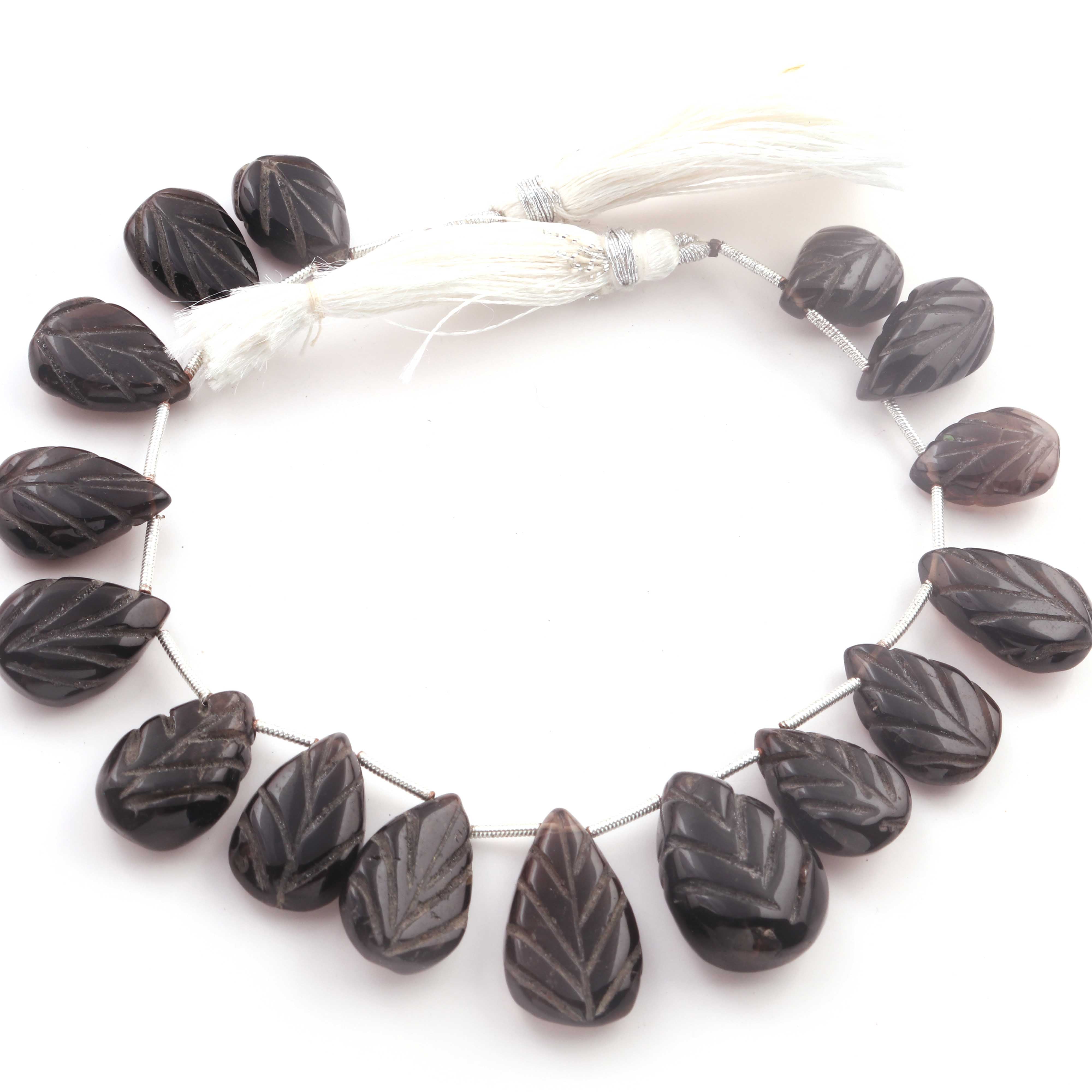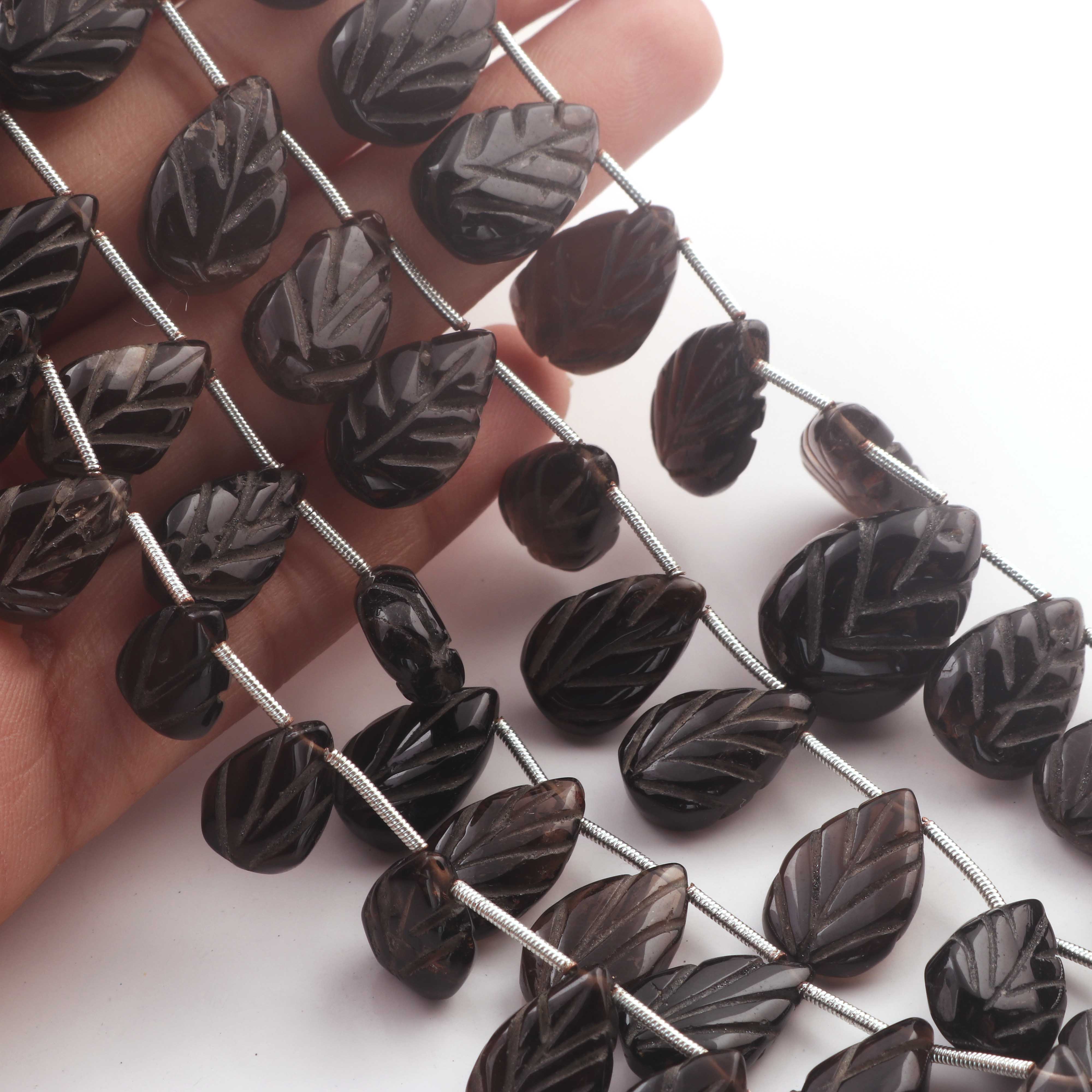 1 Strand Smoky Quartz Carving Pear Shape Faceted Briolettes - Semi Precious Gemstone Smoky Quartz Beads - 16mmx12mm-26mmx18mm -8 Inches BR03257