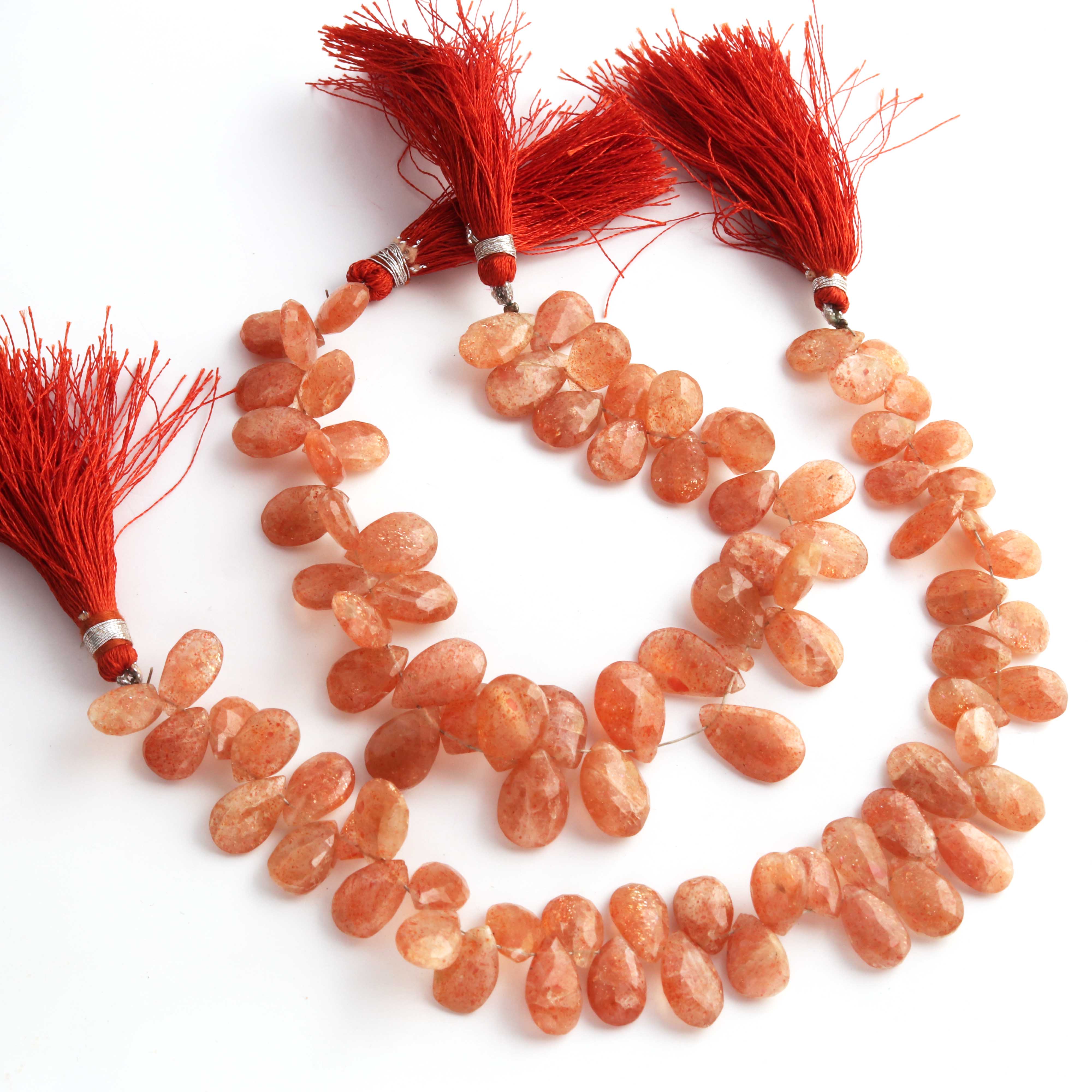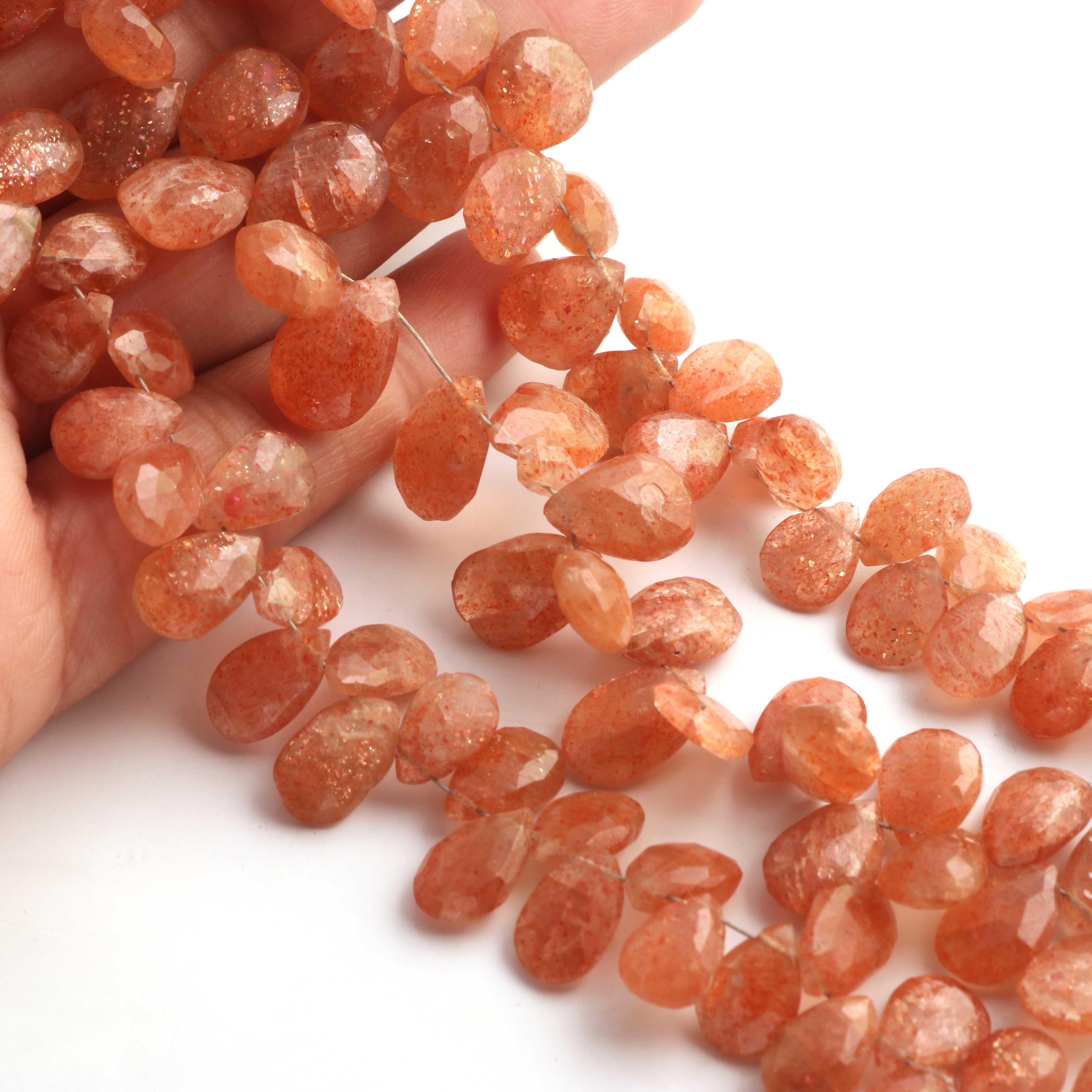 1 Strand Sunstone Gemstone Faceted Pear Briolettes 9mmx7mm-15mmx10mm 8 Inches BR01113
