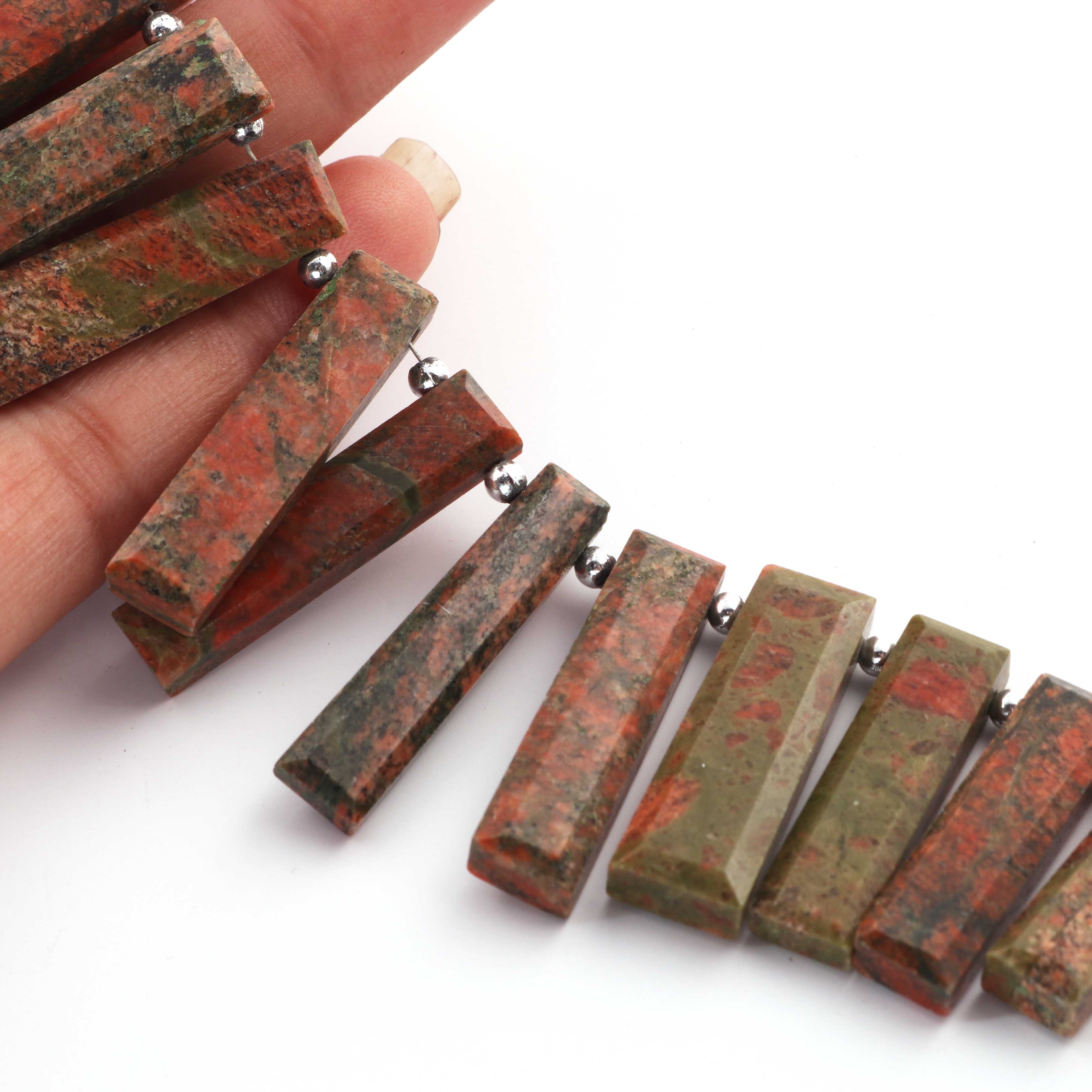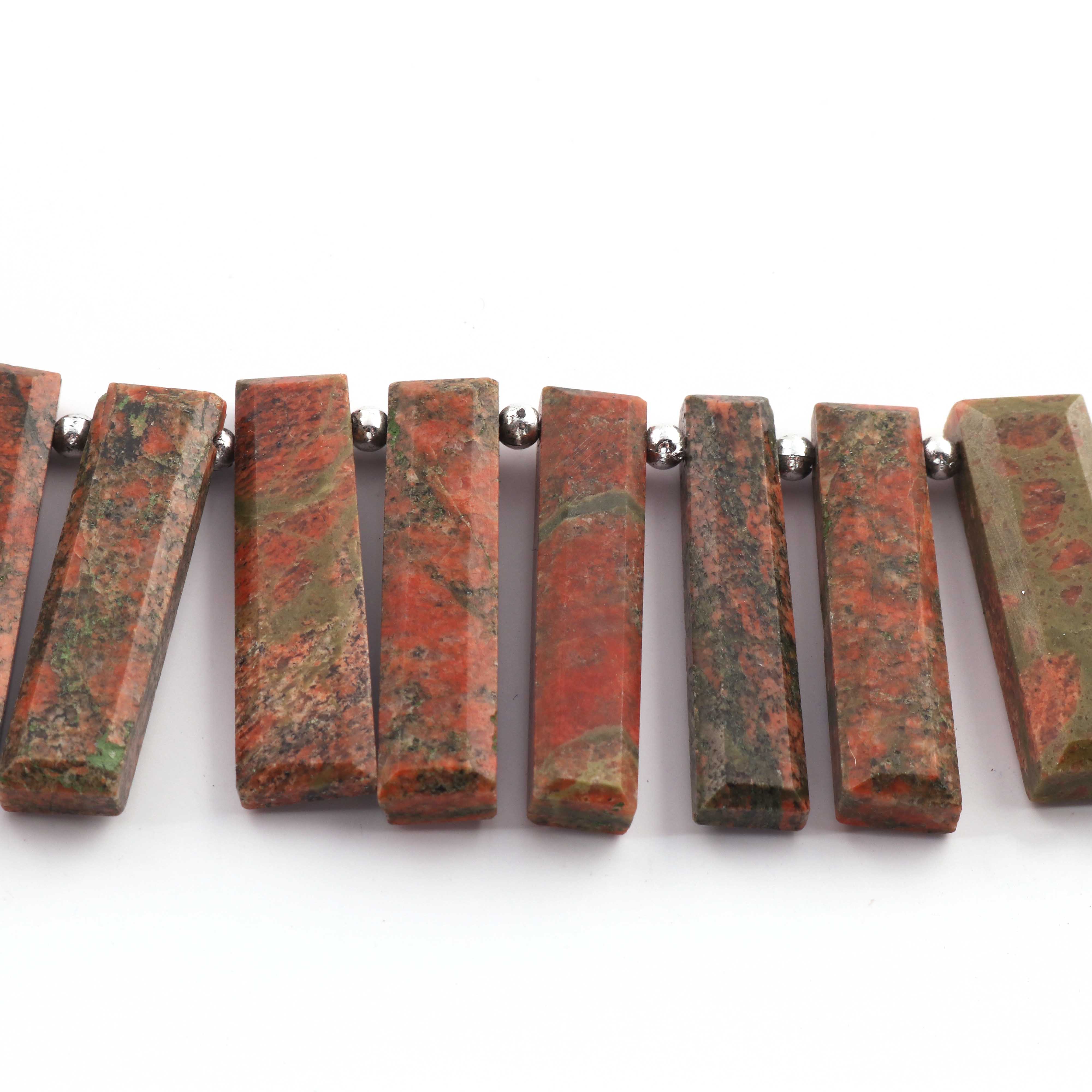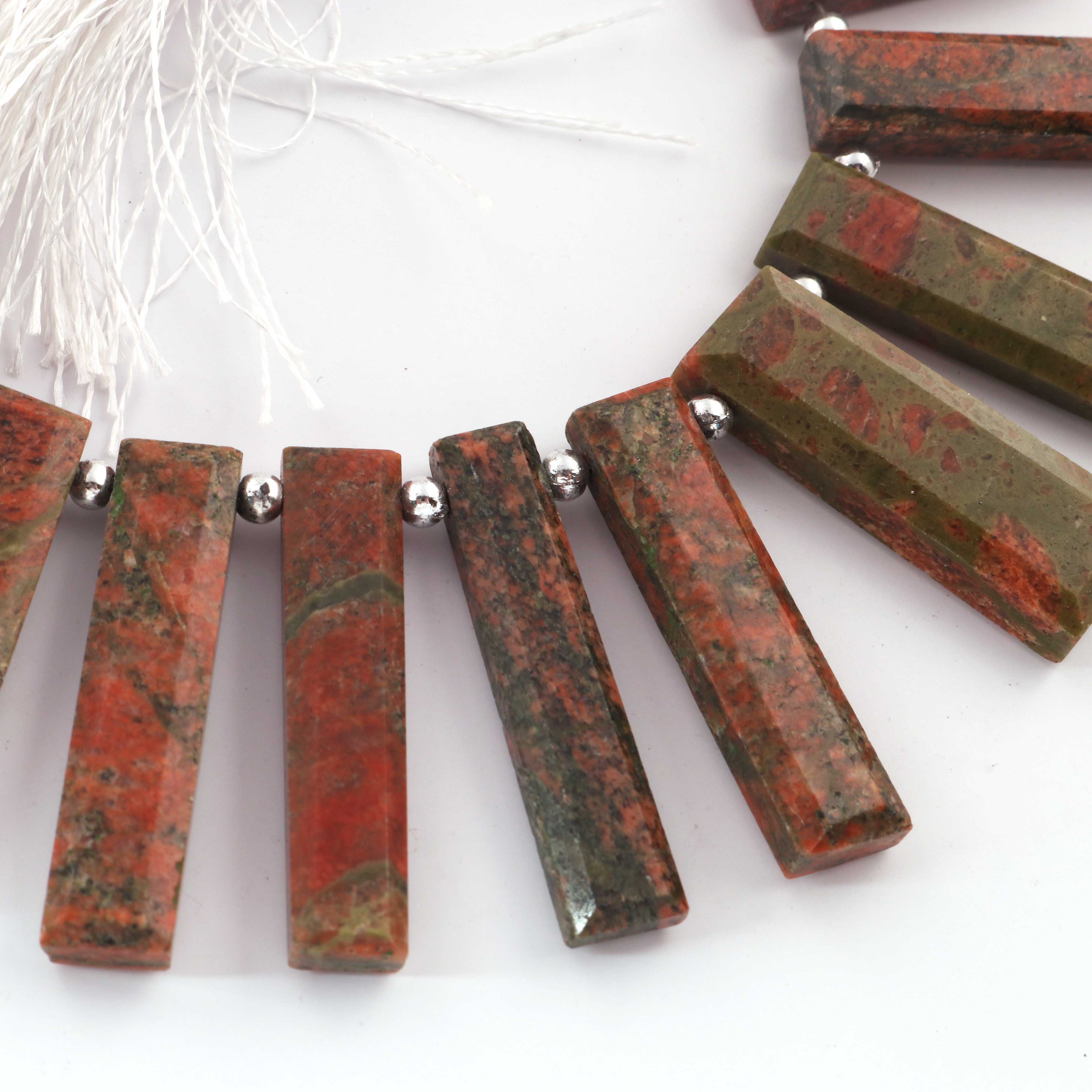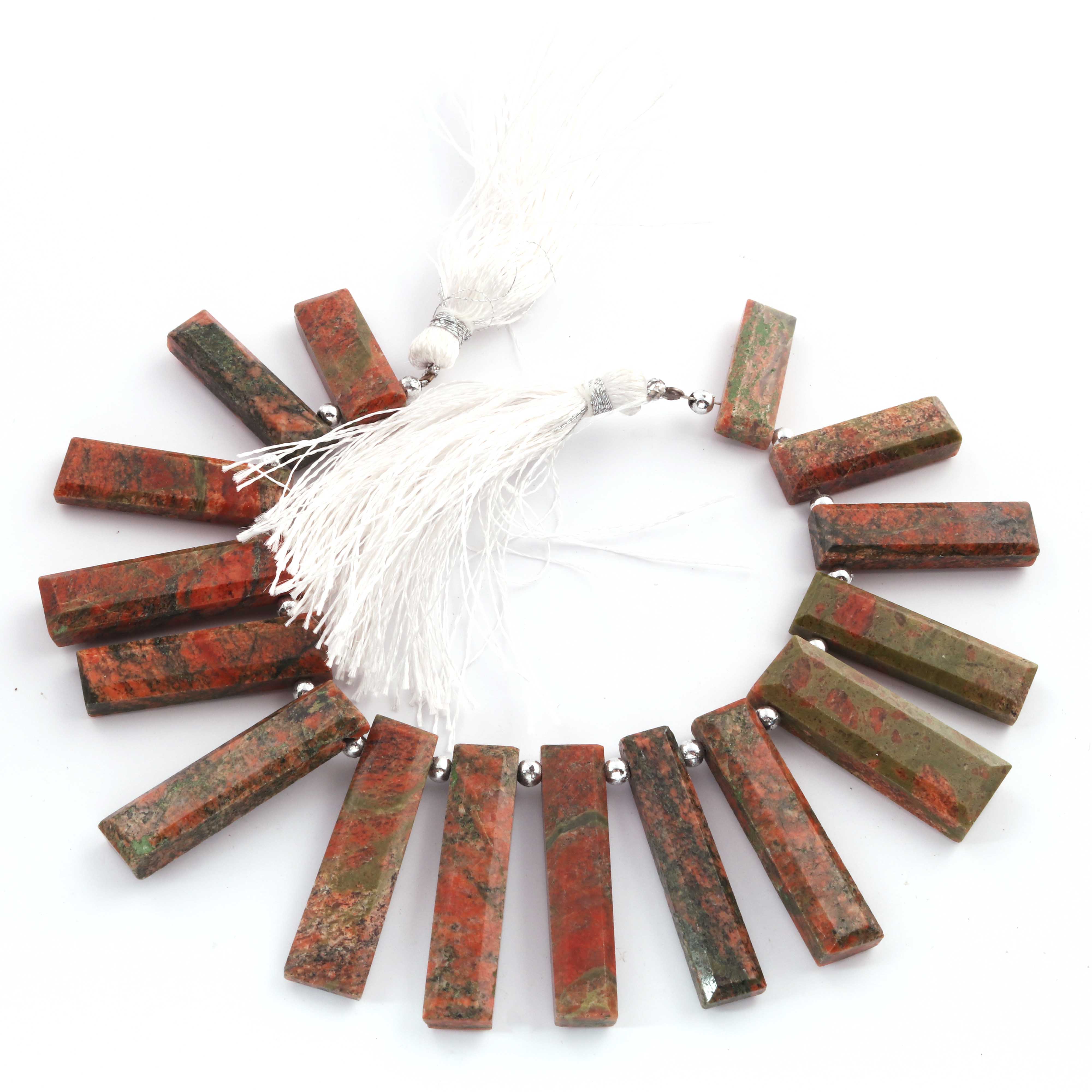 1 Strand Unakite Faceted Rectangle Shape Briolettes - 19mmx8mm-32mmx7mm -6.5 Inches BR514