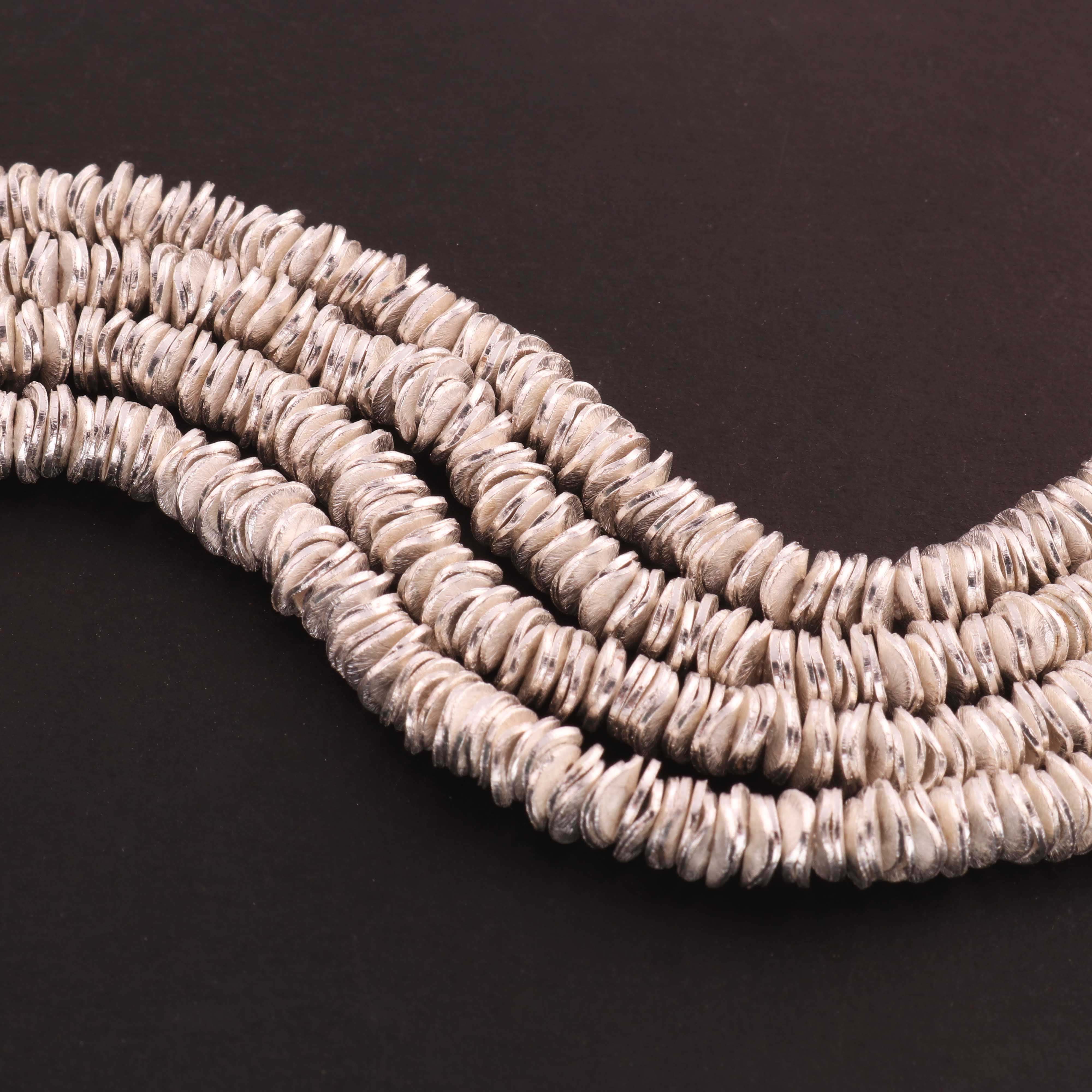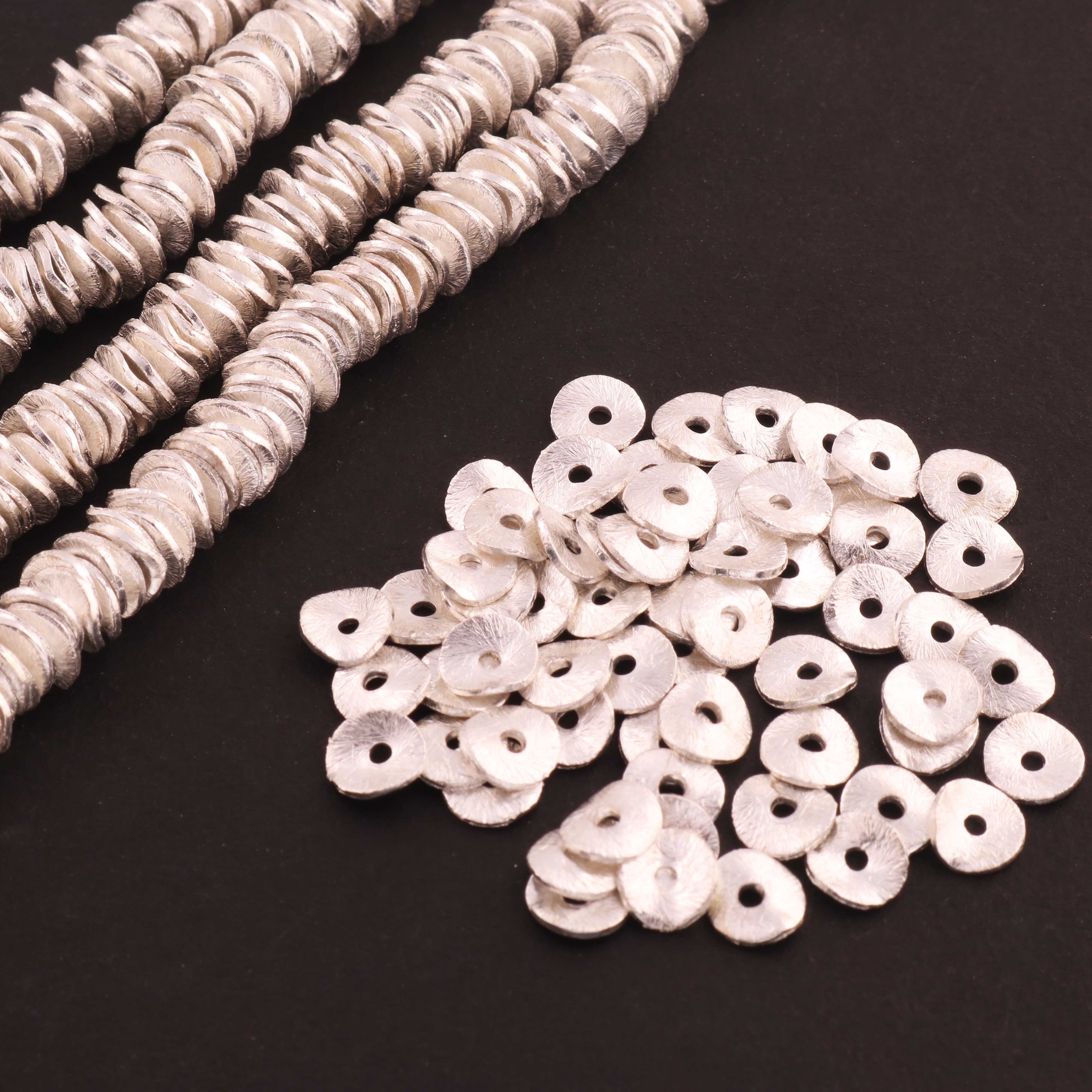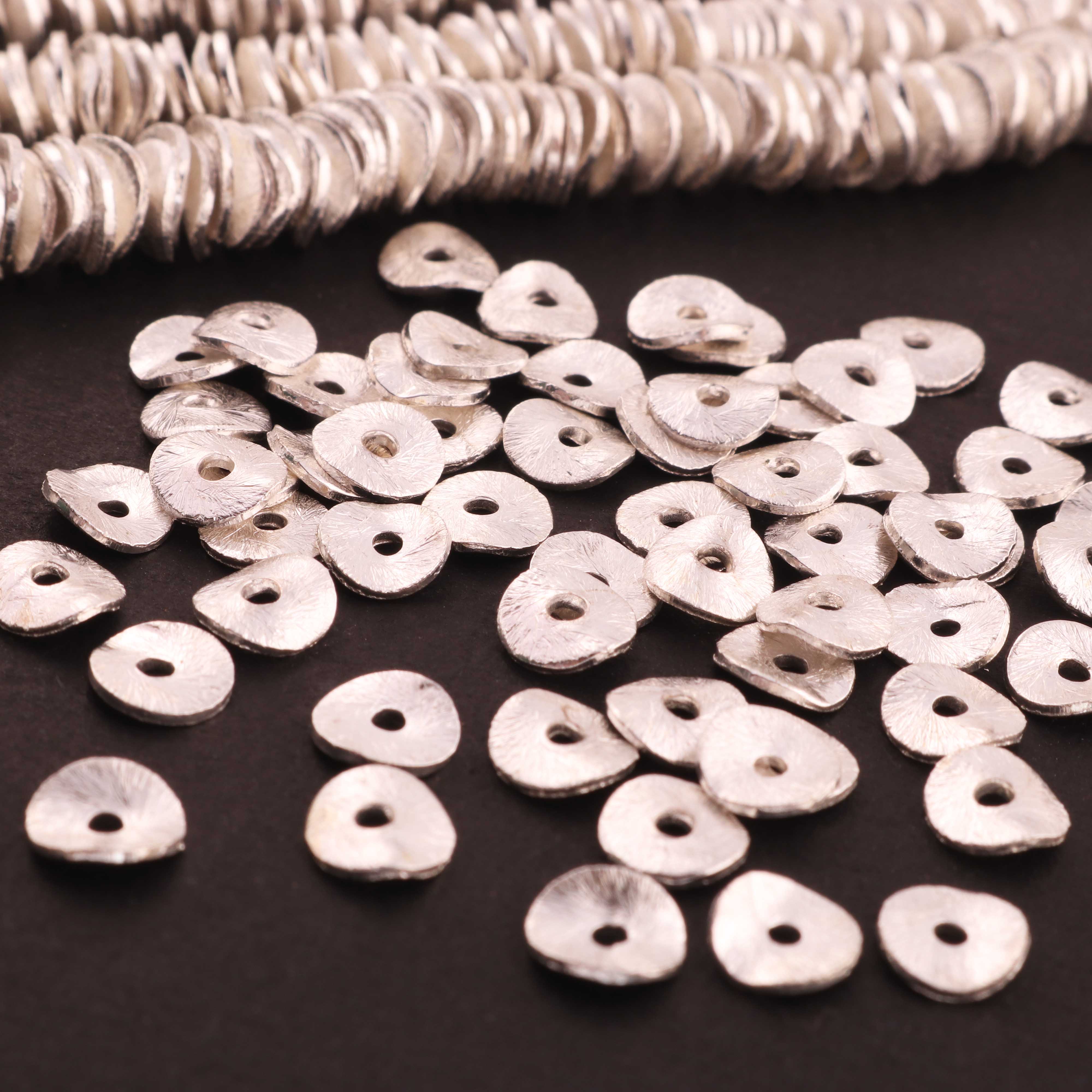 1 Strand Wavy Disc Beads 925 Silver Plated On Copper -Potato Chips, Folding Disk, Curved Disc Beads- 6mm- 8 inch Strand GPC368