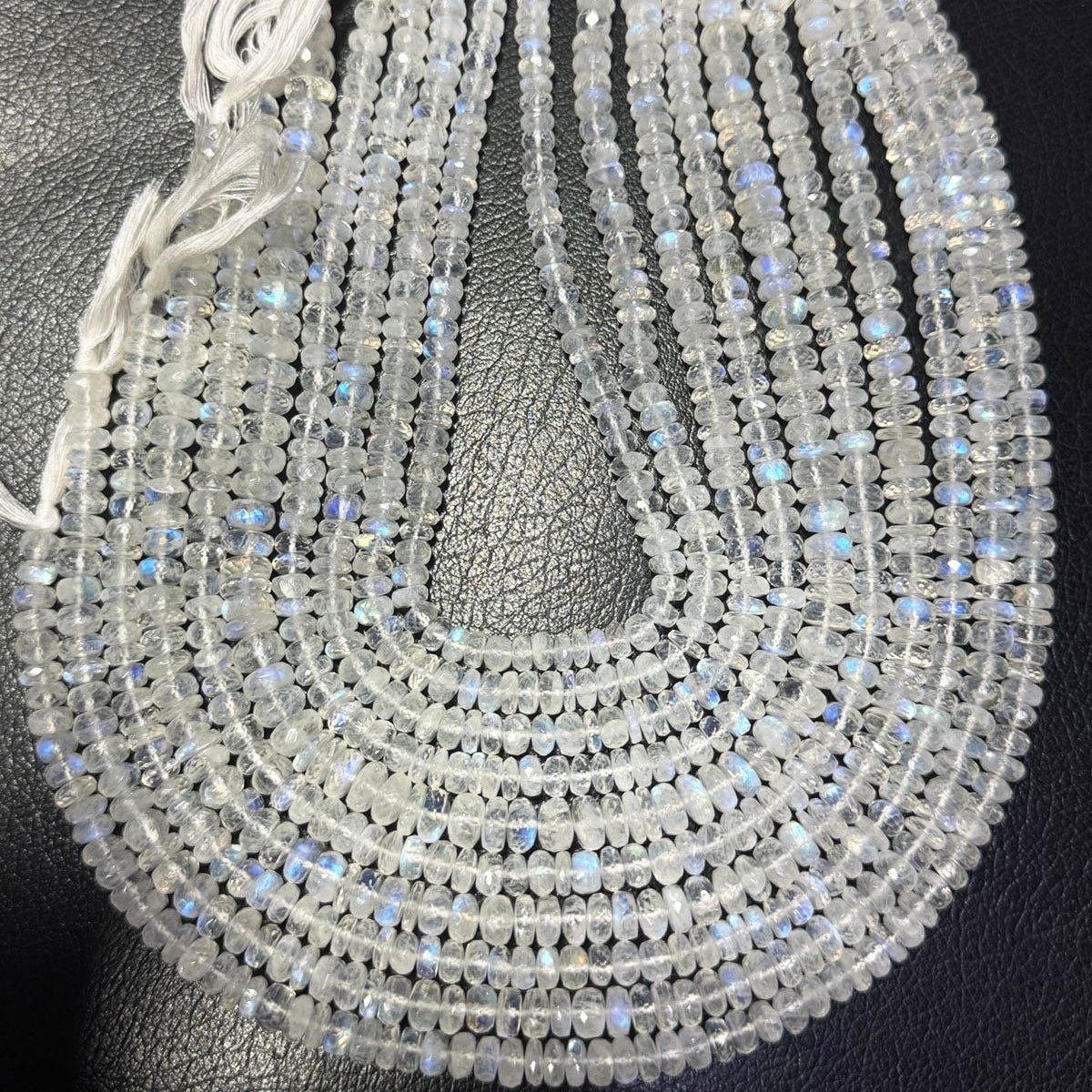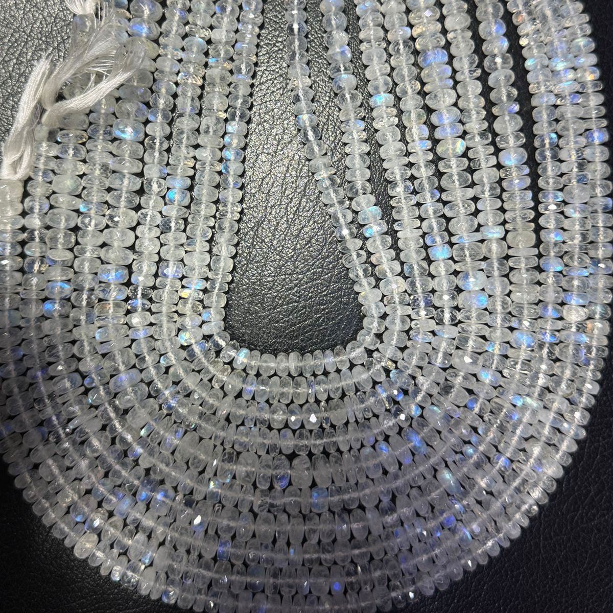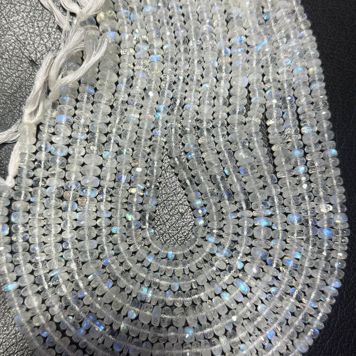 1 Strand White Rainbow Moonstone Faceted Rondelles - Gemstone Beads - 6mm-8mm -14.5 Inches BR0296