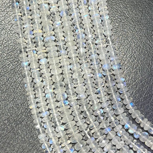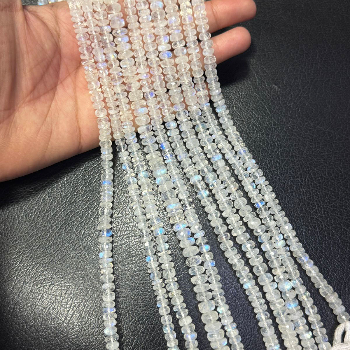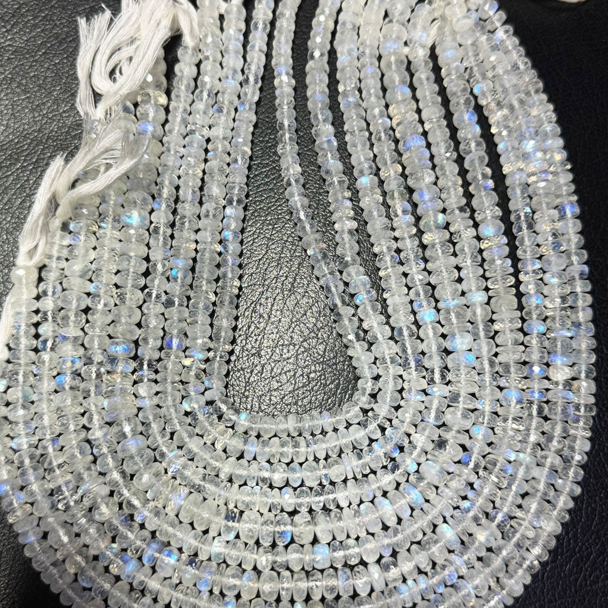 1 Strand White Rainbow Moonstone Faceted Rondelles - Gemstone Beads - 6mm-8mm -14.5 Inches BR0296