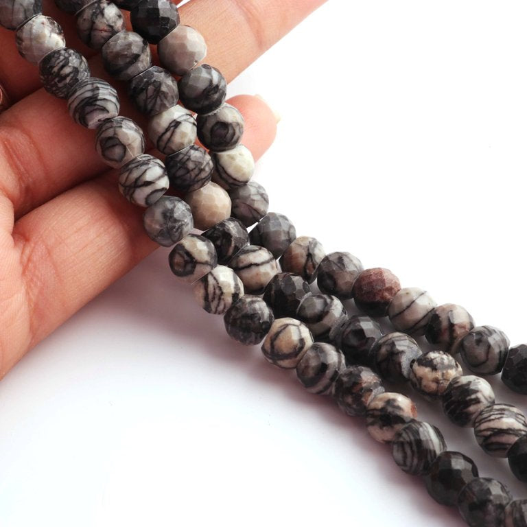 1 Strand Zebra Jasper Faceted Rondelles -Semi Precious Gemstone Faceted Rondelles Beads- 8mm -7 Inches BR03282