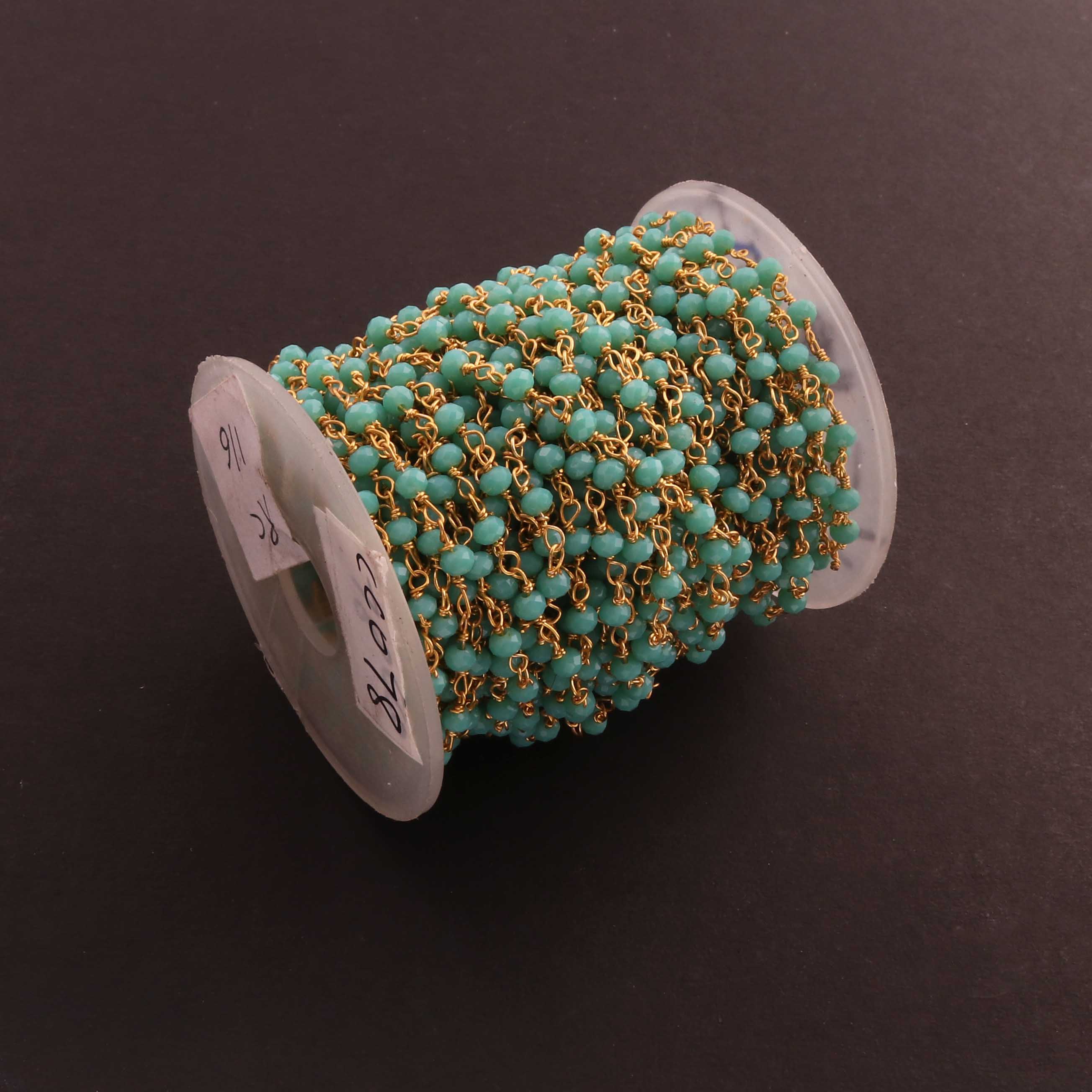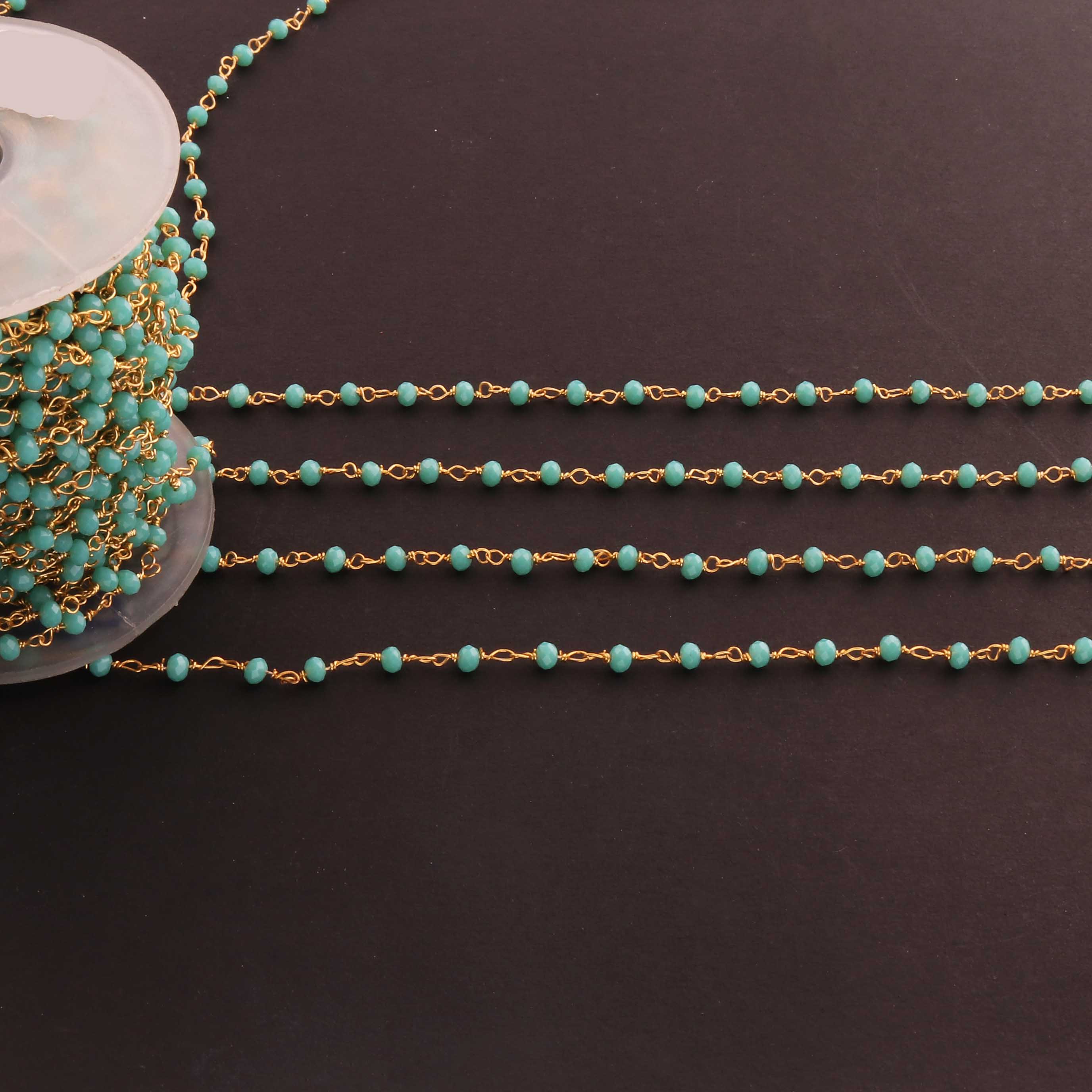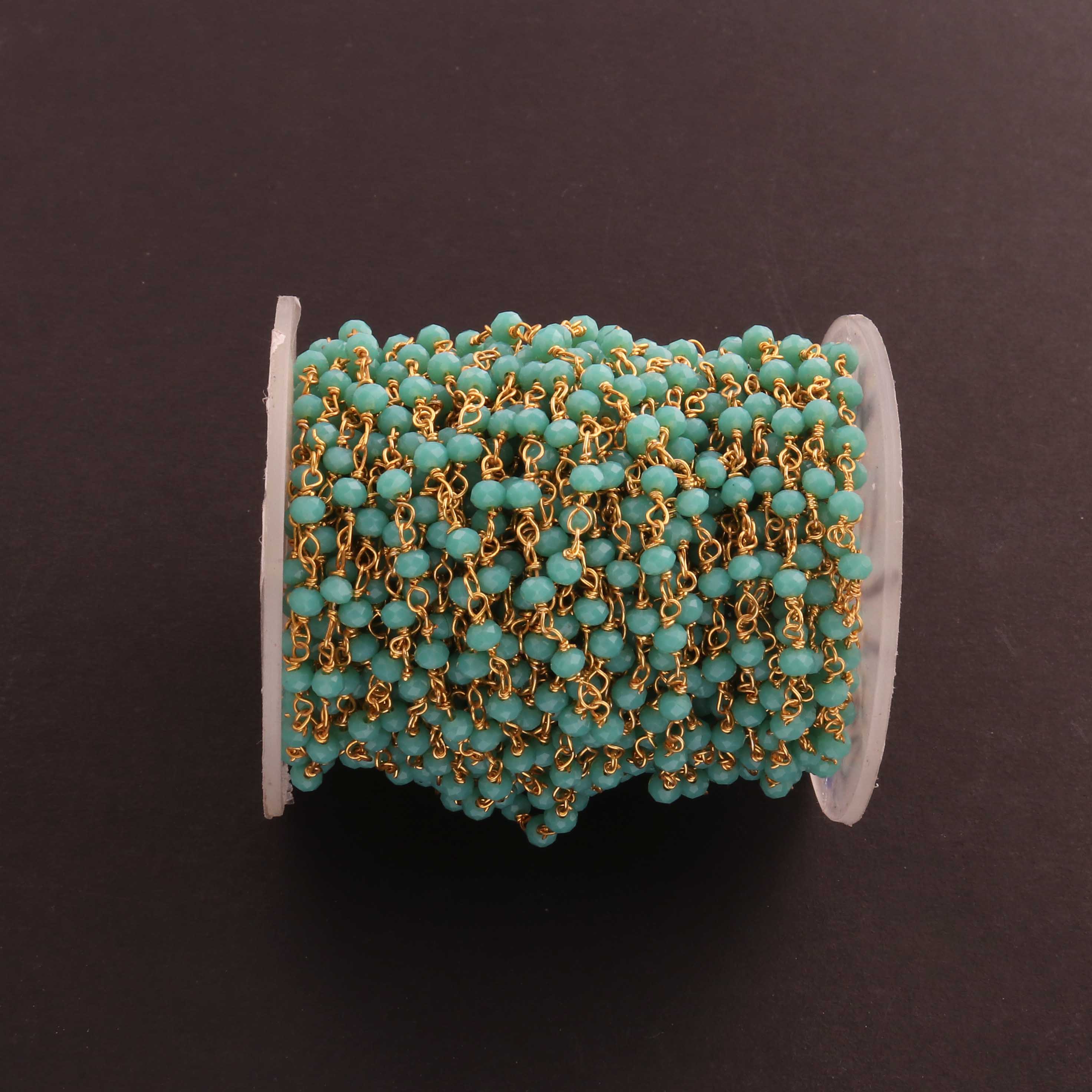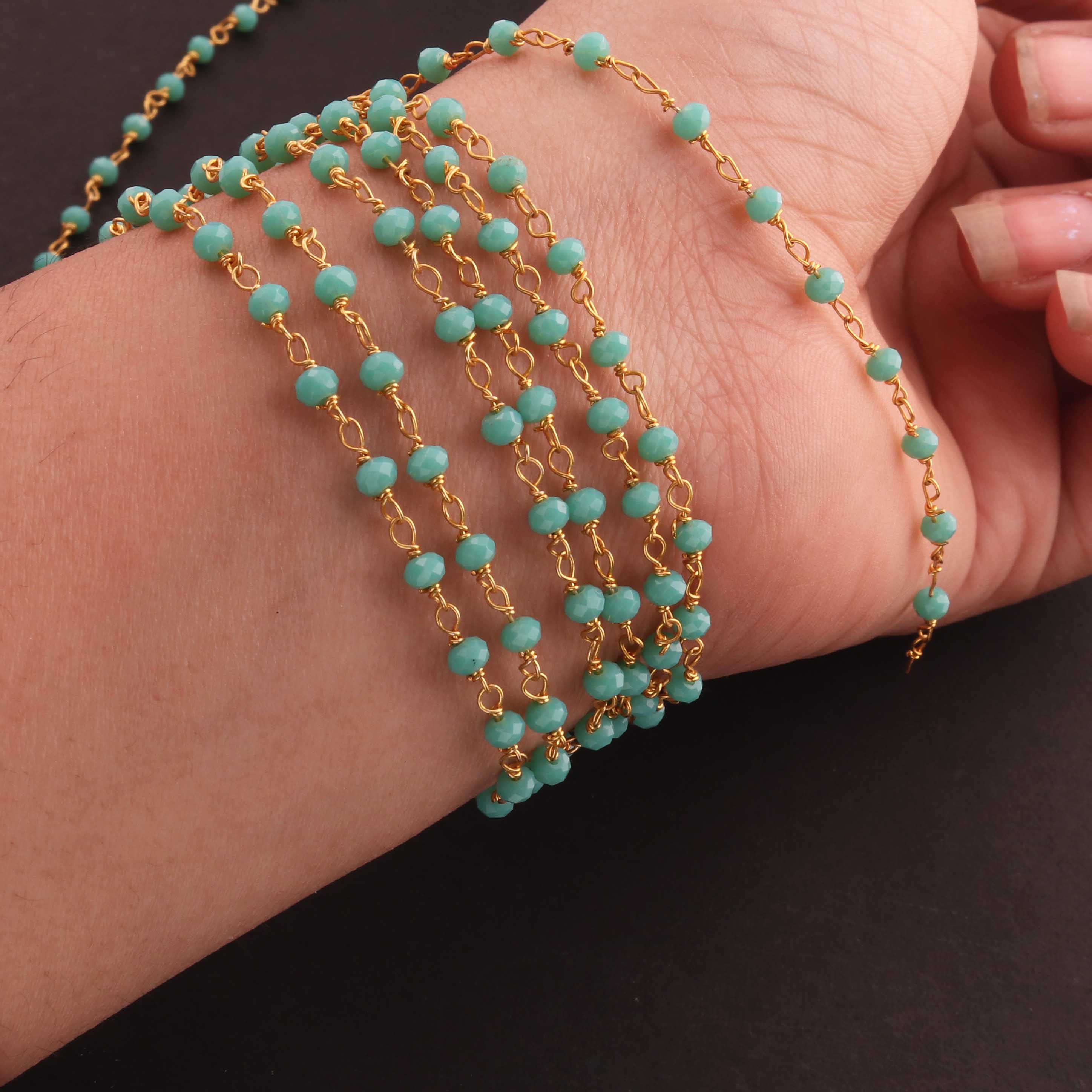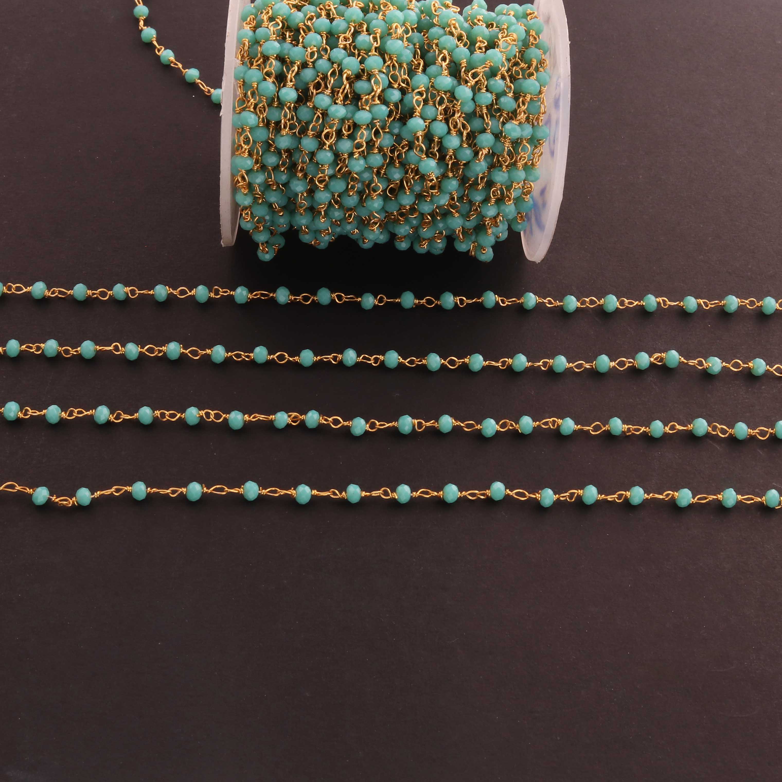 3 Feet Amazonite 4mm Faceted Rosary Beaded chain- 24 K Gold Plated Wire Wrapped Chain
