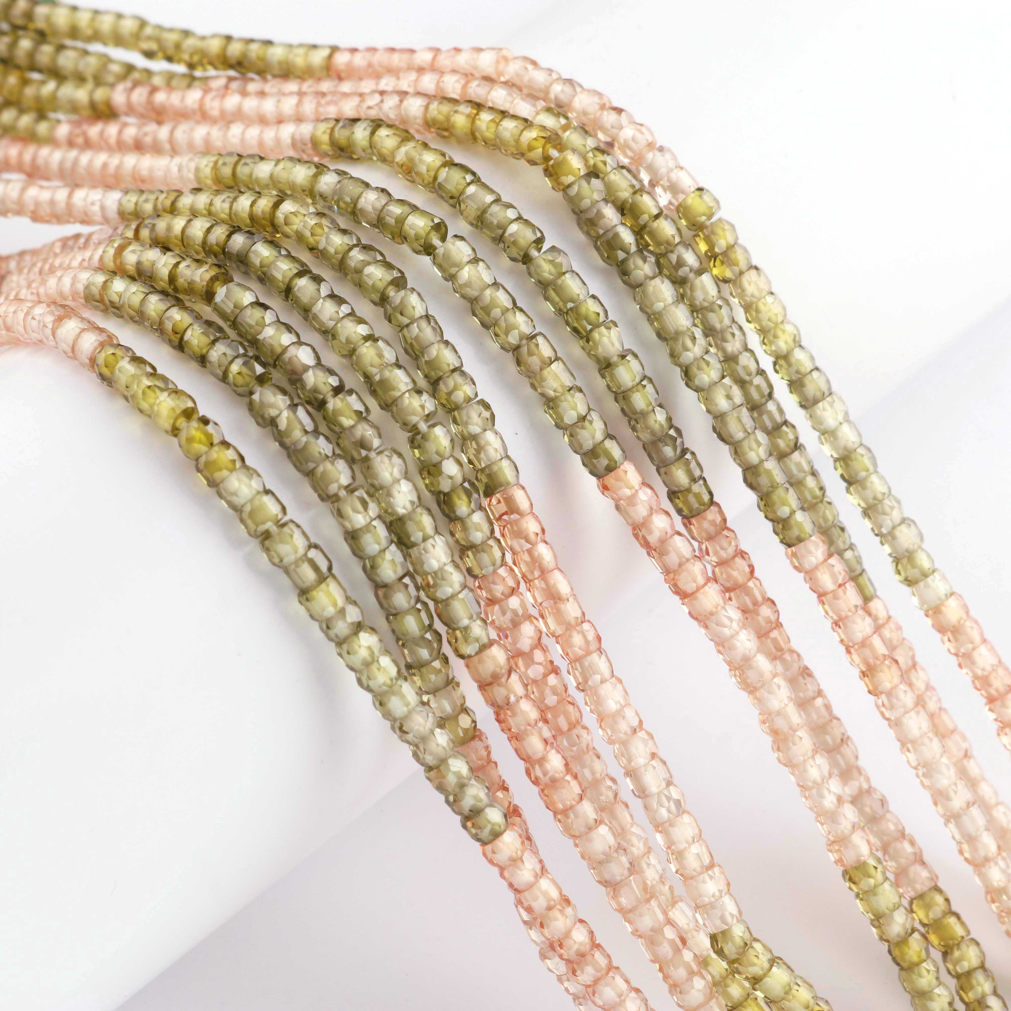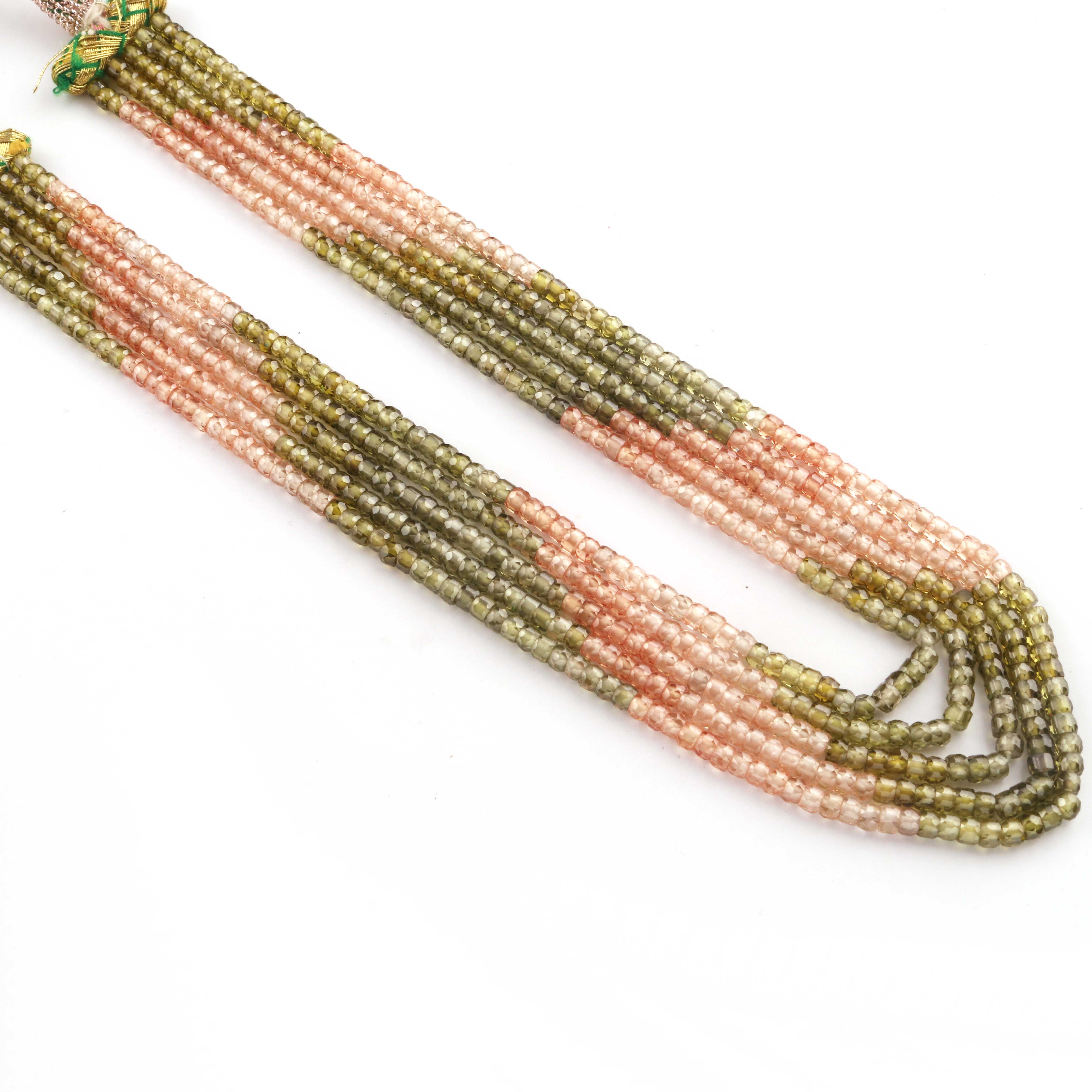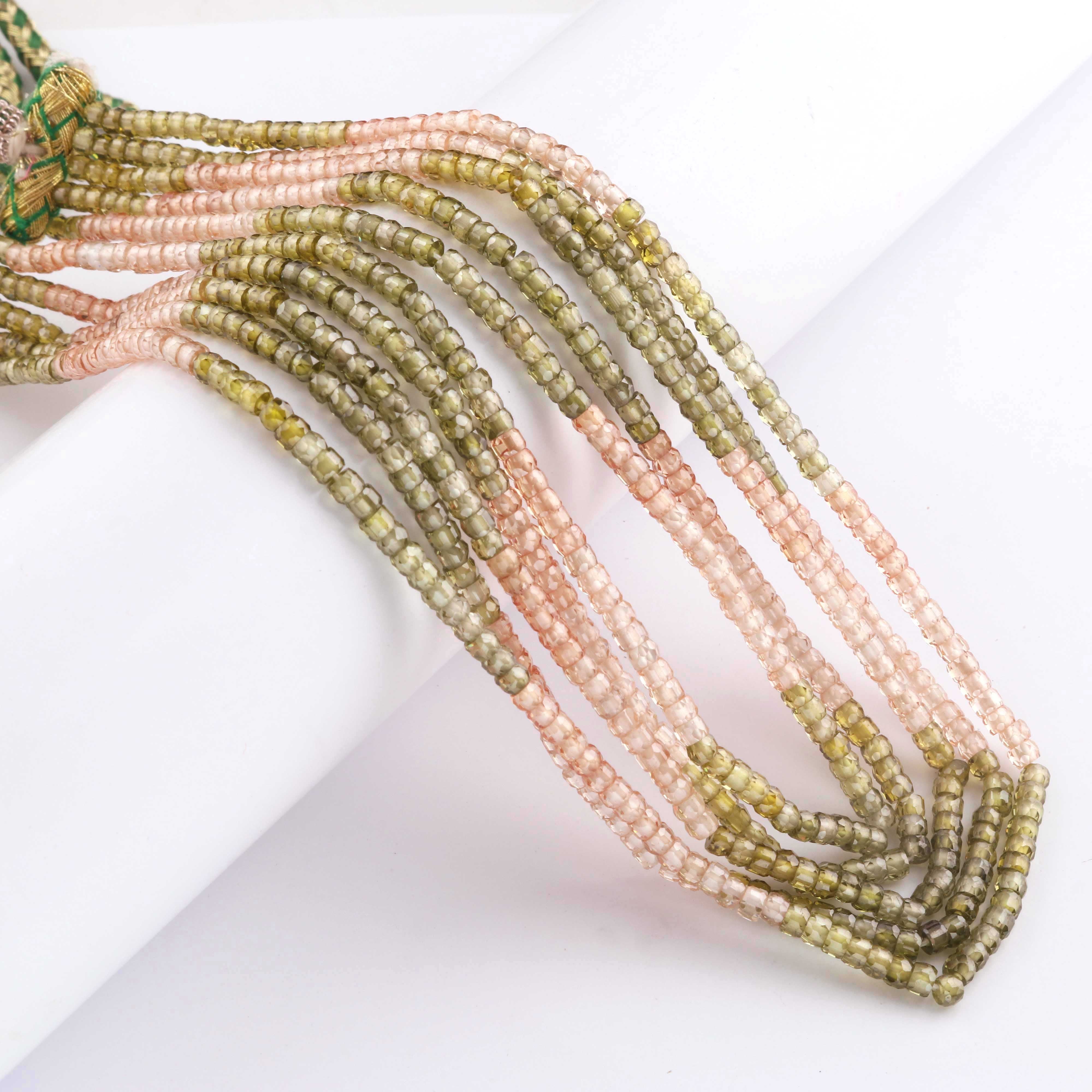 5 Strands AAA Quality Green & Peach Zircon Faceted Rondelles Ready To Wear Necklace -Green & Peach Zircon Rondelles Beads 3mm 13 Inches BR906
