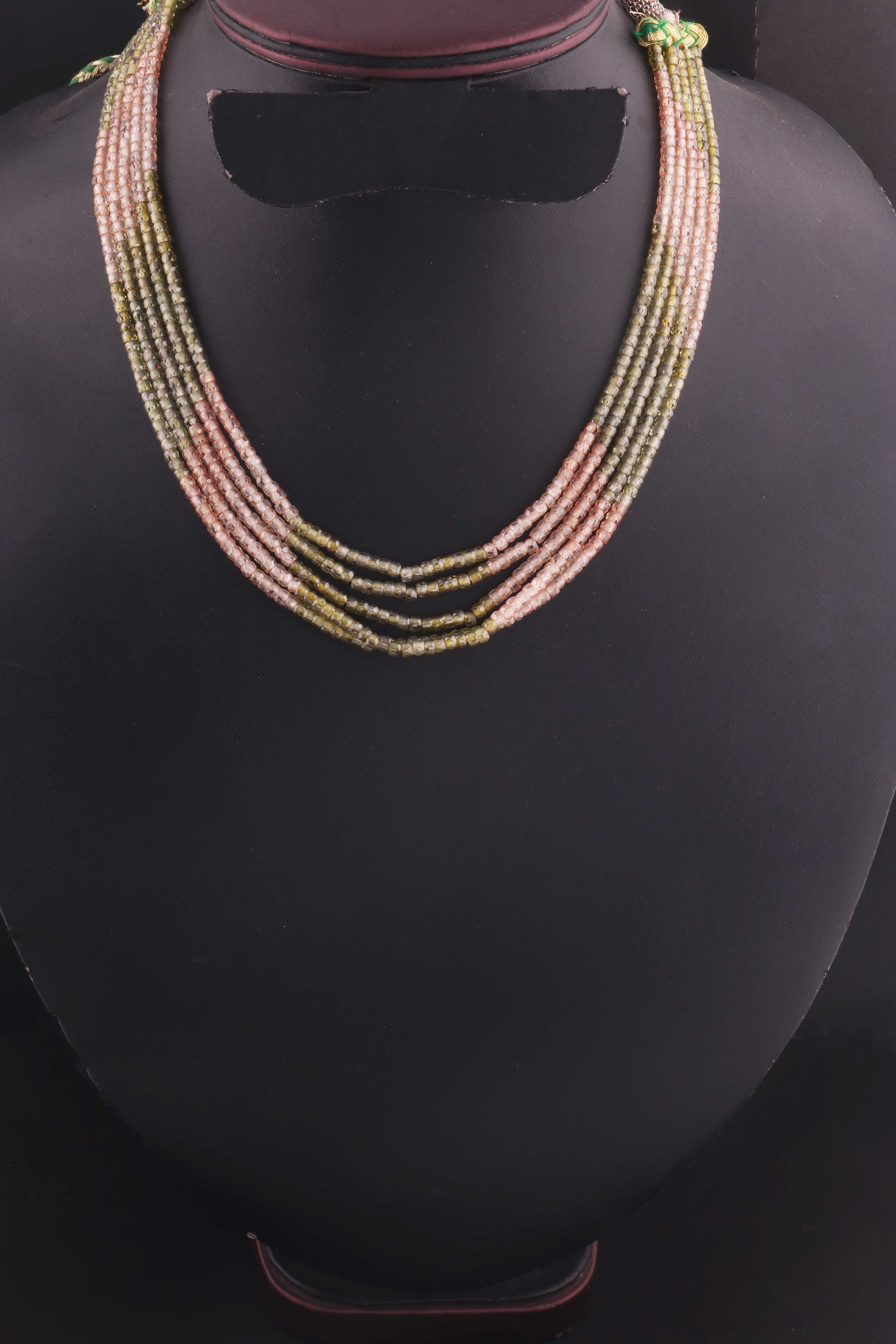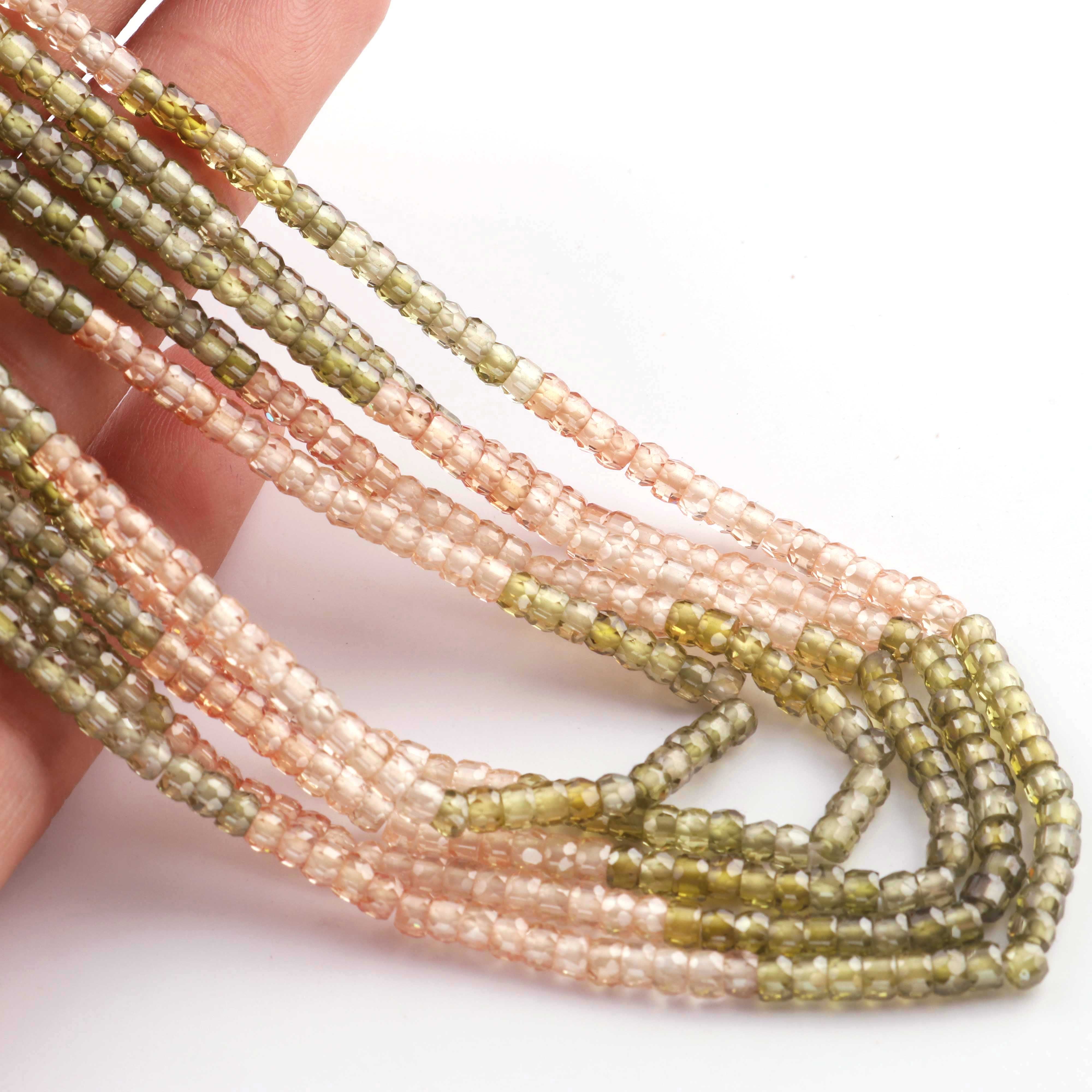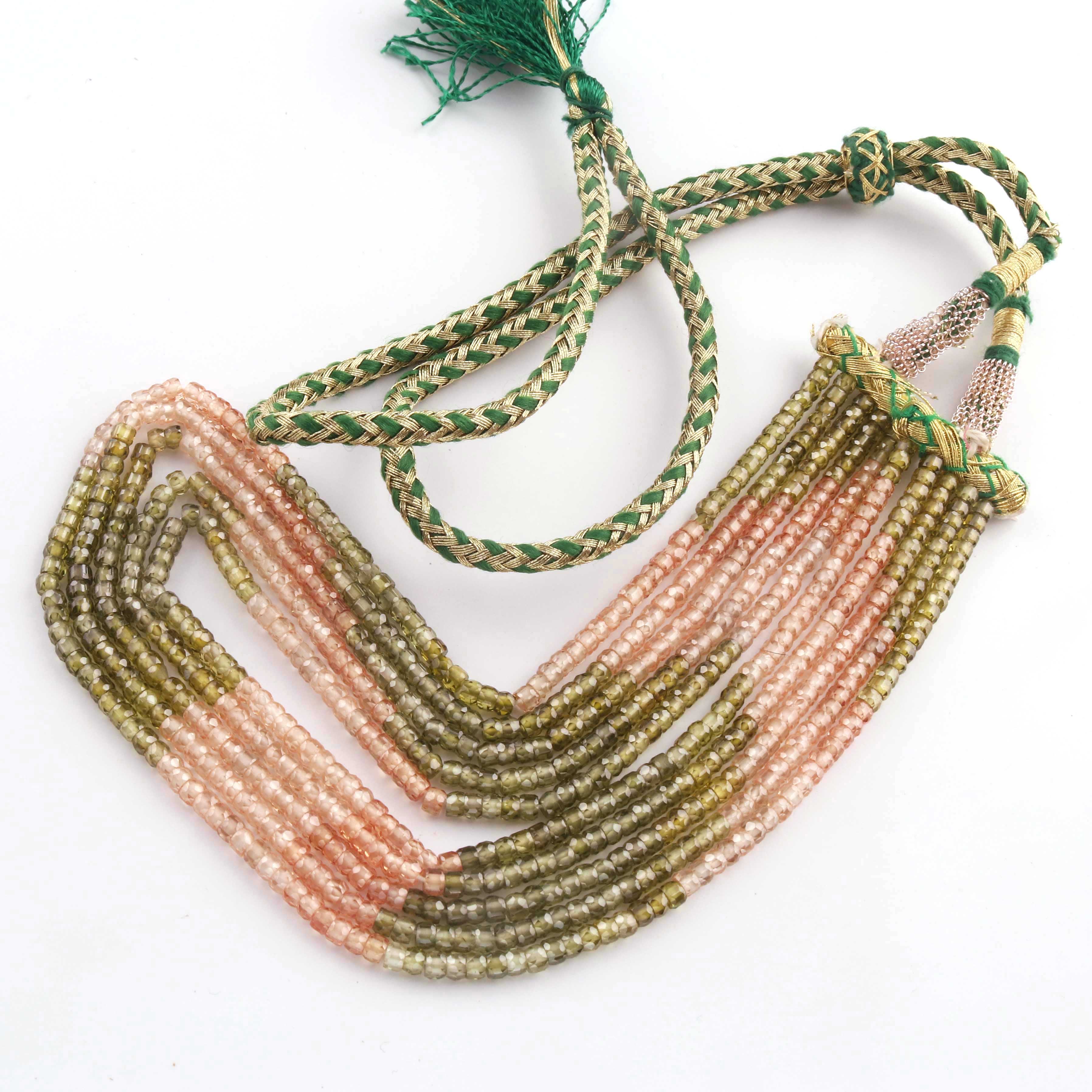 5 Strands AAA Quality Green & Peach Zircon Faceted Rondelles Ready To Wear Necklace -Green & Peach Zircon Rondelles Beads 3mm 13 Inches BR906