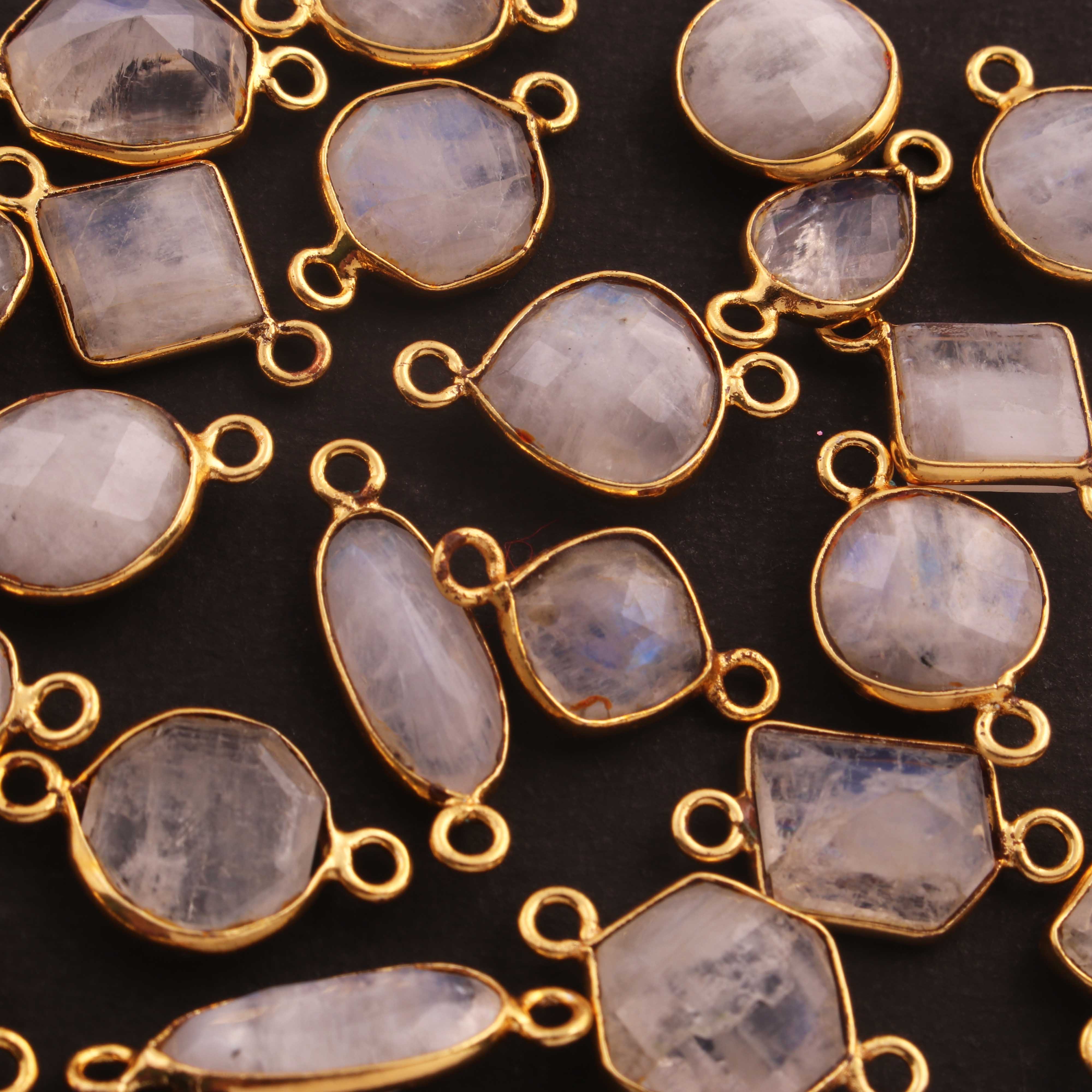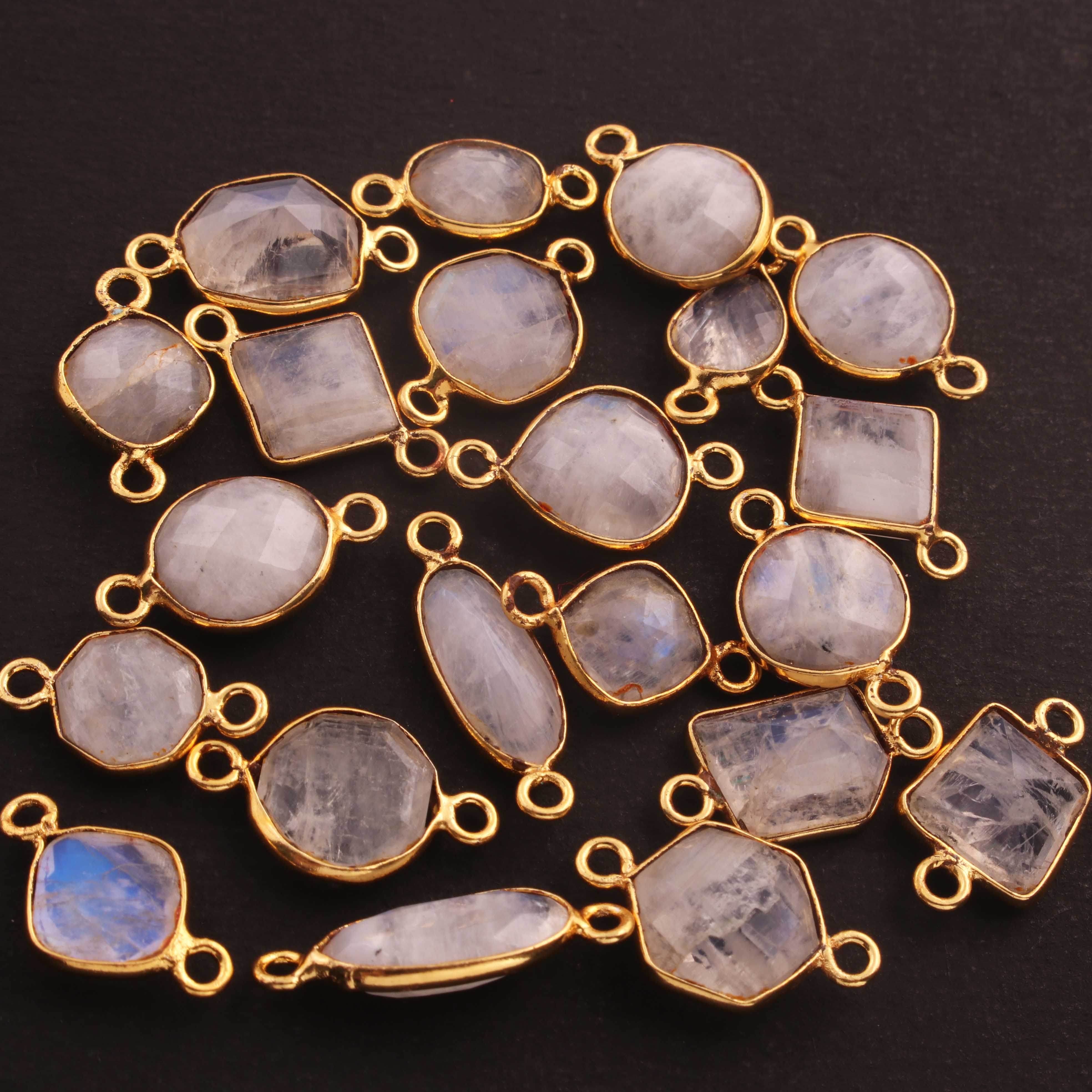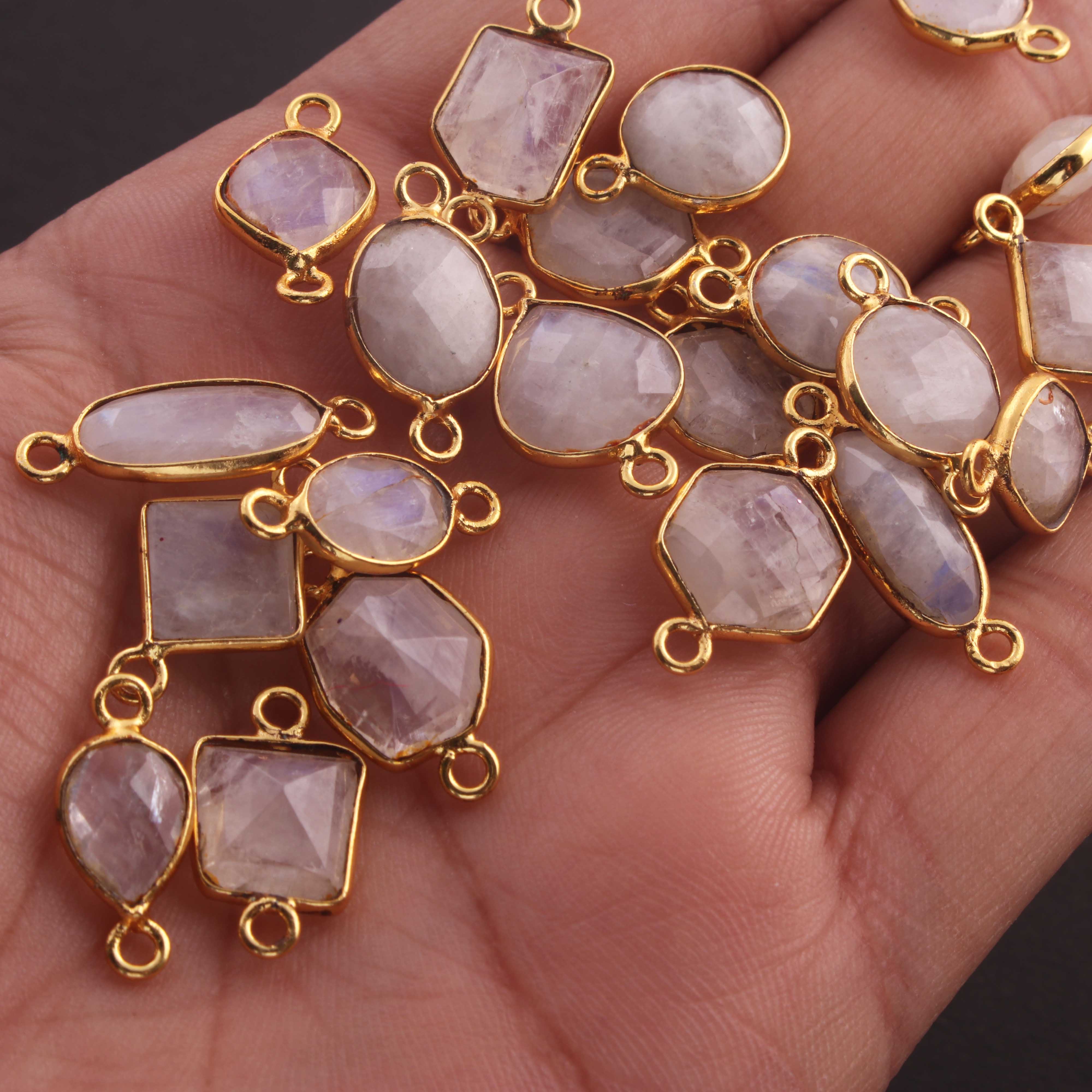 8 Pcs White Rainbow Moonstone Faceted Assorted Shape 24k Gold Plated Connector - 15mmx9mm-20mmx4mm-PC740