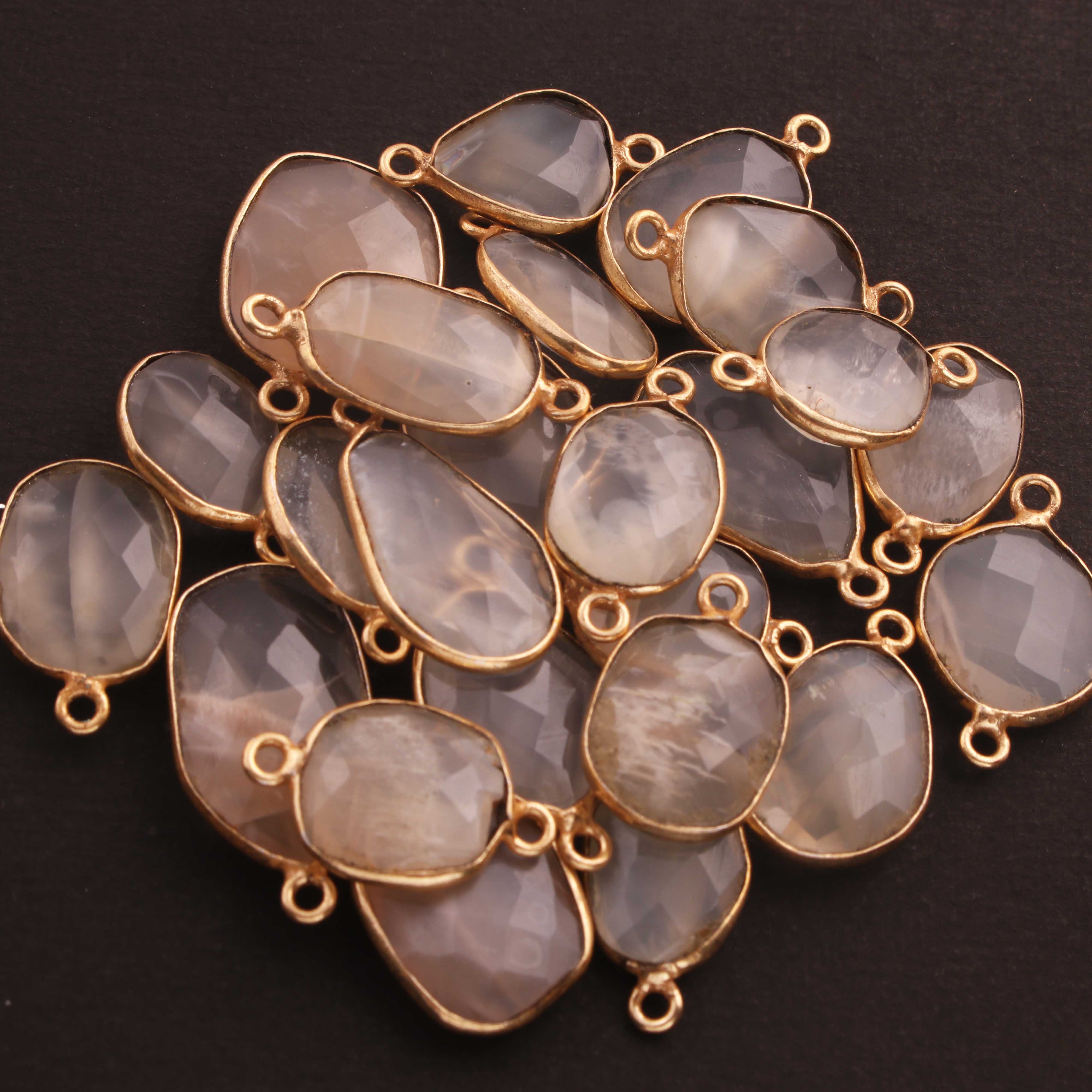 8  Pcs White Rainbow Moonstone  Faceted Assorted Shape 24k Gold Plated Connector - 15mmx9mm-20mmx4mm-PC740