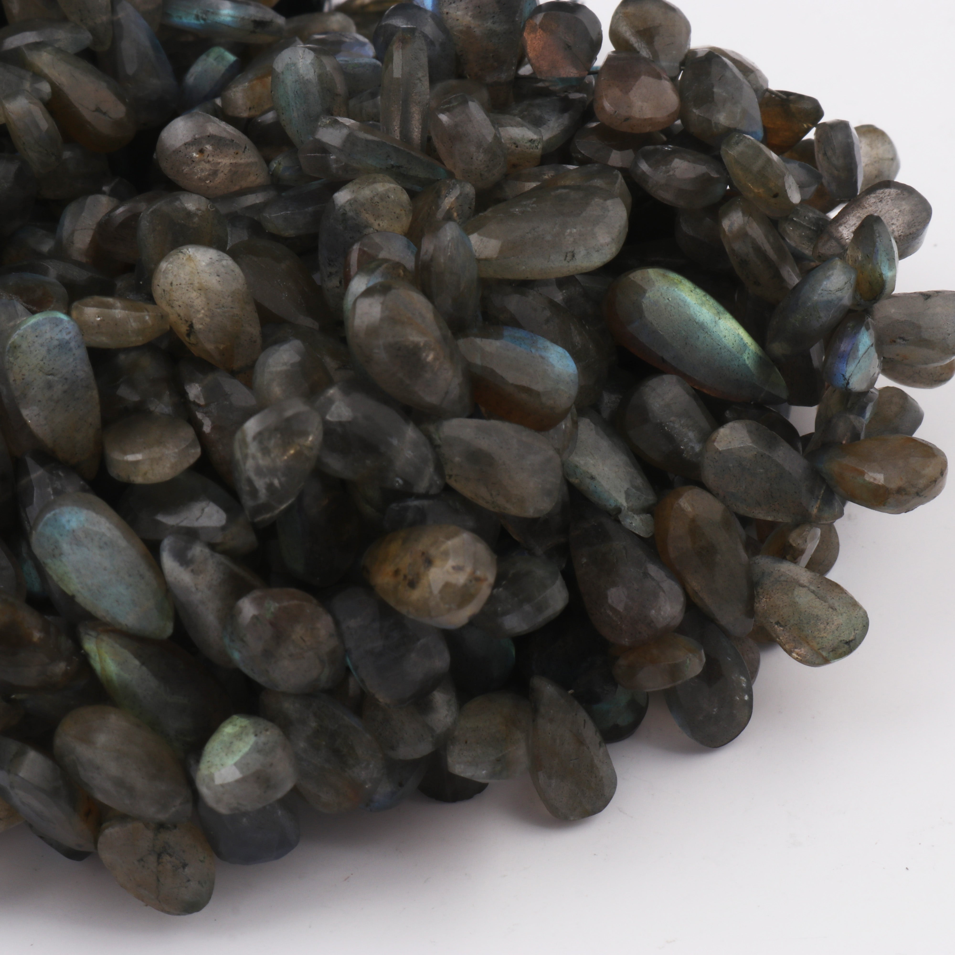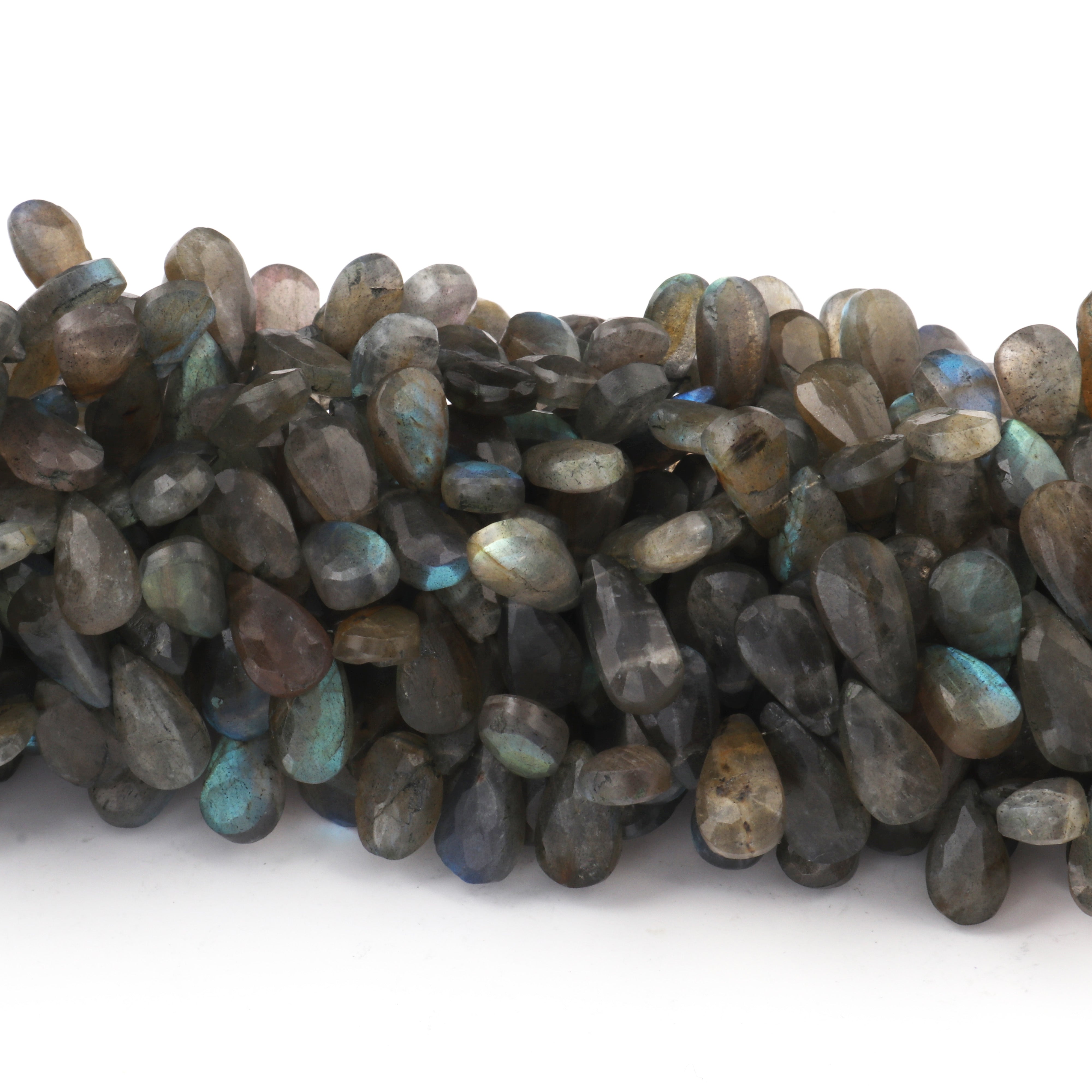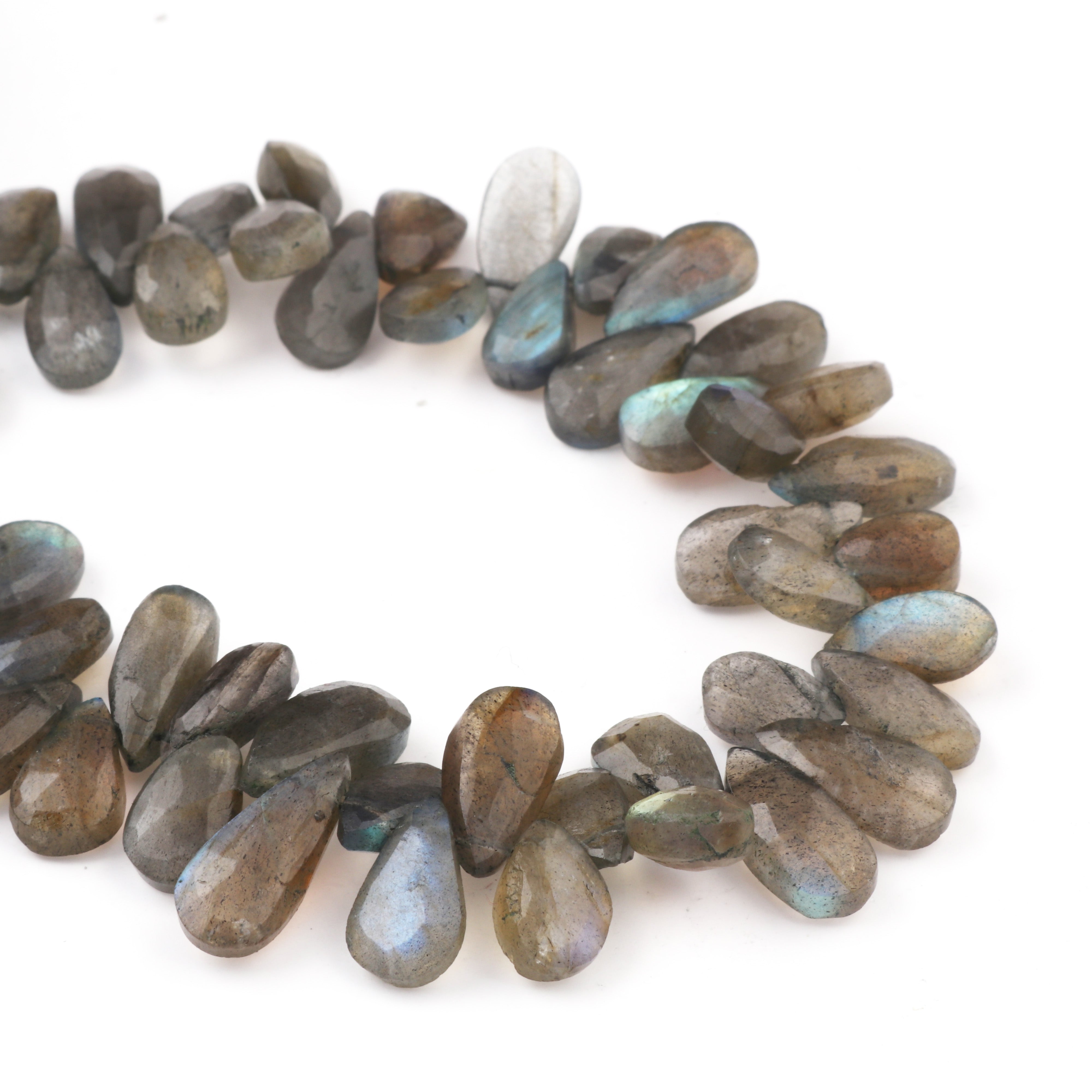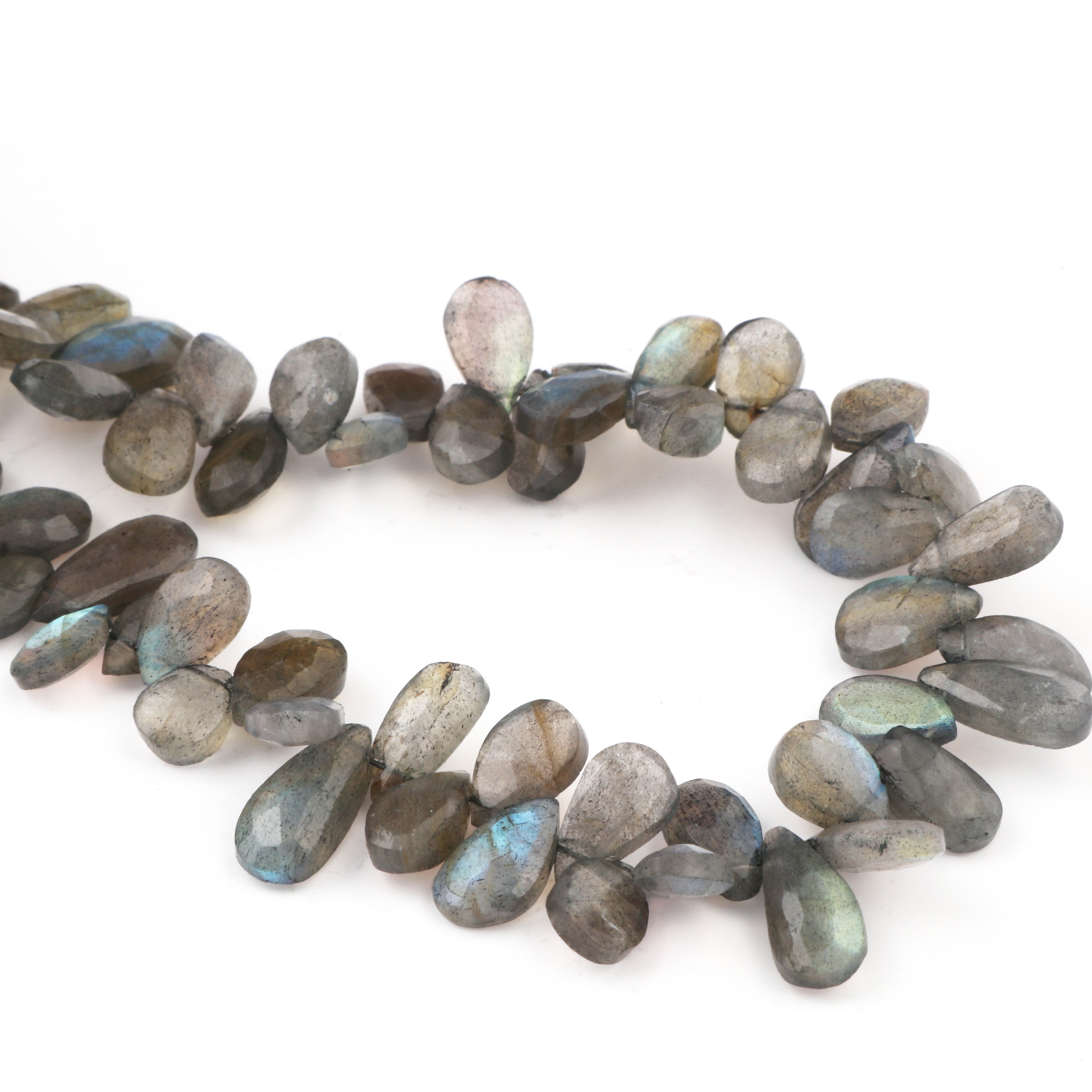 1 Long Strand Labradorite Faceted Briolettes -Pear Shape Briolettes - 7mmx5mm-12mmx7mm - 9.5 inch BR0434