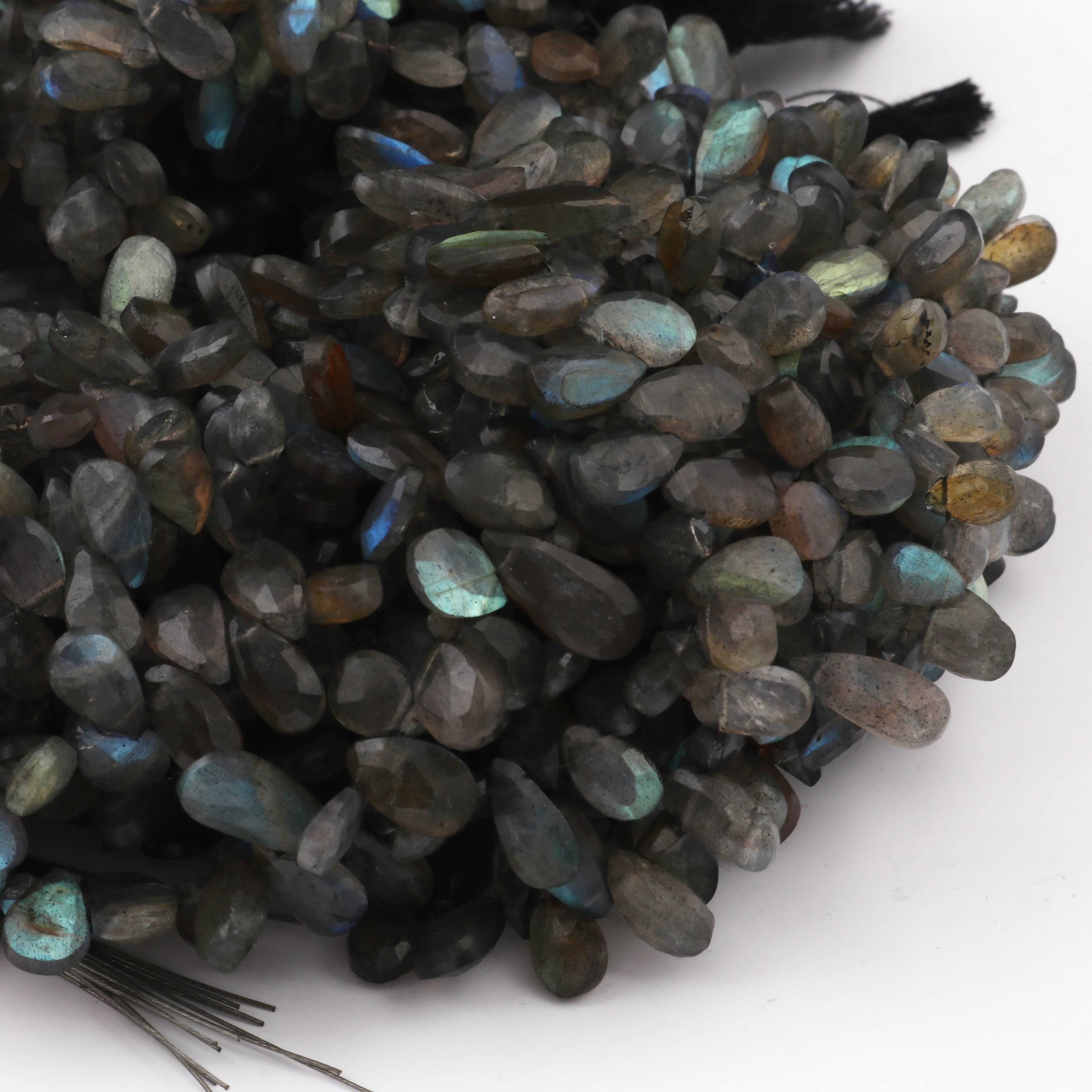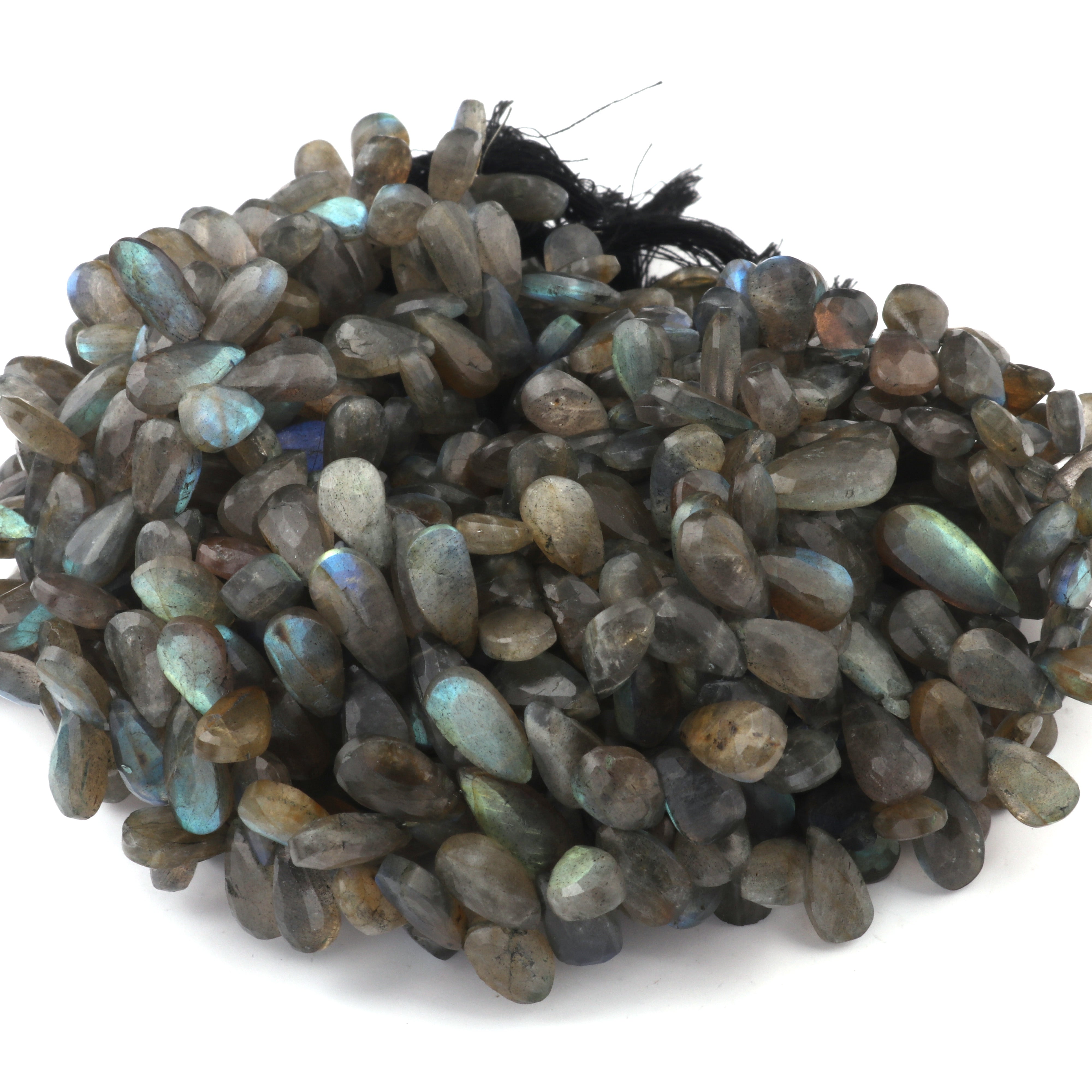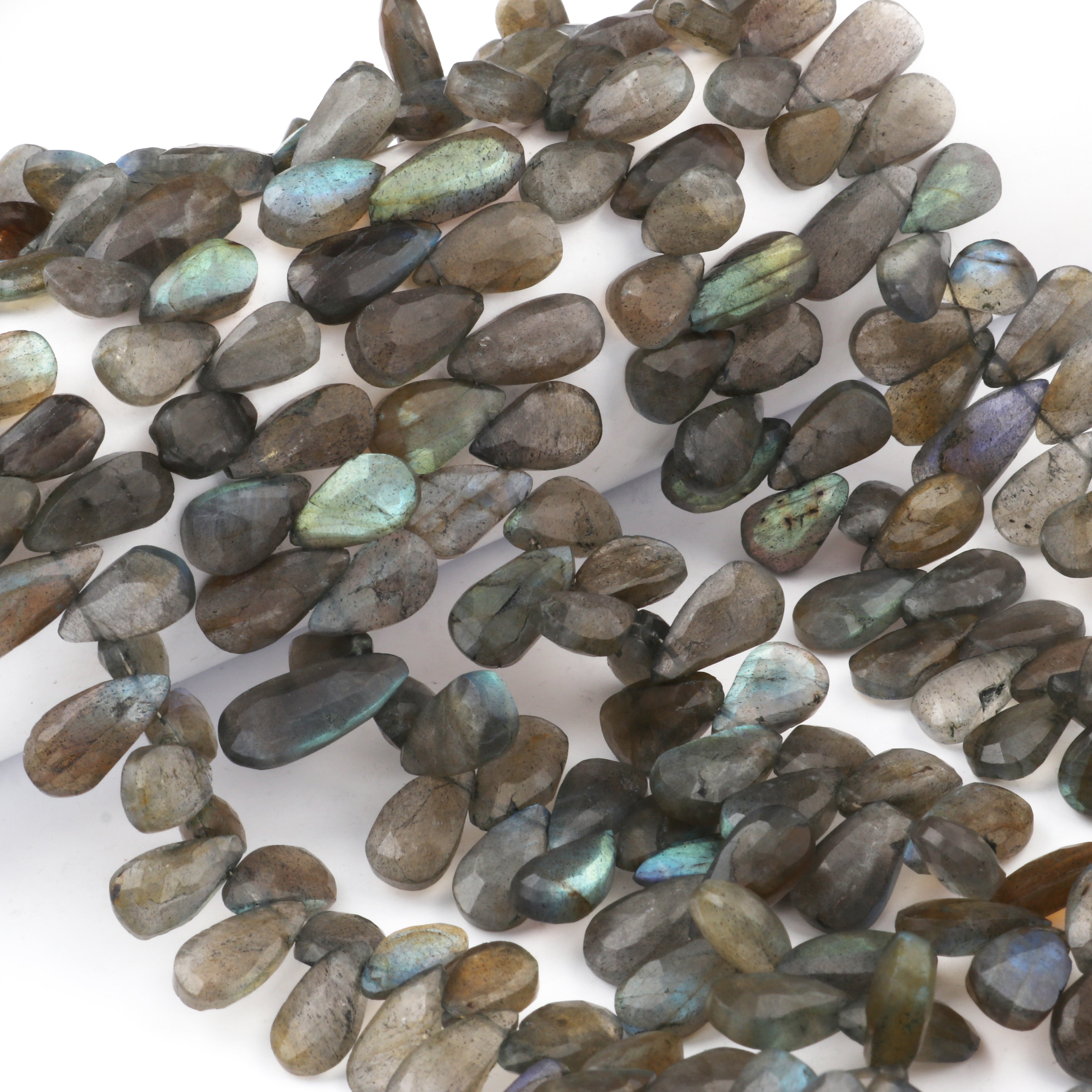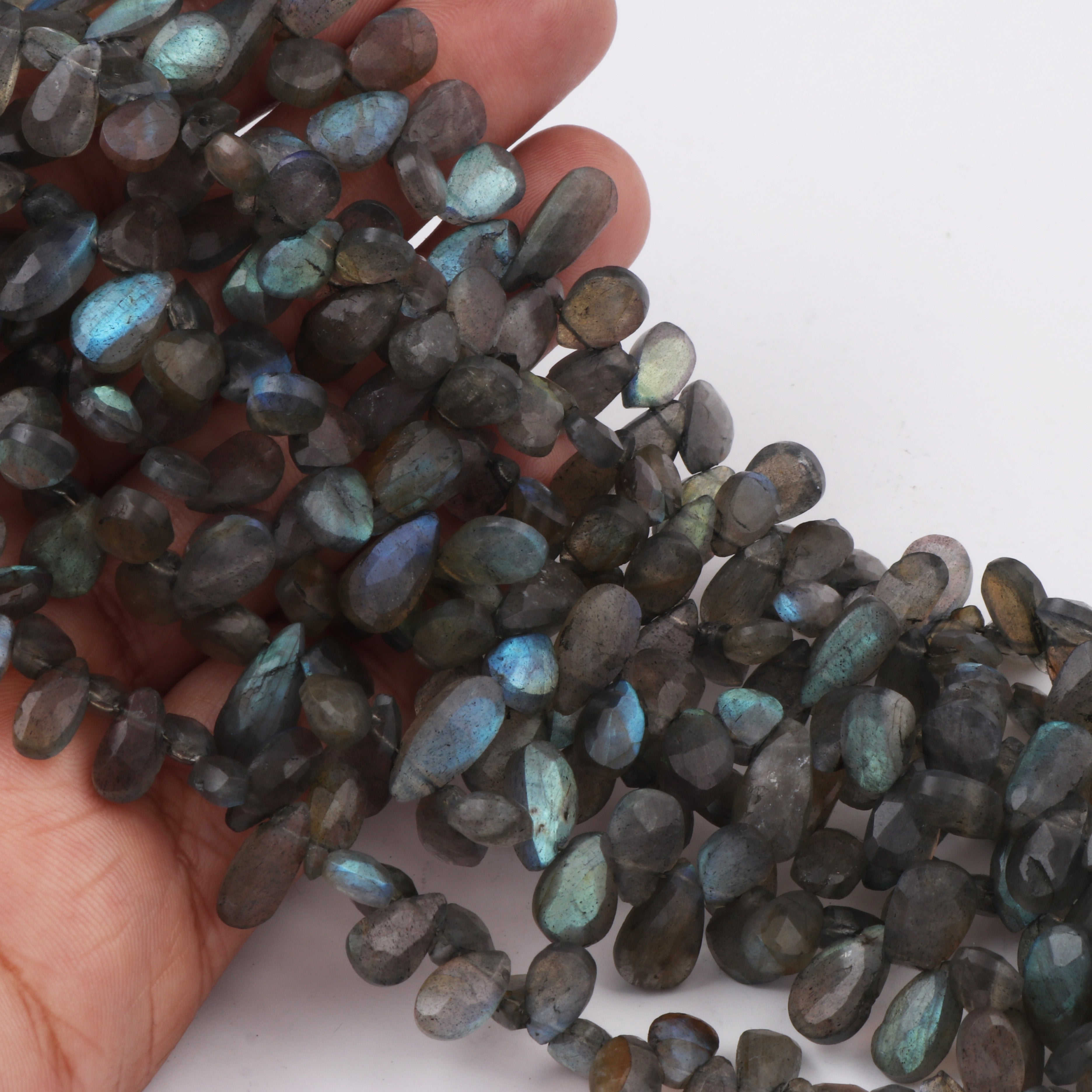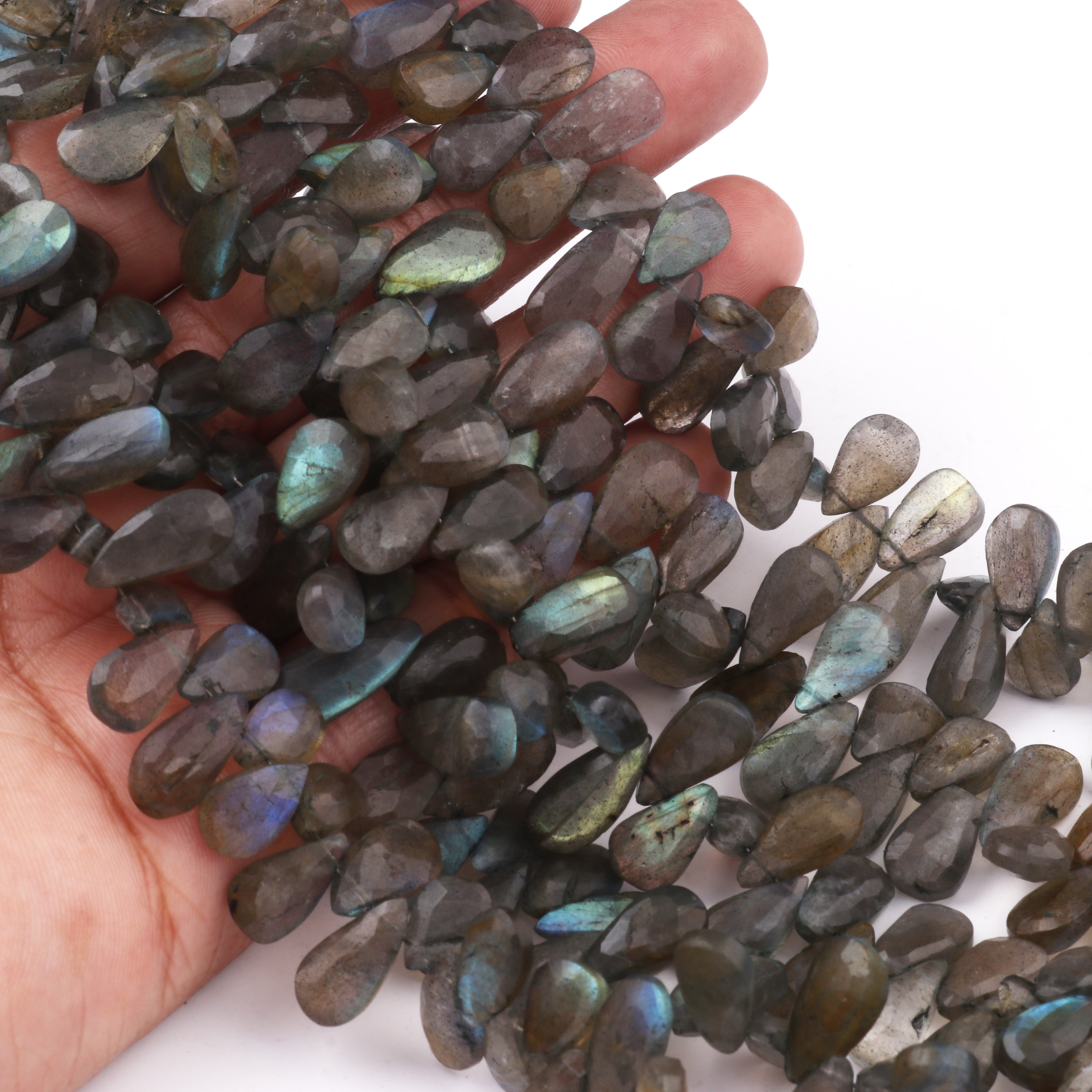 1 Long Strand Labradorite Faceted Briolettes -Pear Shape Briolettes - 7mmx5mm-12mmx7mm - 9.5 inch BR0434