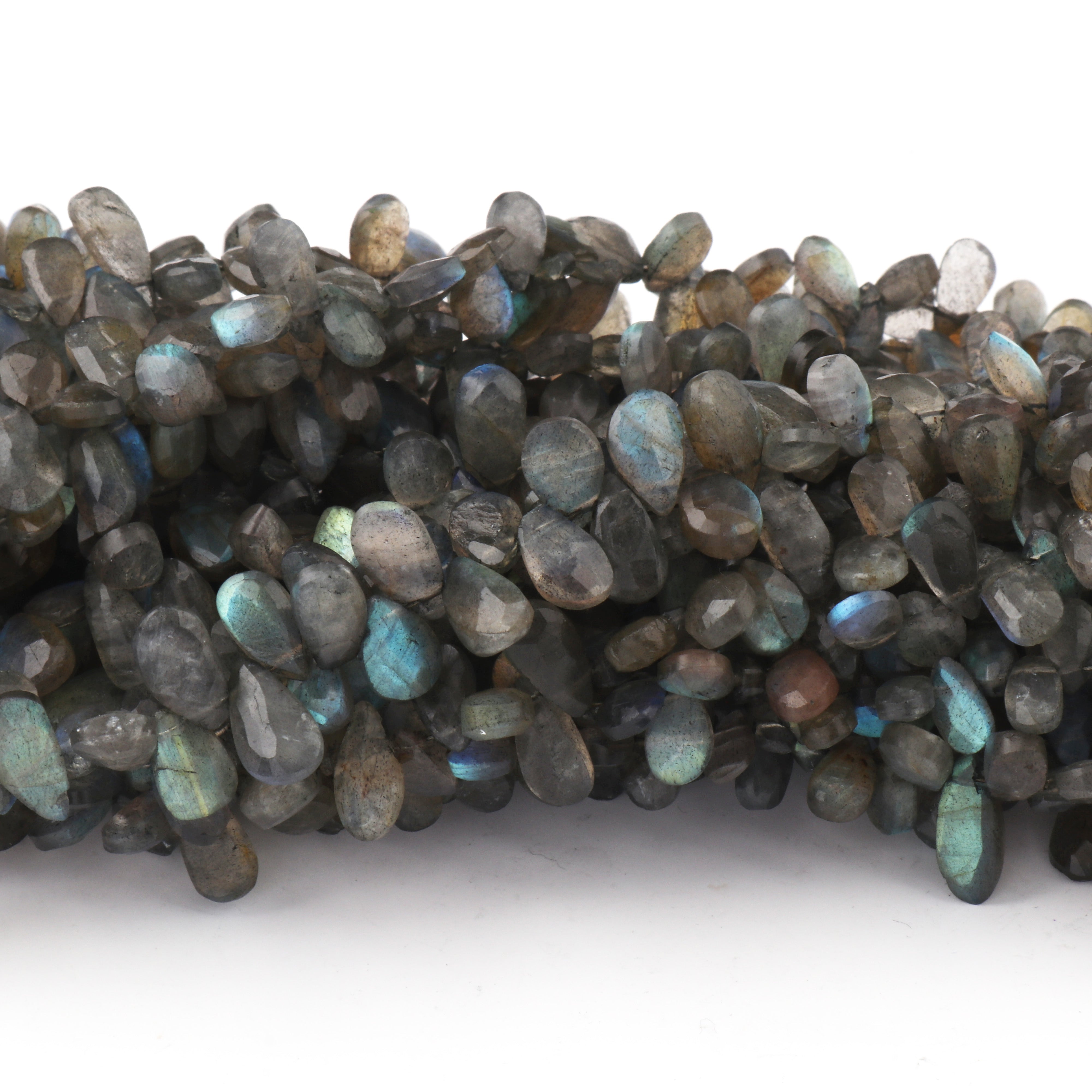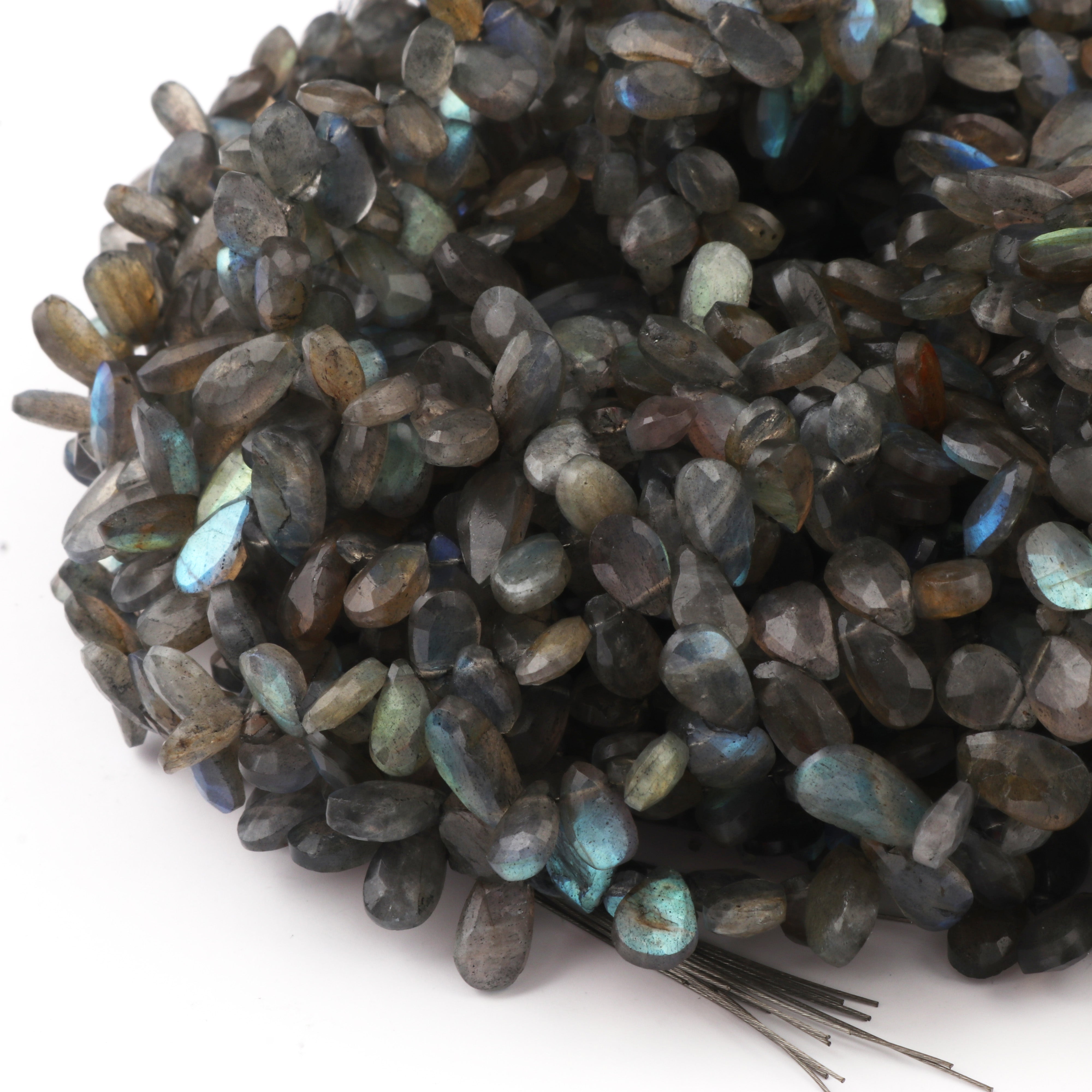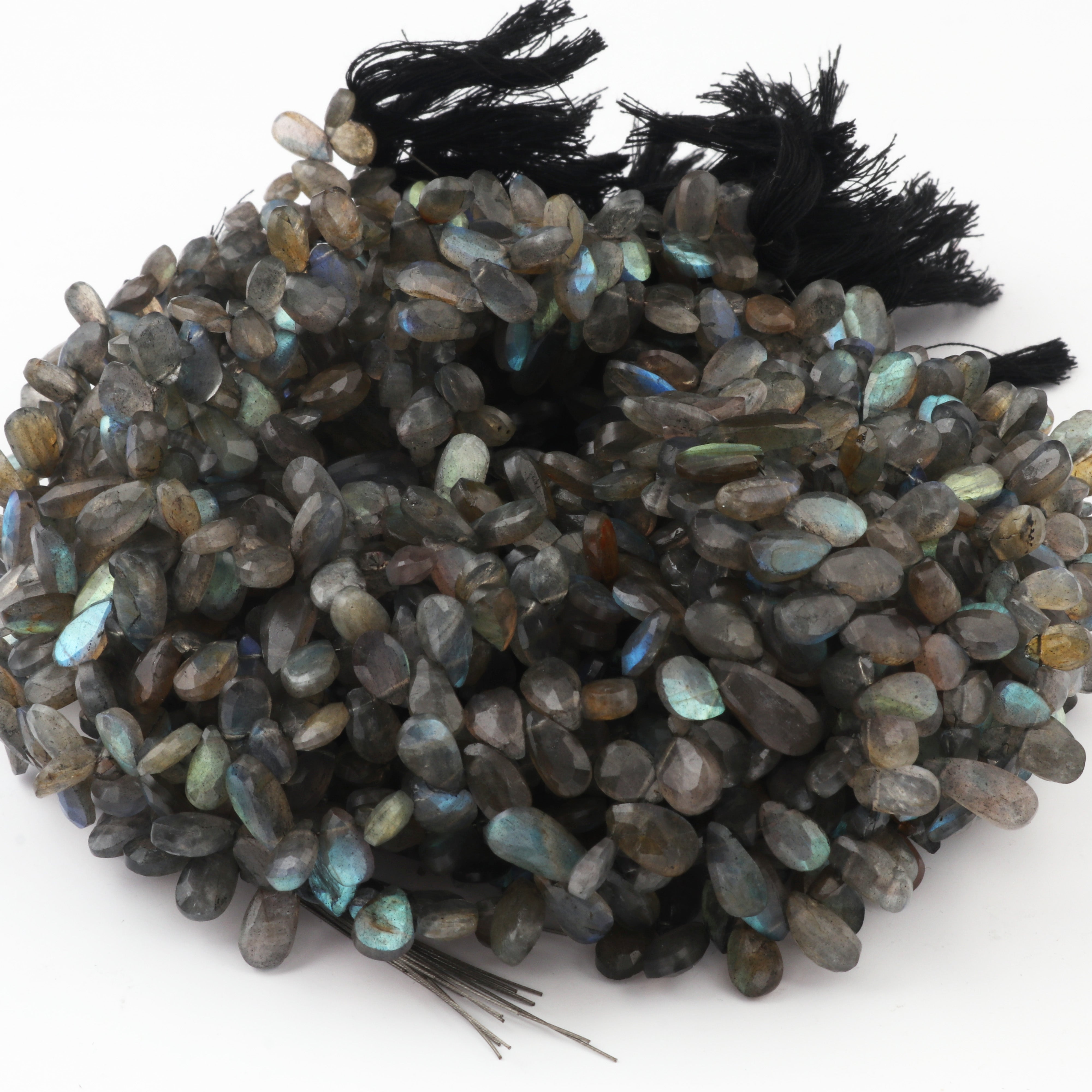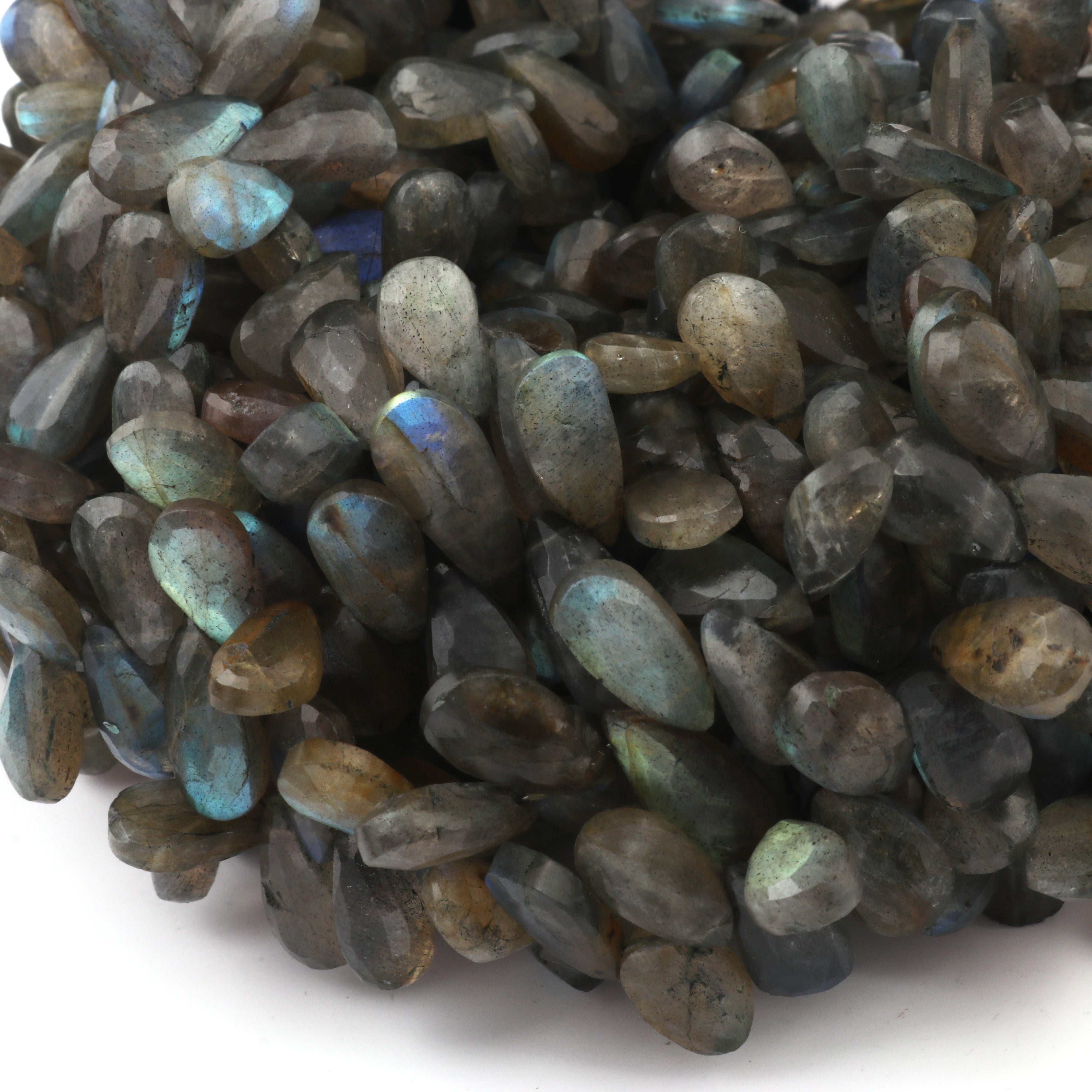 1 Long Strand Labradorite Faceted Briolettes -Pear Shape Briolettes - 7mmx5mm-12mmx7mm - 9.5 inch BR0434