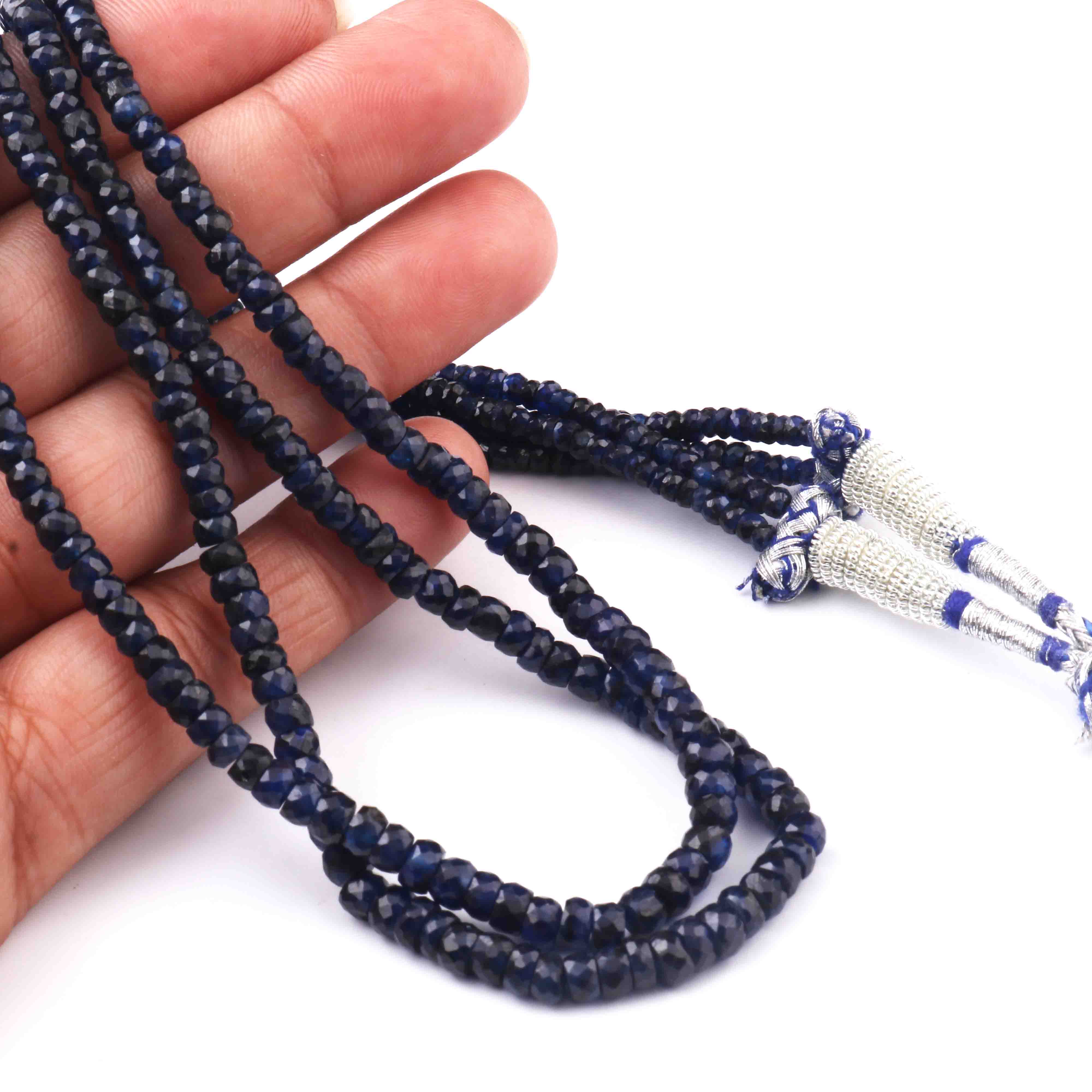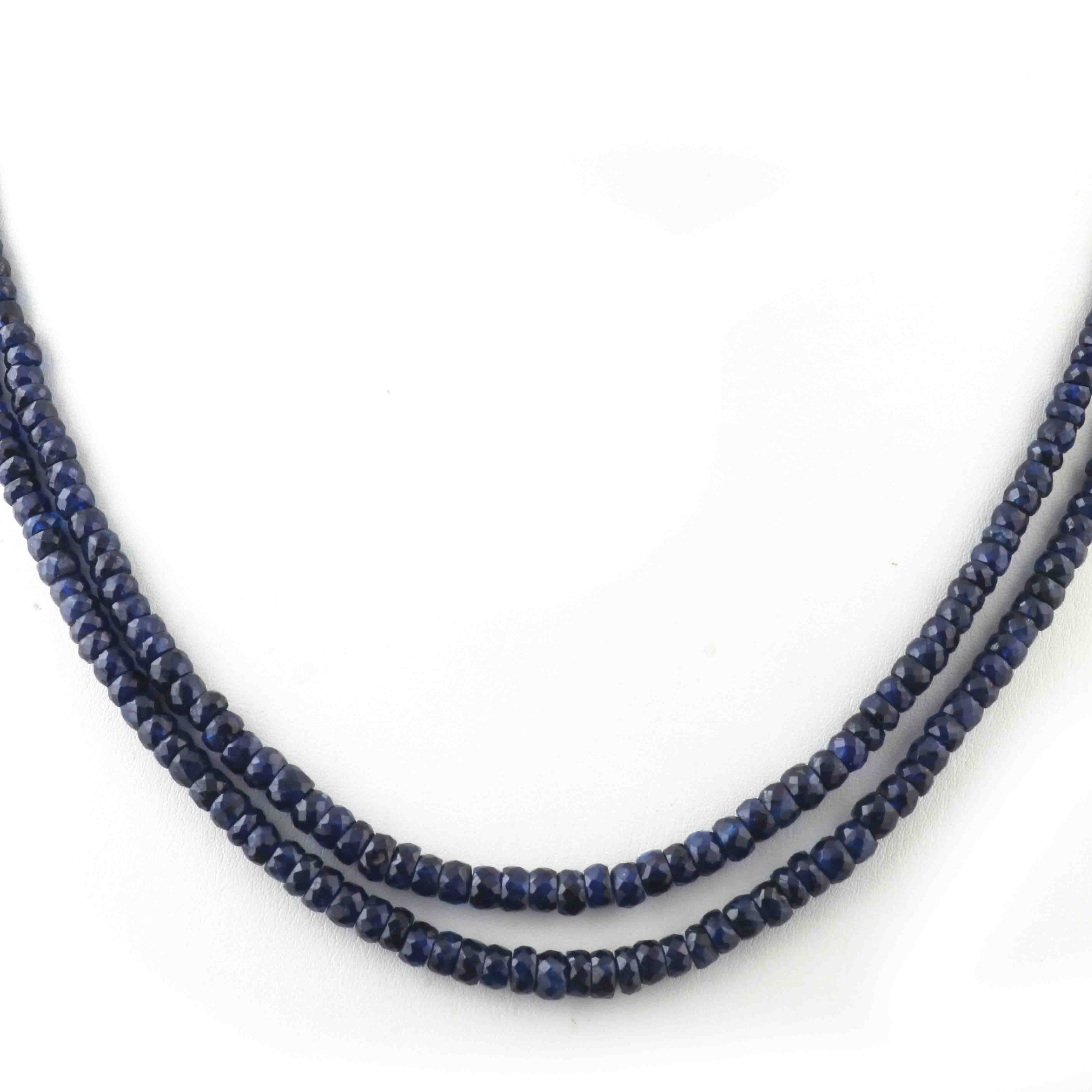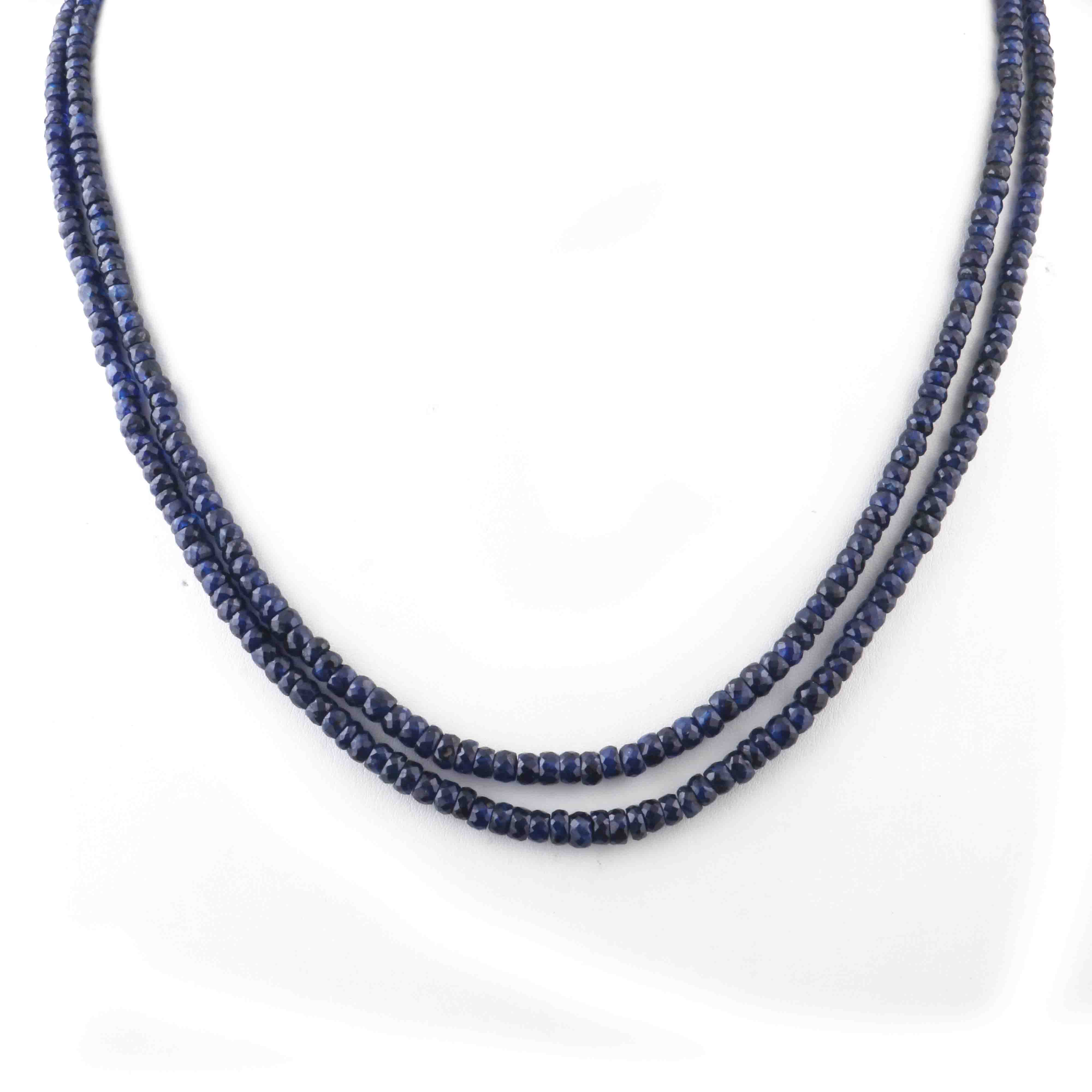 400ct. 2 Strands Of Genuine Sri Lankan Blue Sapphire Necklace - Faceted Rondelle Beads - Rare & Natural Sapphire Necklace - Stunning Elegant Necklace - BRU3301