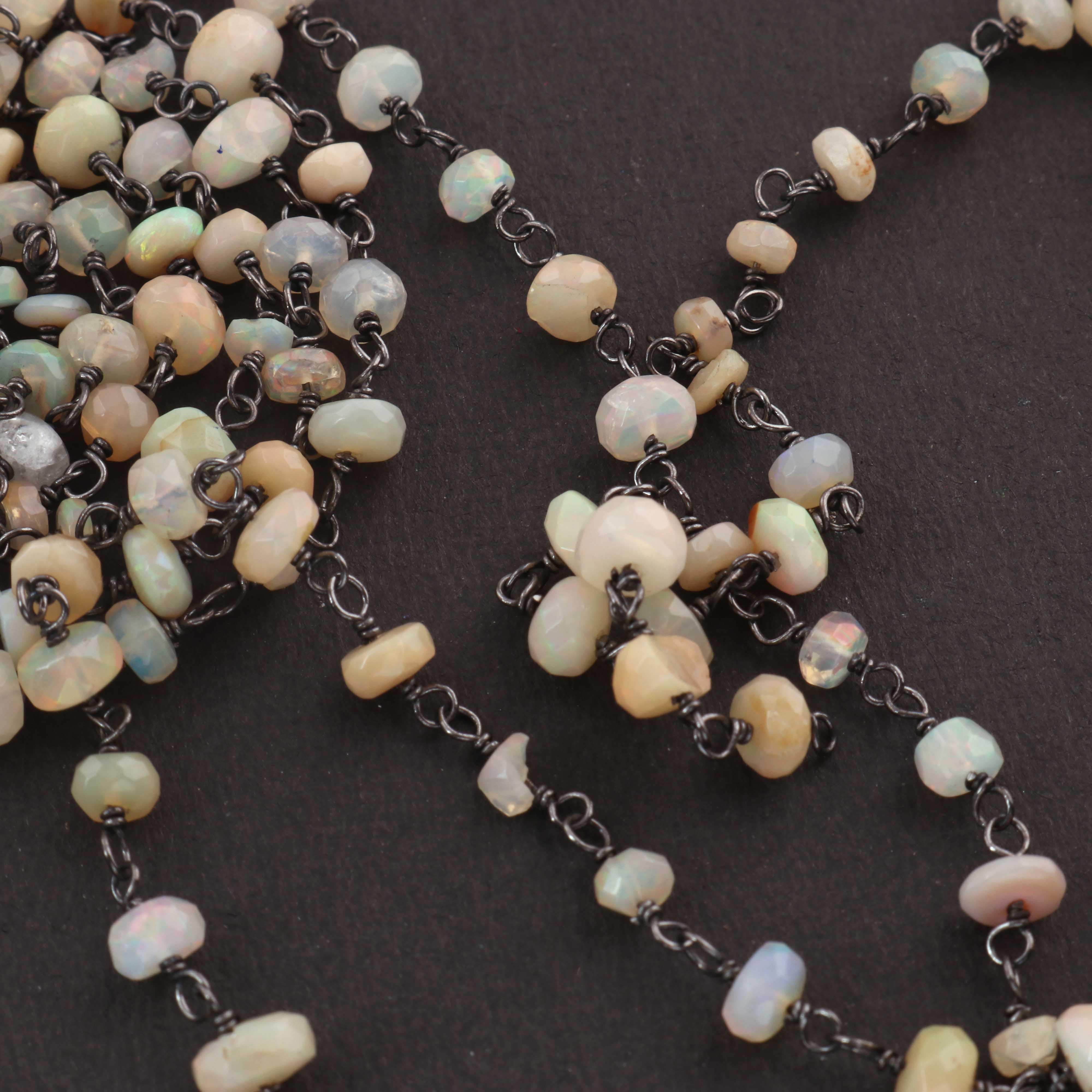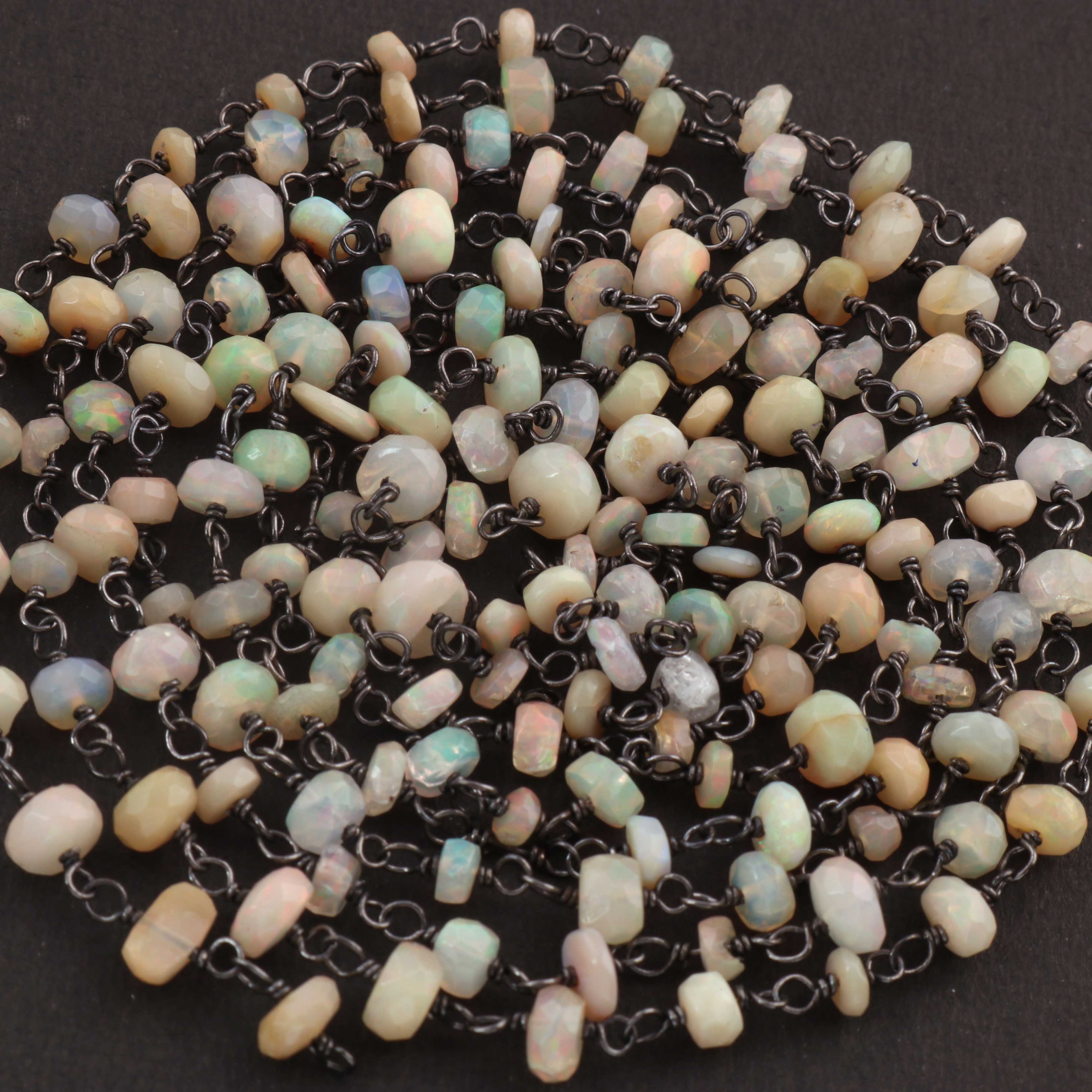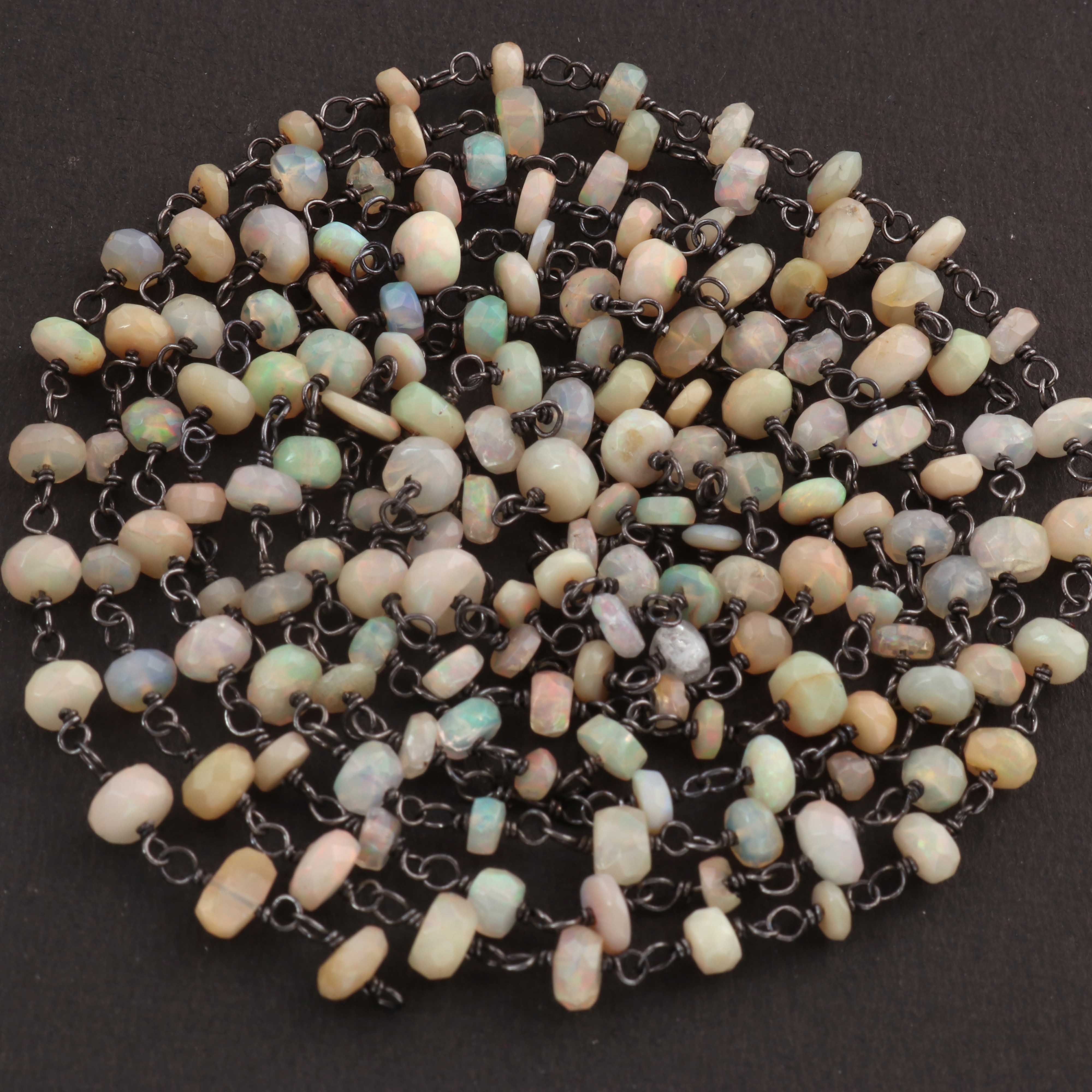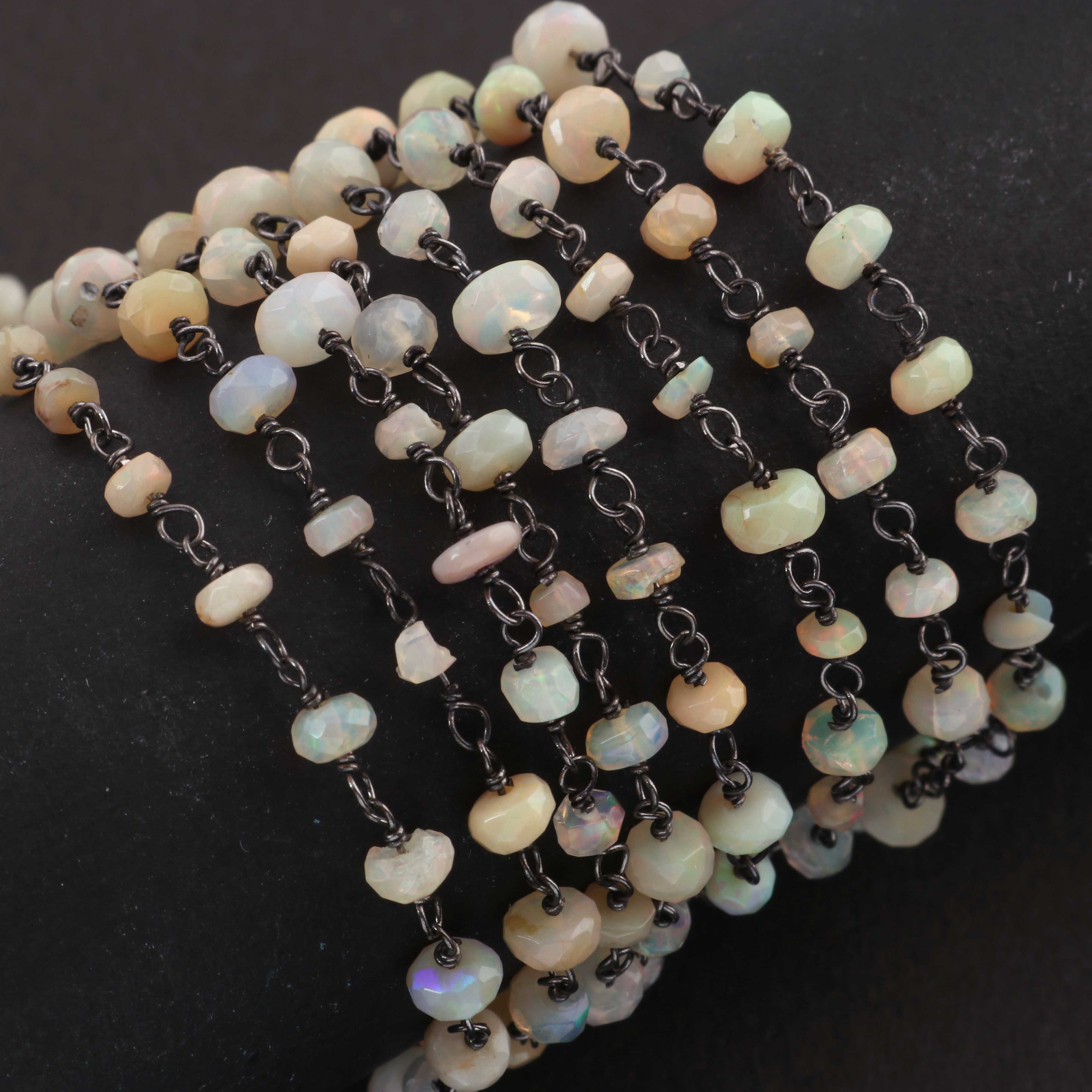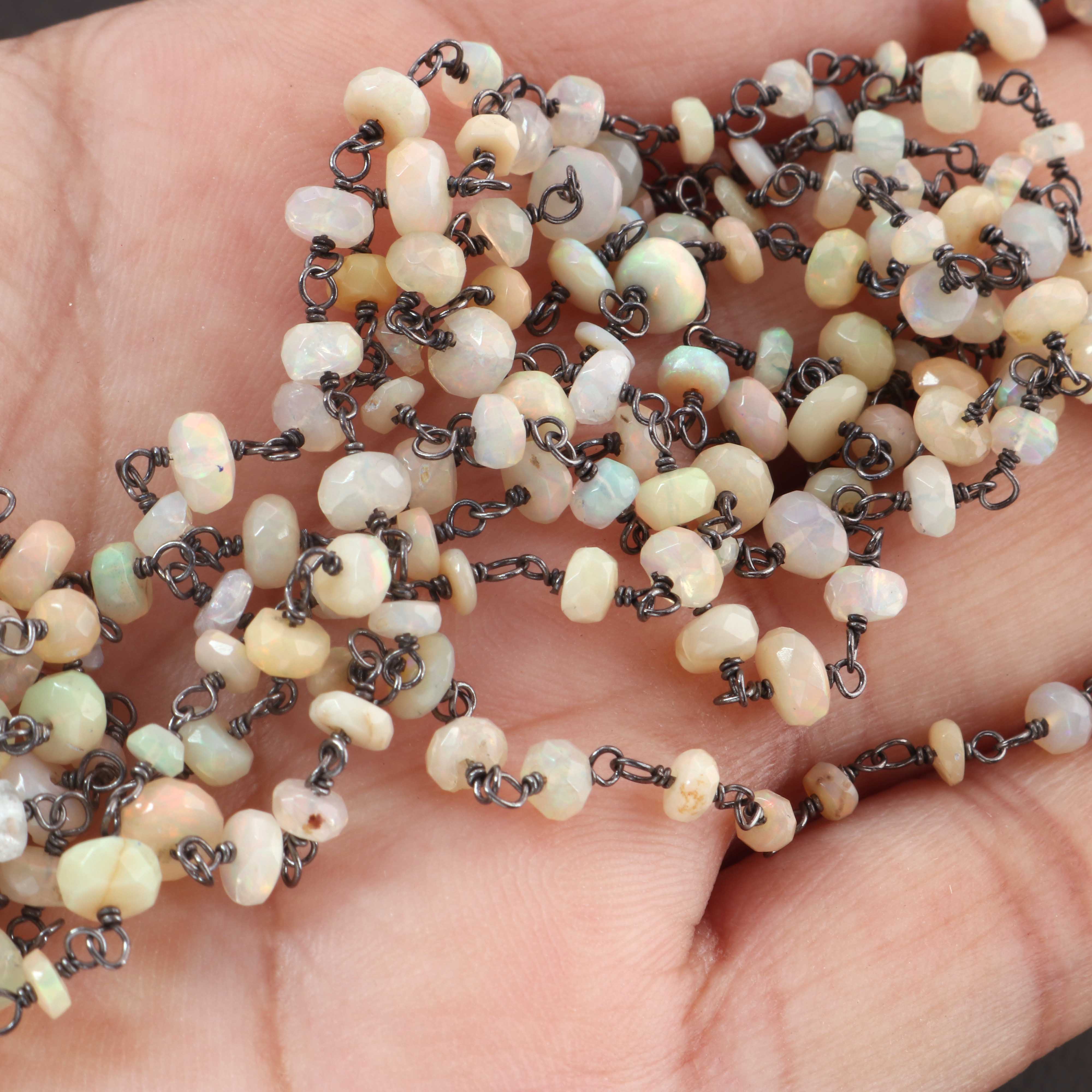 1 Feet Beautiful Ethiopian Welo Opal 3mm-5mm Rosary Style Beaded Chain - Ethiopian Welo Opal Beads 925 Oxidized Sterling Silver Chain SRC0013