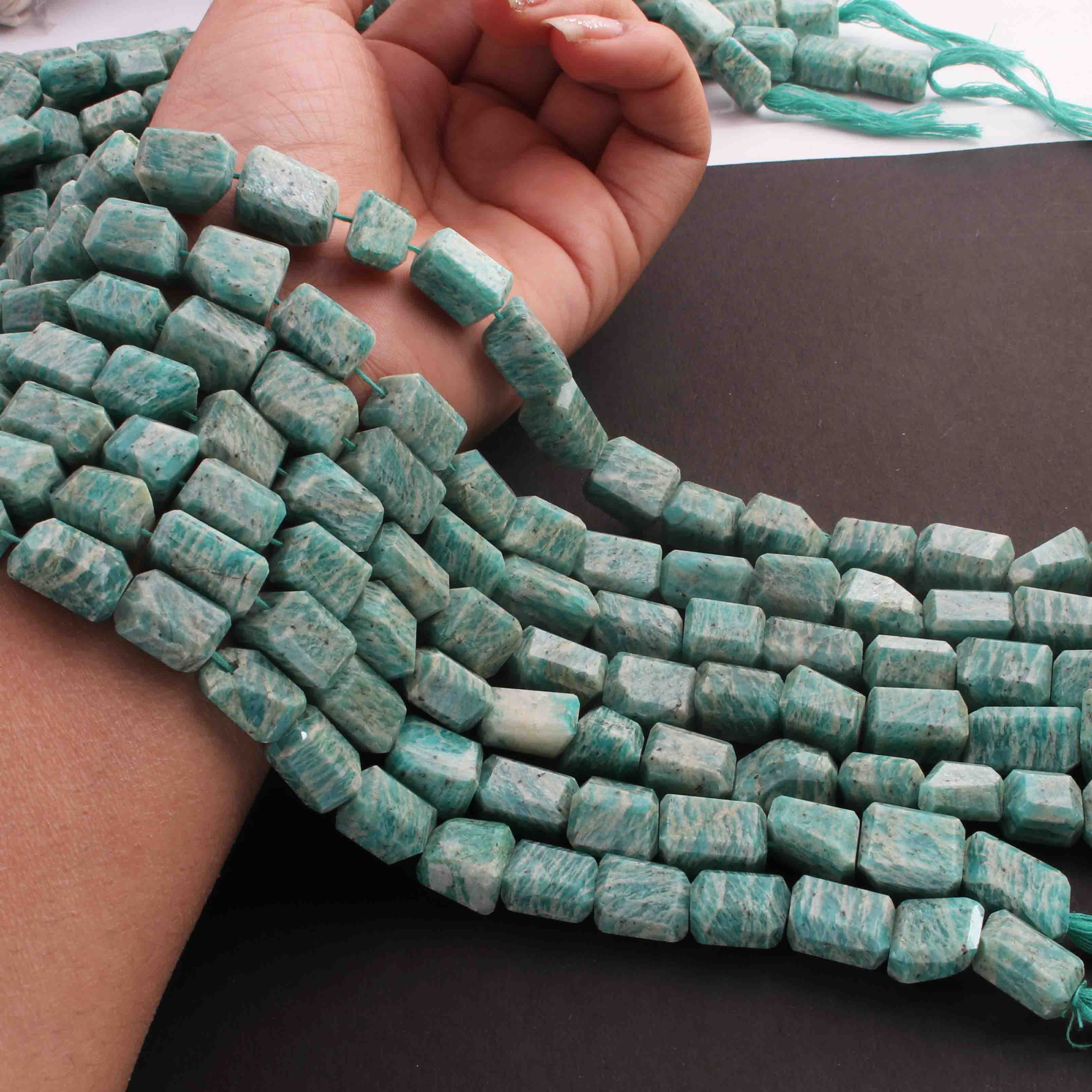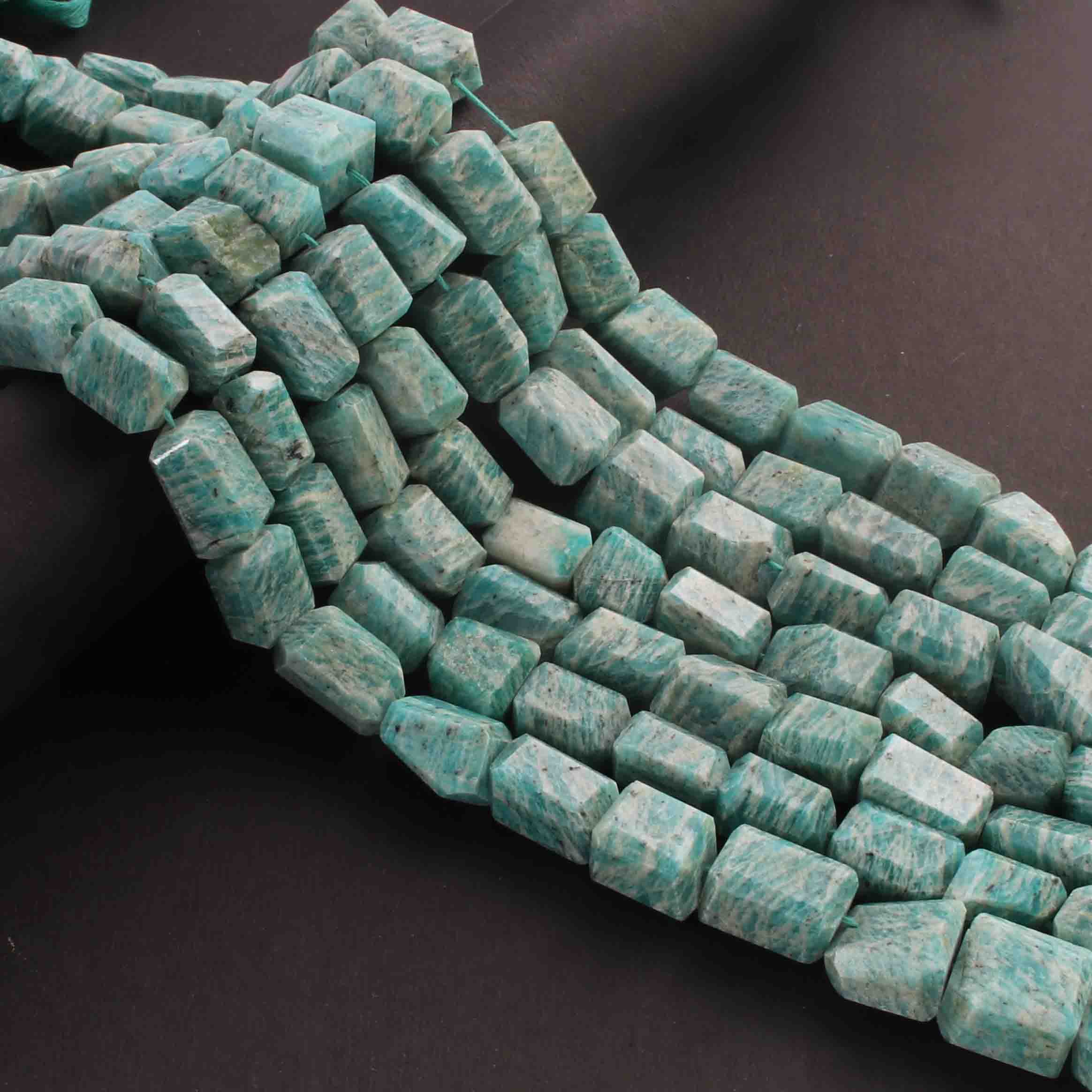 1 Long Strand Amzonite Faceted Tumbled Shape, Nuggets Beads , Step Cut , Briolettes - 12mmx9mm-15mmx9mm- 10 inches BR01426