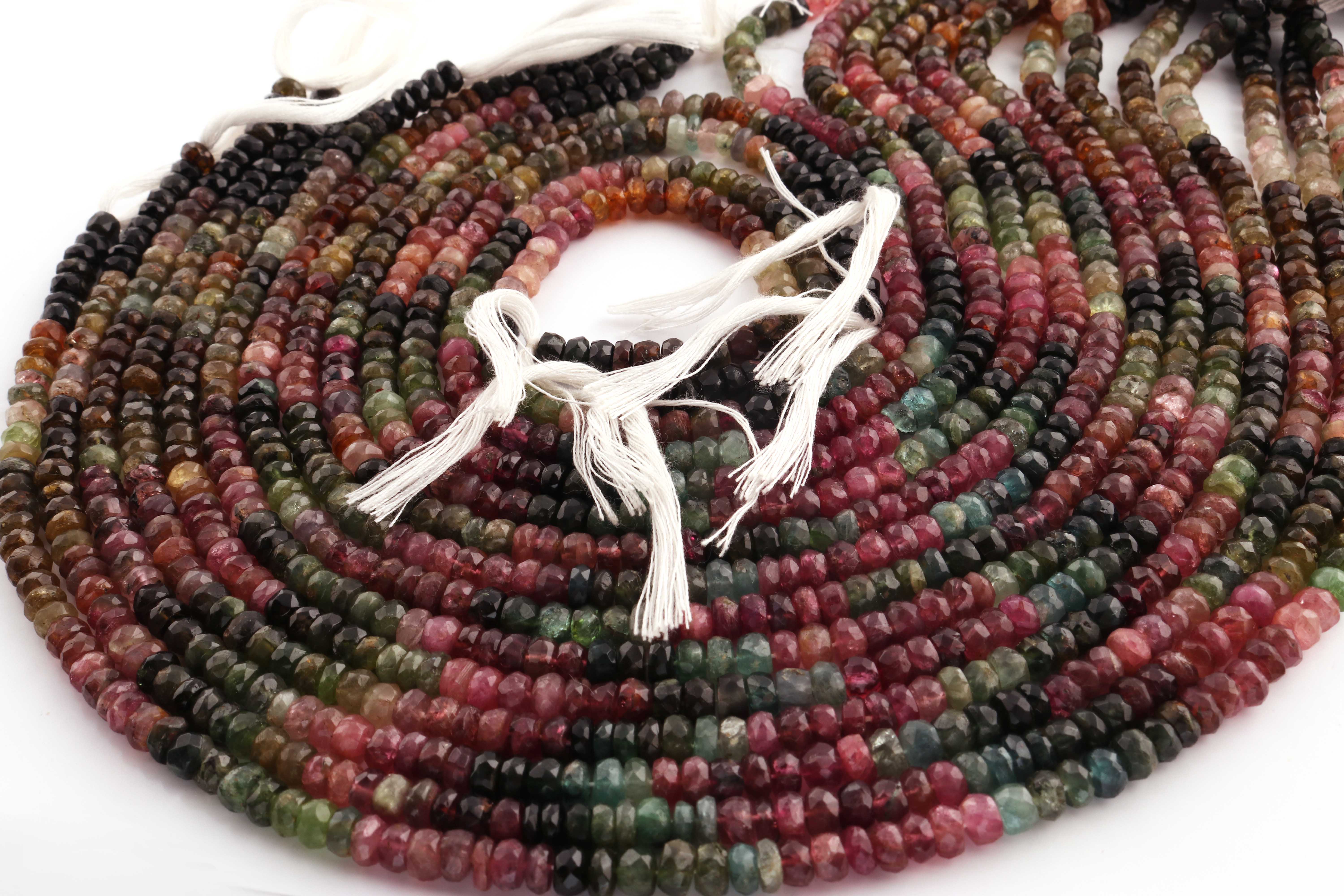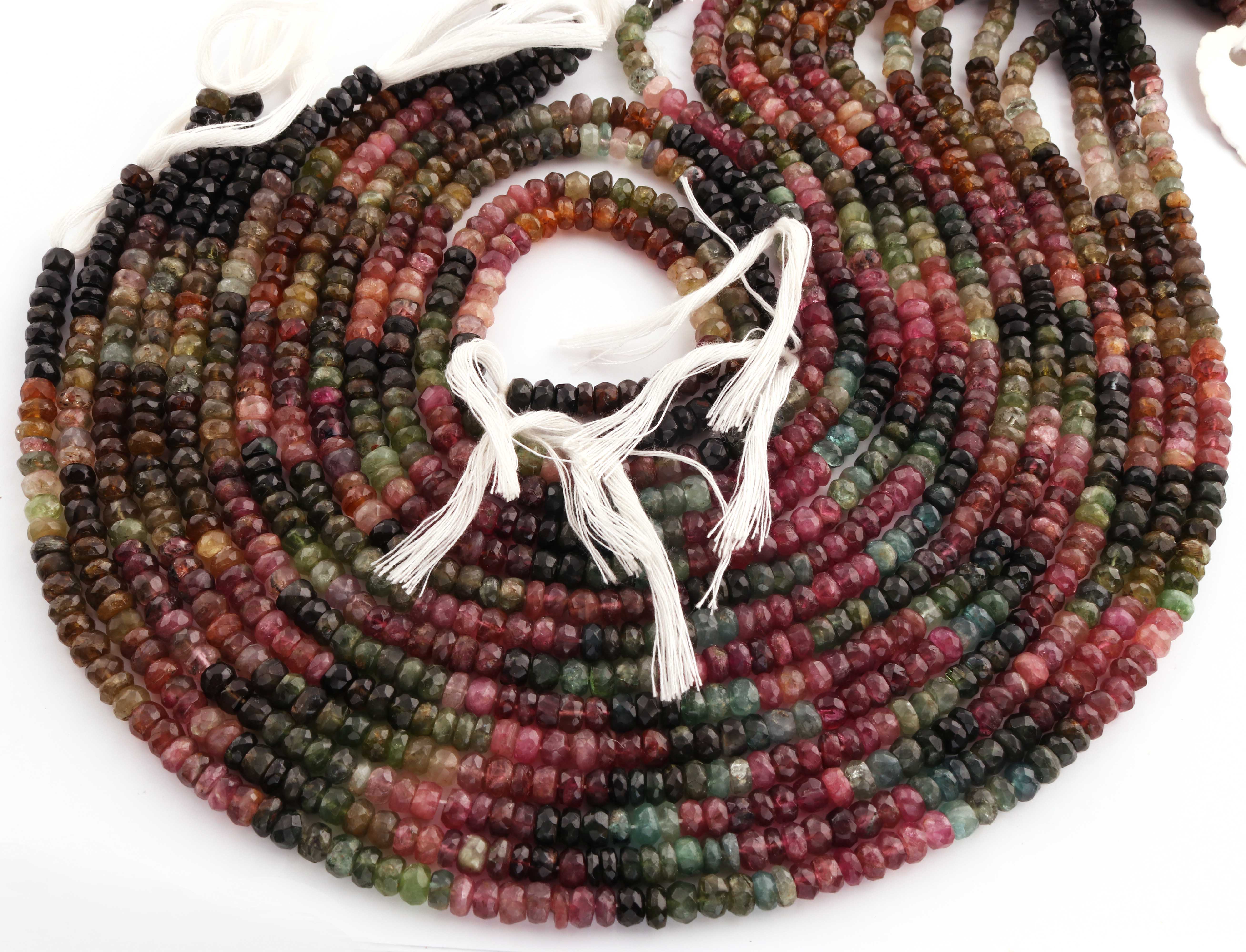 1 Long Strand Multi Tourmaline Faceted Rondelles - Semi Precious Gemstone Multi Tourmaline Rondelles Beads - 5mm-14 Inches BR03661