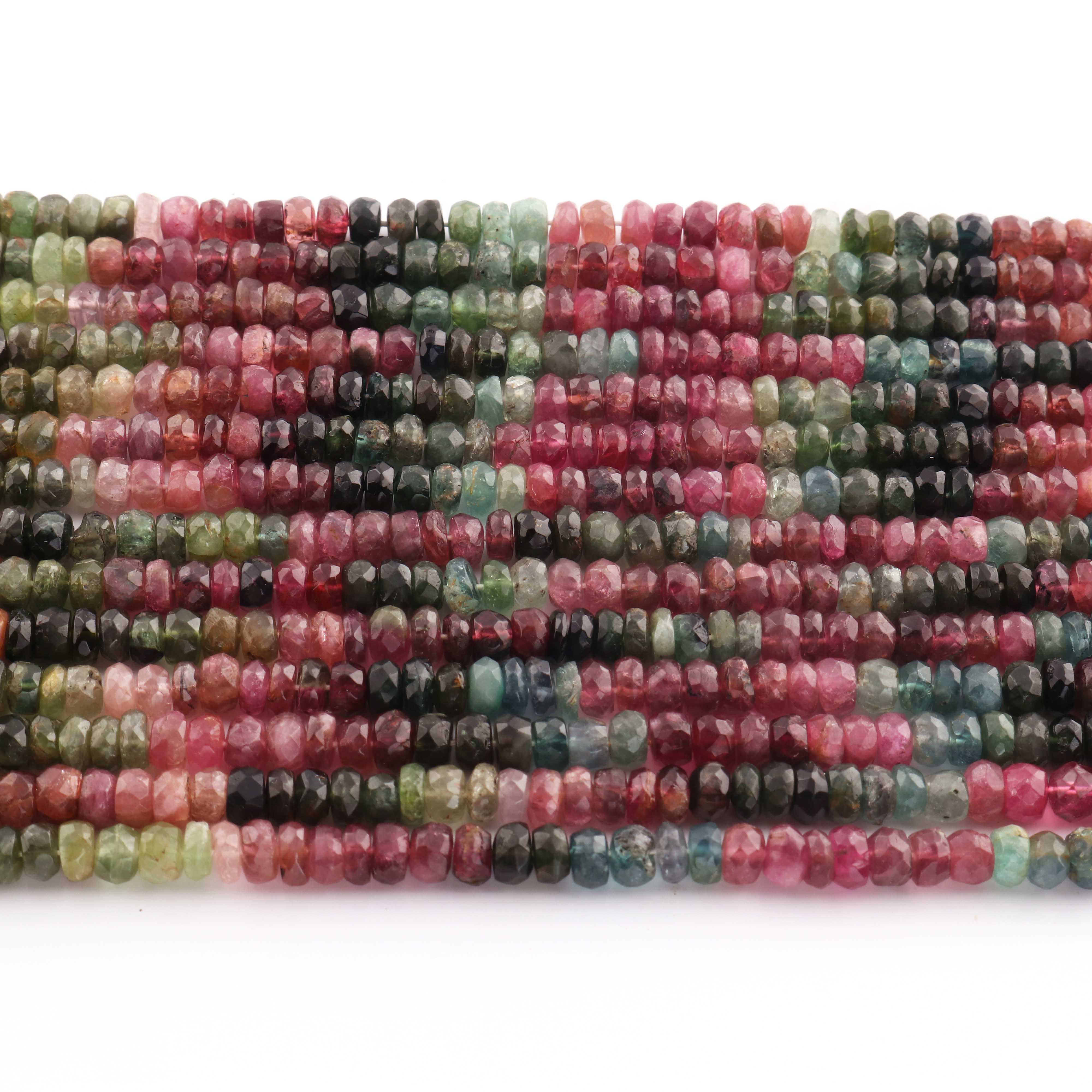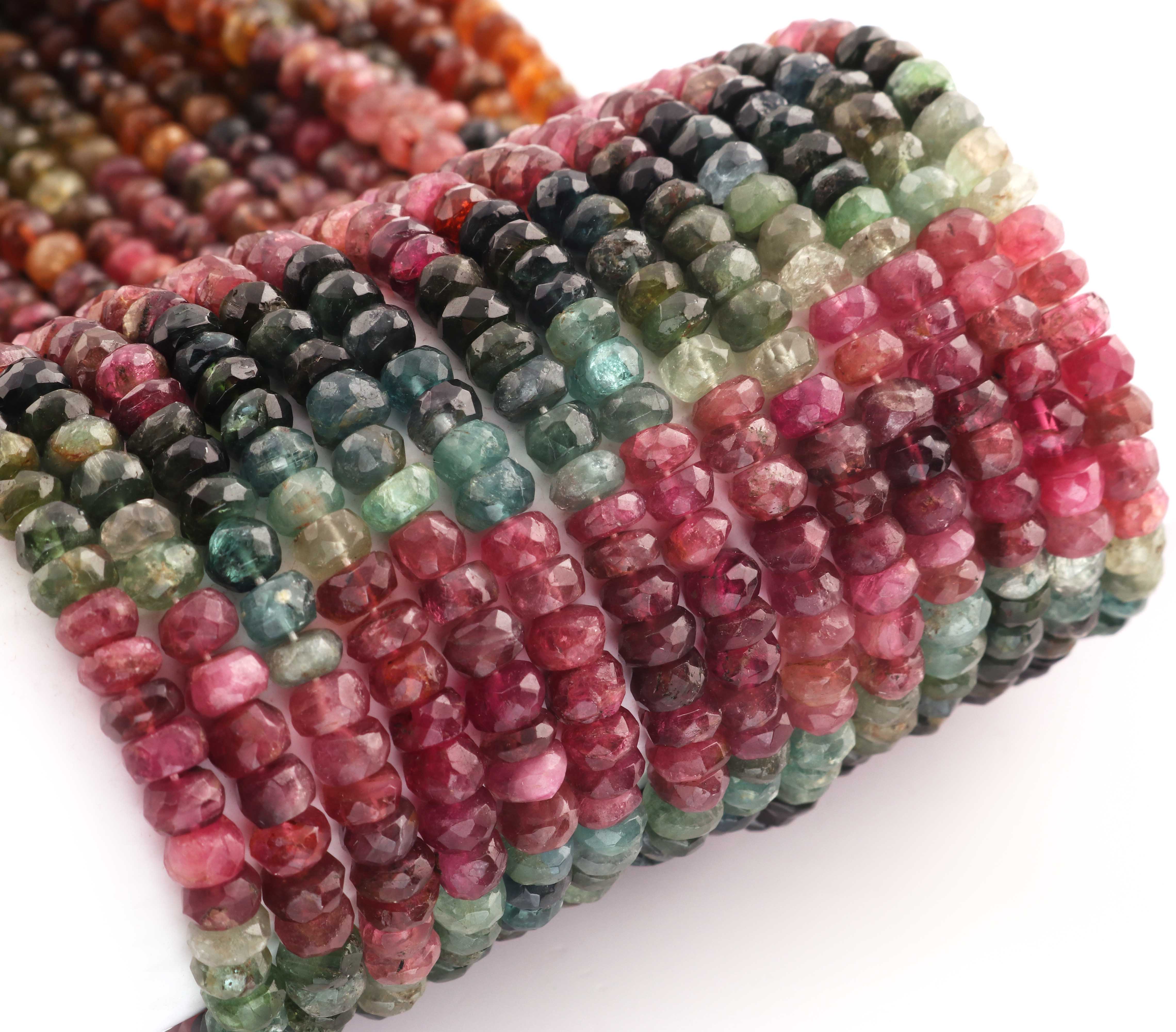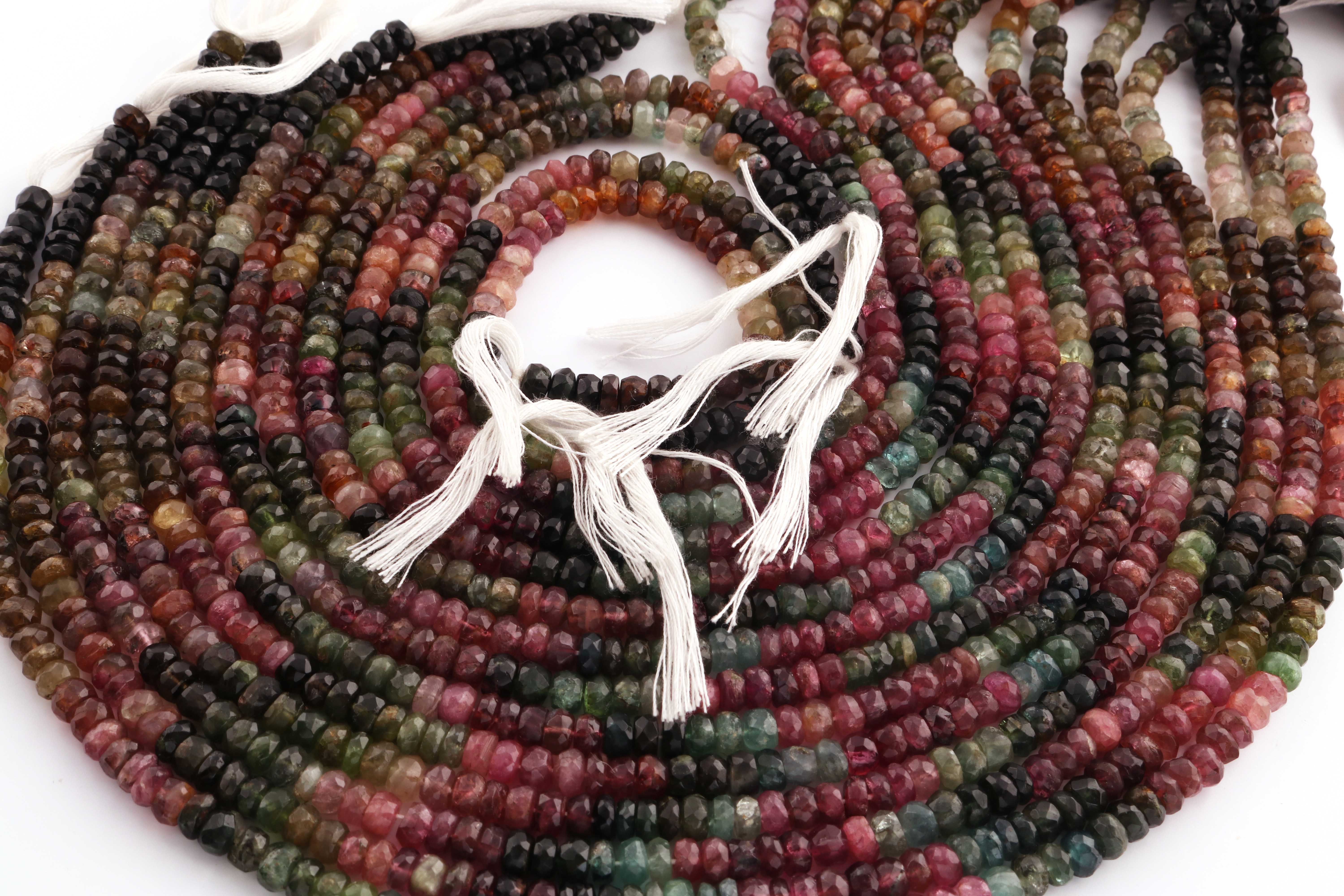 1  Long Strand Multi Tourmaline Faceted Rondelles - Semi Precious Gemstone Multi Tourmaline Rondelles Beads - 5mm-14 Inches BR03661