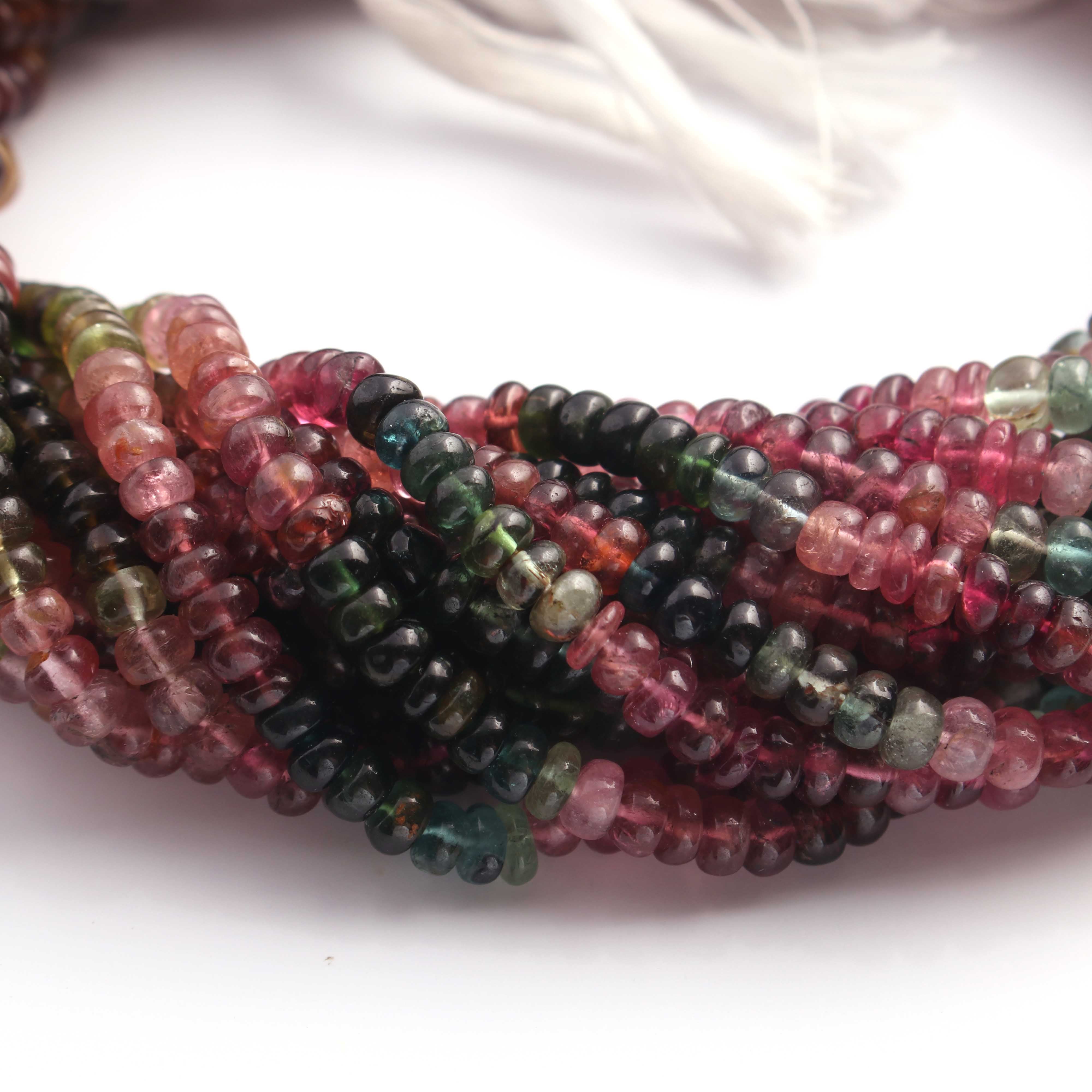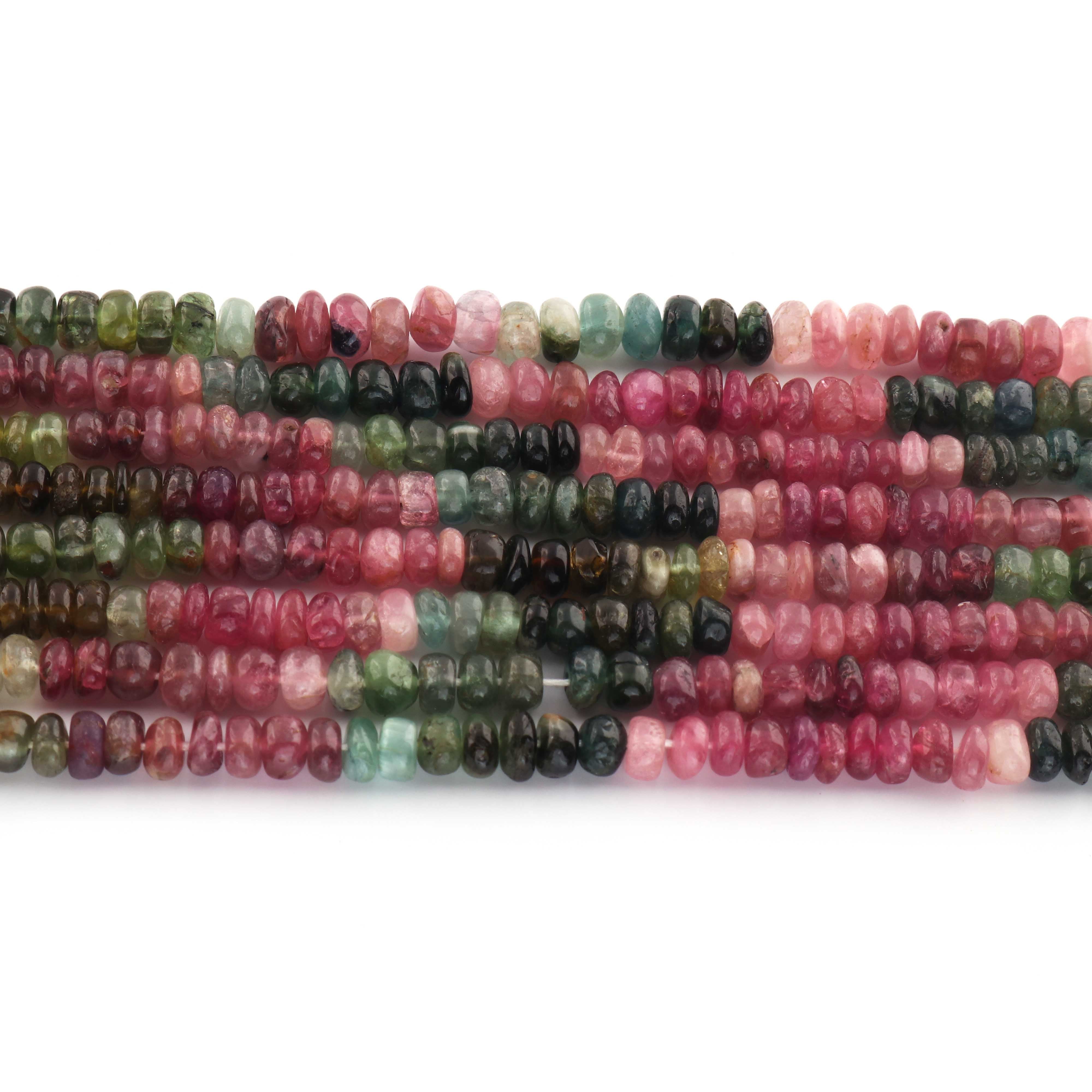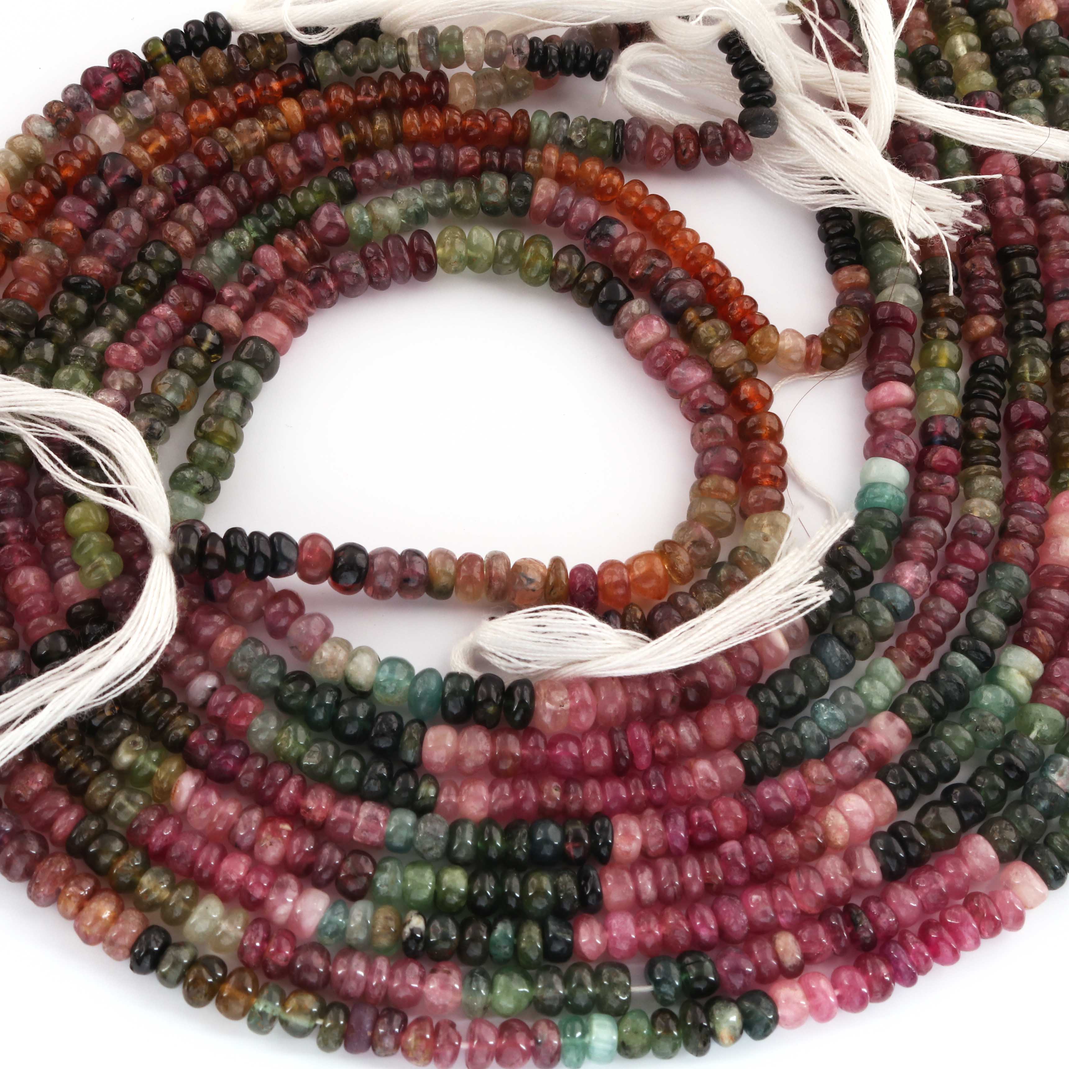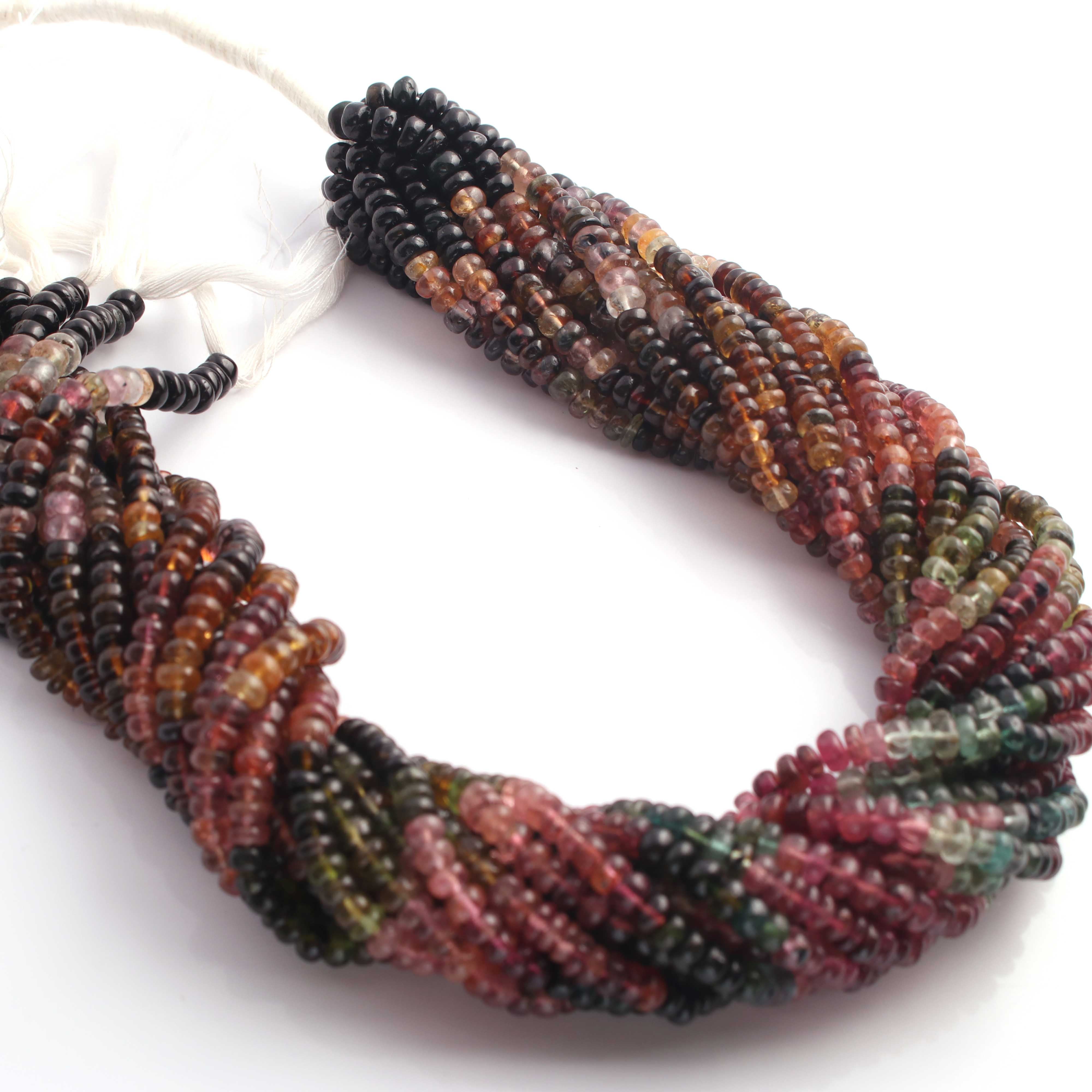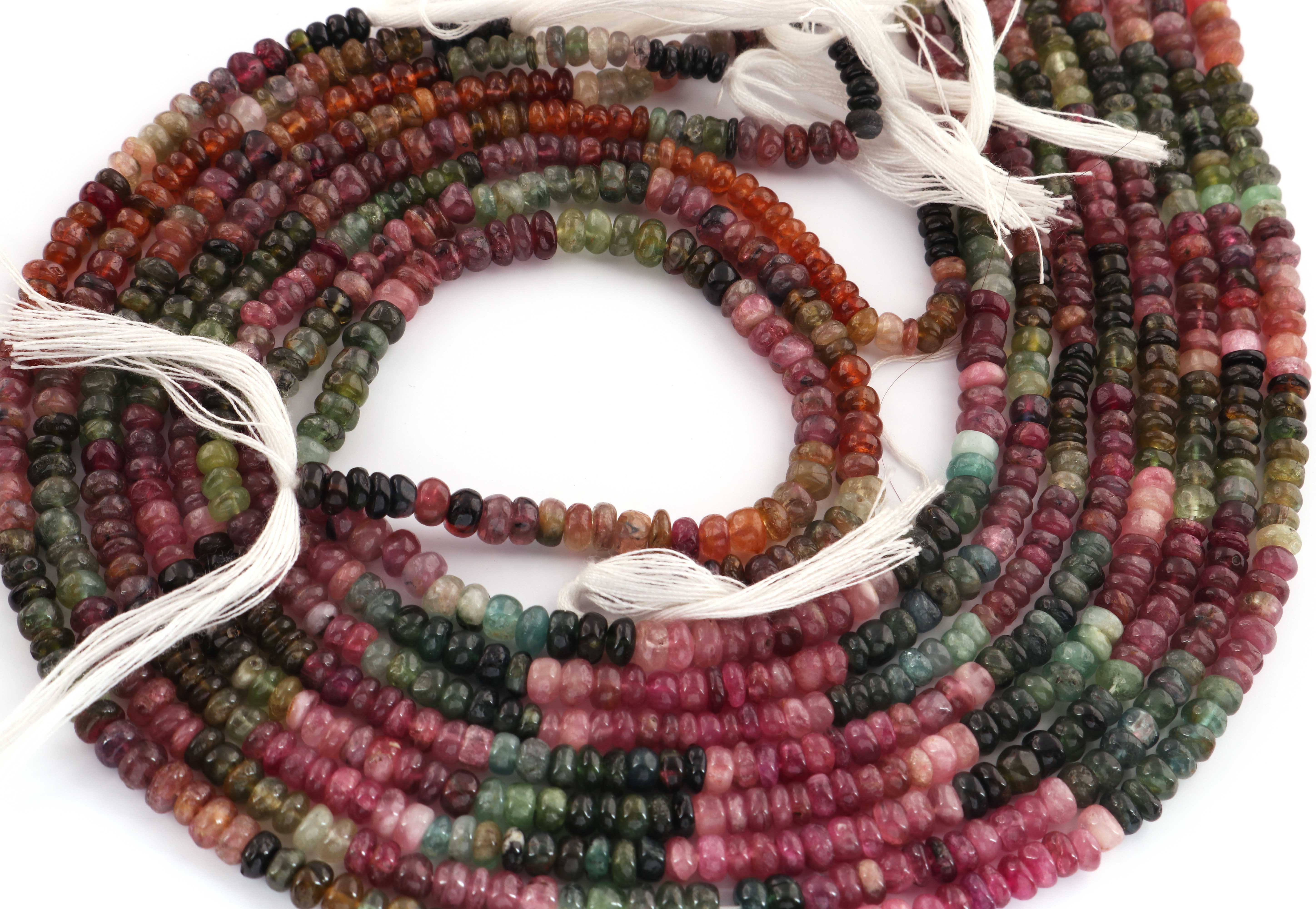 1 Long Strand Multi Tourmaline  Smooth Roundelles -Tourmaline Roundel Beads - Gemstone Rondelles 4mm-5mm-14 Inches BR02514