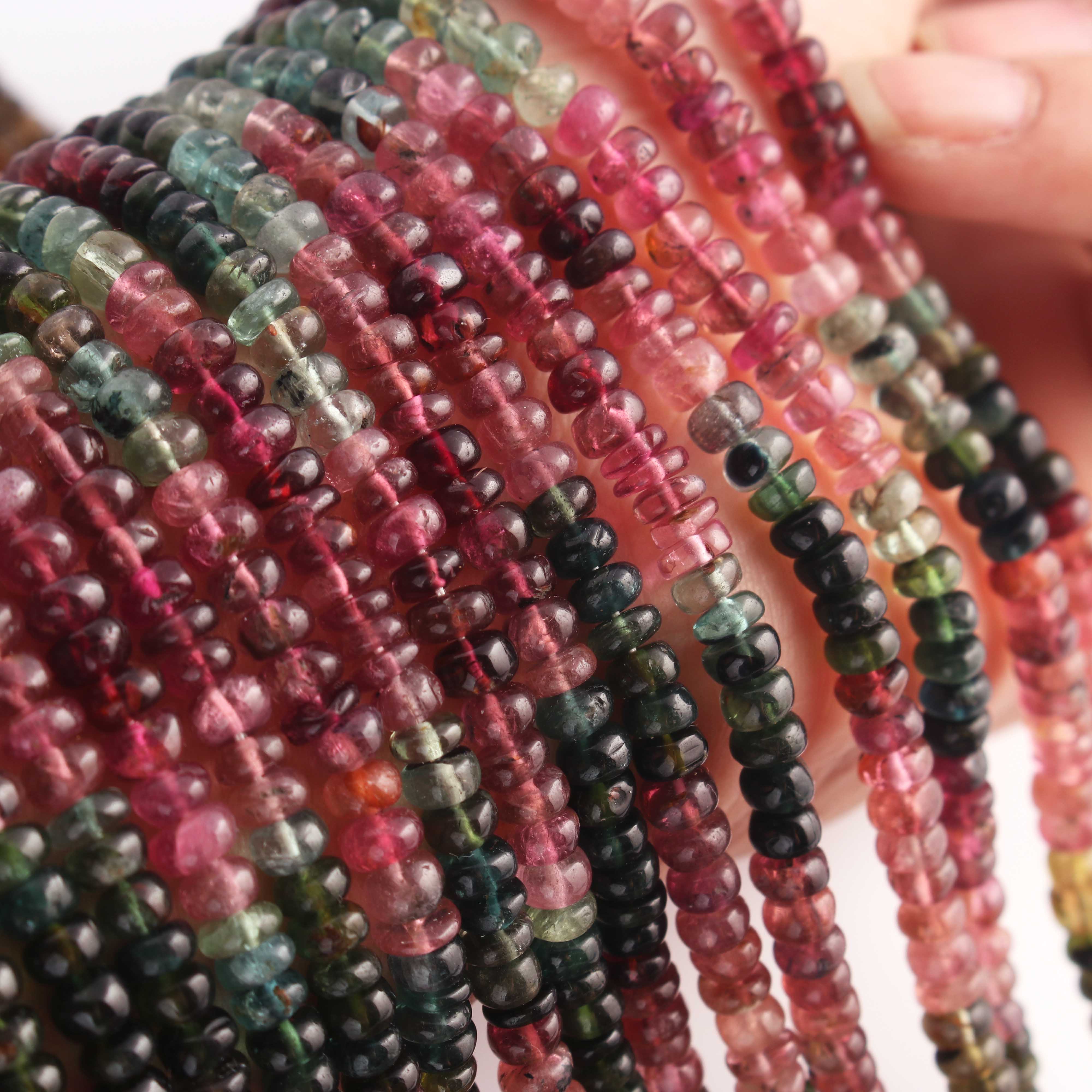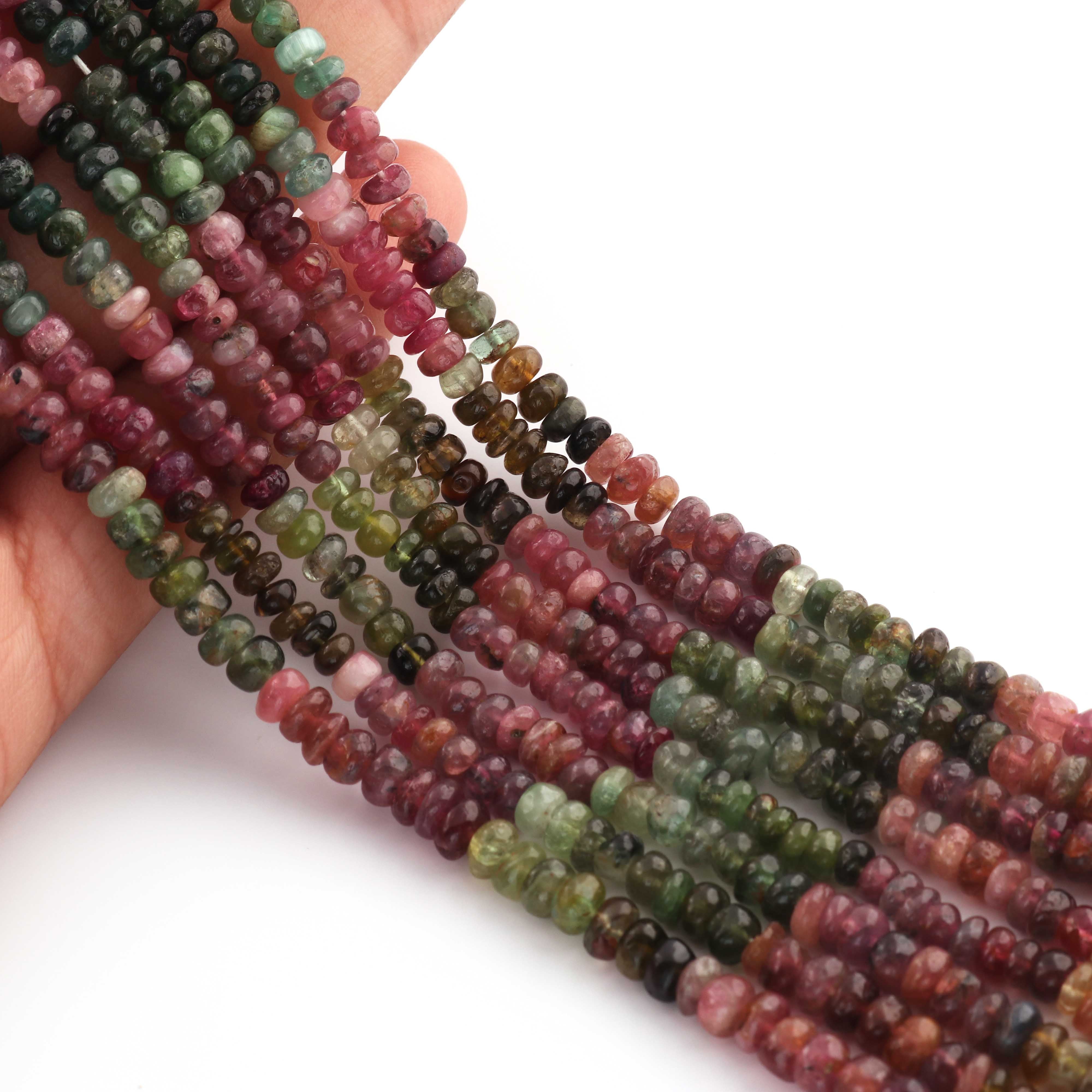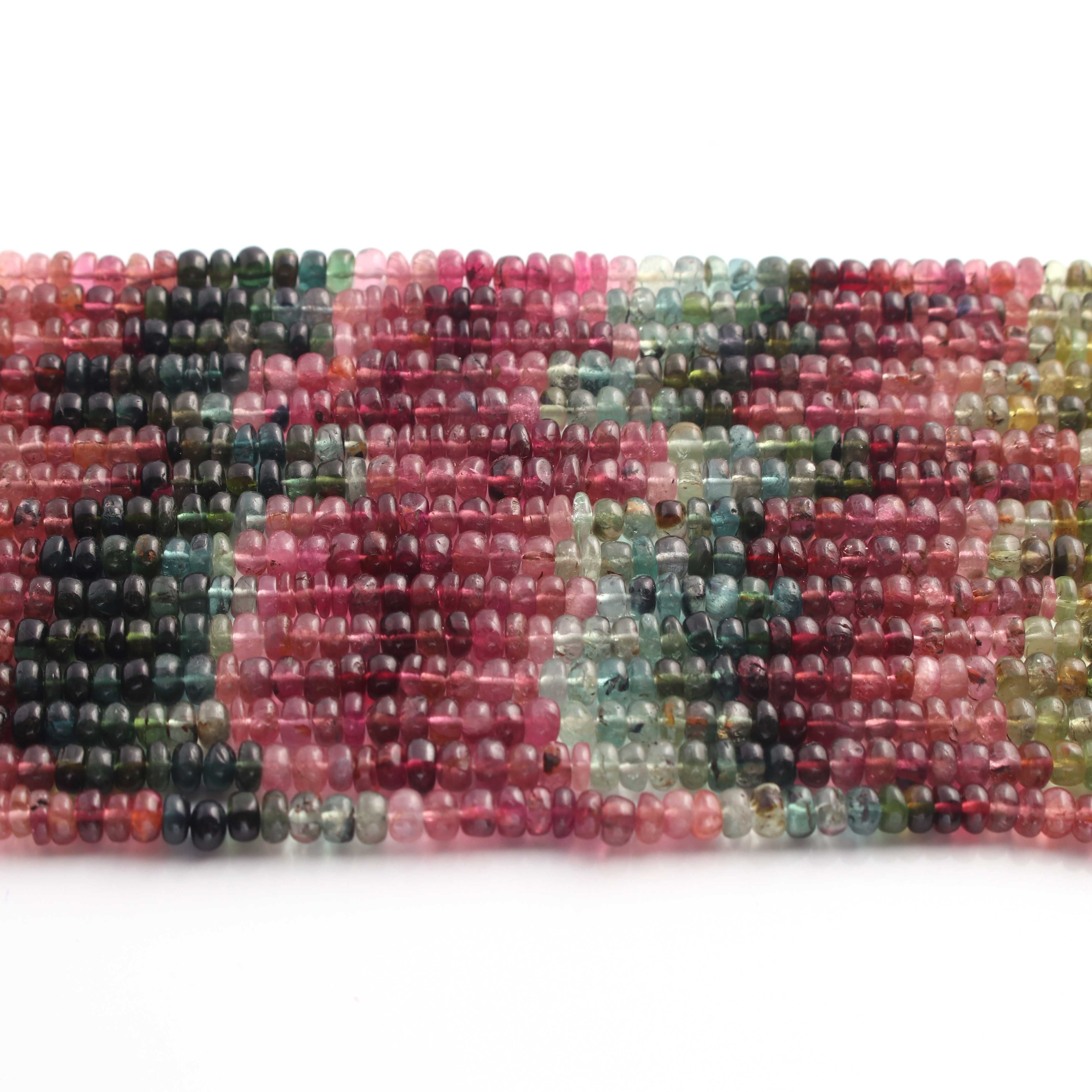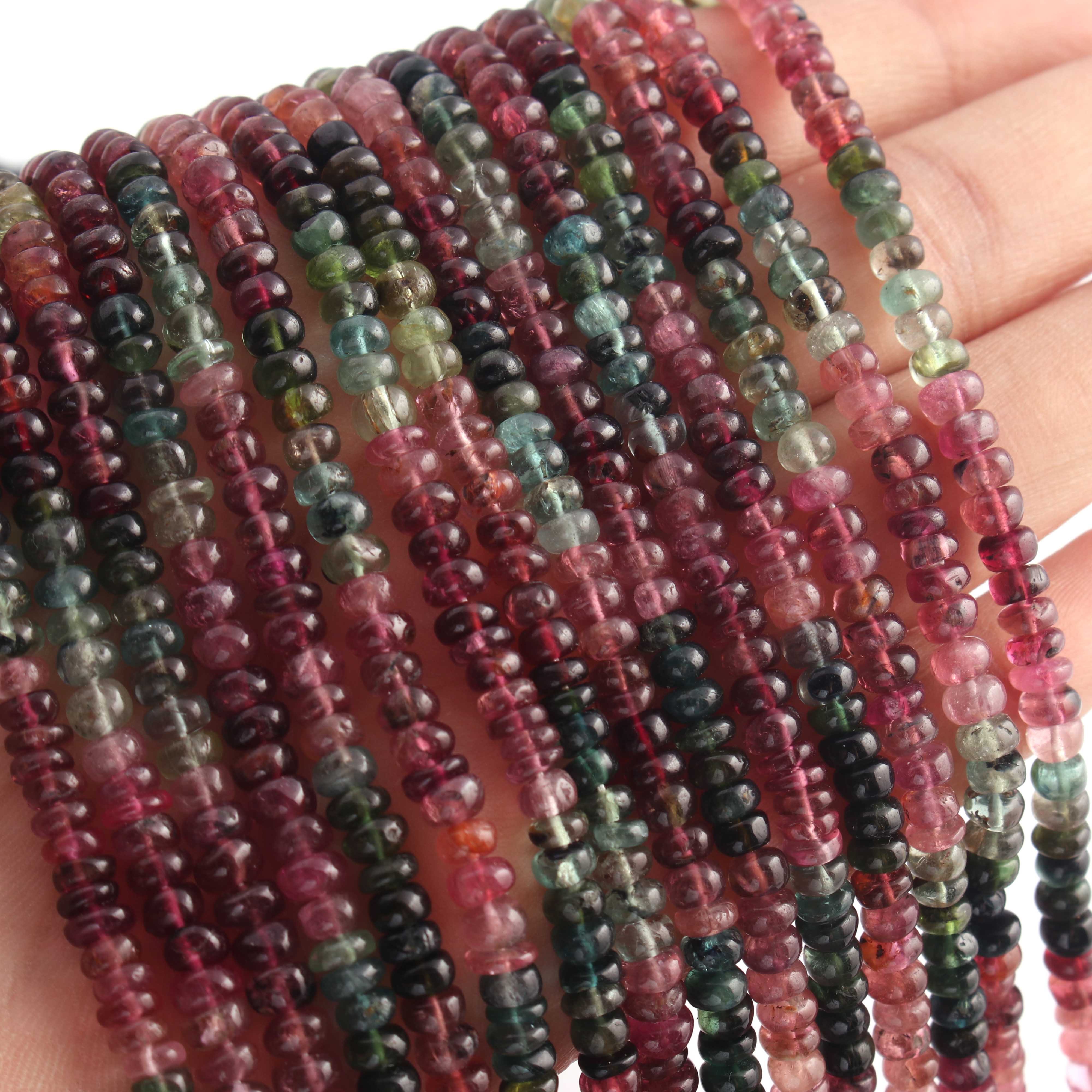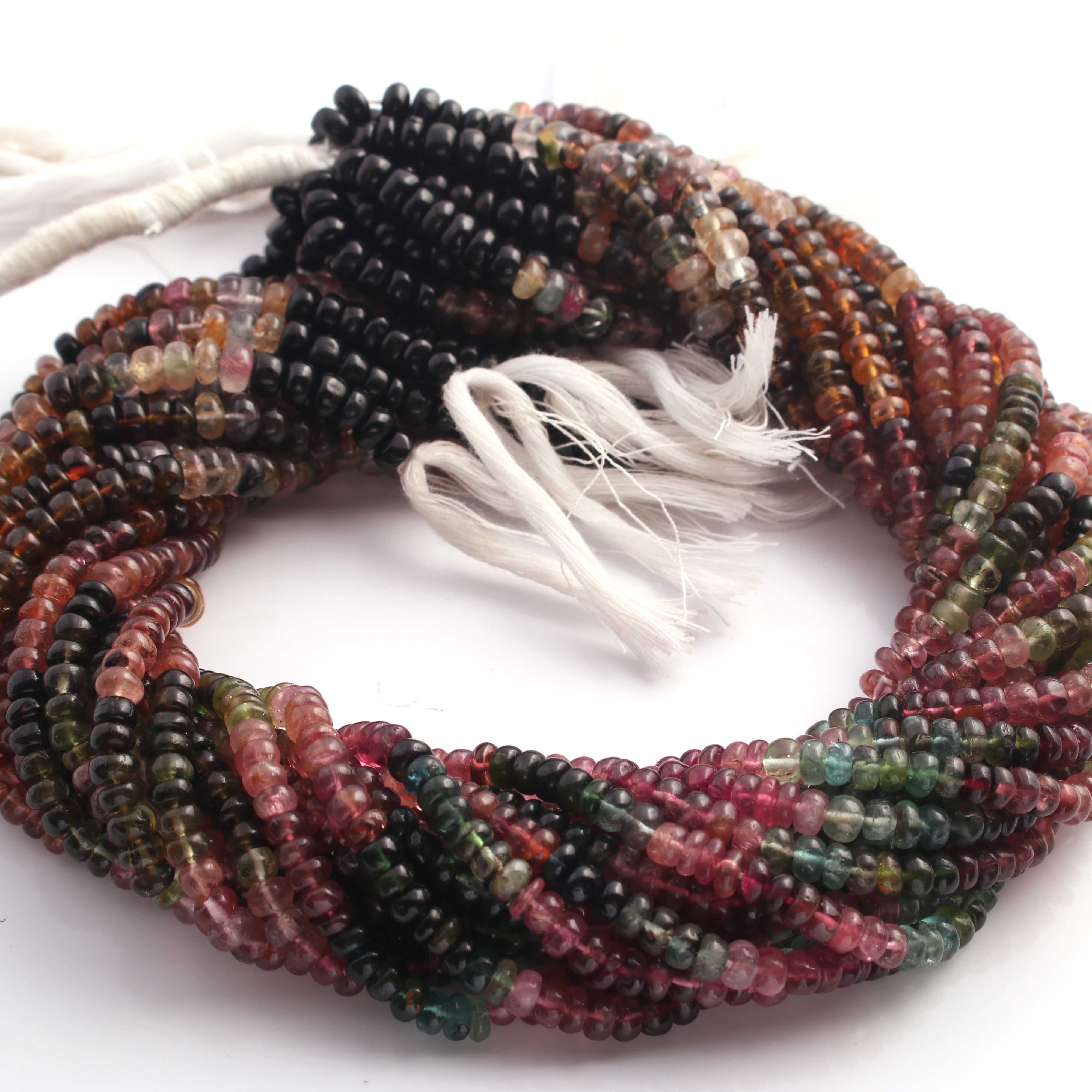 1 Long Strand Multi Tourmaline  Smooth Roundelles -Tourmaline Roundel Beads - Gemstone Rondelles 4mm-5mm-14 Inches BR02514
