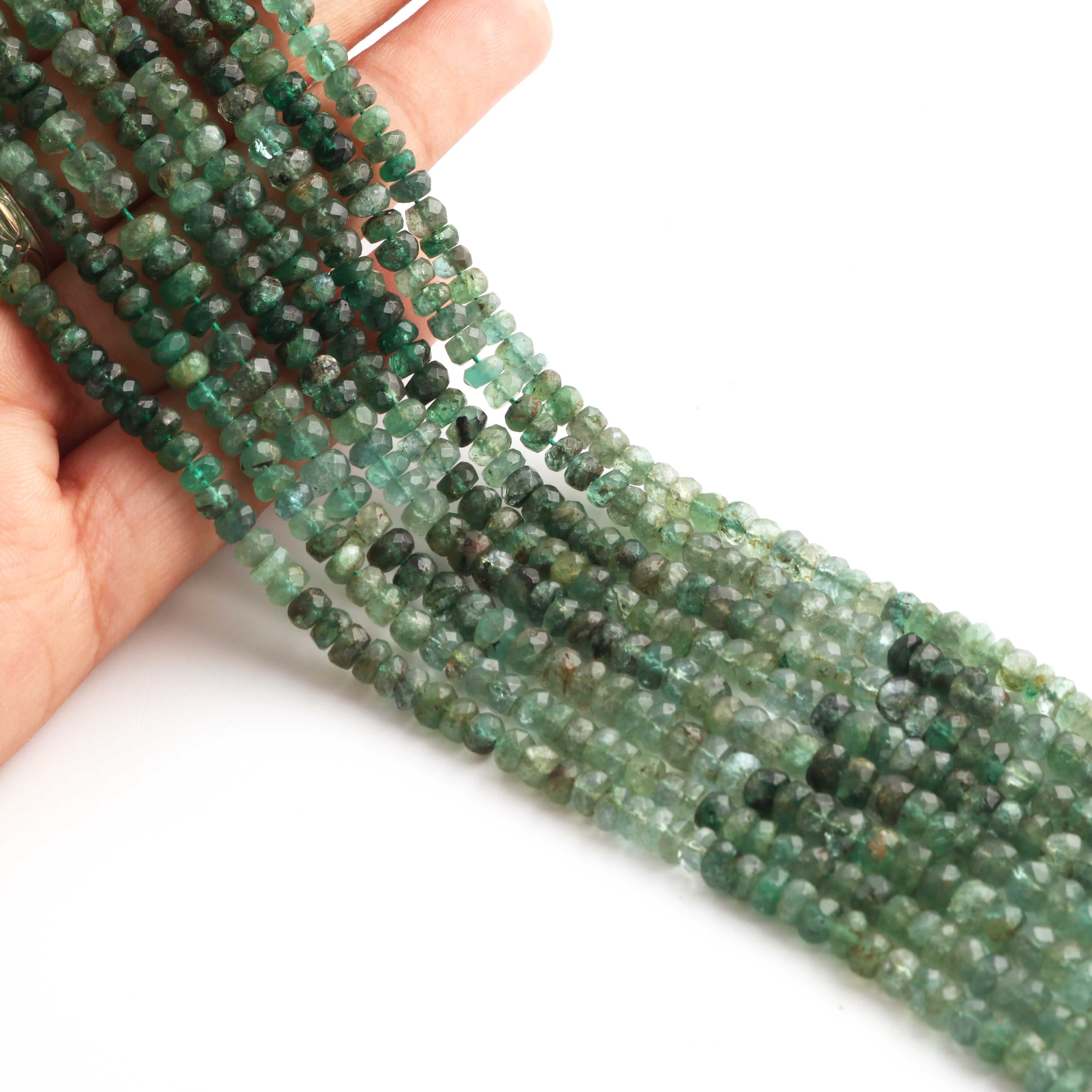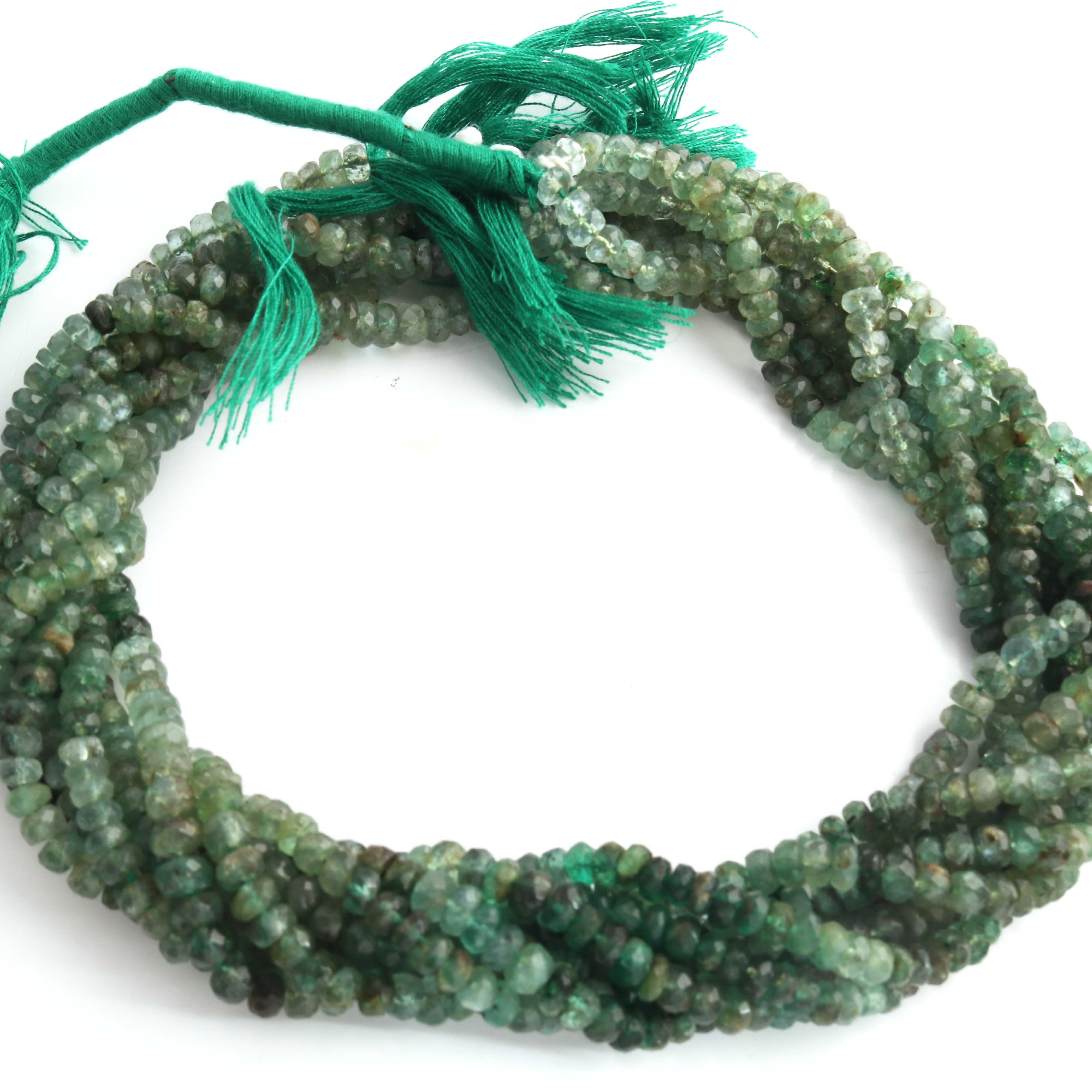 1  Long Strand Shaded Emerald Faceted Rondelles- Semi precious Gemstone Rondelles  Beads-4mm-5mm-13.5 Inches BR03212