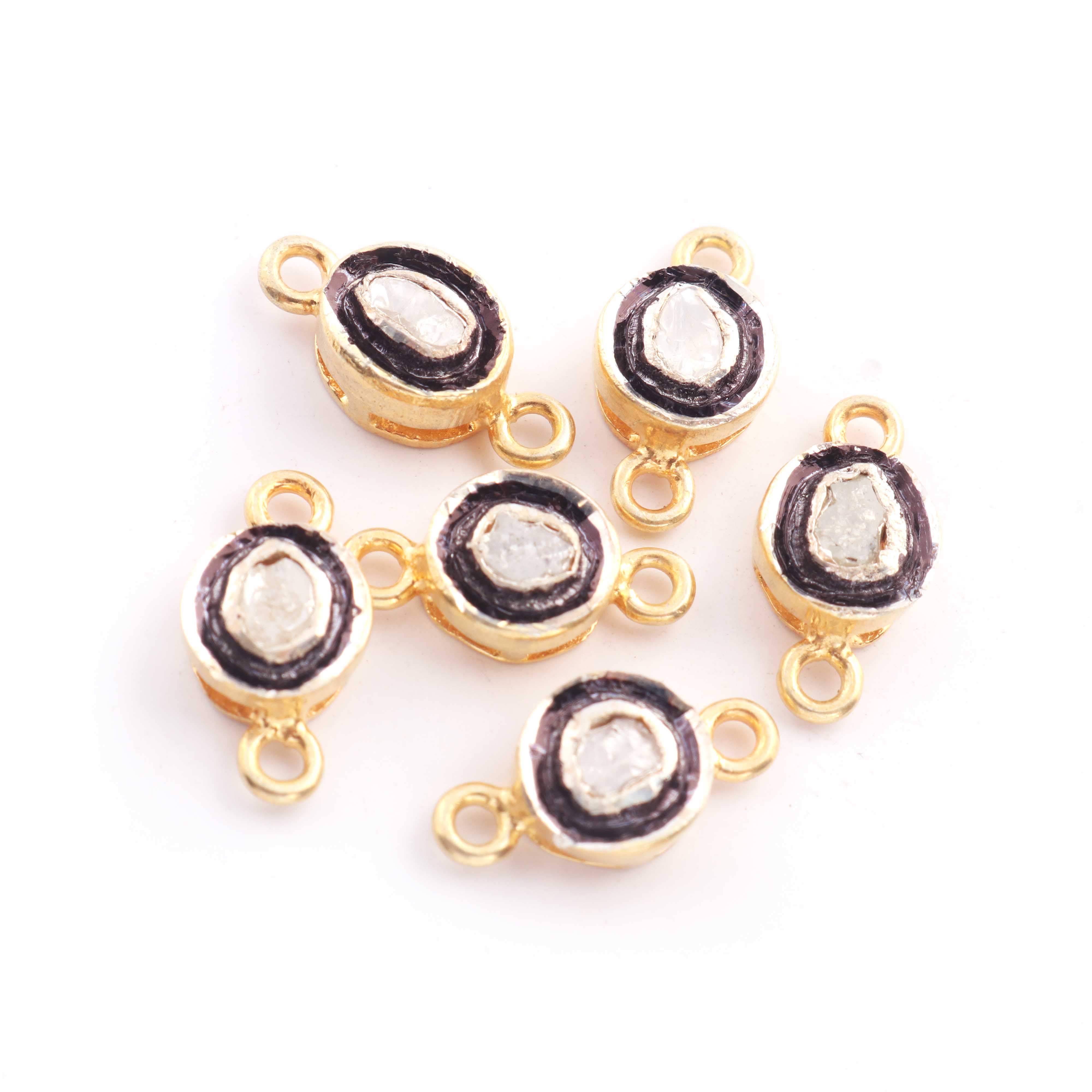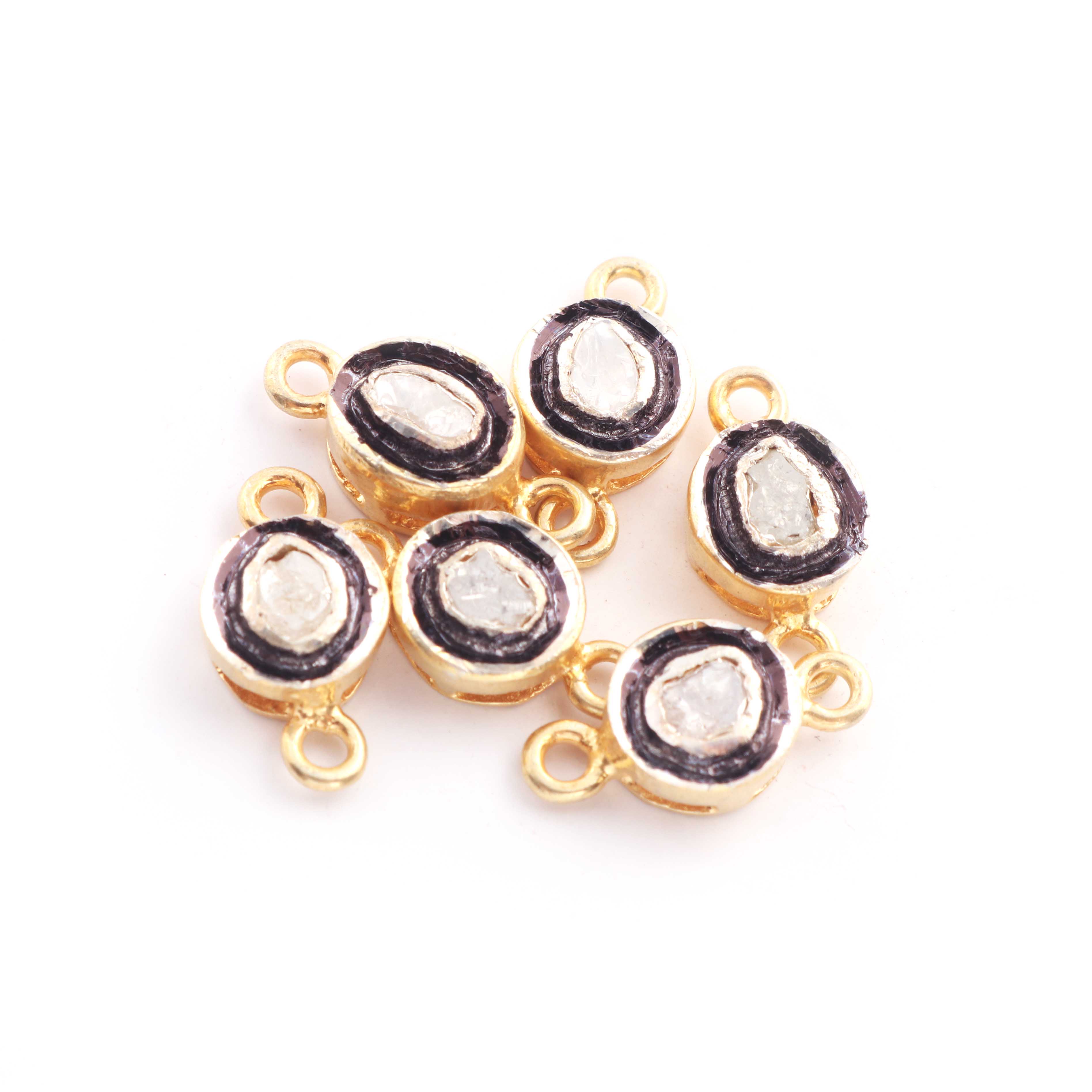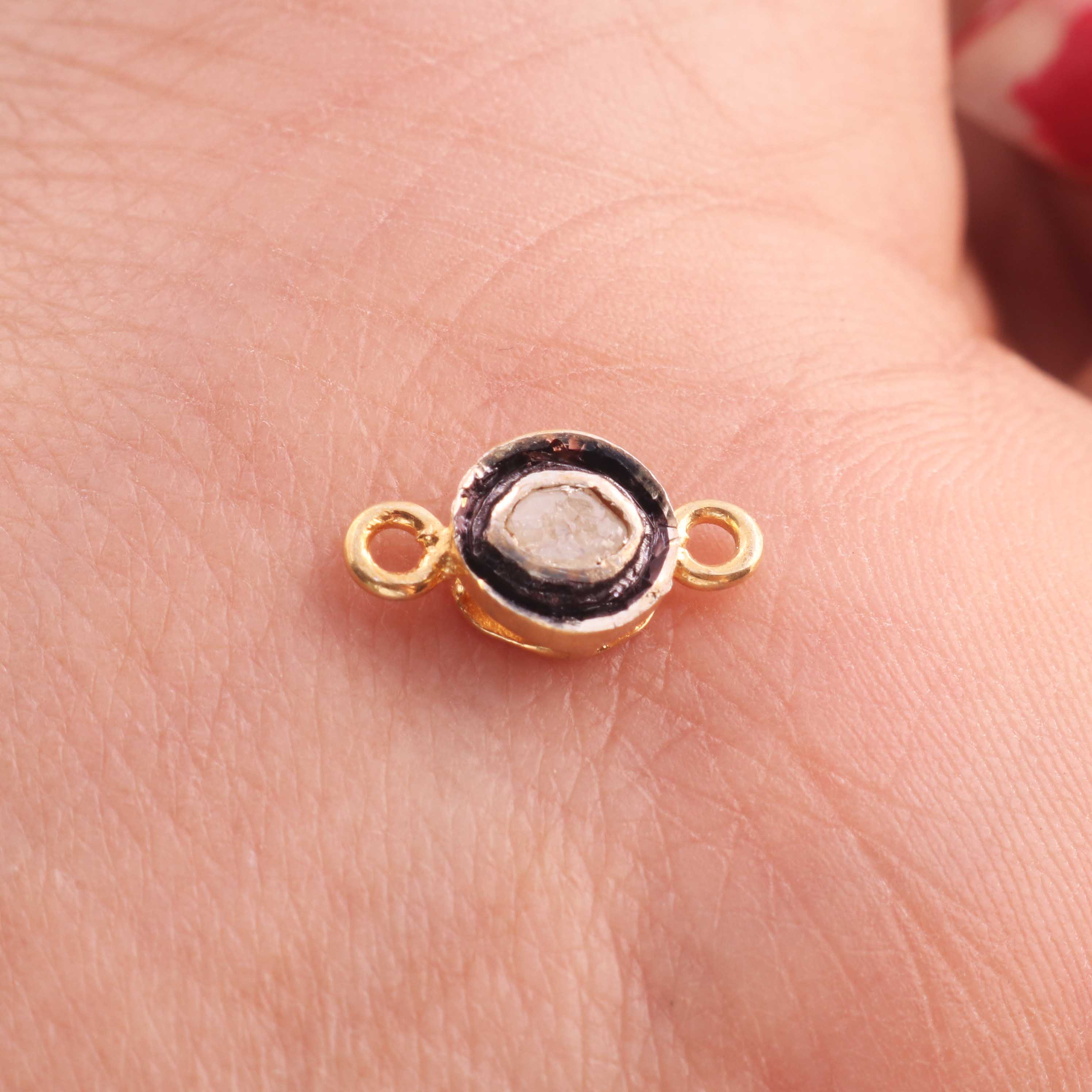 1 Pc Pave Diamond Center In Rose Cut Diamond Connector - 925 Sterling Vermeil- Oval Polki Connector 13mmx7mm PDC1377