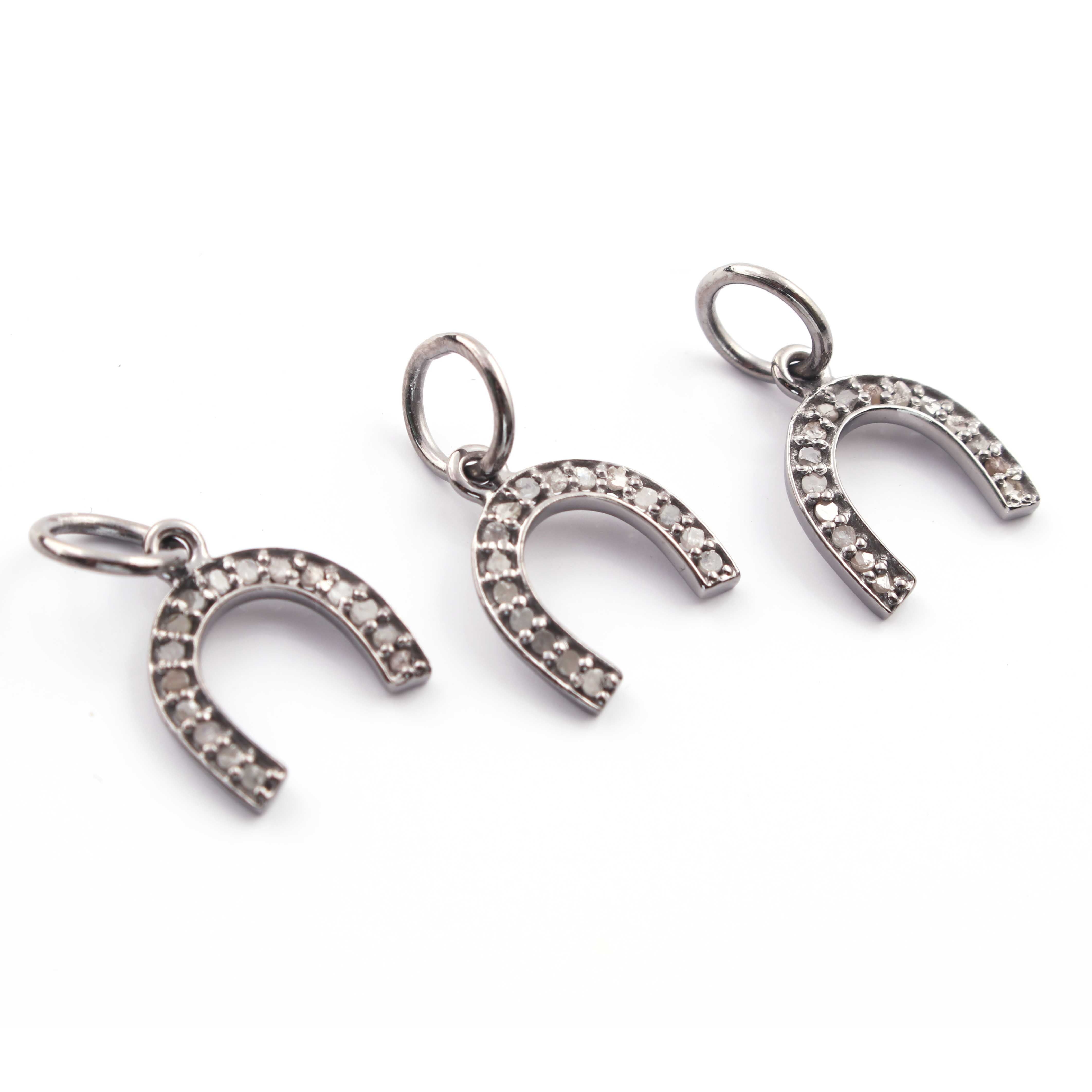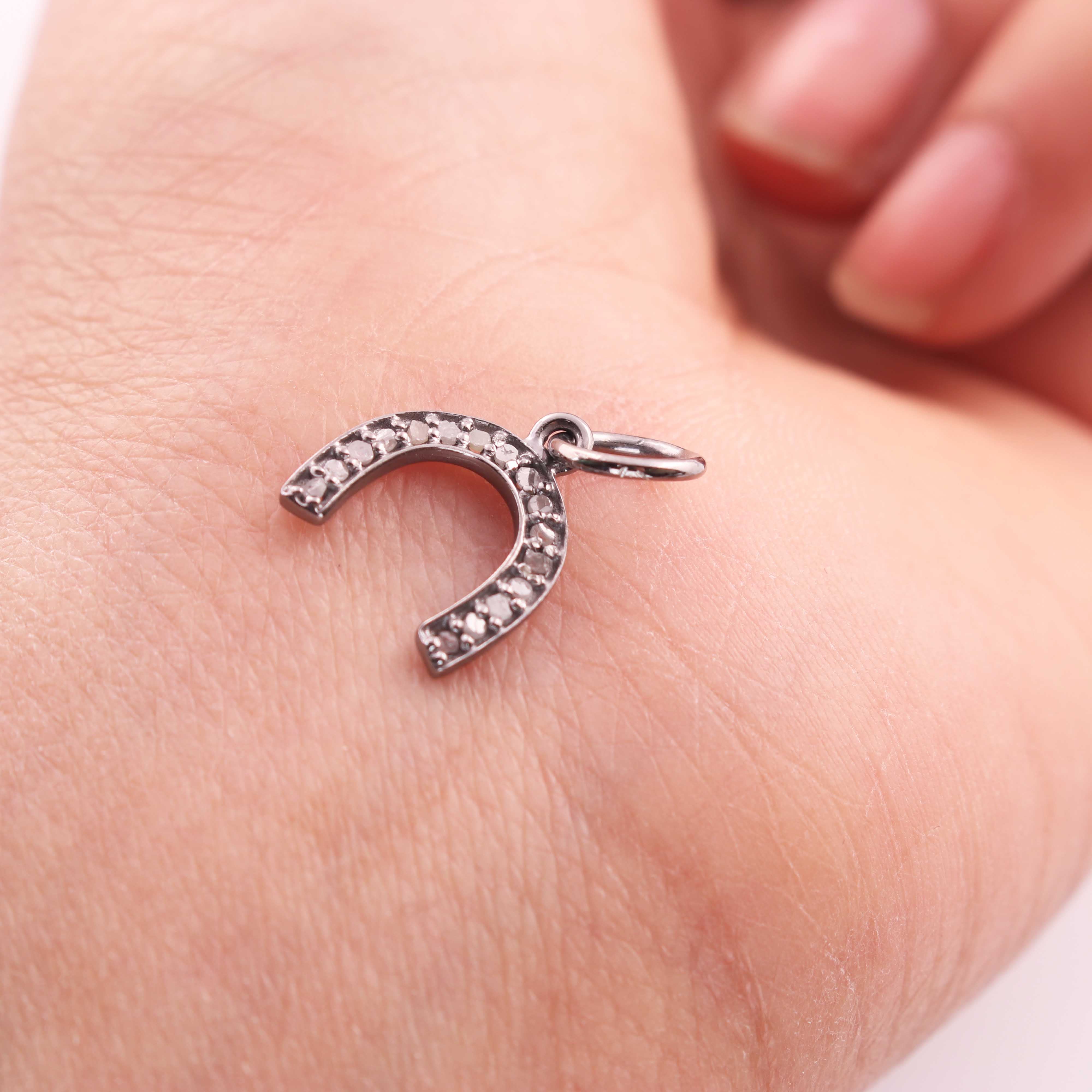 1 Pc Pave Diamond Horse shoe Charm Pendant ,925 Sterling Silver Charm, Pave diamond Finding, 14mmX12mm PDC00188