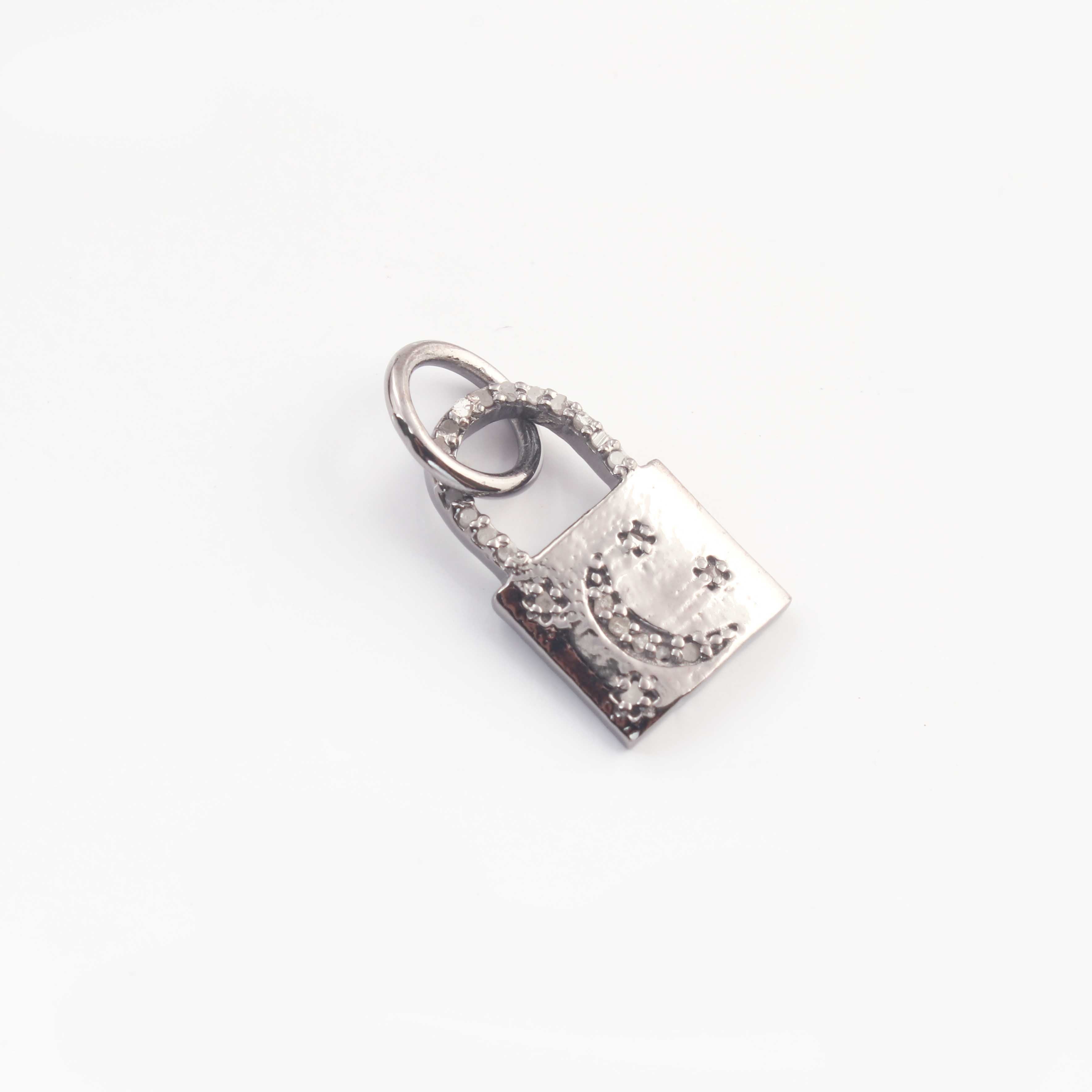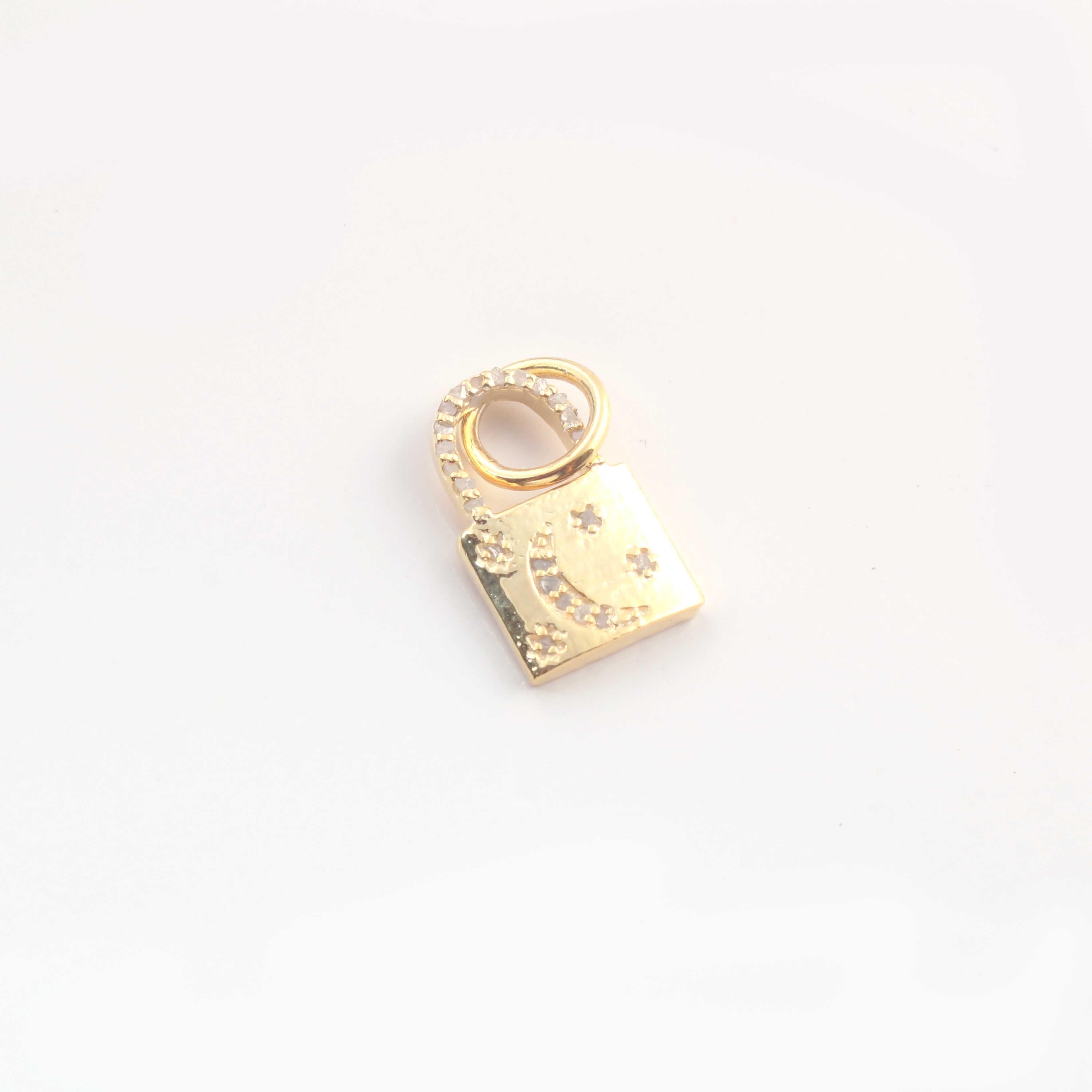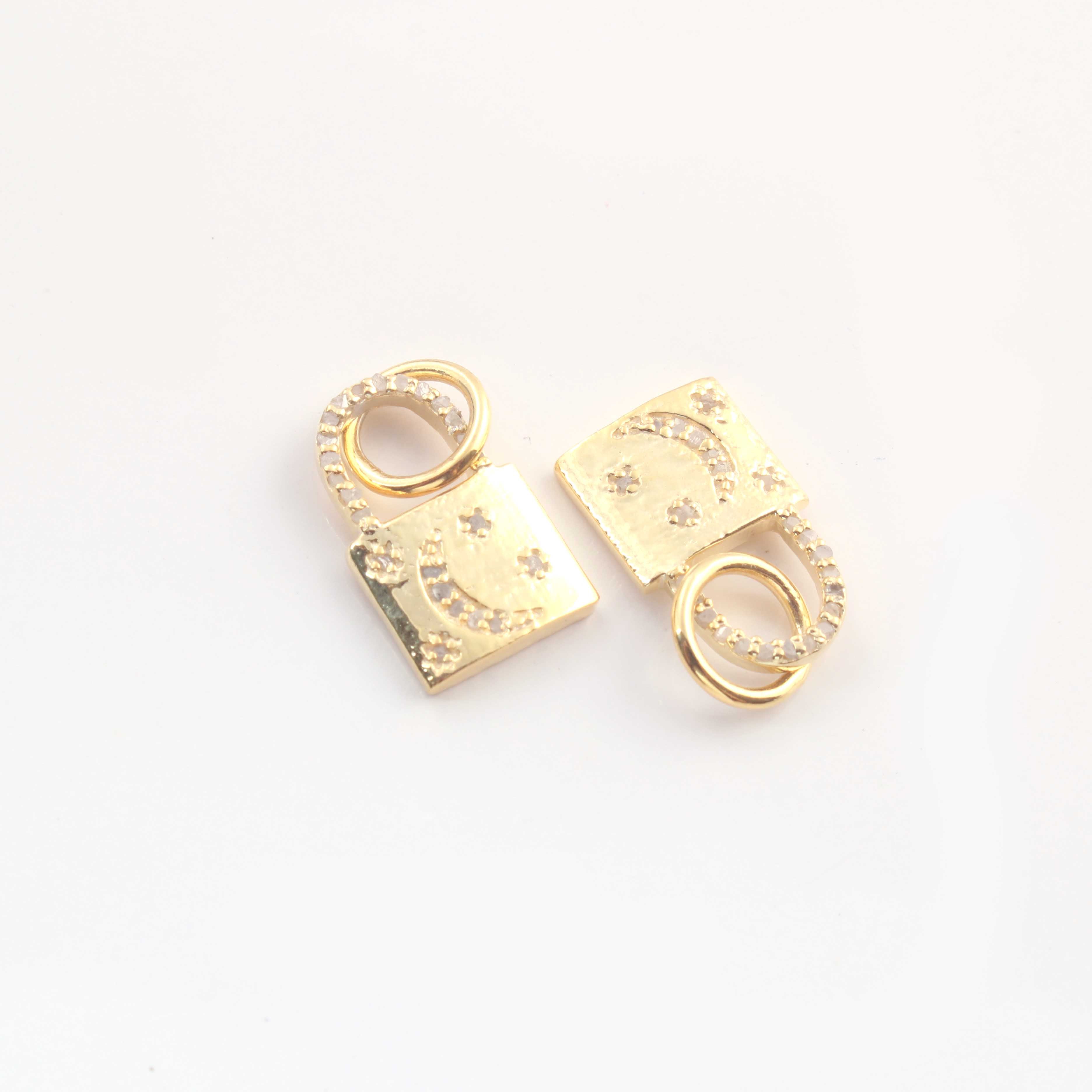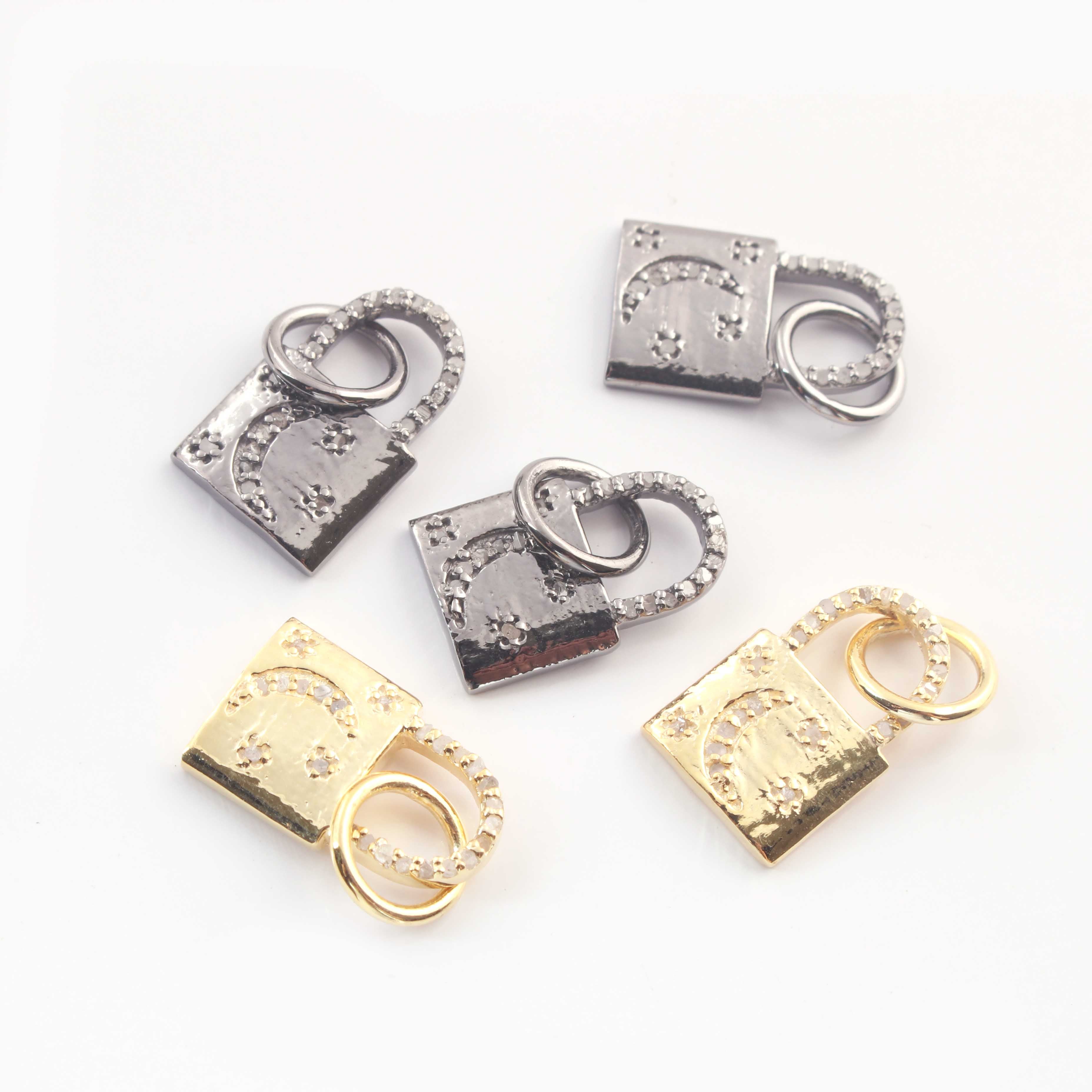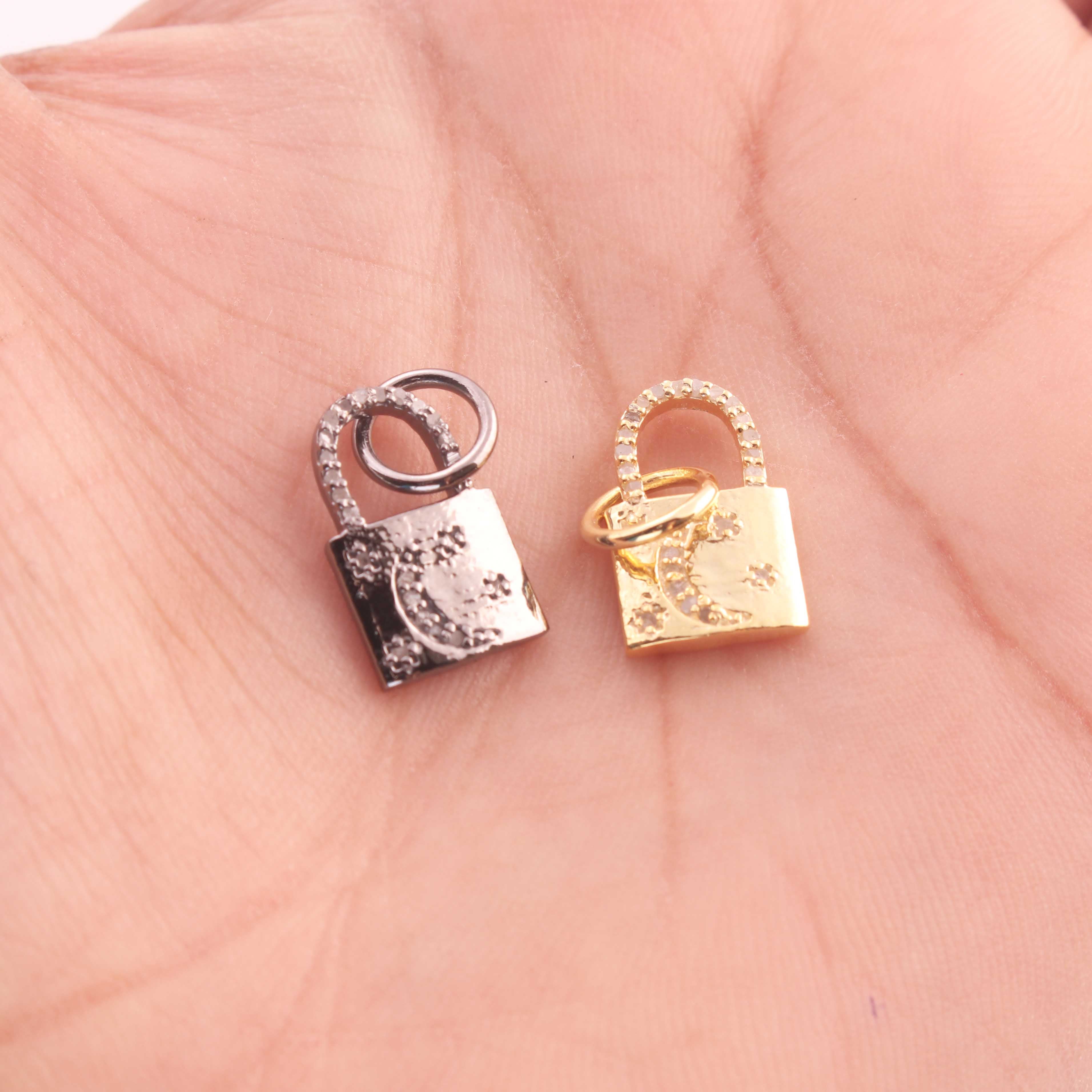 1 PC Pave Diamond Lock Charm 925 Sterling Silver & Yellow Gold Vermeil Pendant 14mmx9mm PD1924