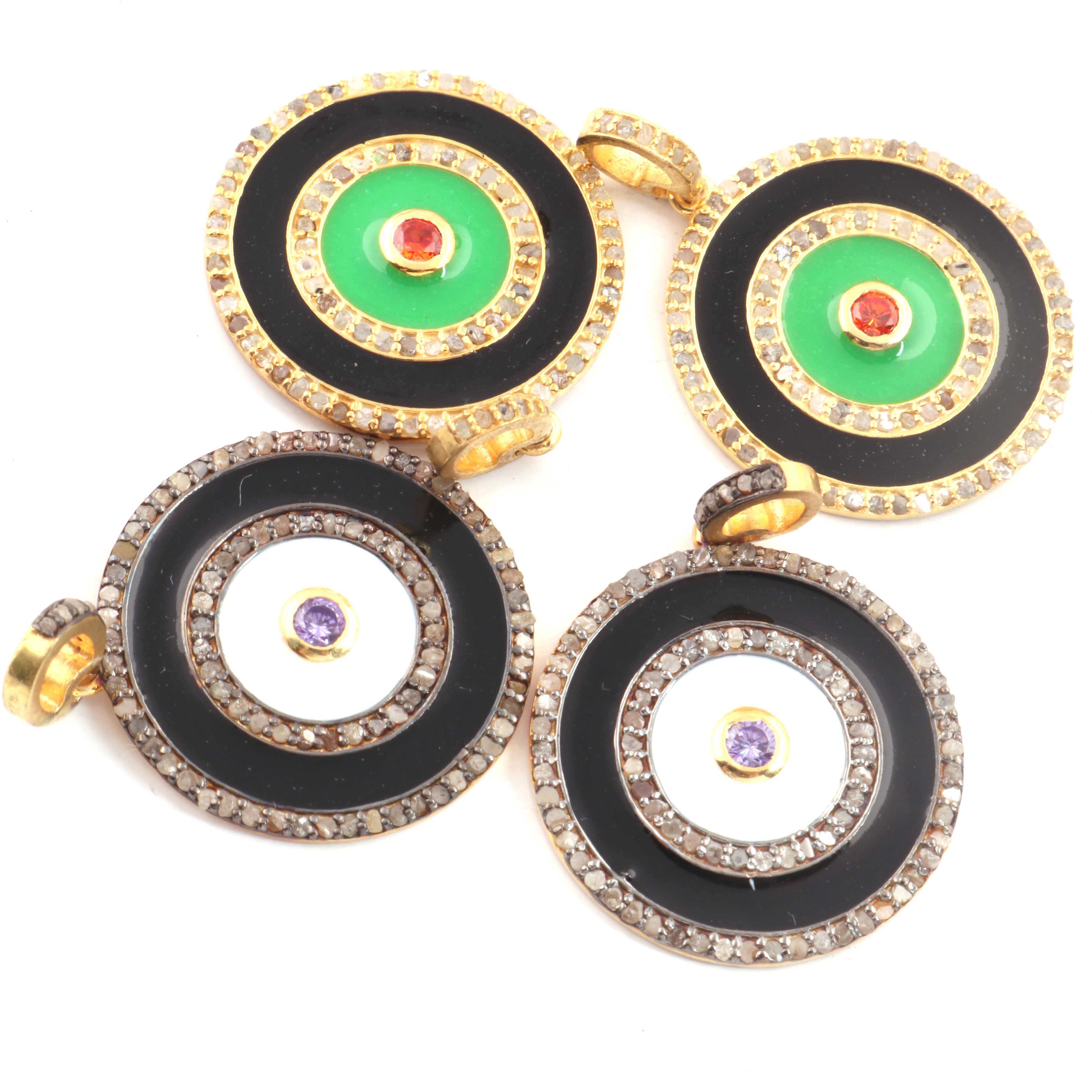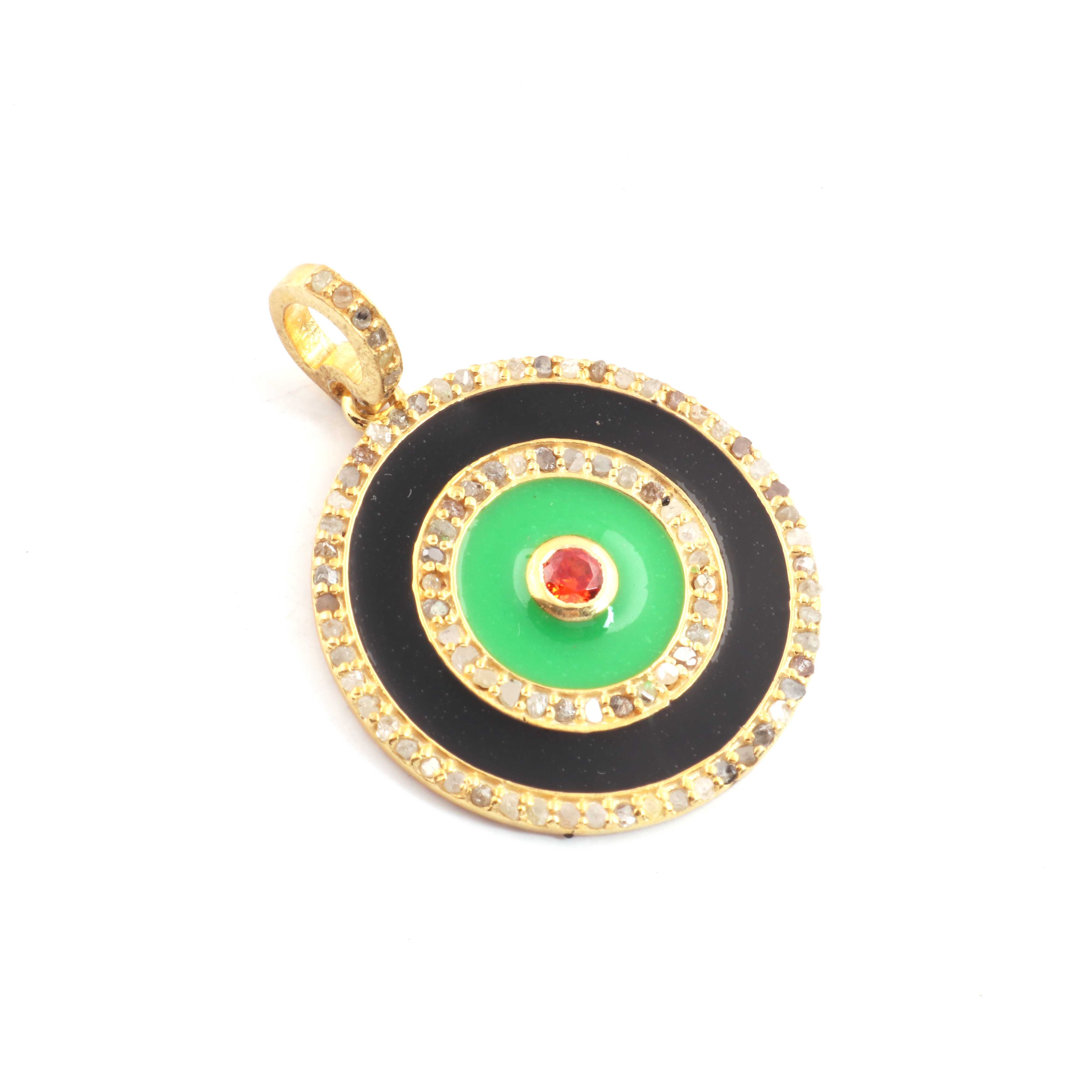 1 Pc Pave Diamond Round Disc Bakelite Charm 925 Sterling Silver, Vermeil &  Yellow Gold Vermeil Pendant  26mmx24mm You Choose PDC000