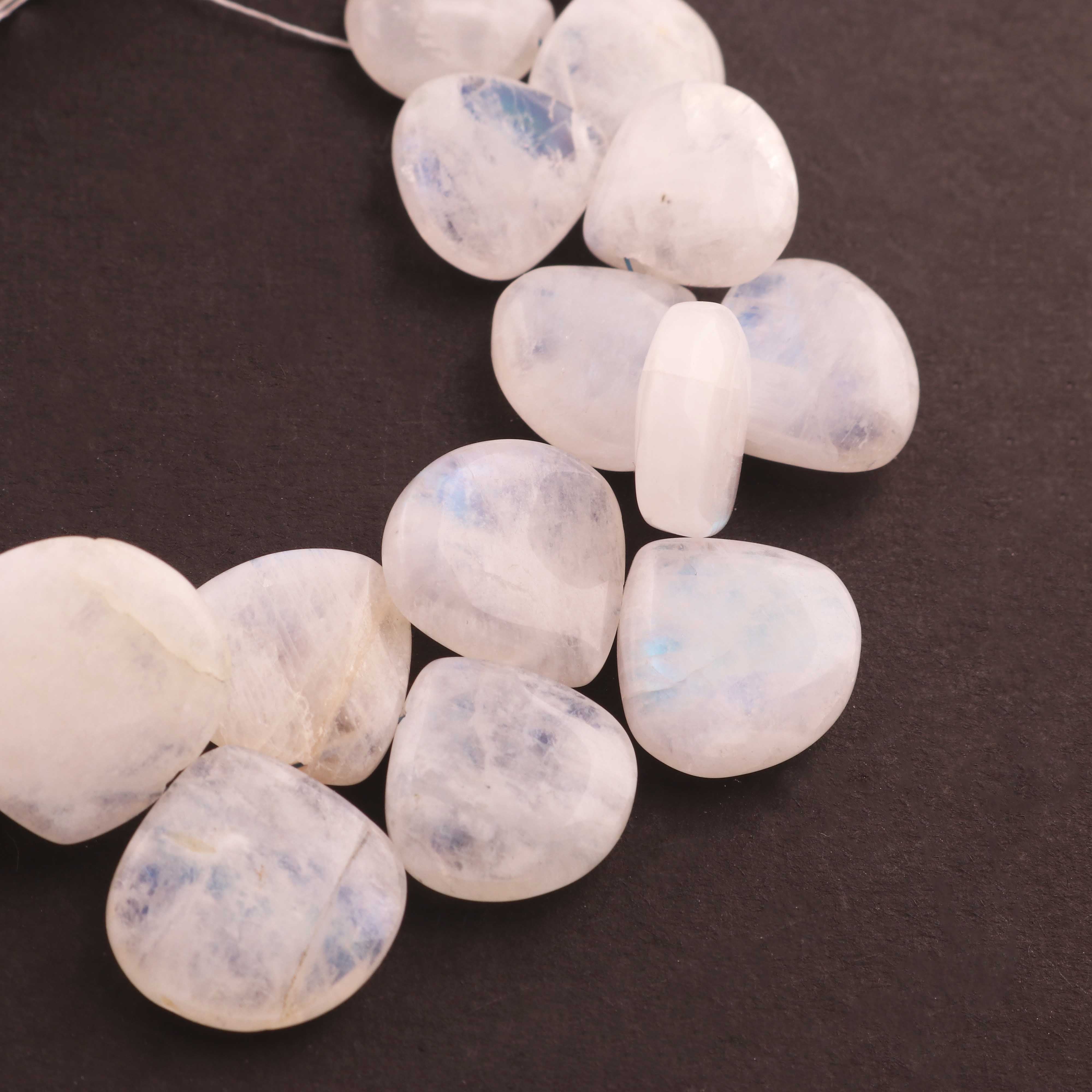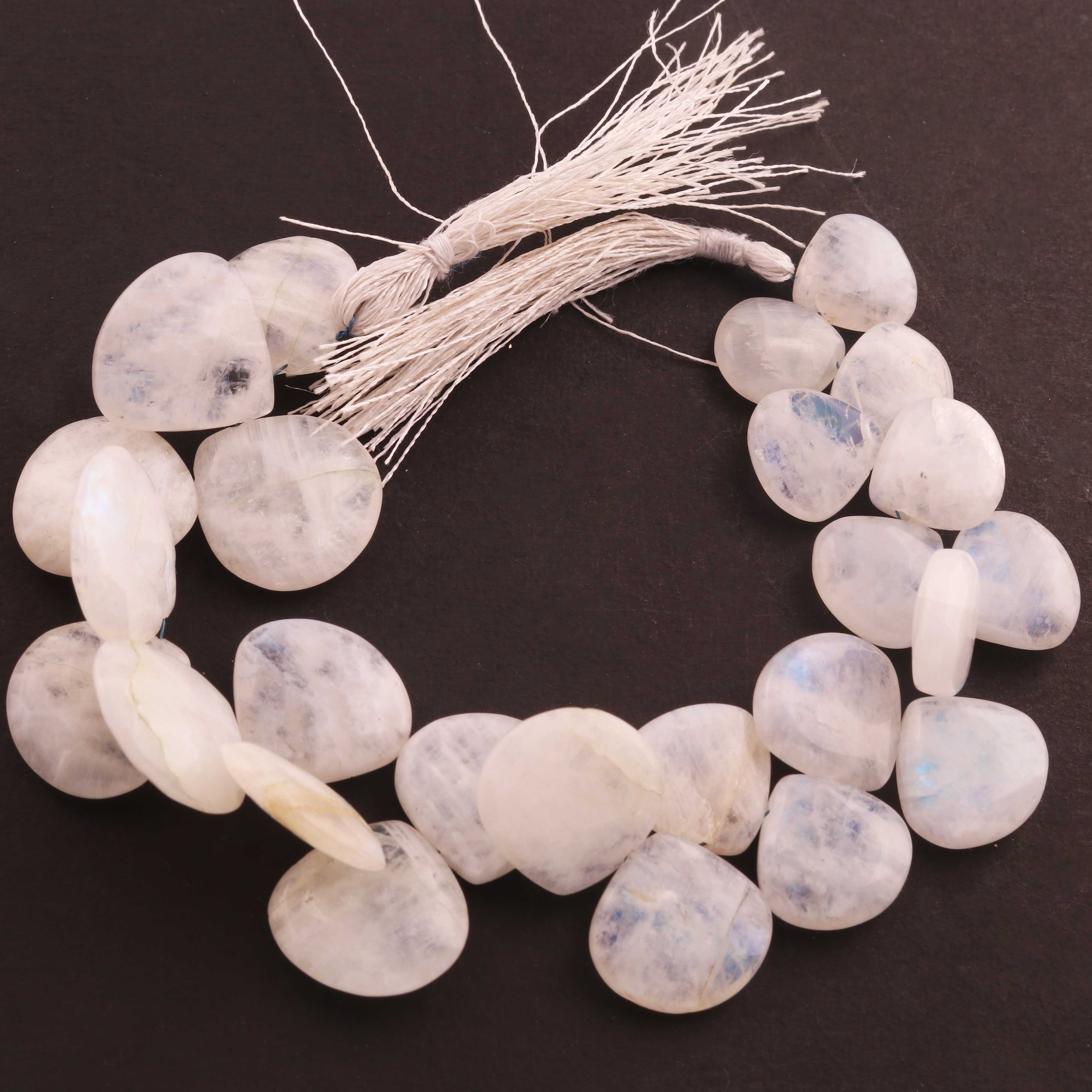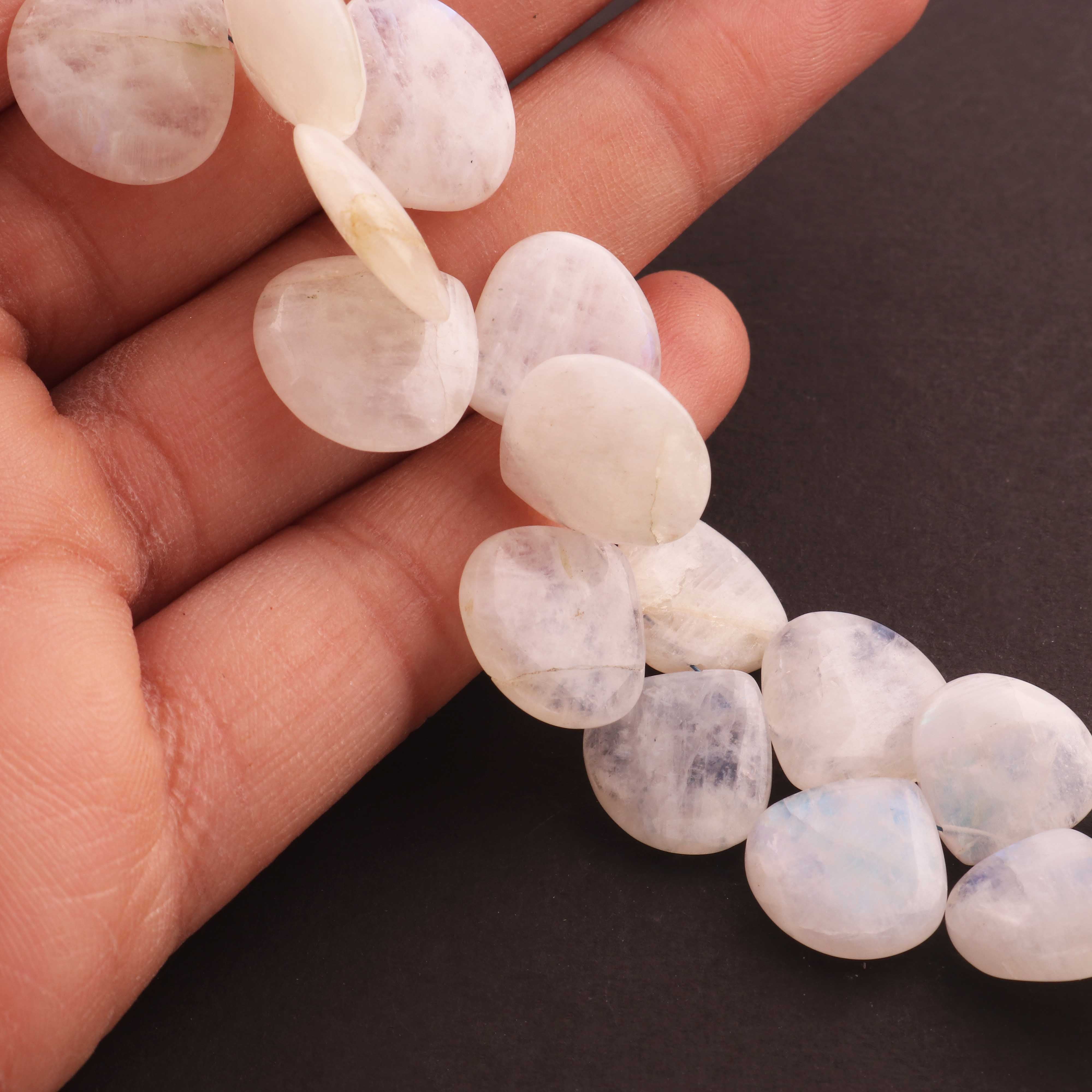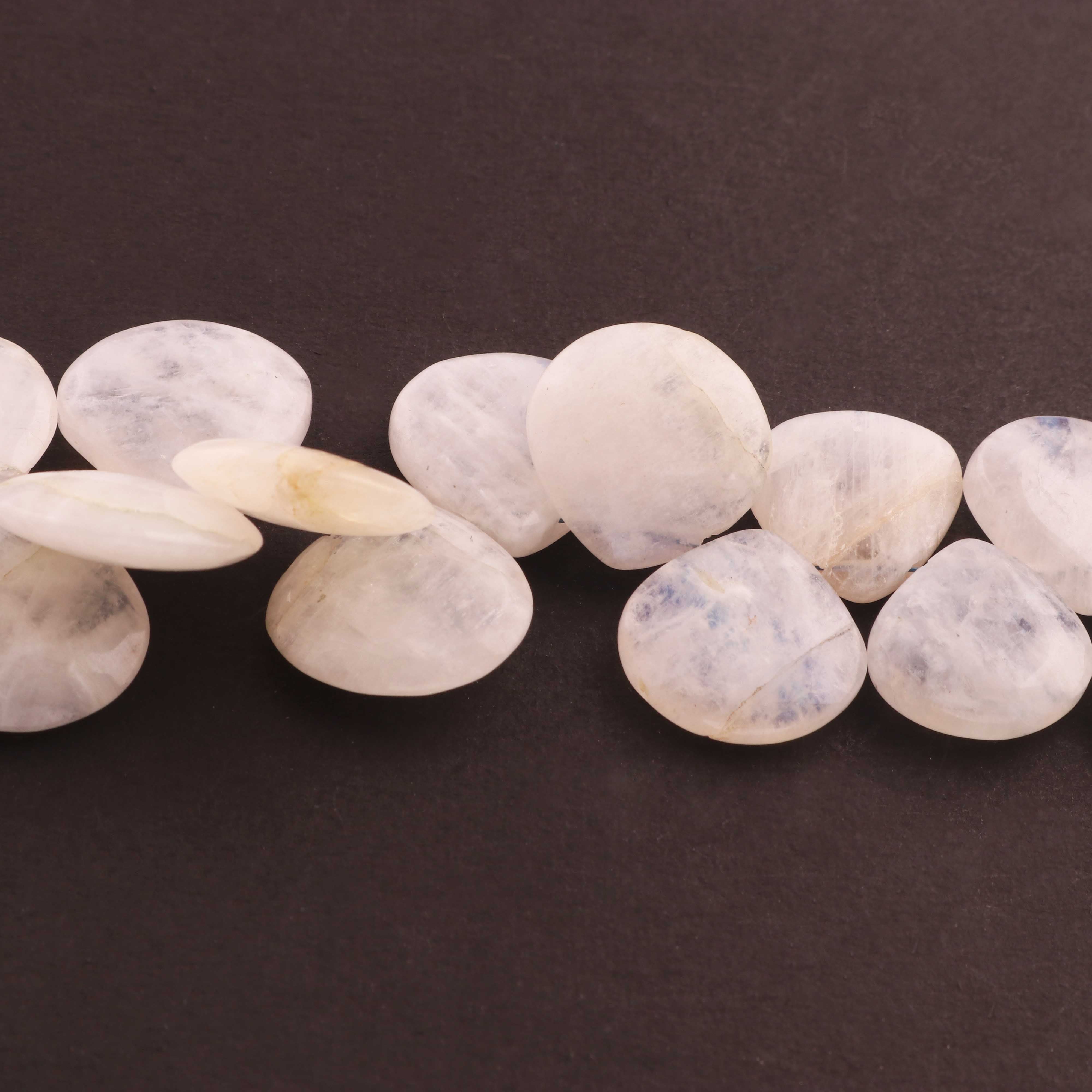 1 Strand Beautiful White Rainbow Moonstone Smooth Briolettes - Heart Shape Gemstone - 12mmx12mm -17mmx16mm - 5 Inches BR01863
