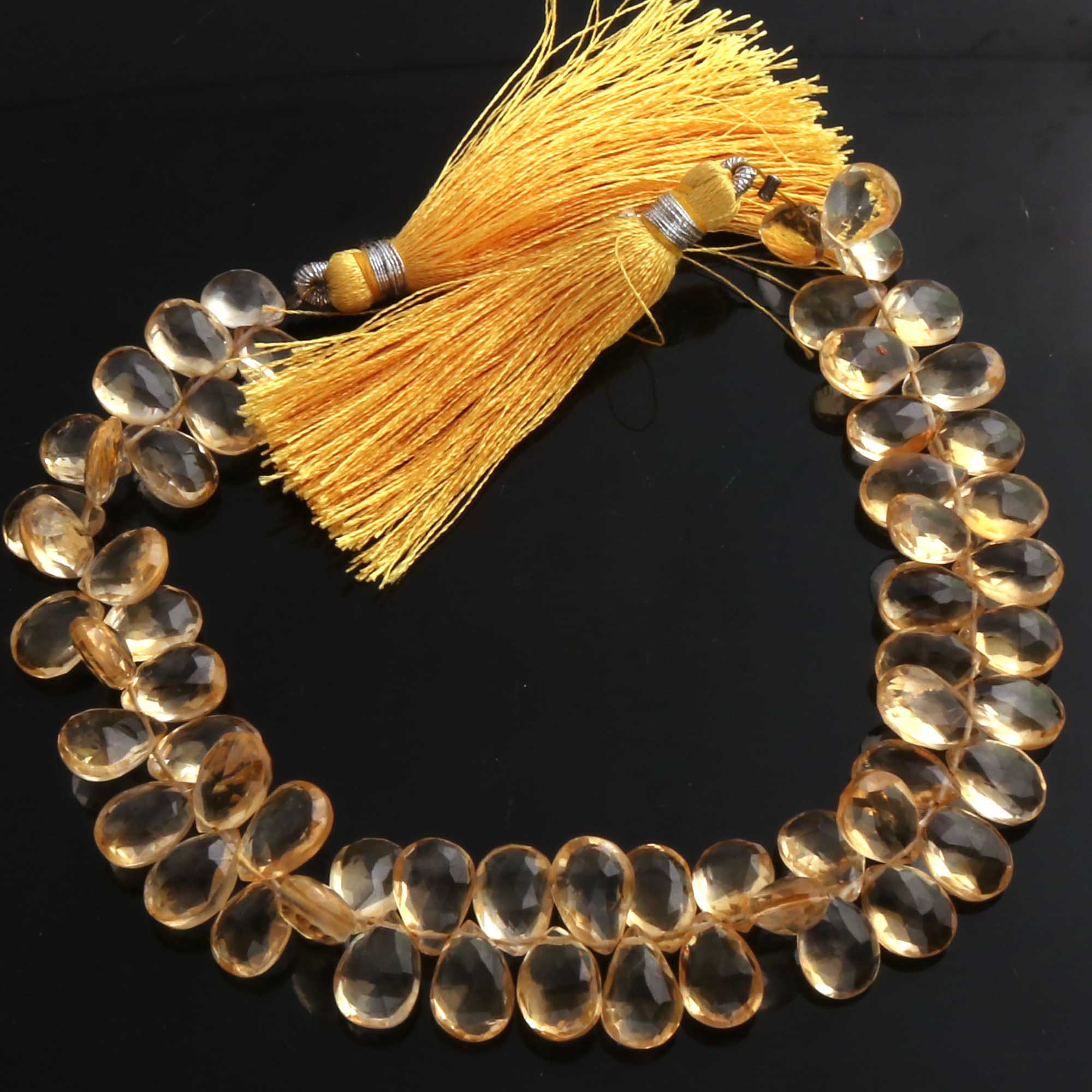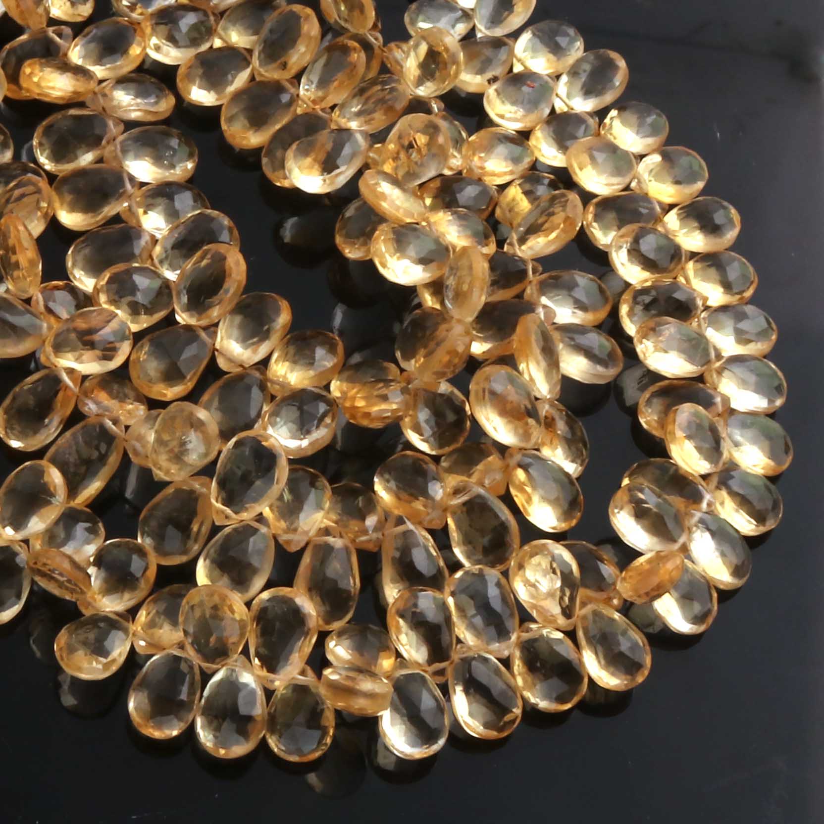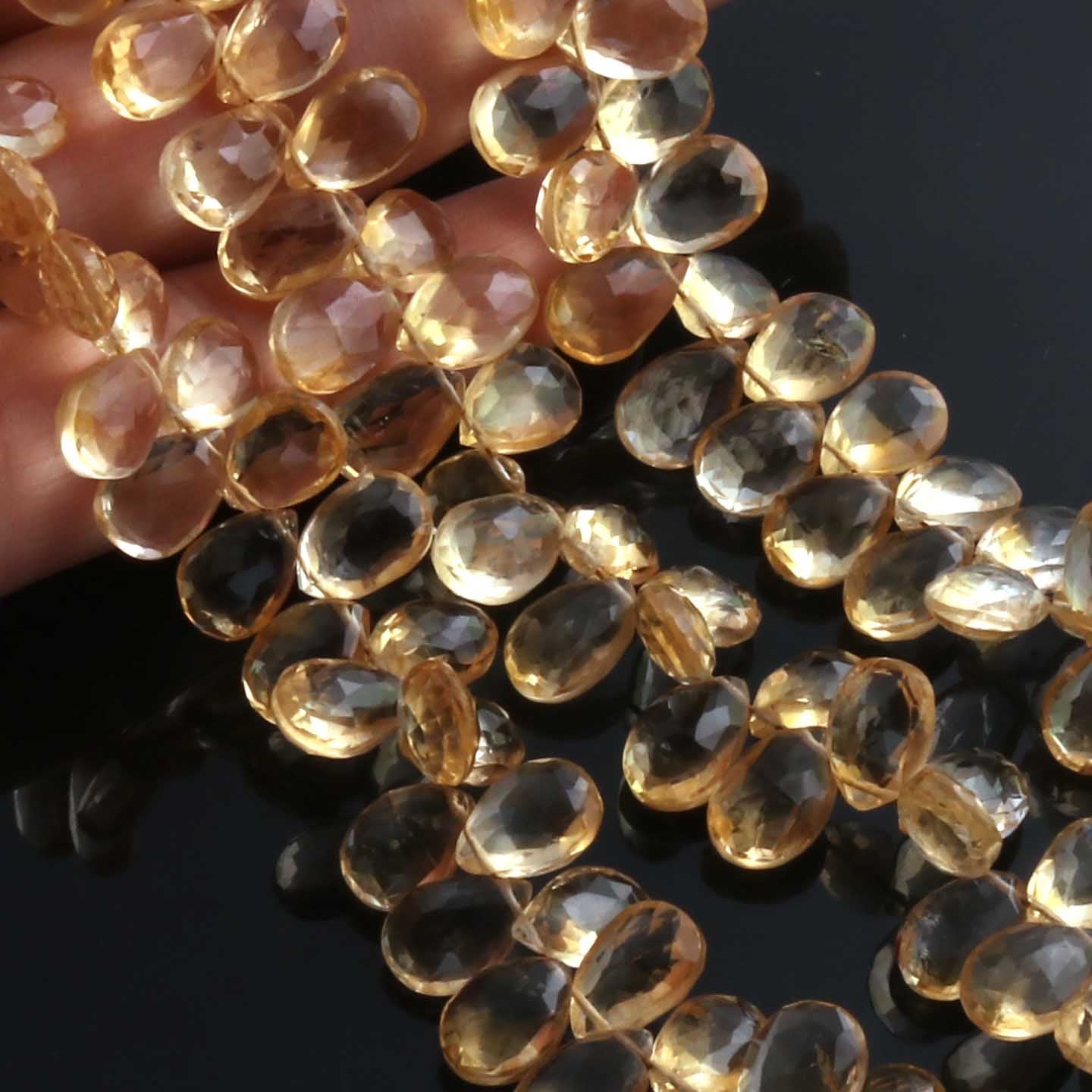 1 Strand Citrine Faceted Briolettes -Pear Shape Briolettes - 9mmx7mm-11mmx7mm- 7.5 Inches BR02032