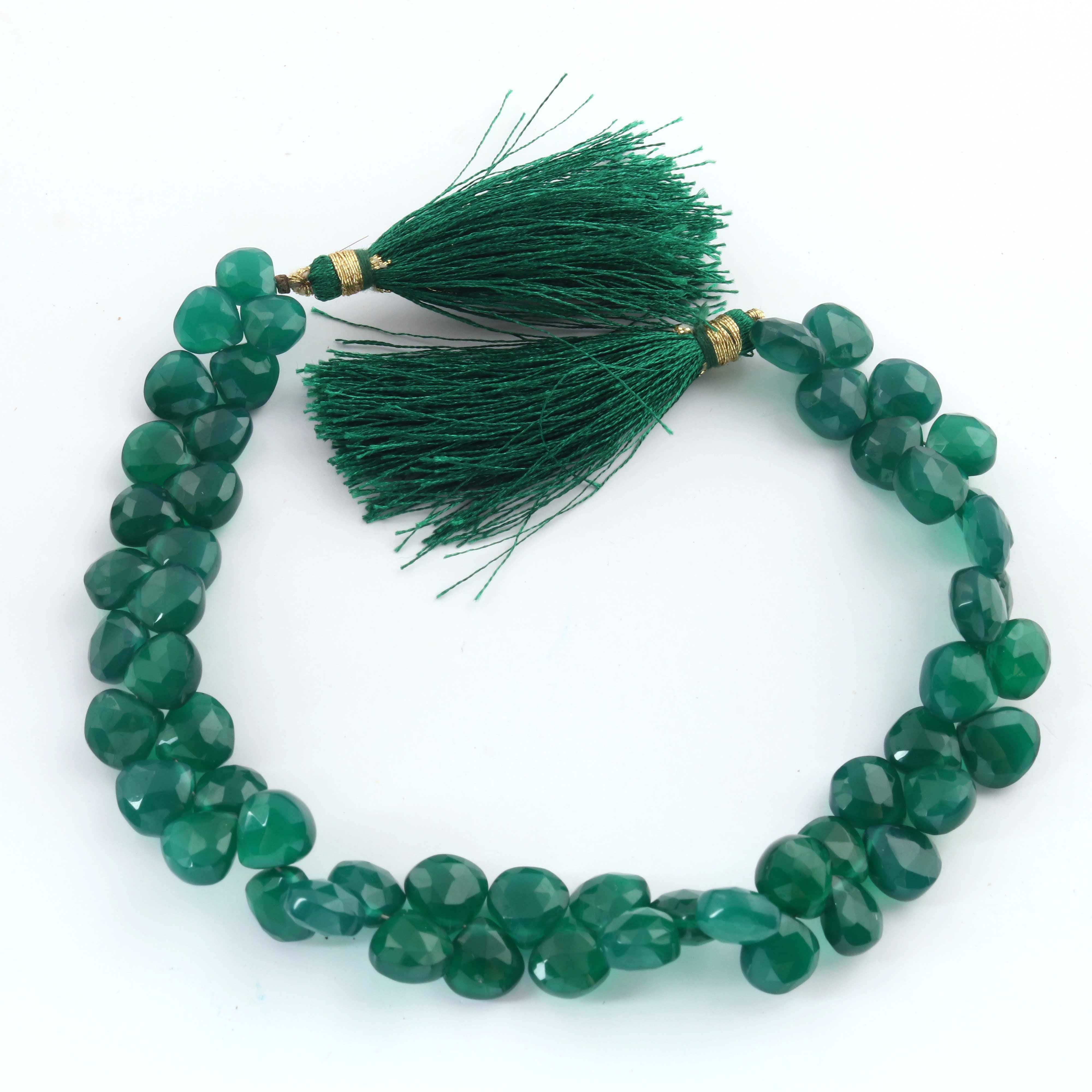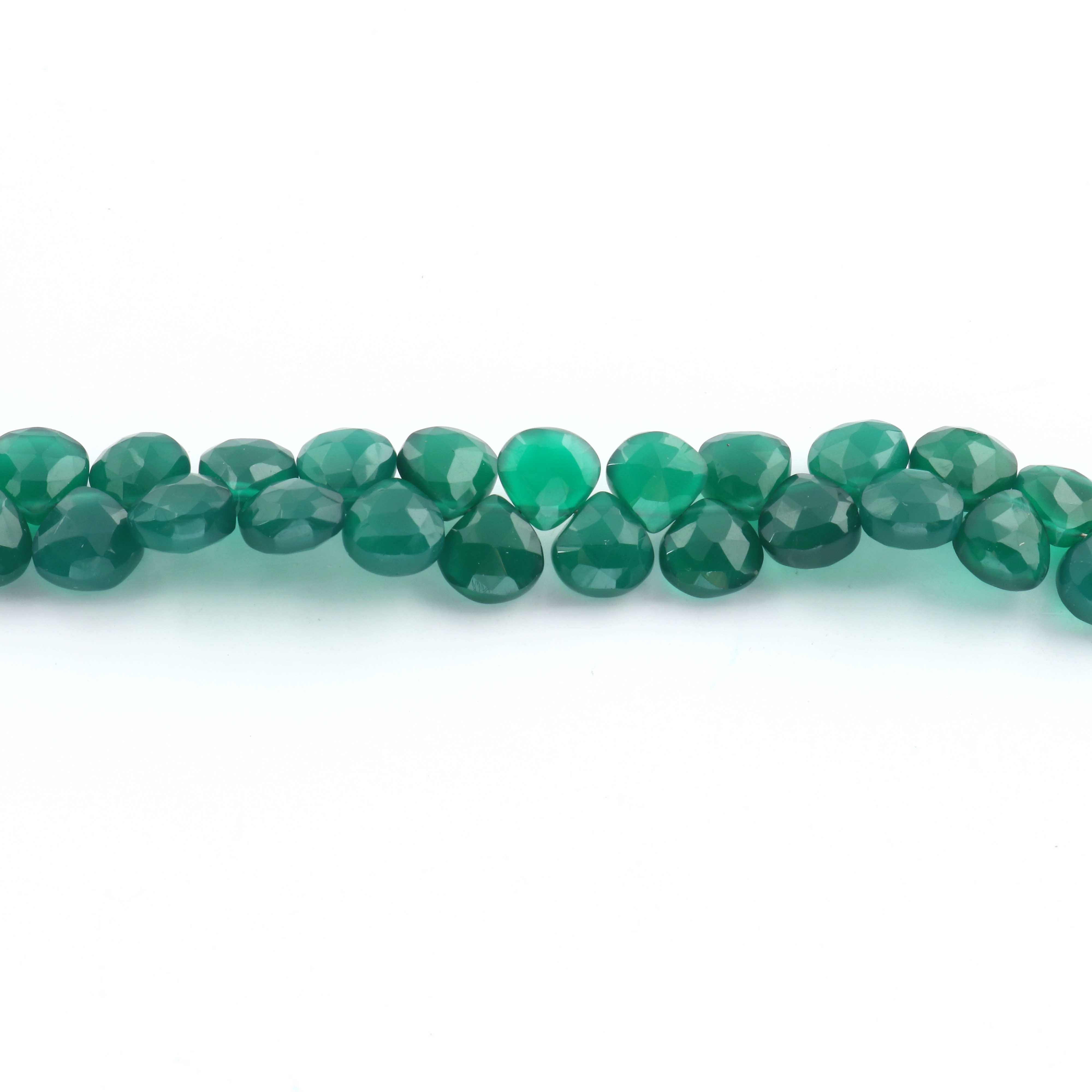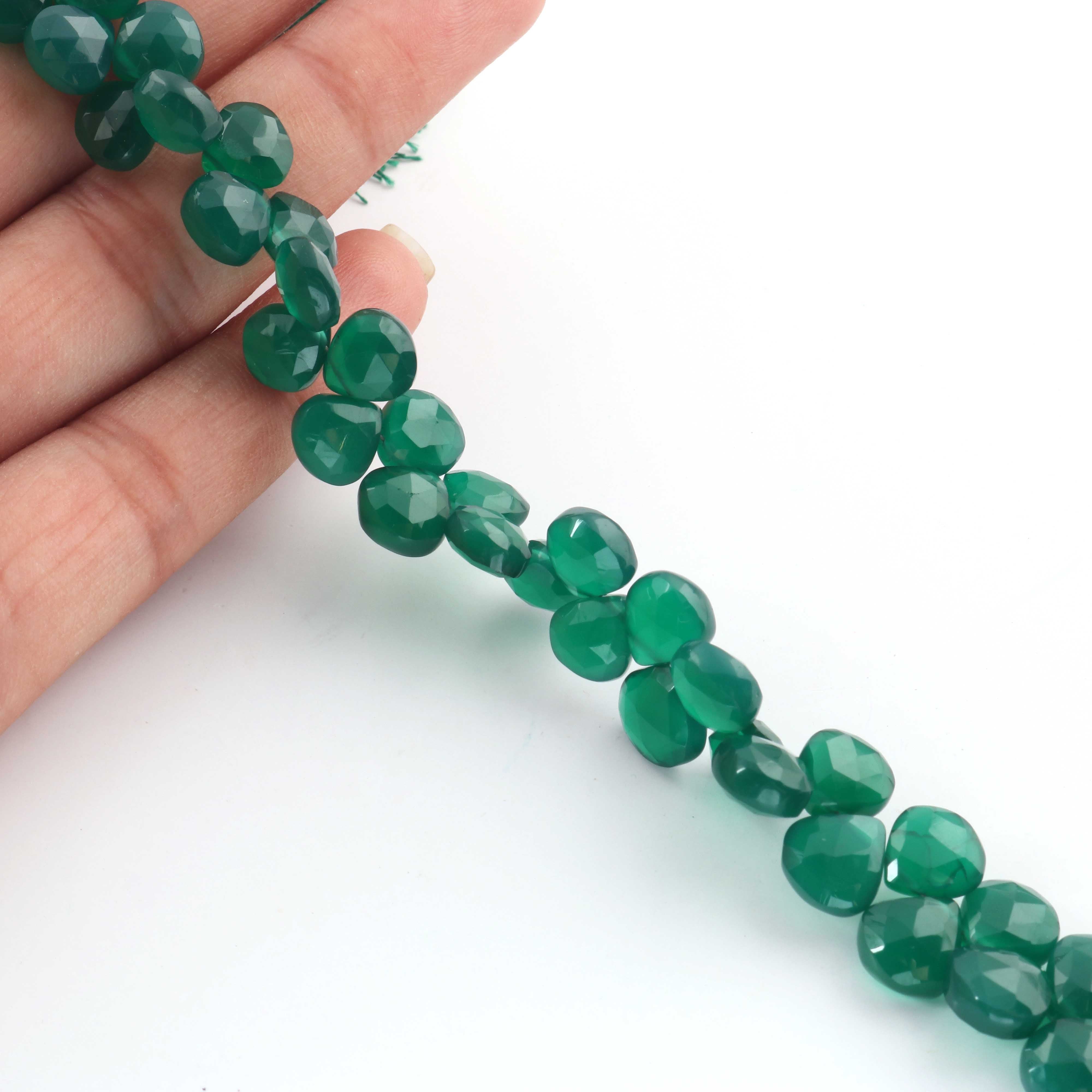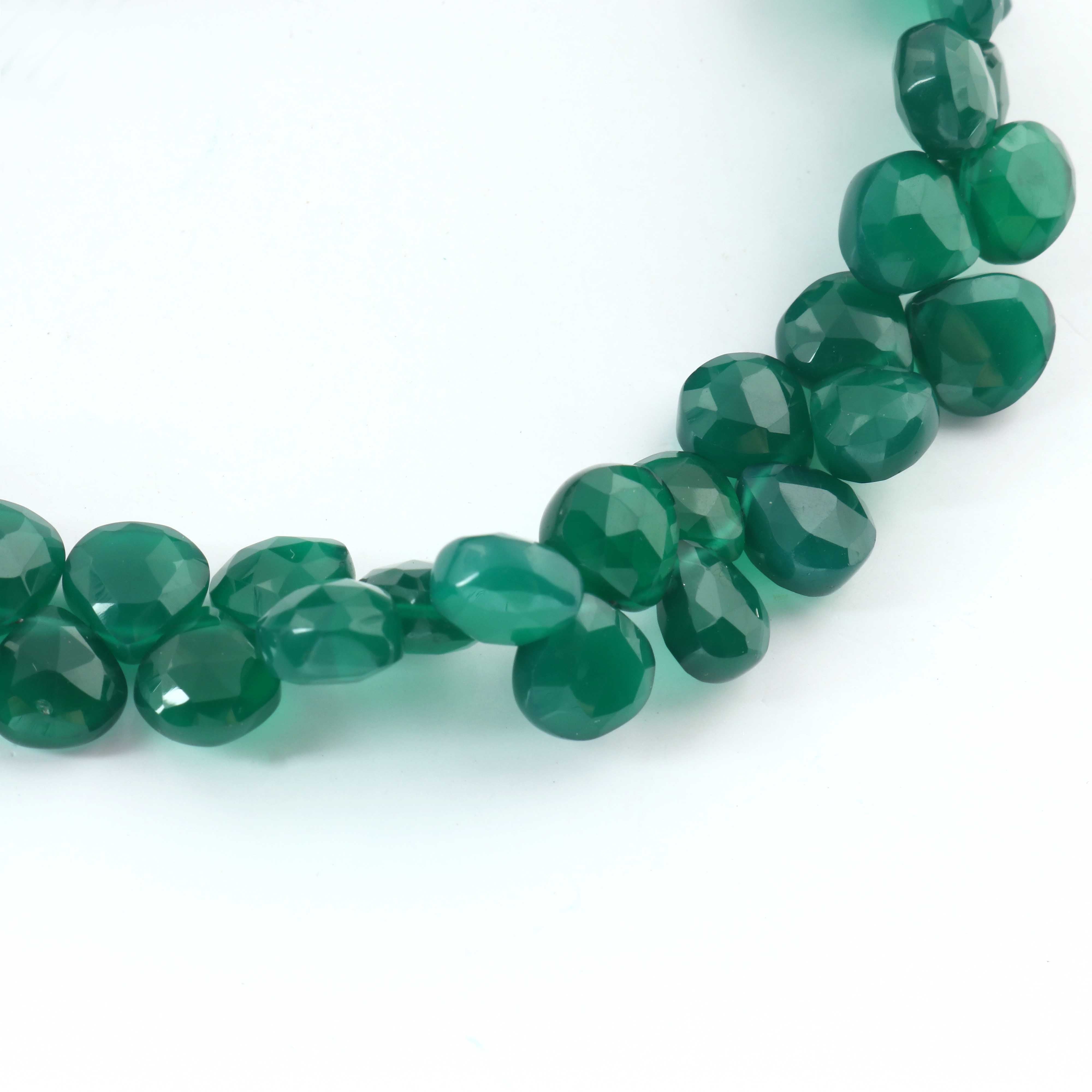 1 Strand Green Onyx Faceted Briolettes - Heart Shape Gemstone -4mm-7mm , 9 Inches BR029