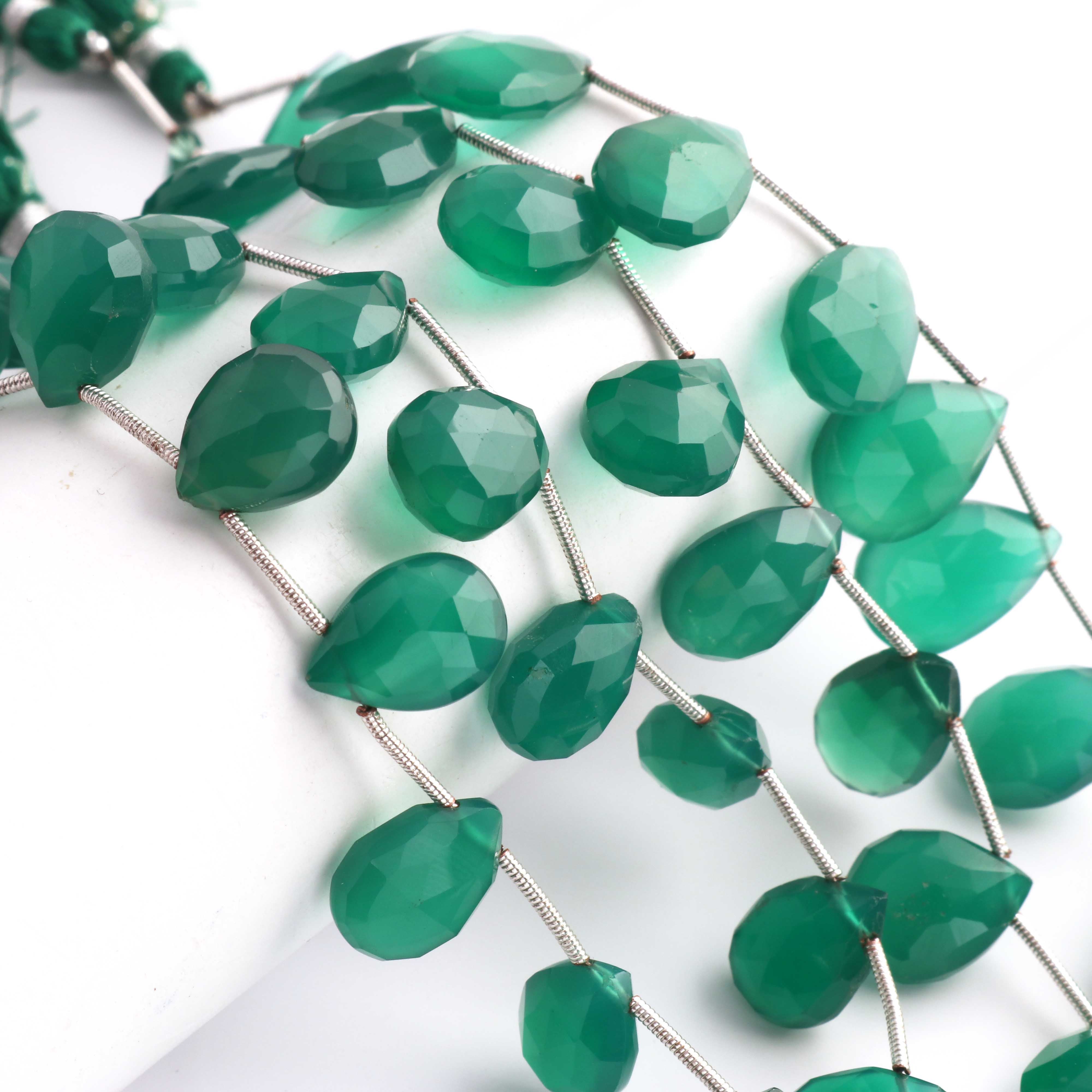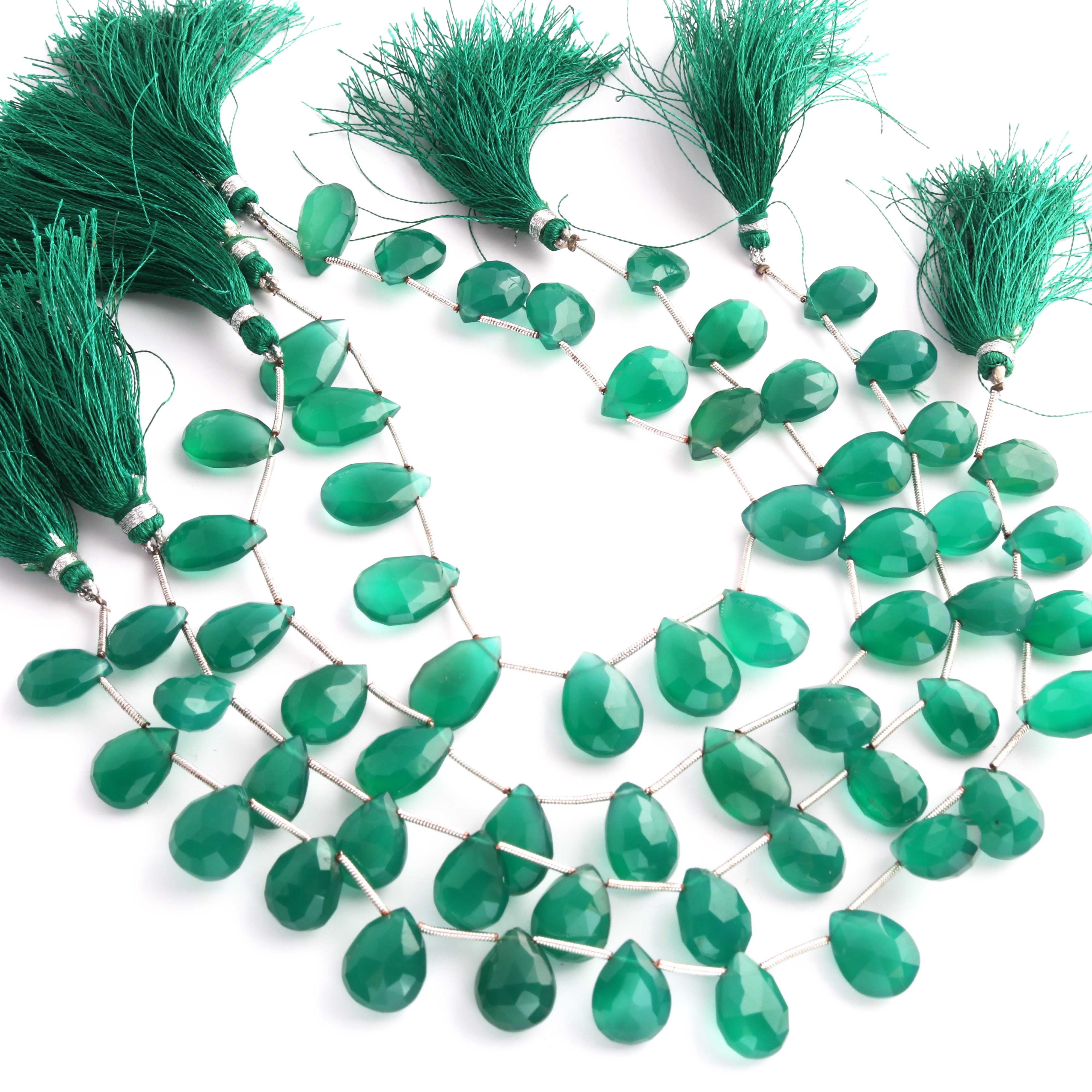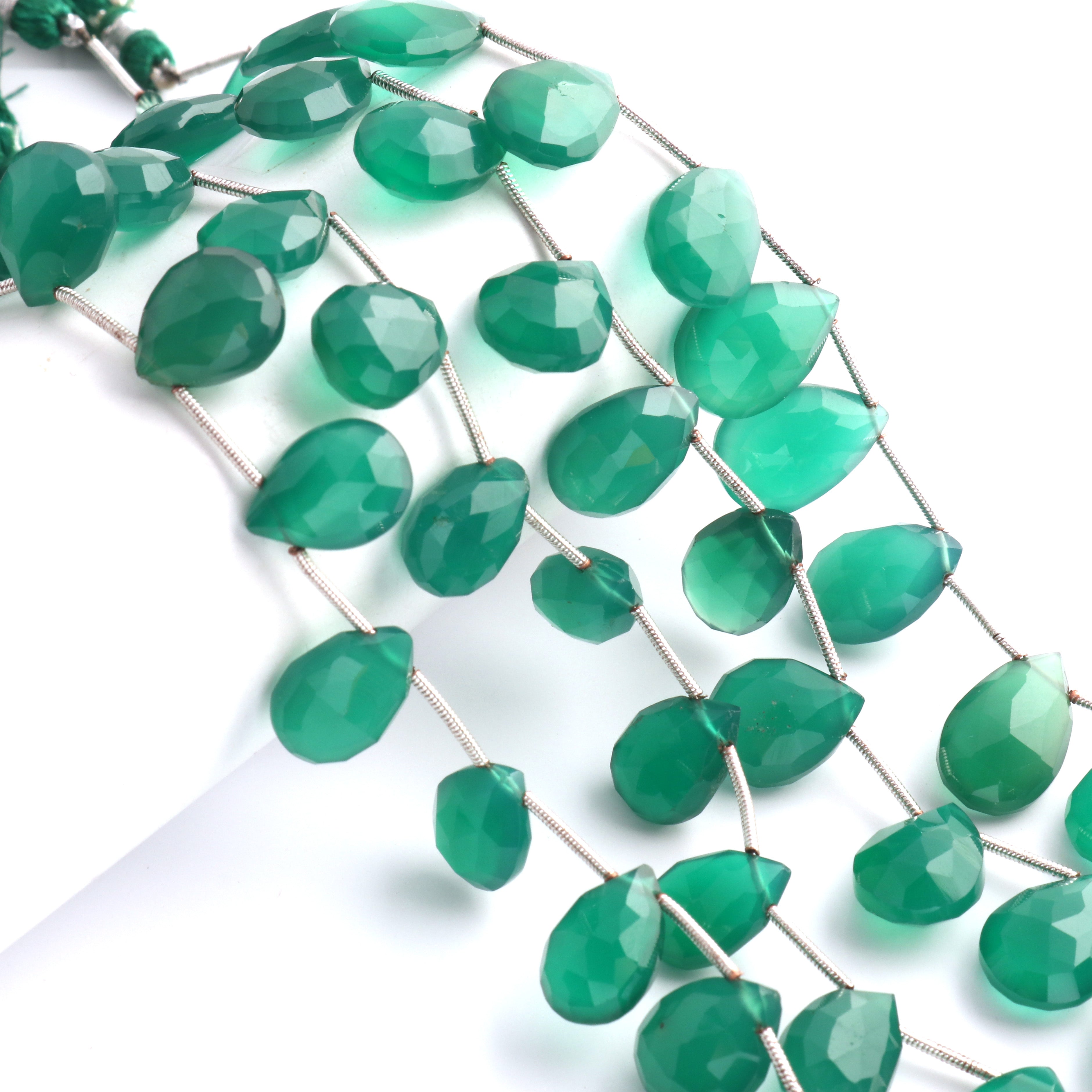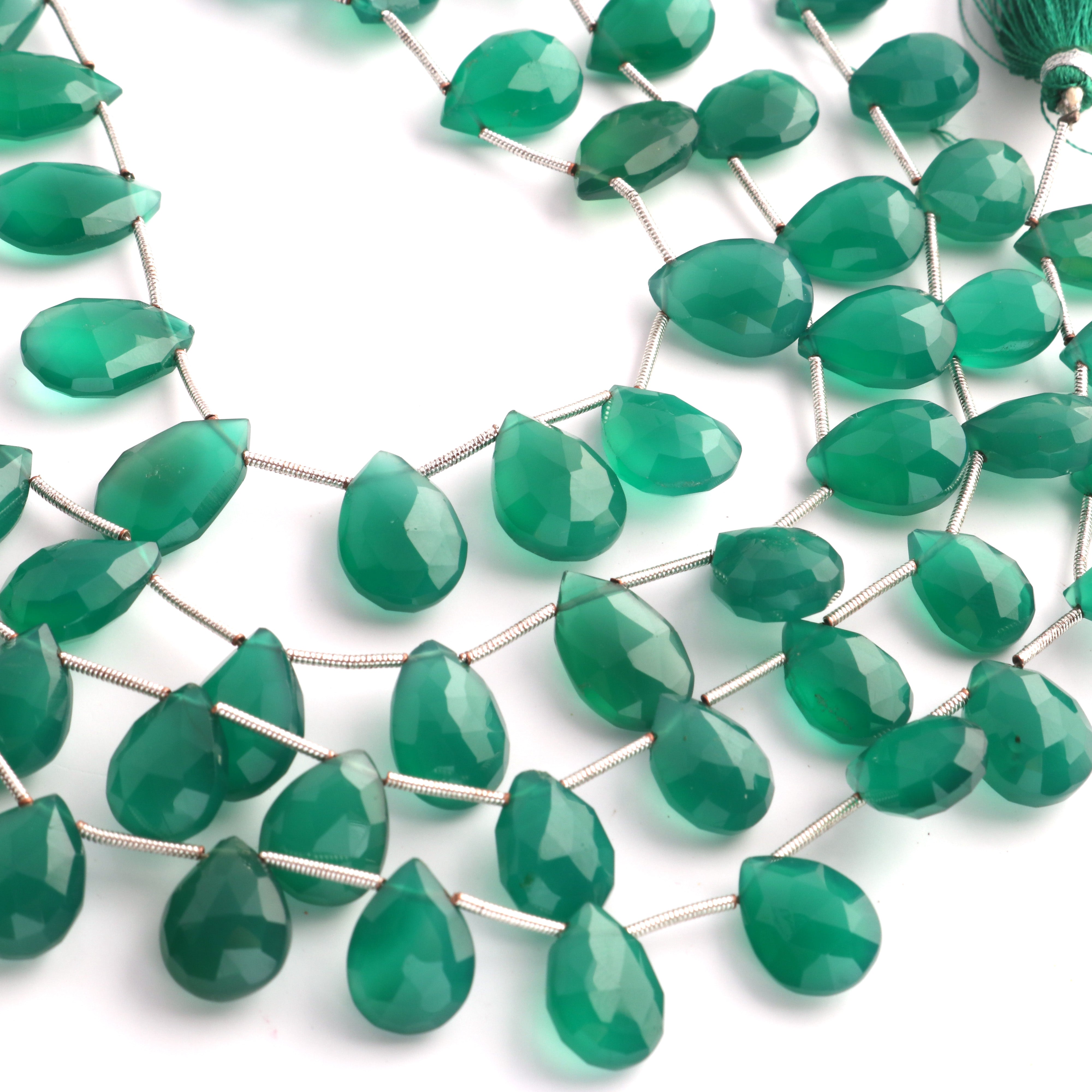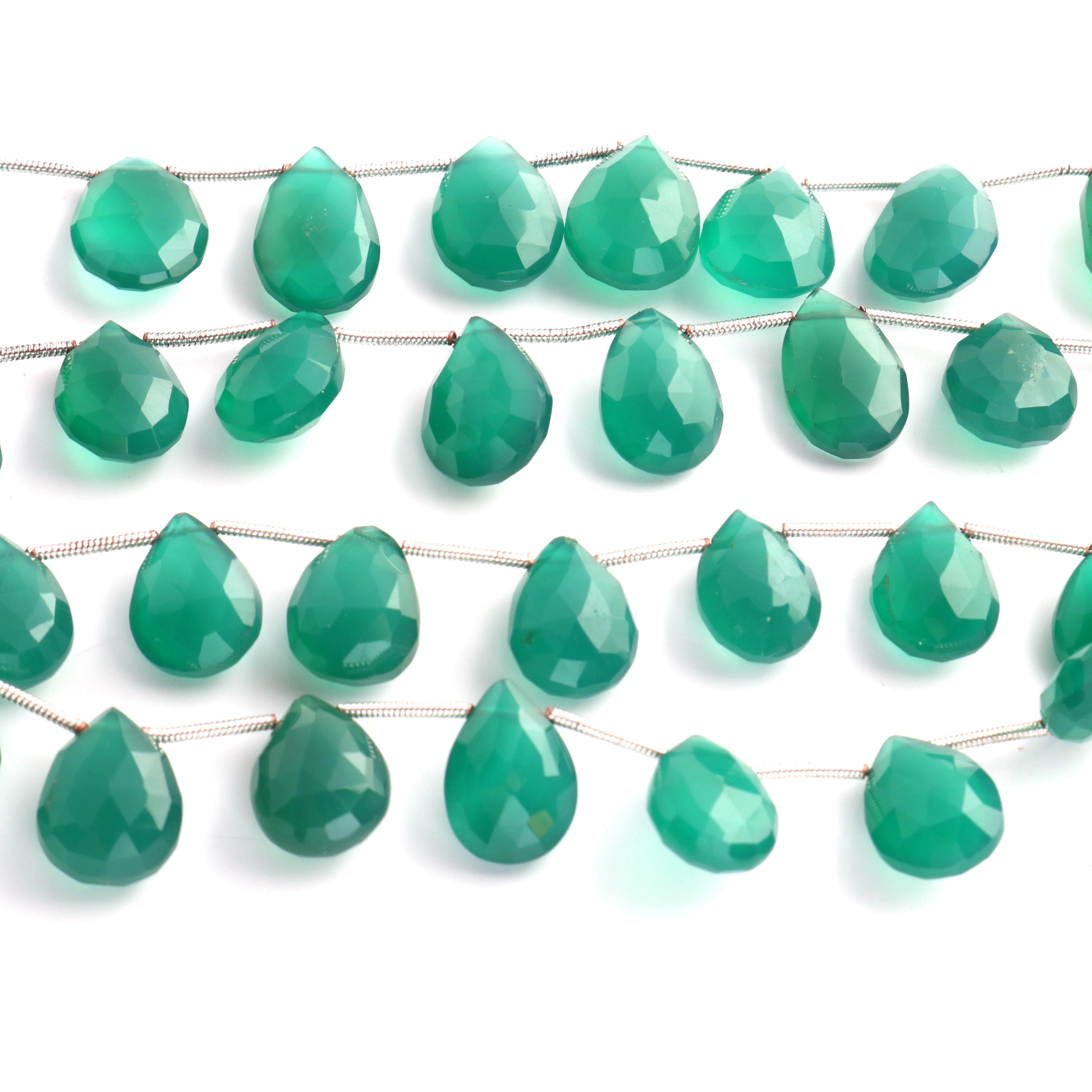 1 Strand Green Onyx Faceted Briolettes - Pear Drop Briolettes - 13mmx9mm-15mmx12mm - 8.5 Inches BR02742