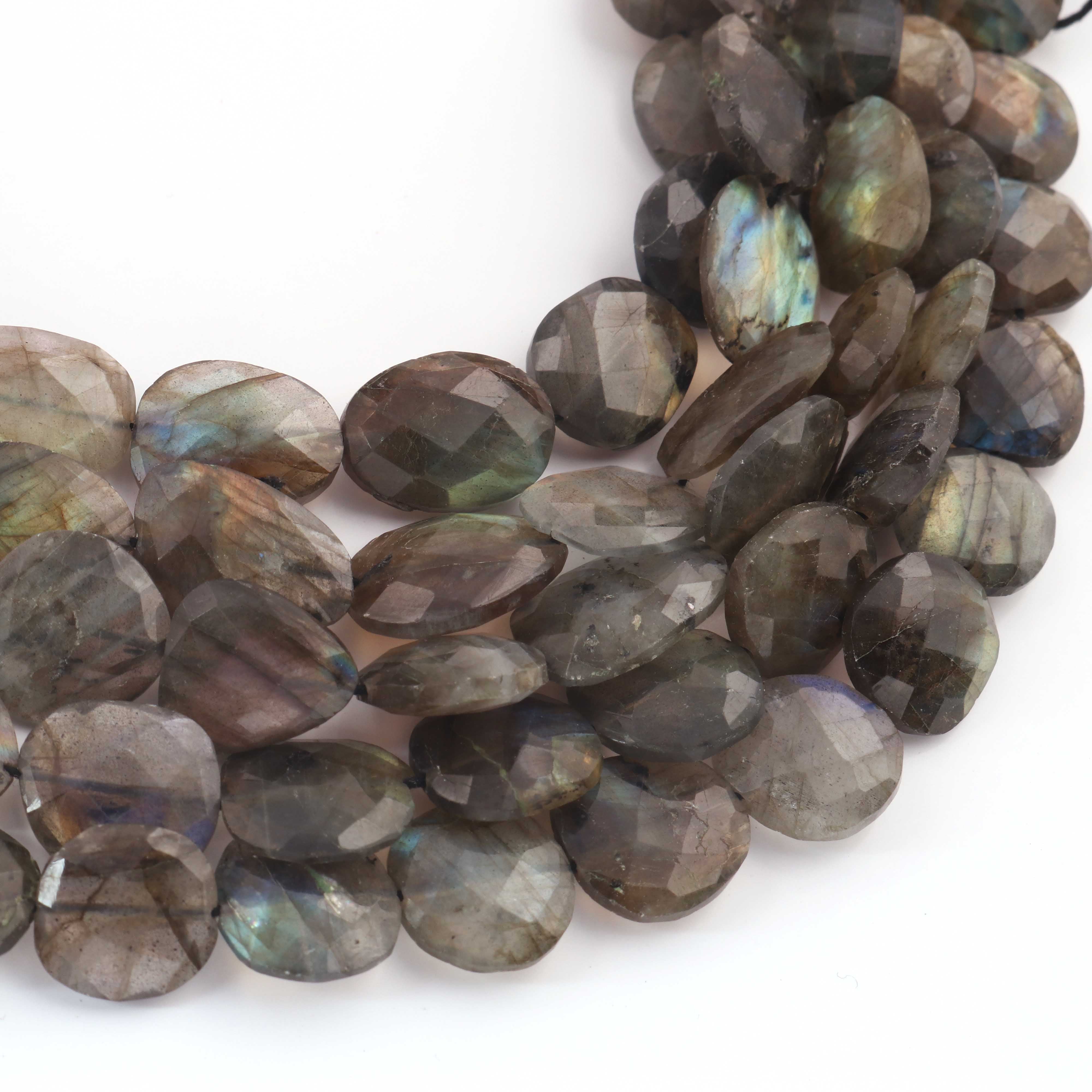 1 Strand Labradorite Faceted Briolettes Assorted Shape Briolettes - 12mmx11mm-17mmx11mm - 10 Inches BR02051