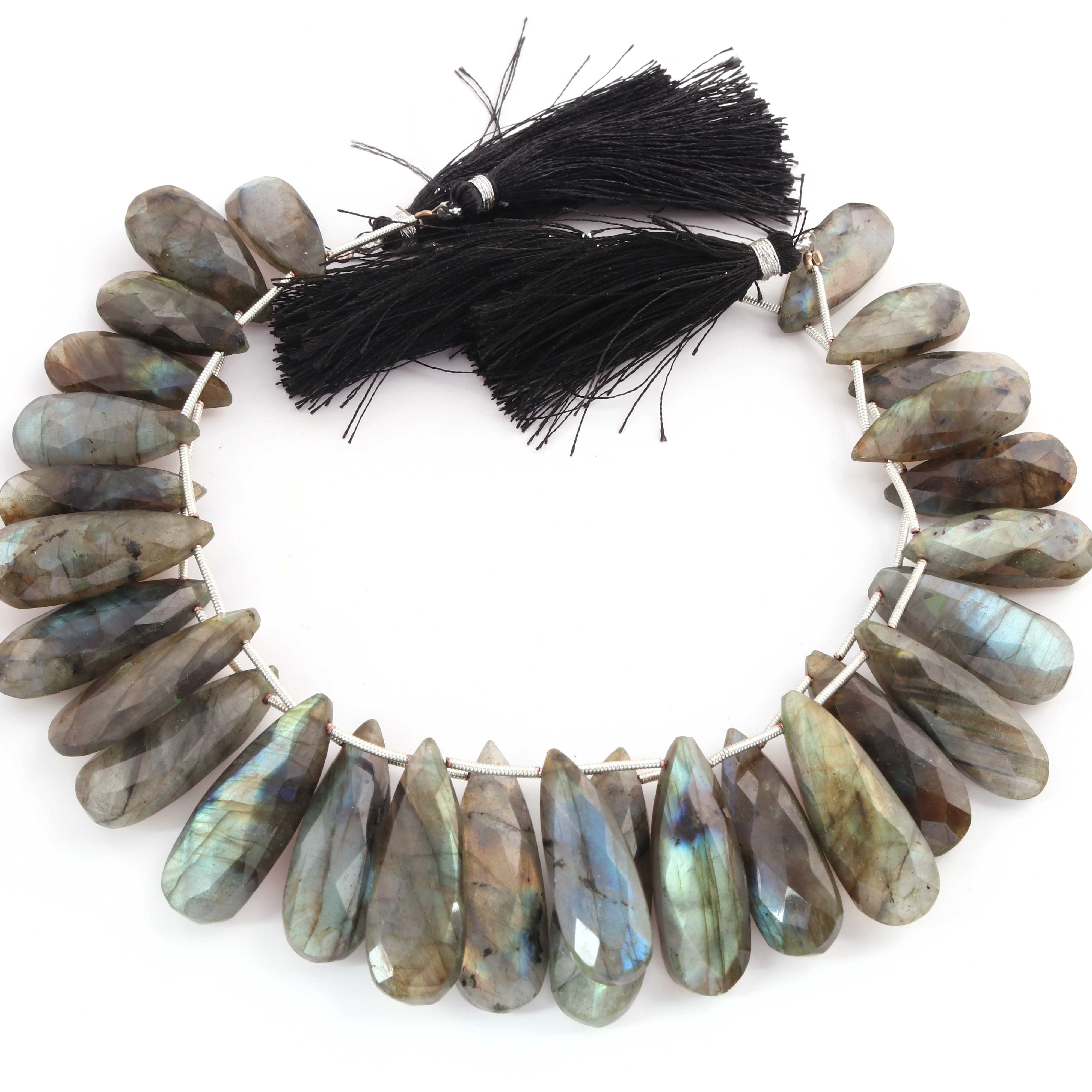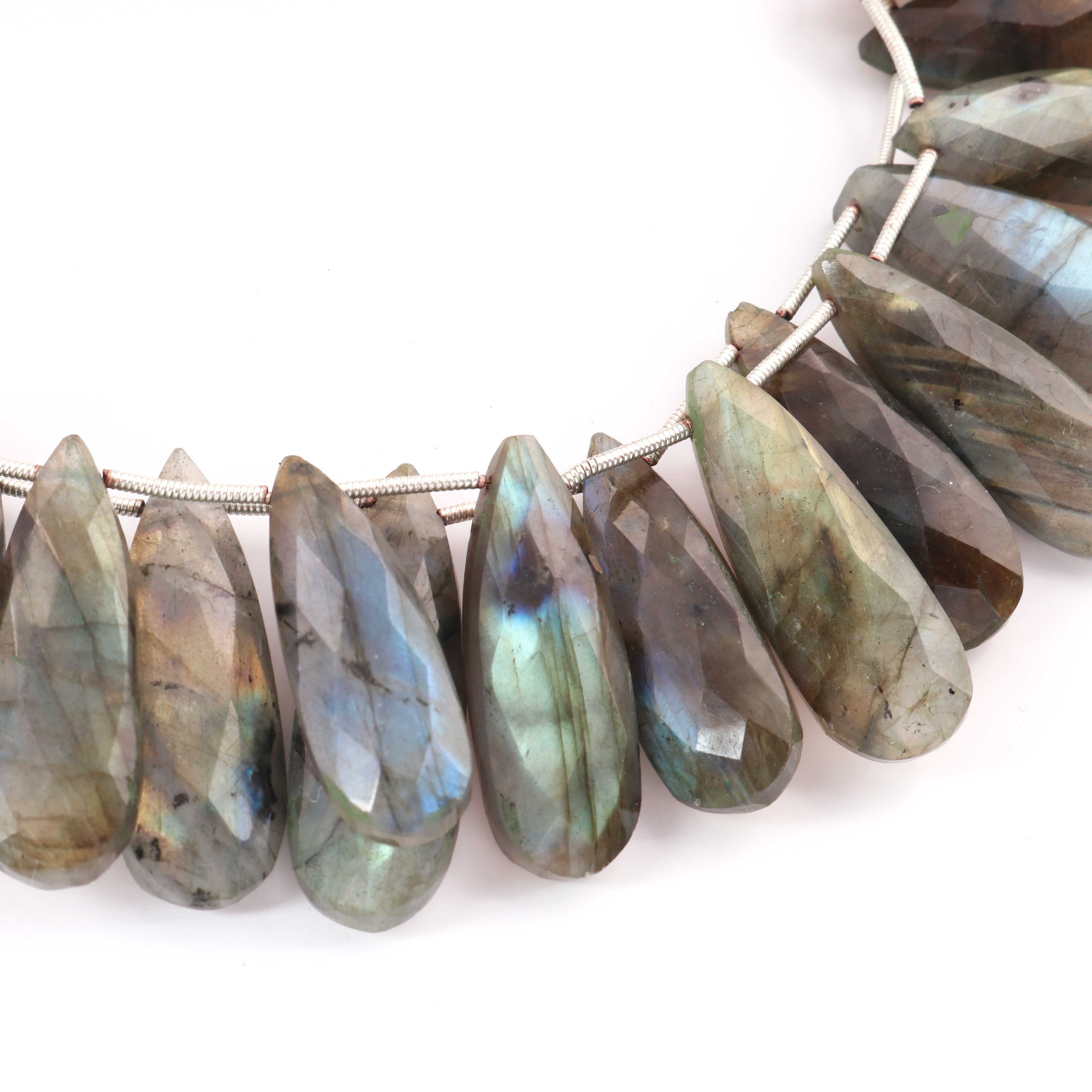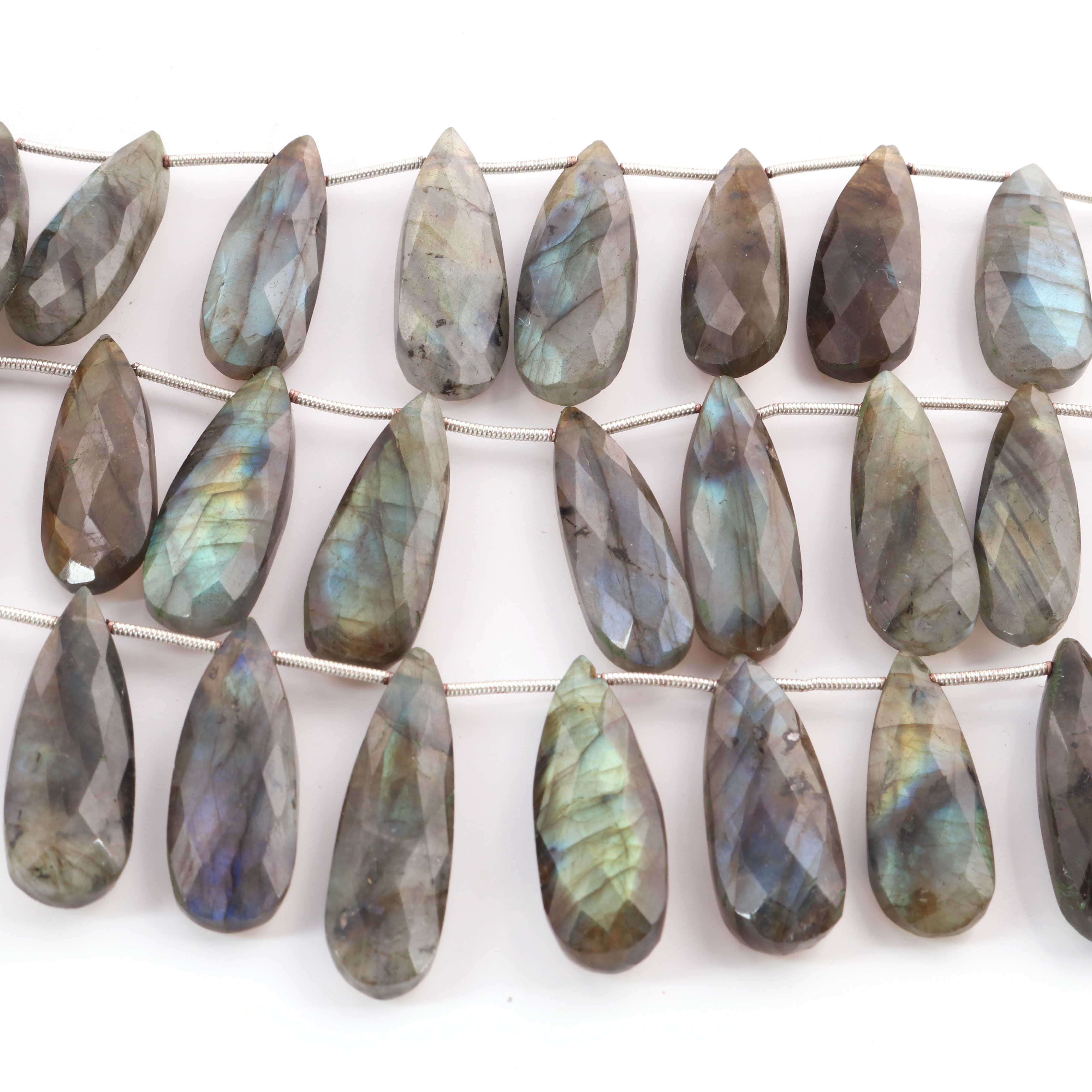 1 Strand Labradorite Faceted Briolettes - Semi Precious Long Pear Shape Briolettes - 19mmx9mm-32mmx12mm - 9 Inches- BR02052