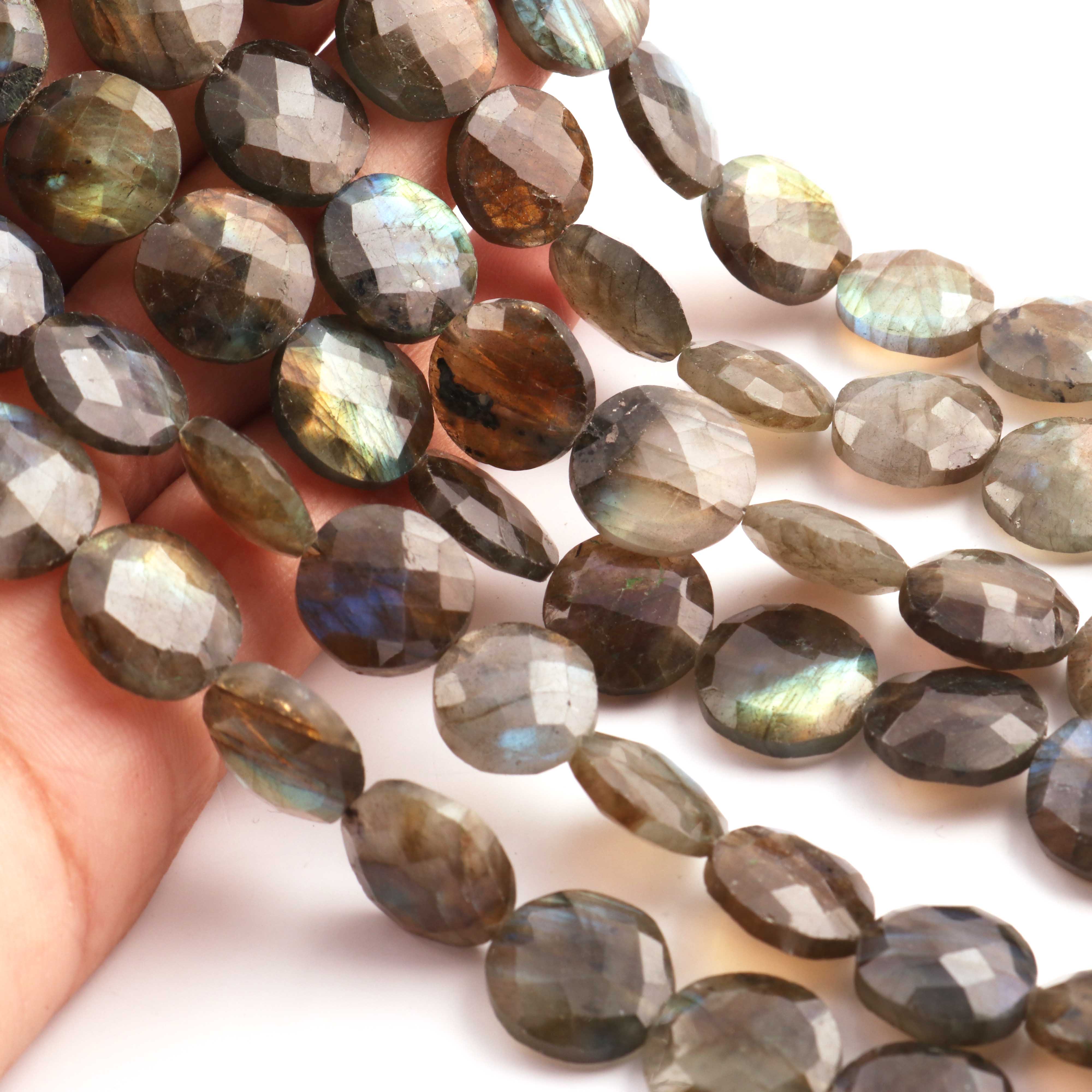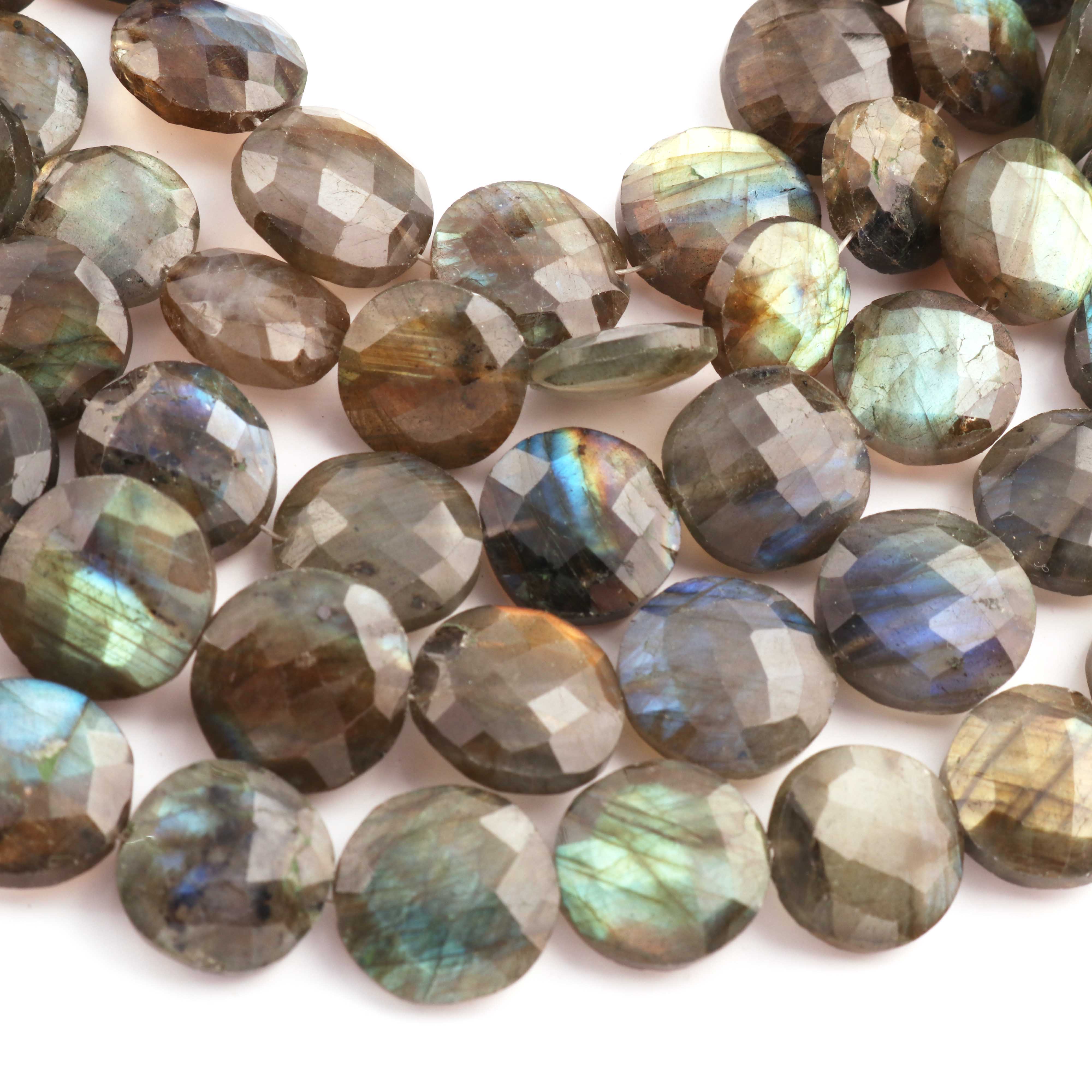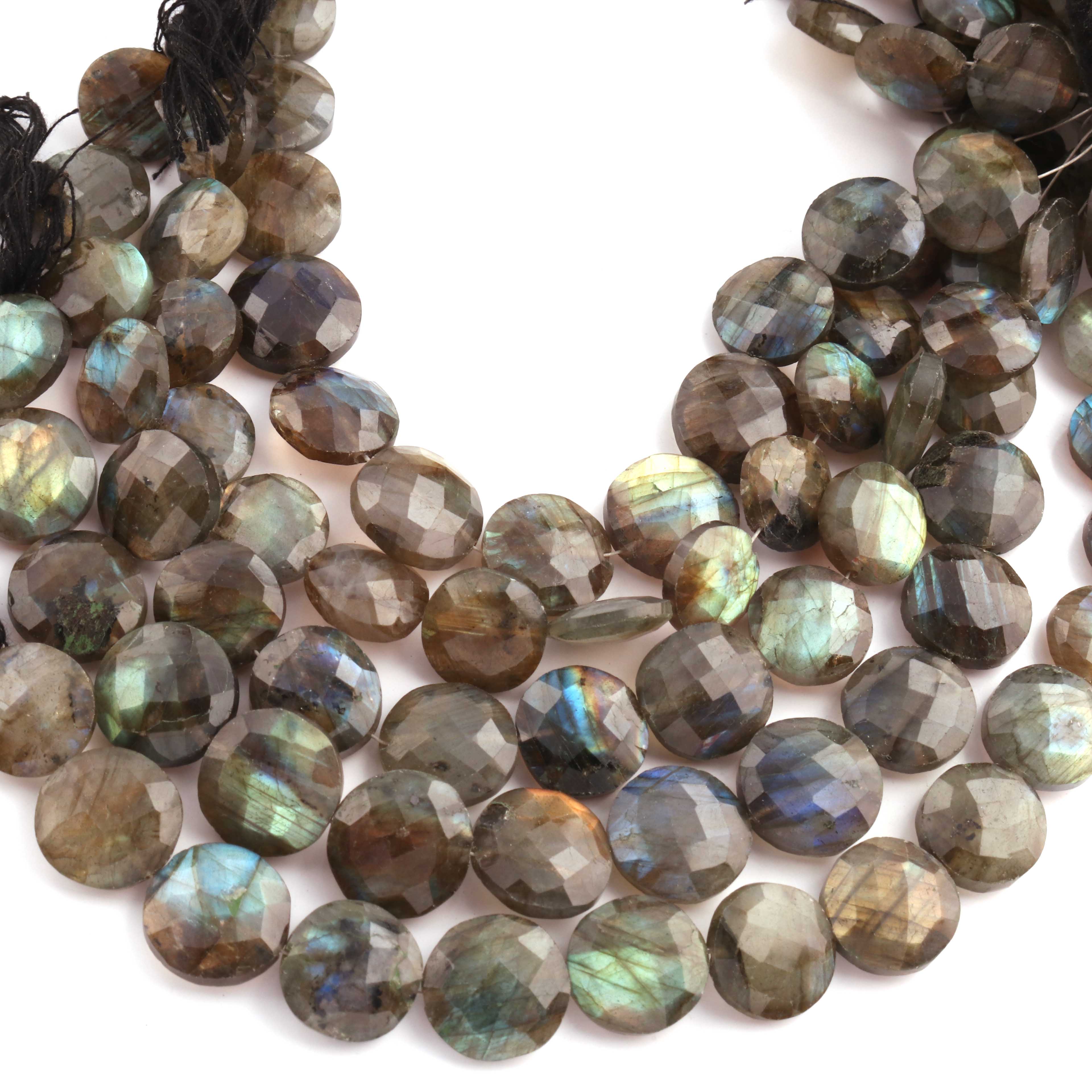 1 Strand Labradorite Faceted Coin Shape Briolettes -Semi Precious Gemstone Coin Shape Briolettes Beads 10mmx10mm-15mmx15mm -7.5 Inches BR03702