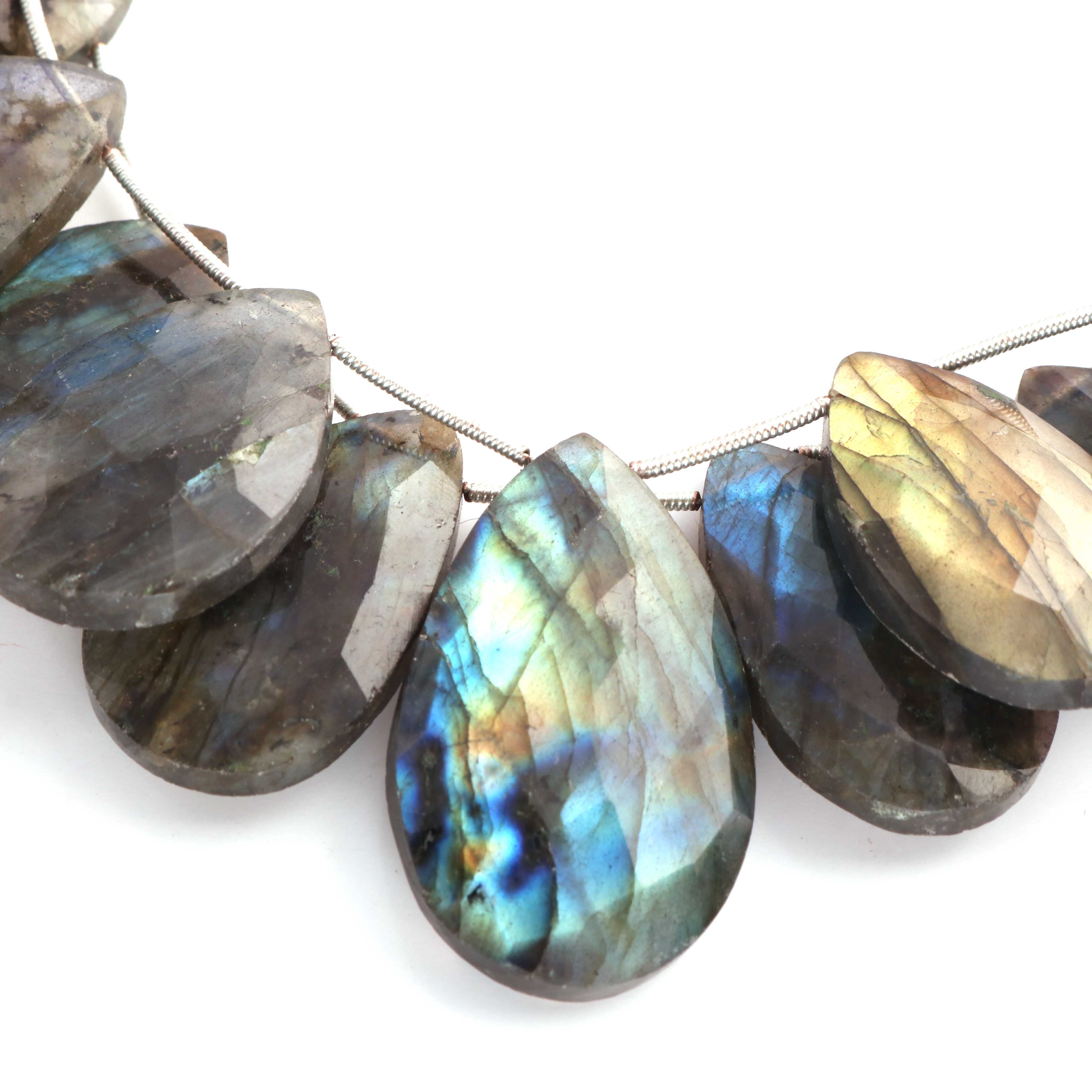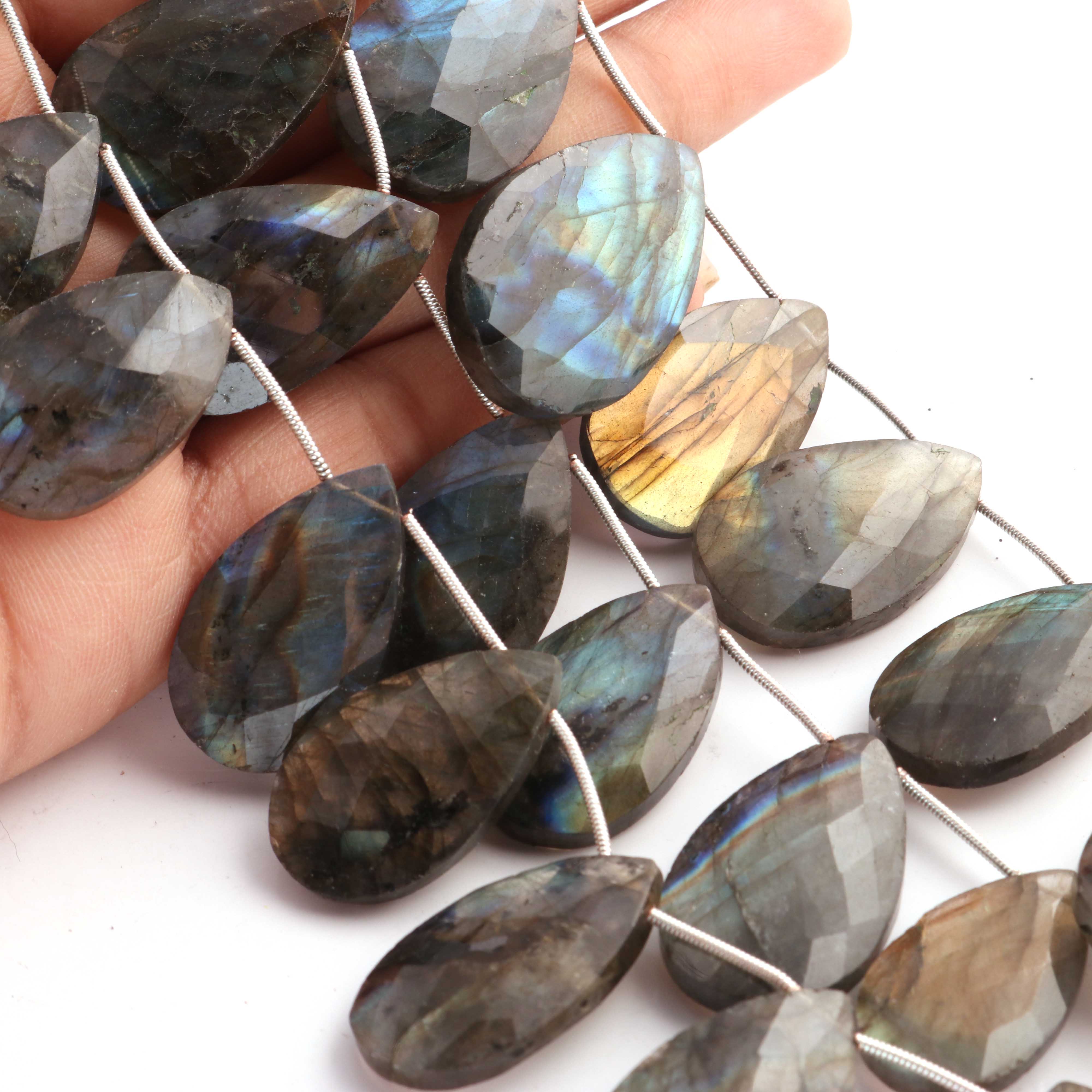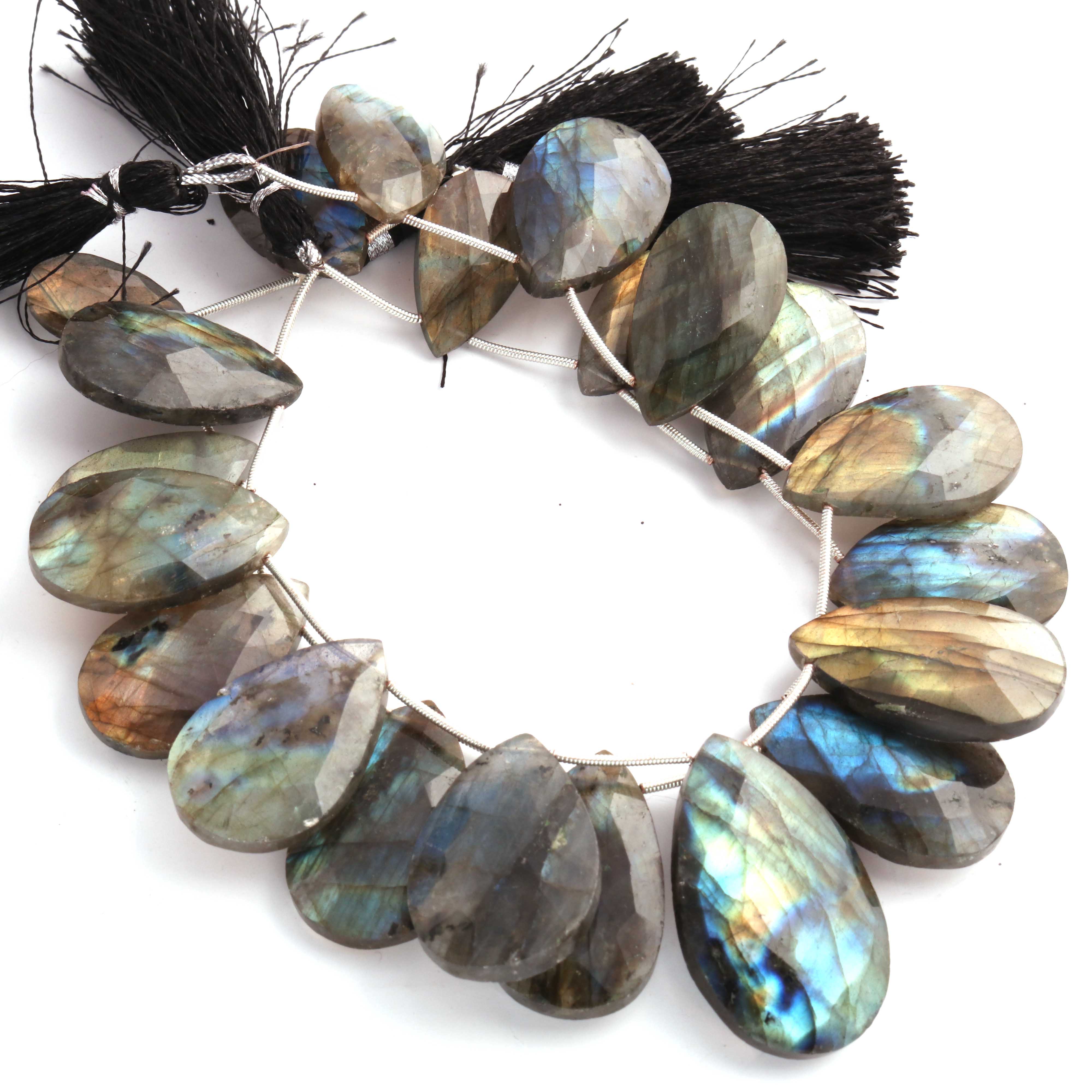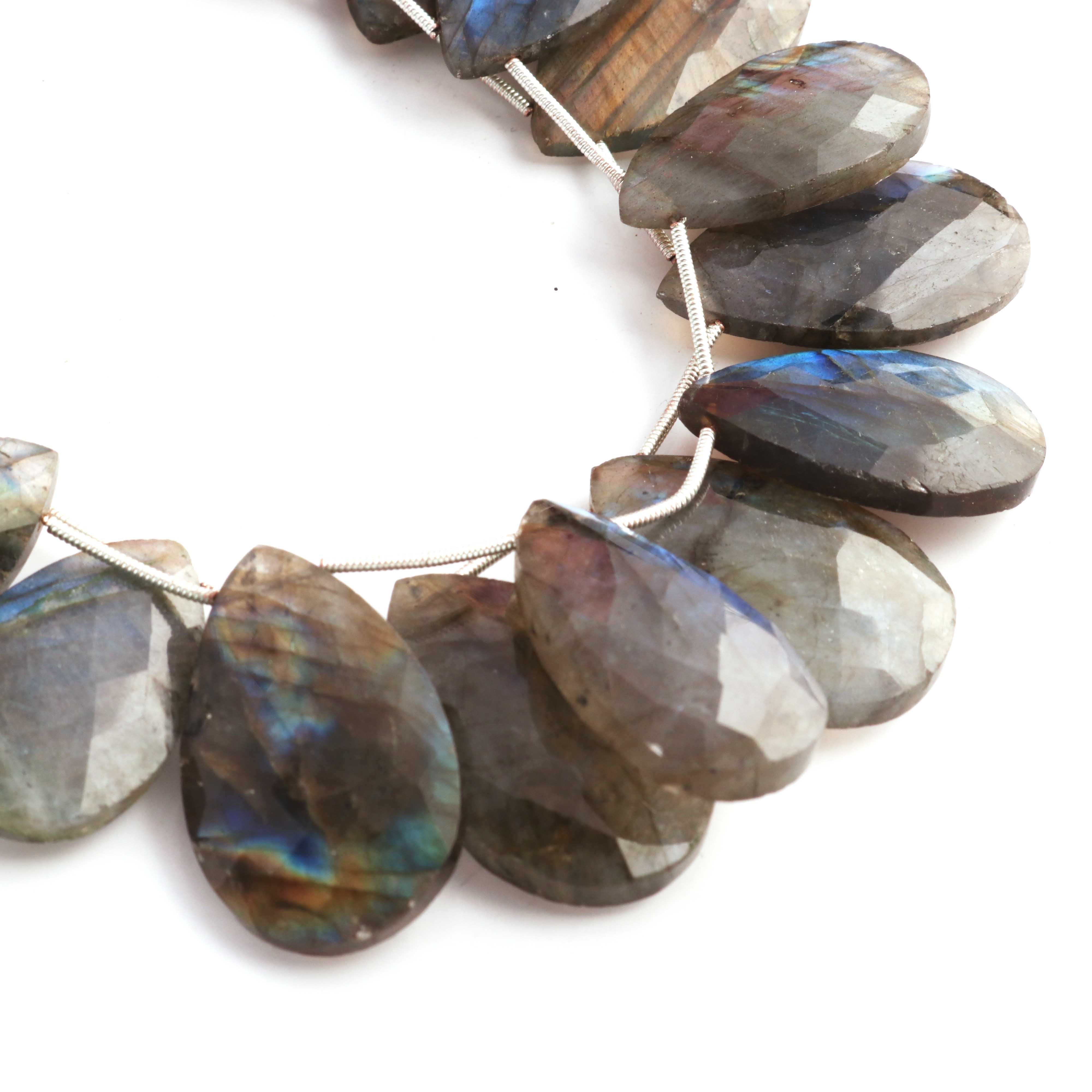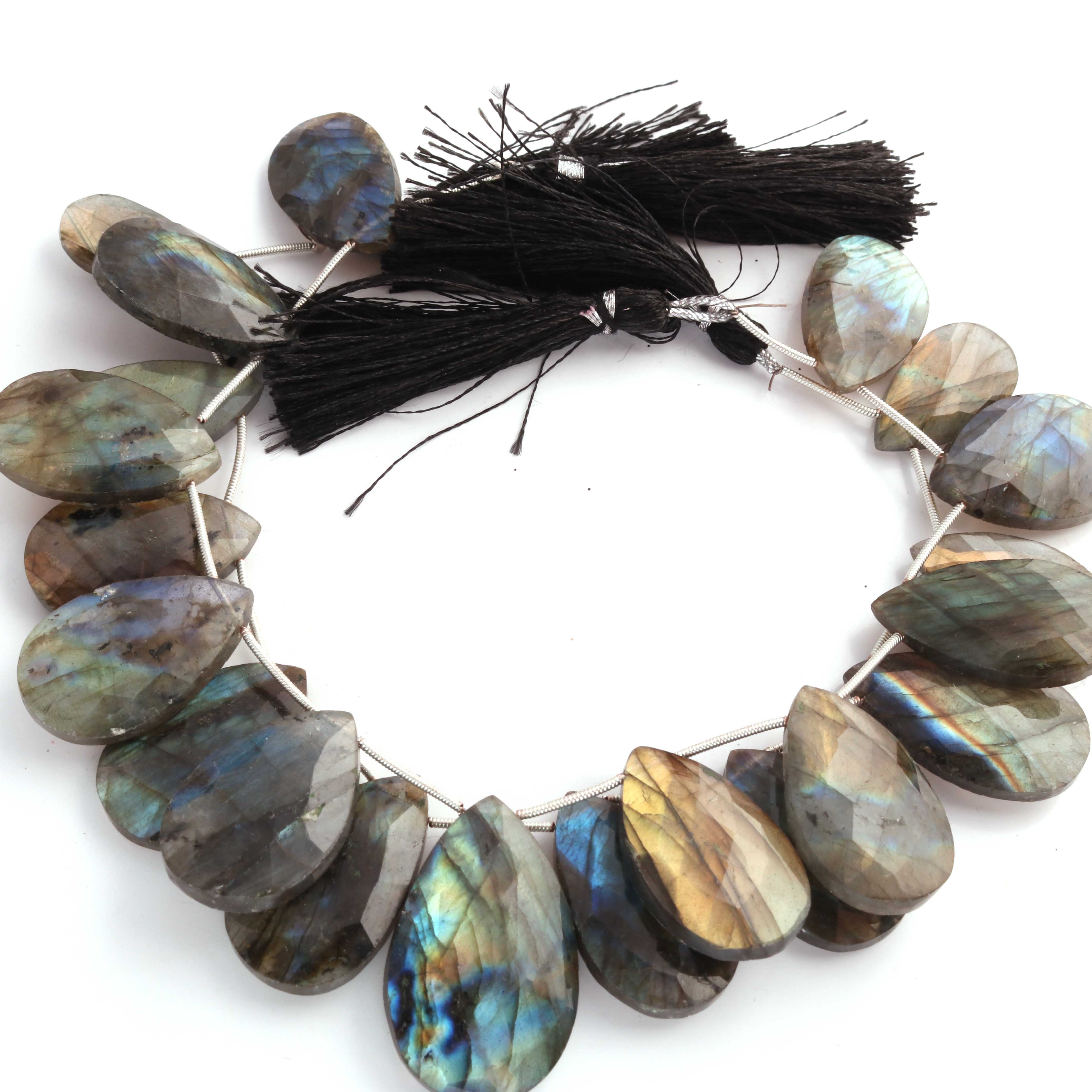 1 Strand Labradorite Faceted Pear Shape Briolettes -Gemstone Pear Briolettes 23mm x12mm-34mmx27mm-9 inches BR03862