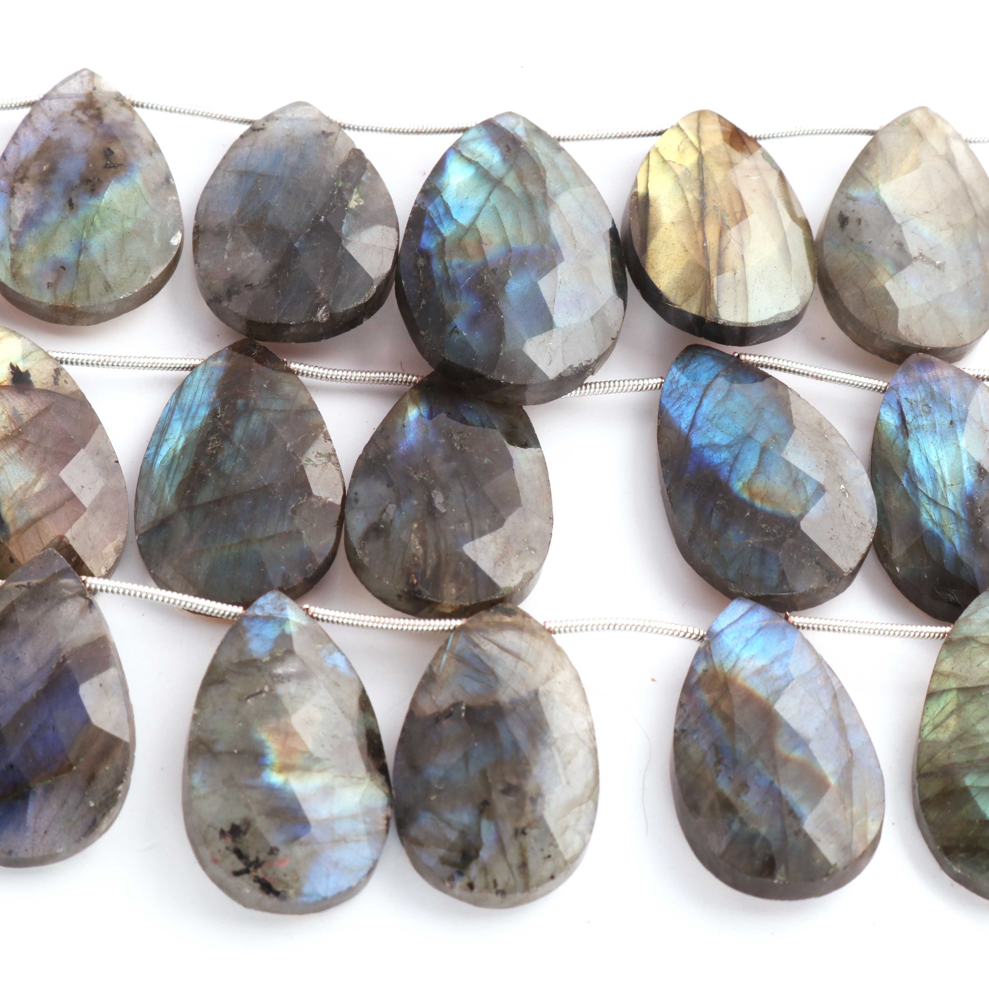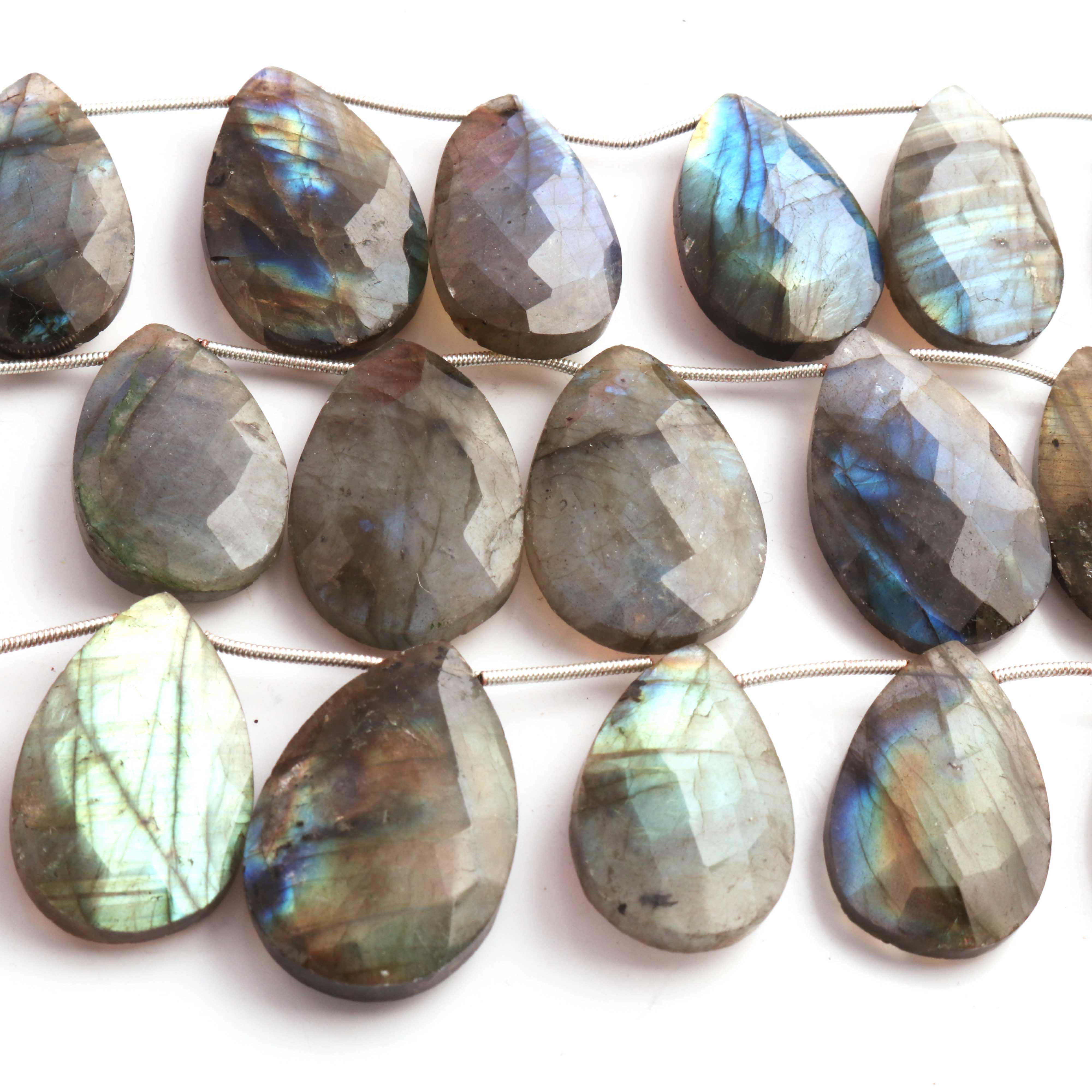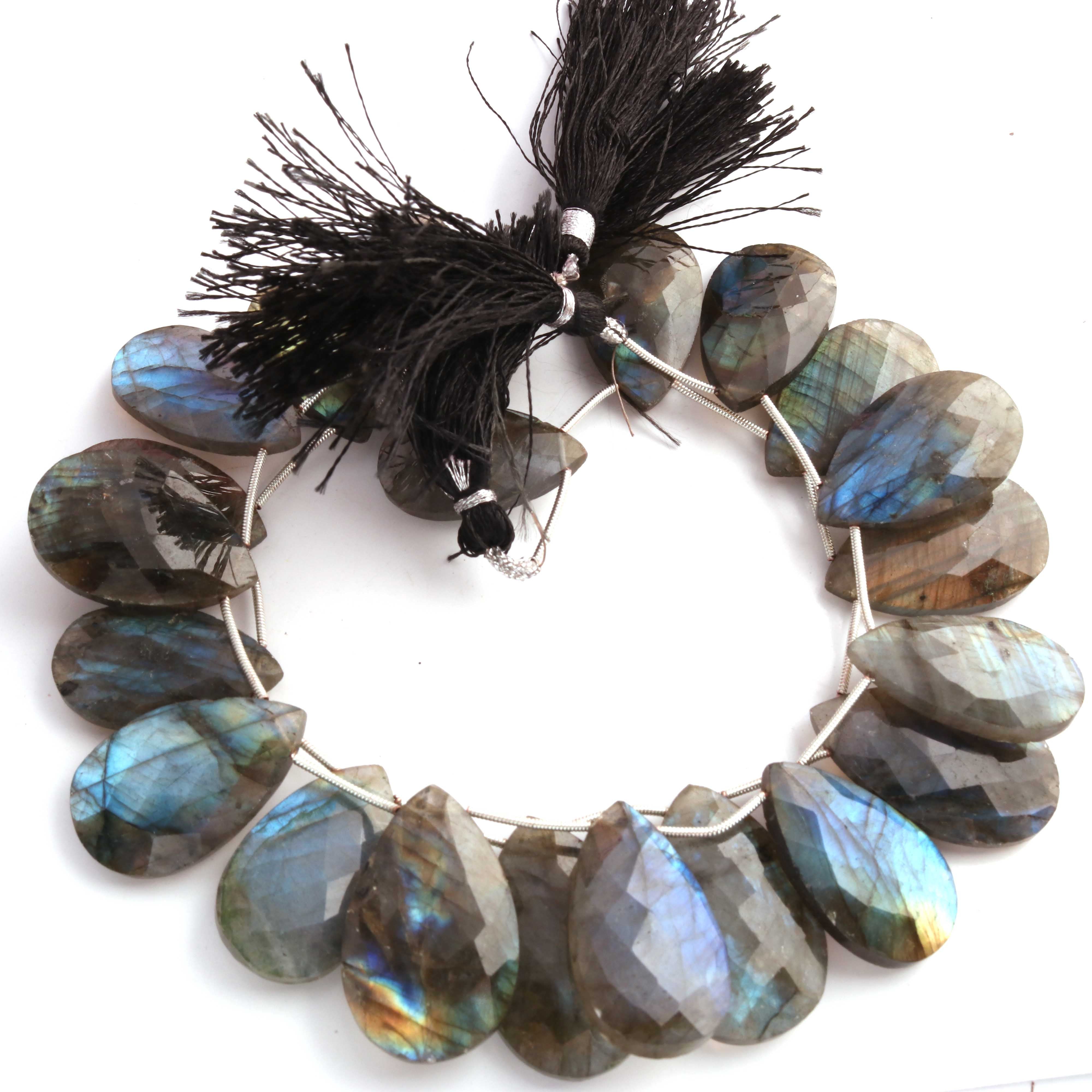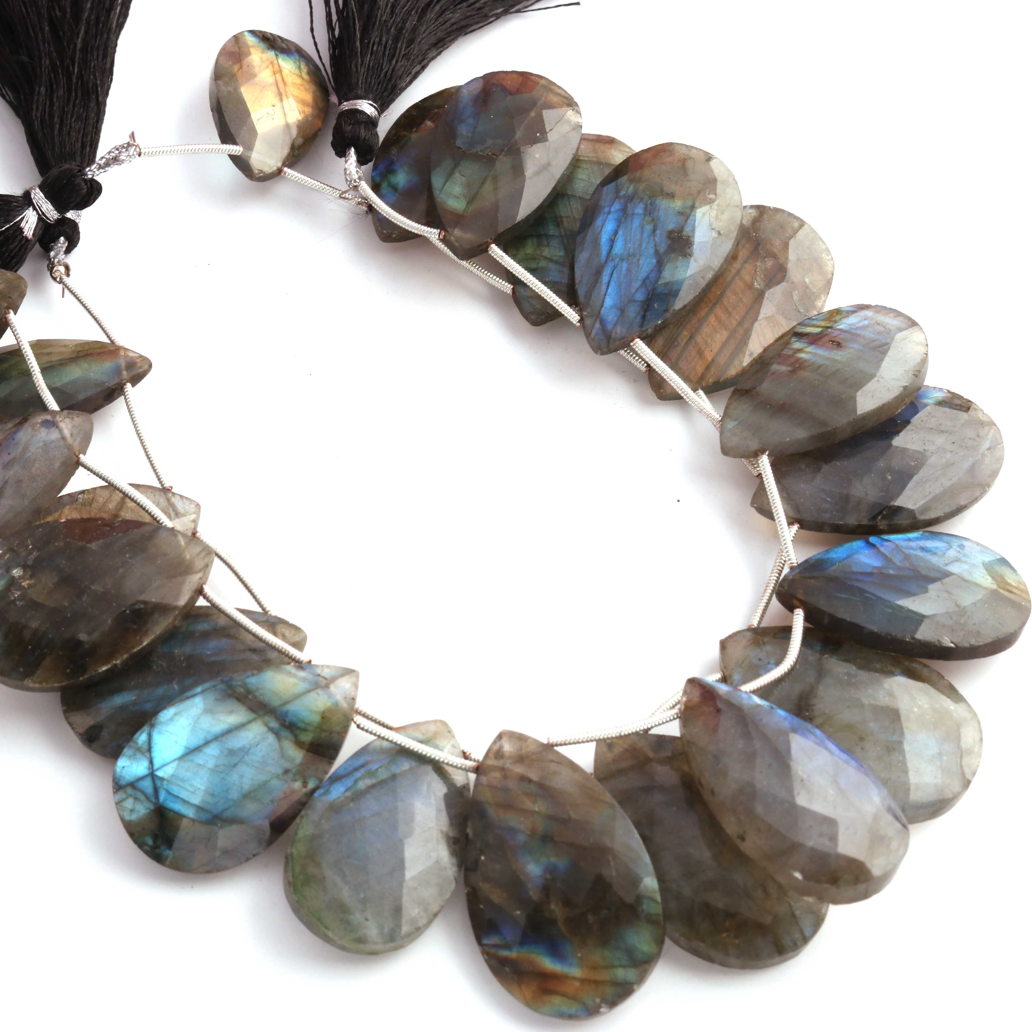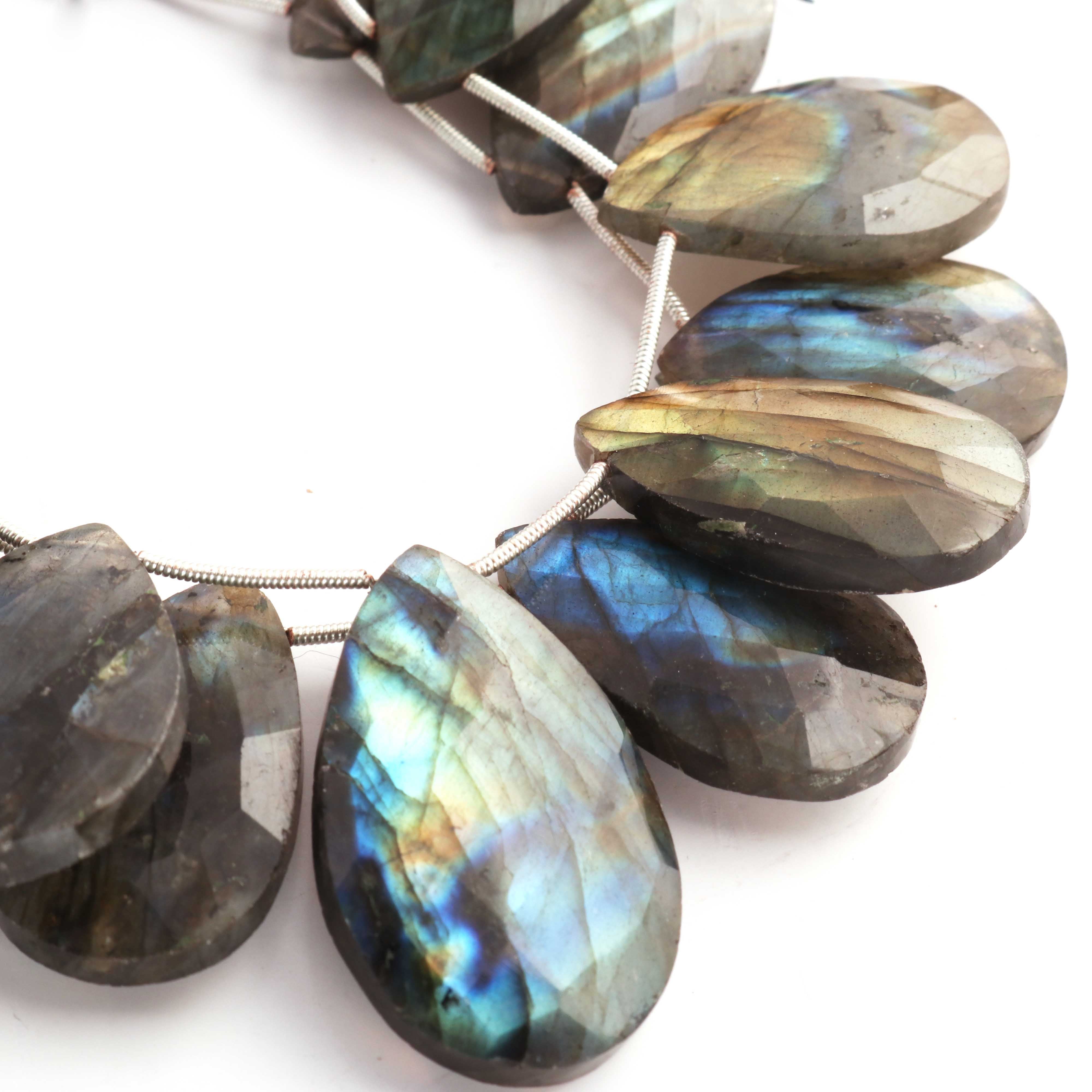 1 Strand Labradorite Faceted Pear Shape Briolettes -Gemstone Pear Briolettes 23mm x12mm-34mmx27mm-9 inches BR03862
