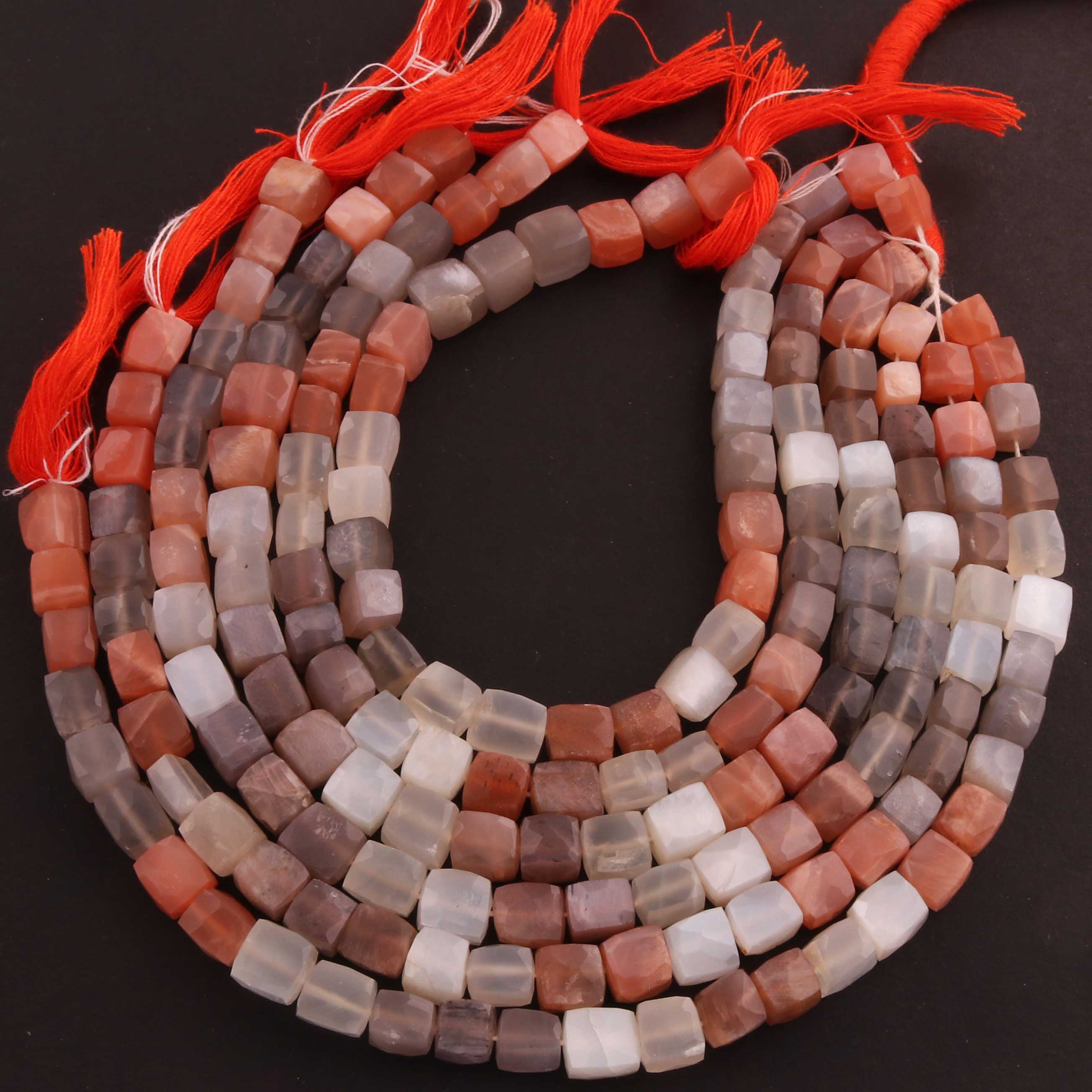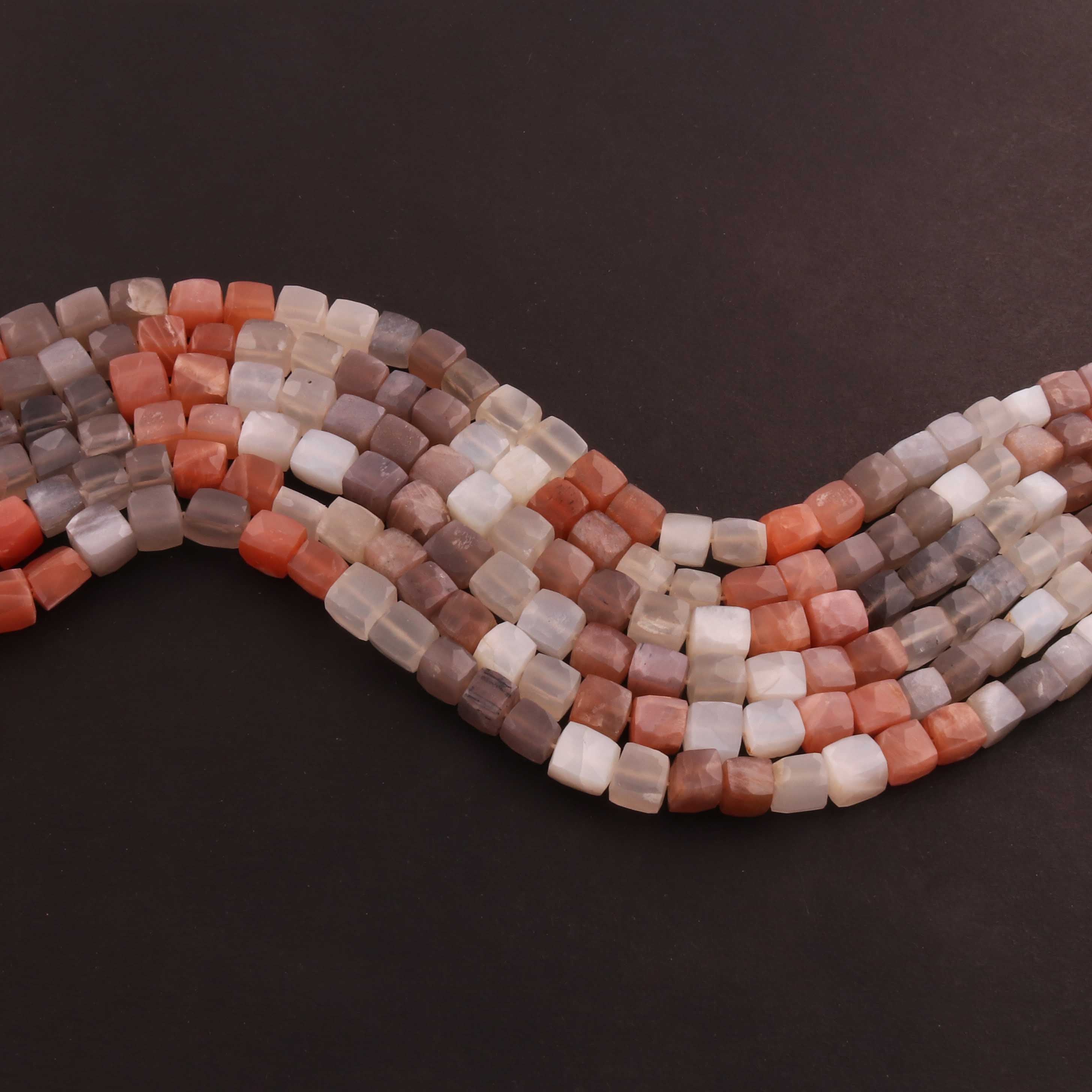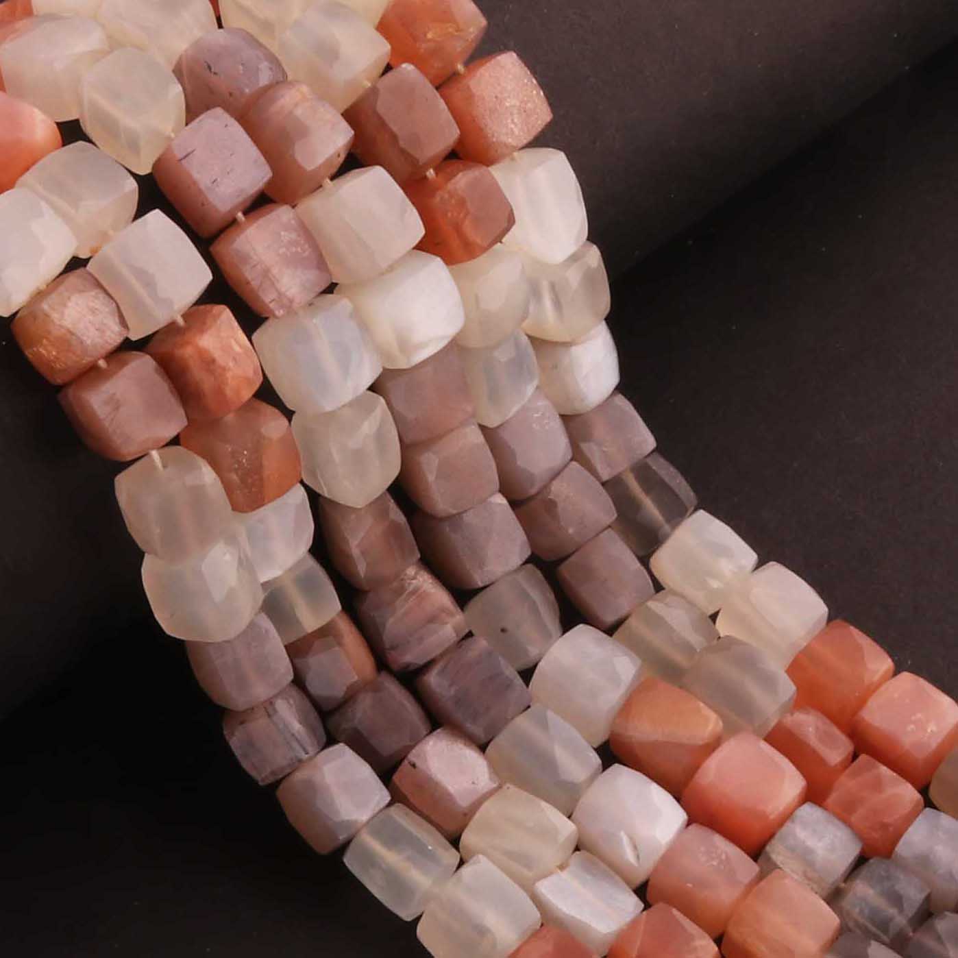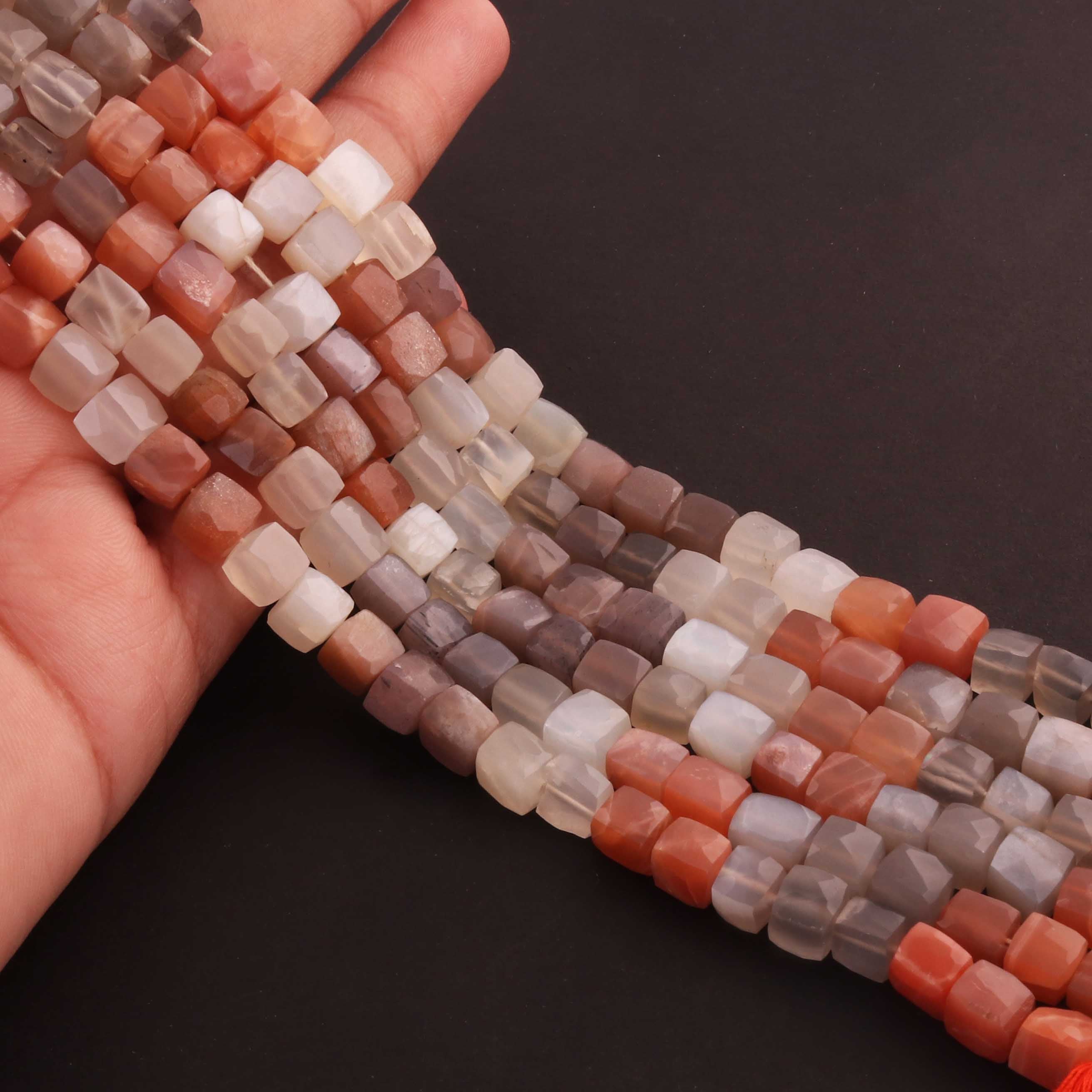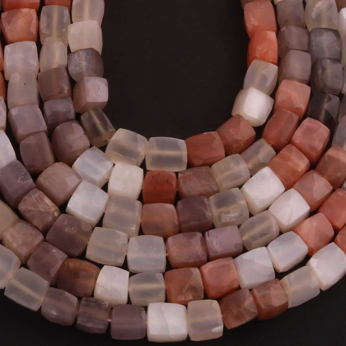 1 Strand Multi Moonstone Faceted Cube Briolettes - Semi Precious Gemstone Box Shape Beads - 6mm-8mm -9 Inches BR02584