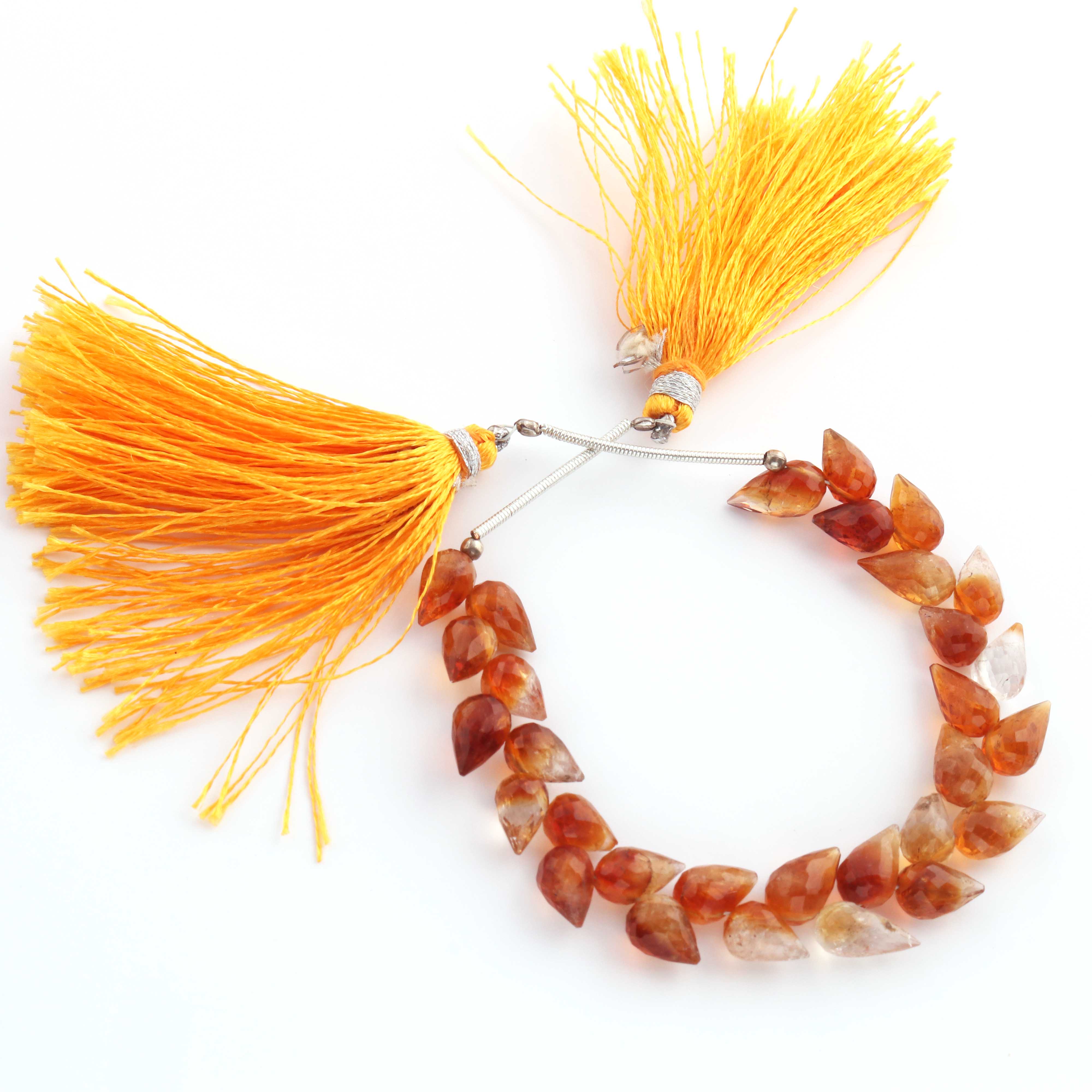 1 Strand Natural Shaded Hessonite Faceted Tear Drop Briolettes - Semi Precious Gemstone Water Drop- Beautiful Jewelry Making Briolettes Beads - 7mmx5mm-10mmx6mm - 7 Inches - BR3515